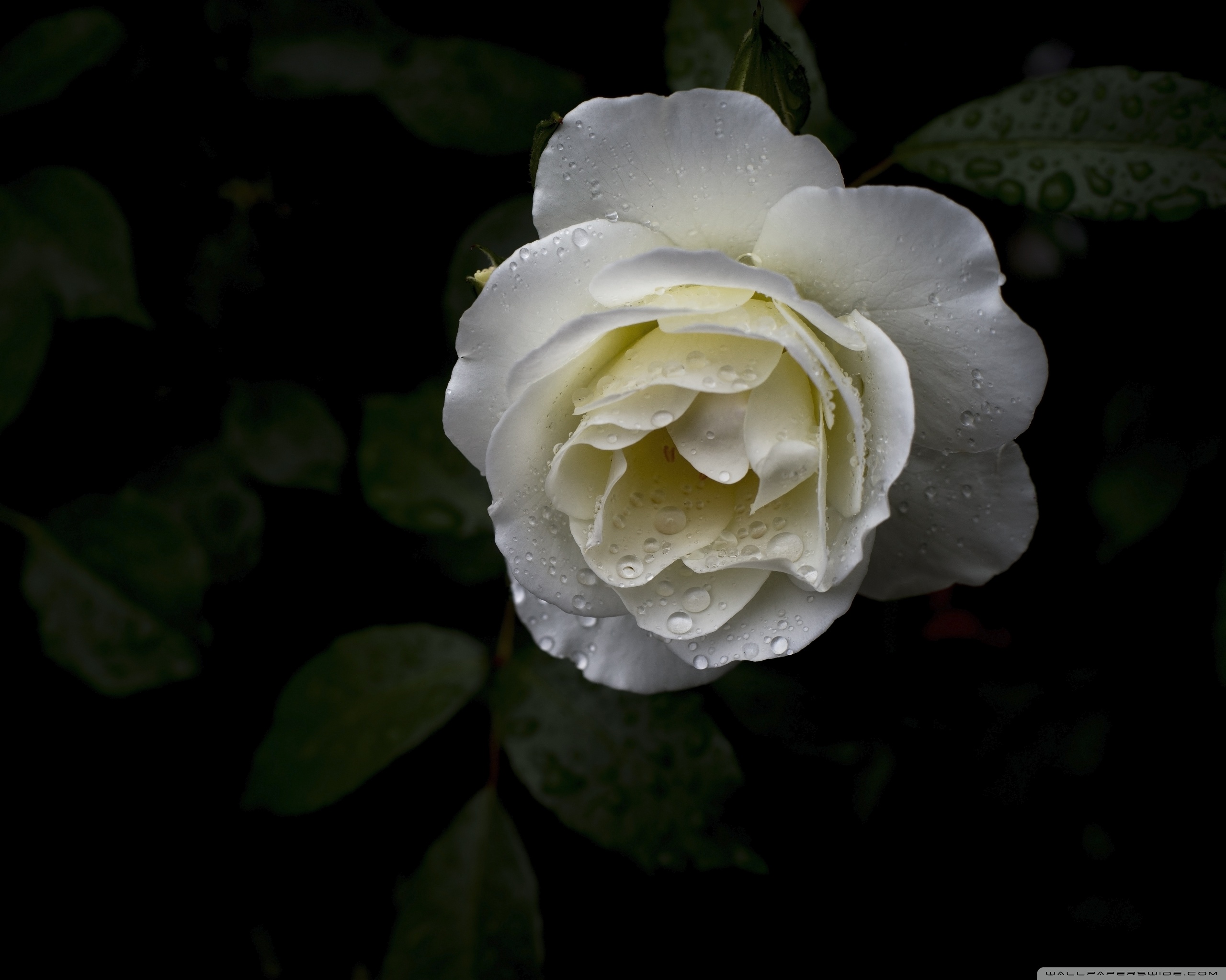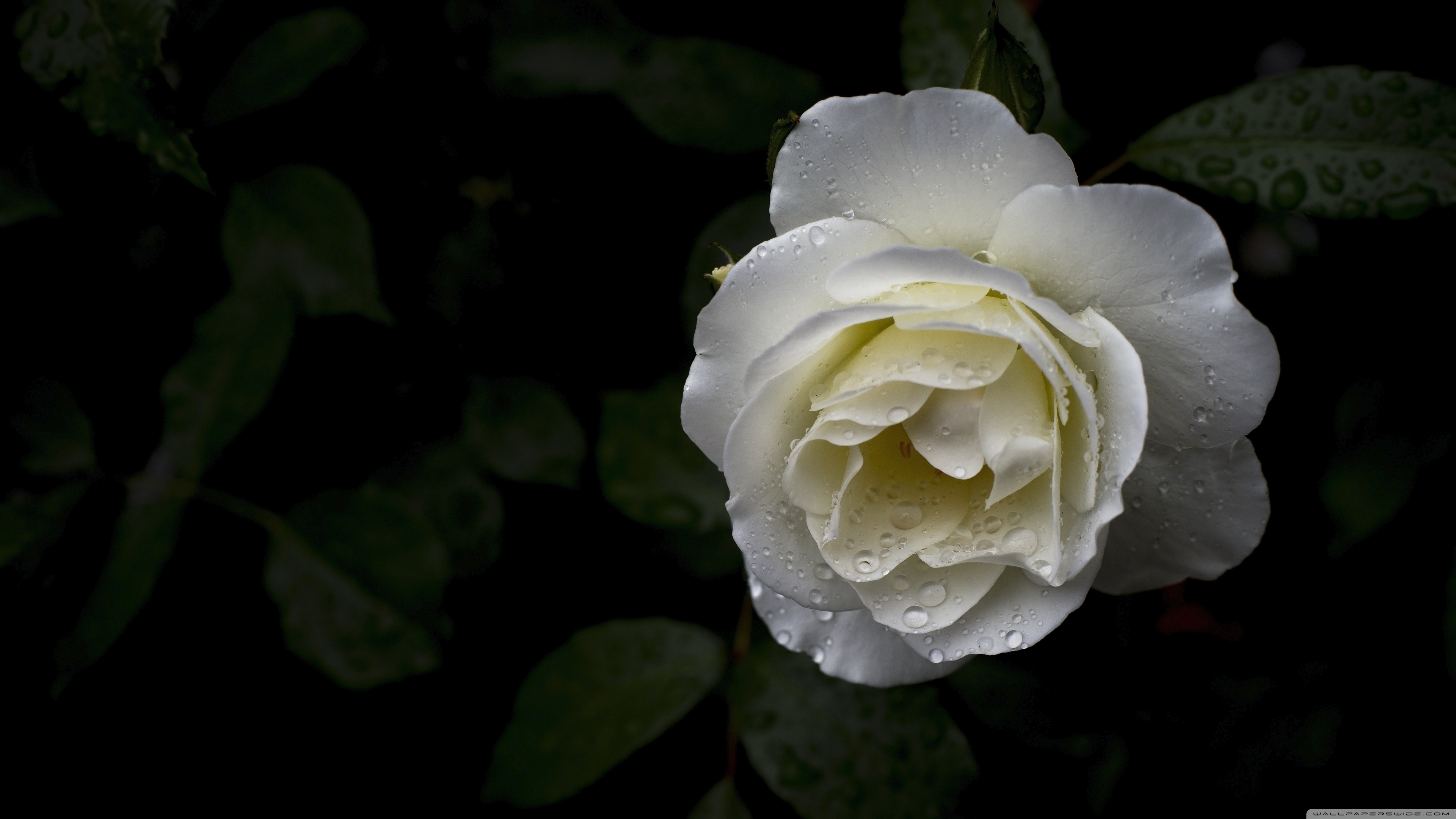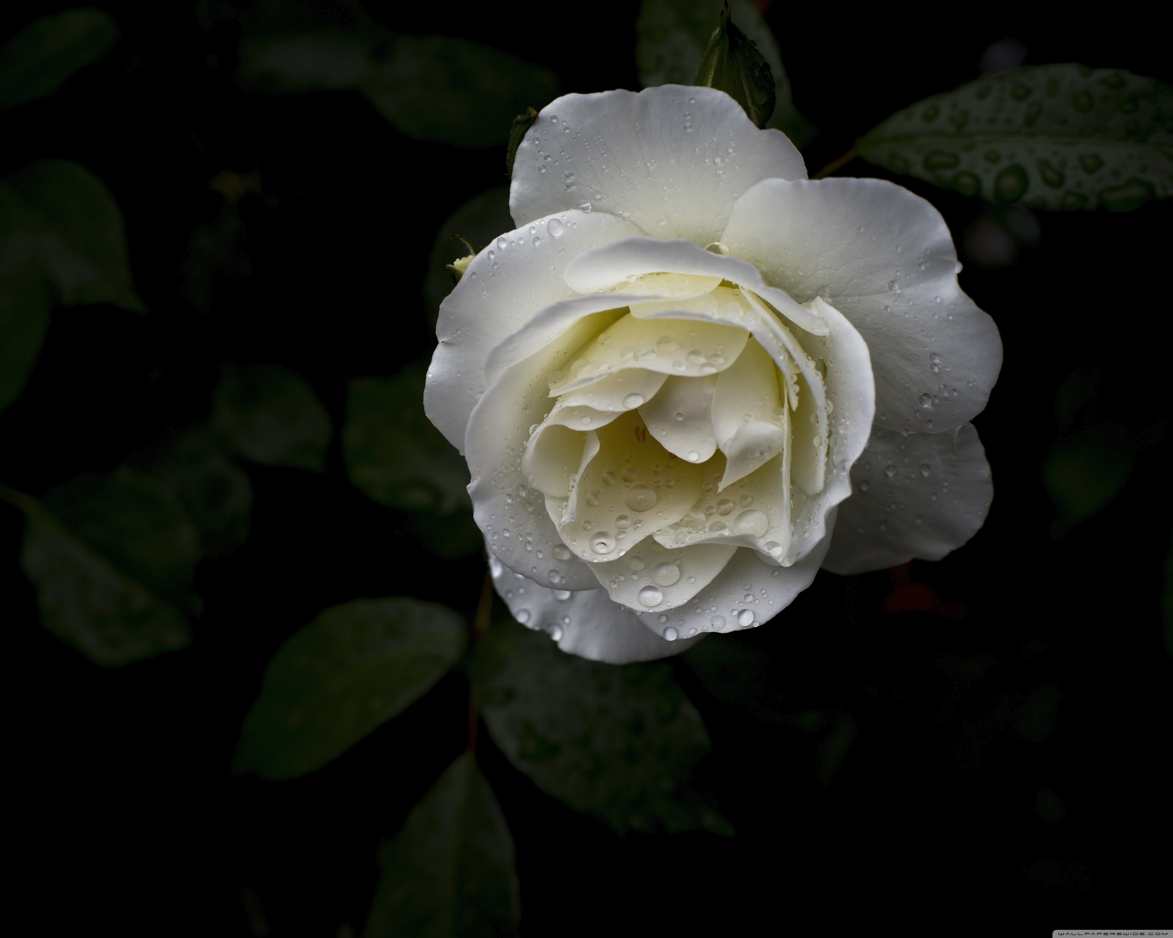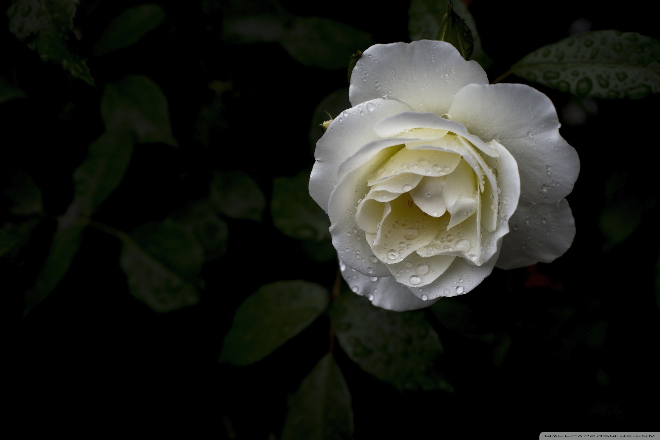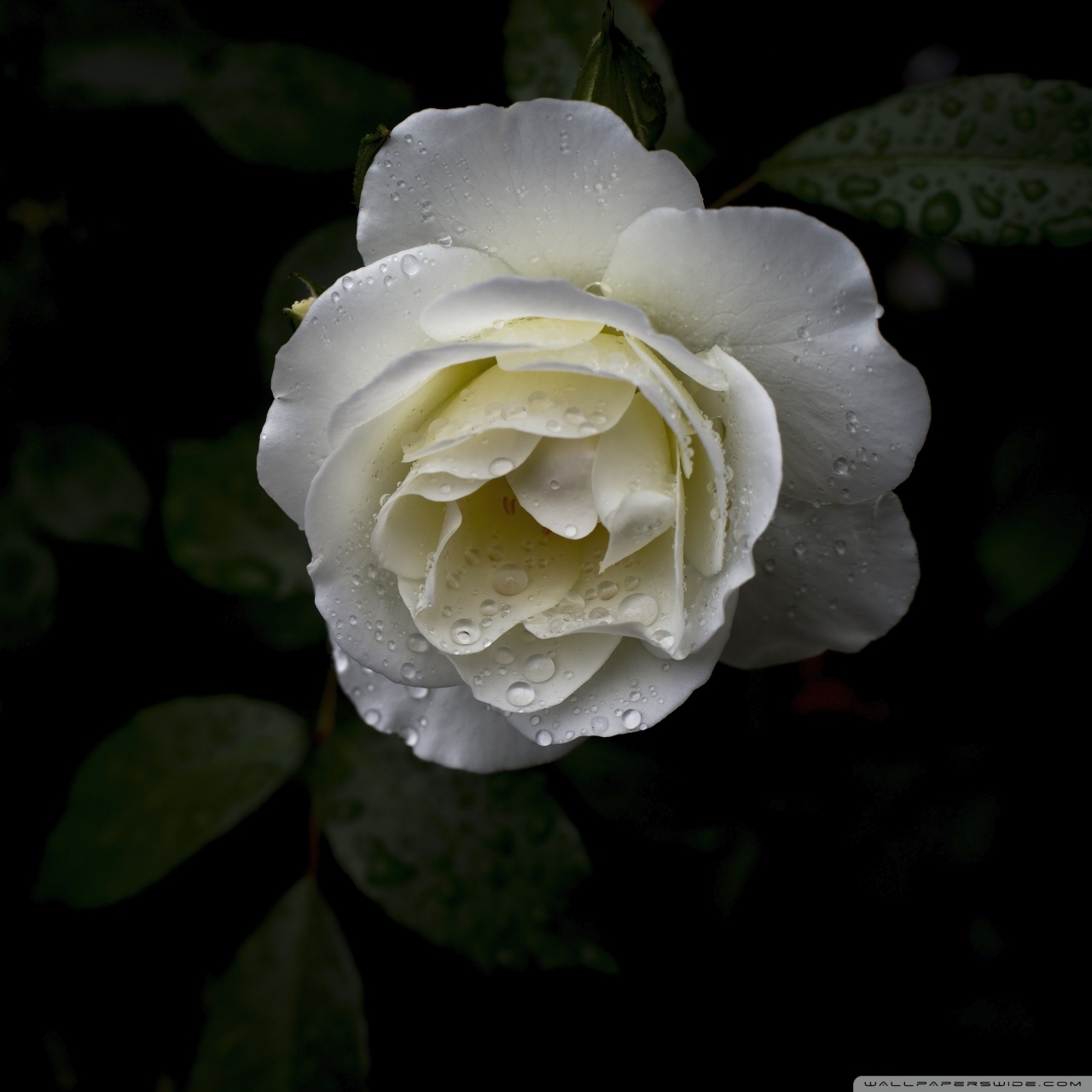 Download Schneewittchen Rose Bloom Covered in Rain Drops 4K UHD Wallpaper