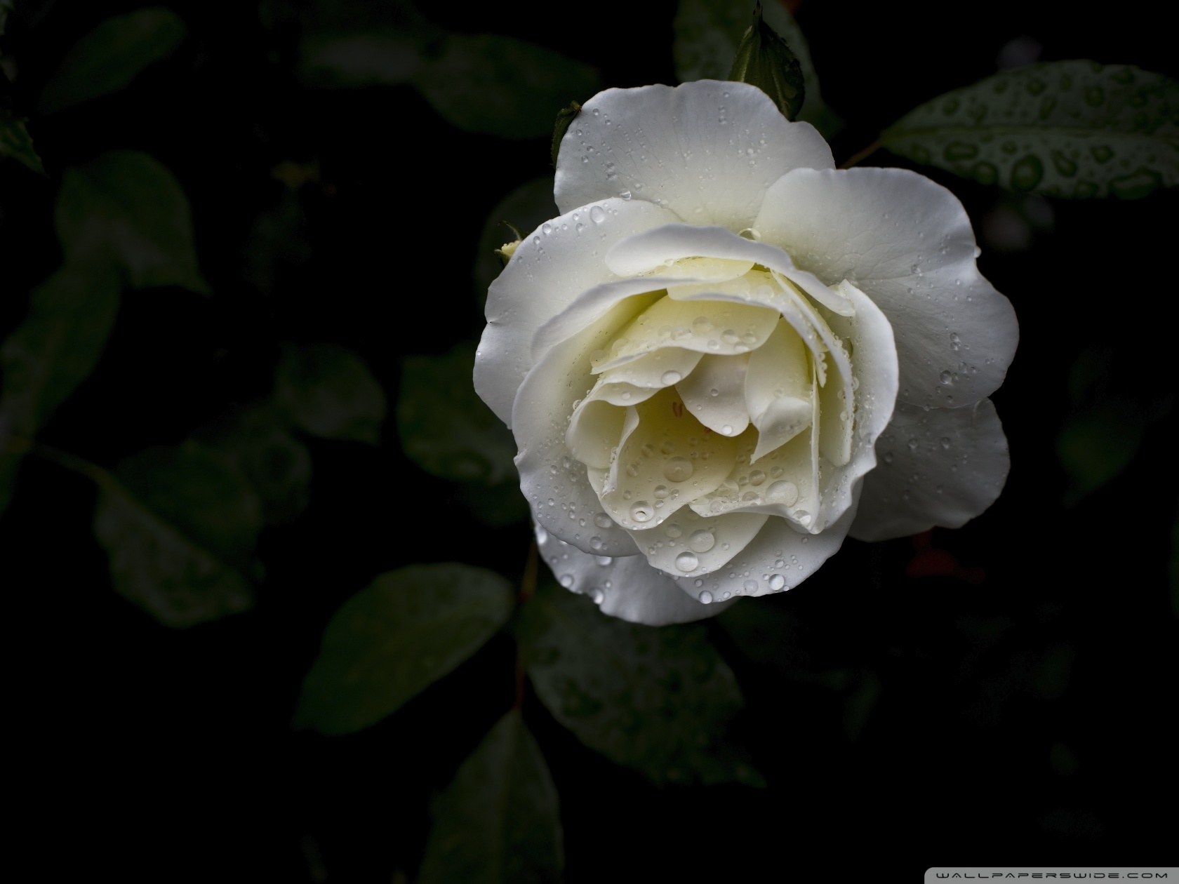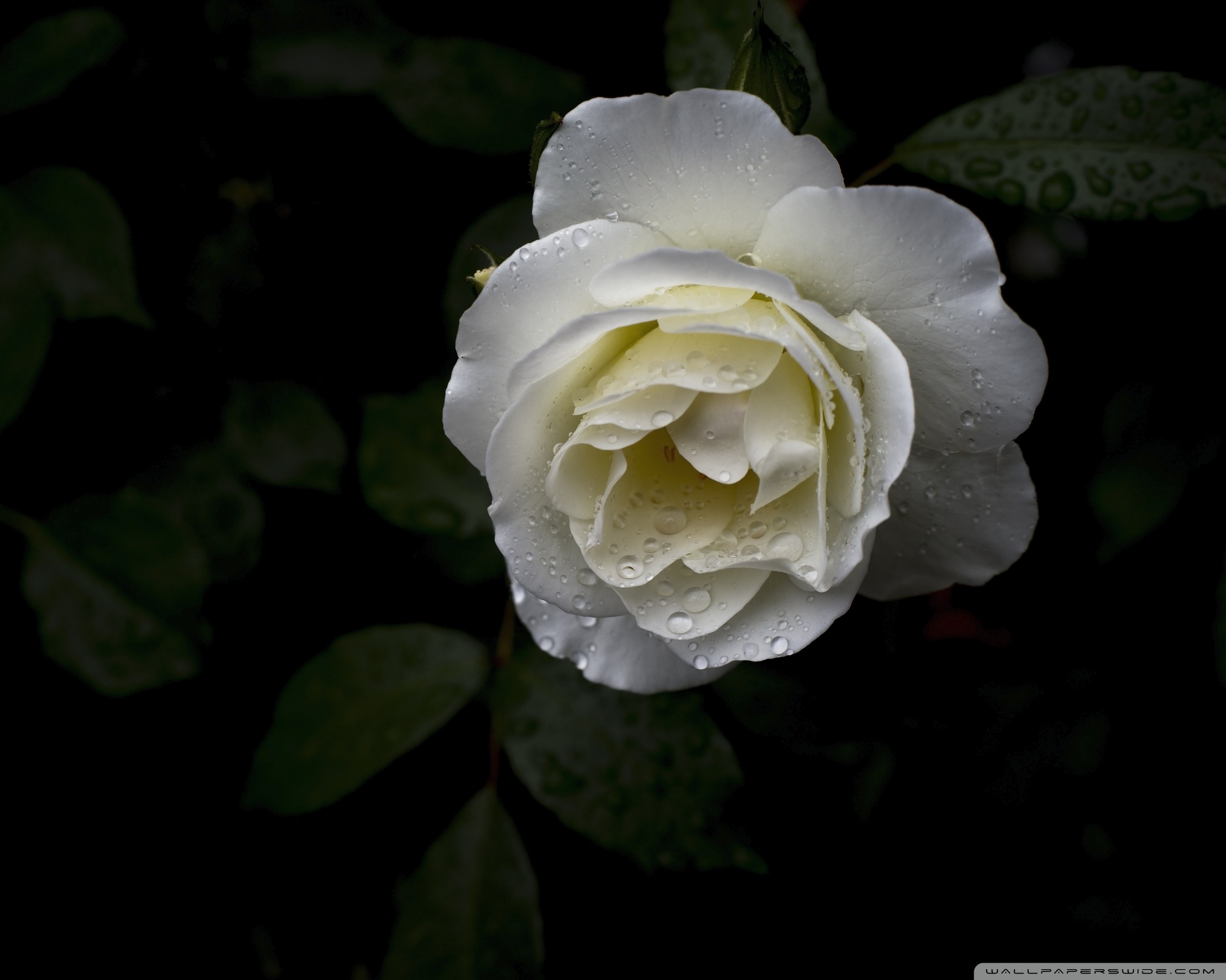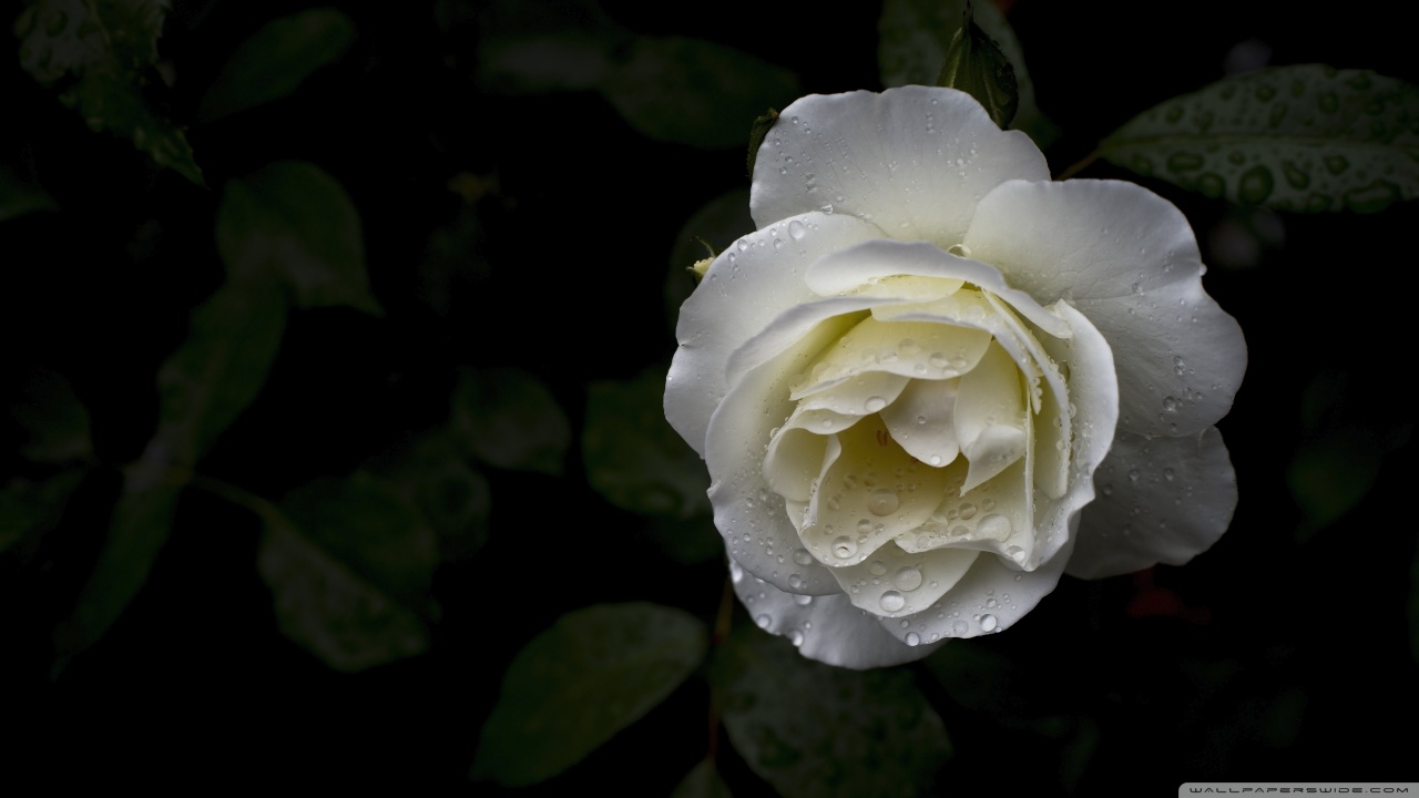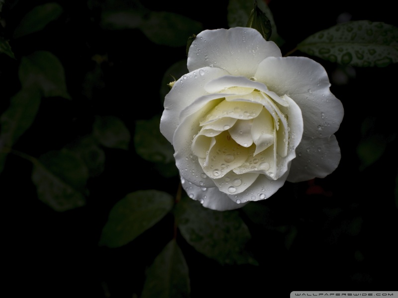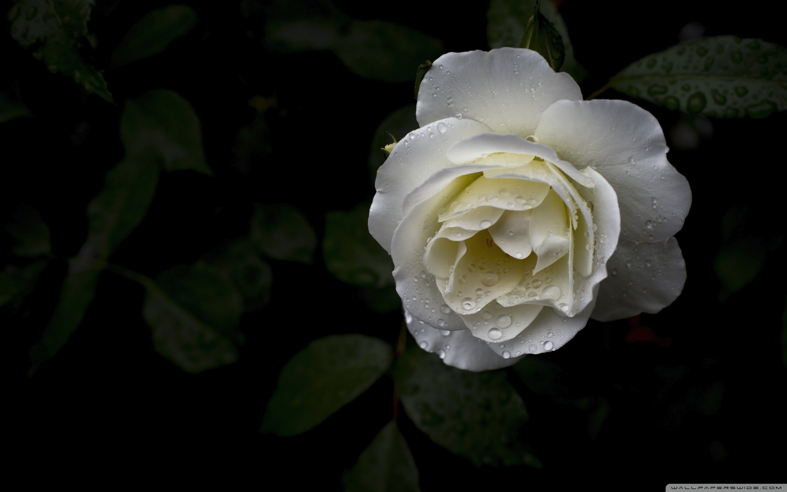 Download Schneewittchen Rose Bloom Covered in Rain Drops 4K UHD Wallpaper