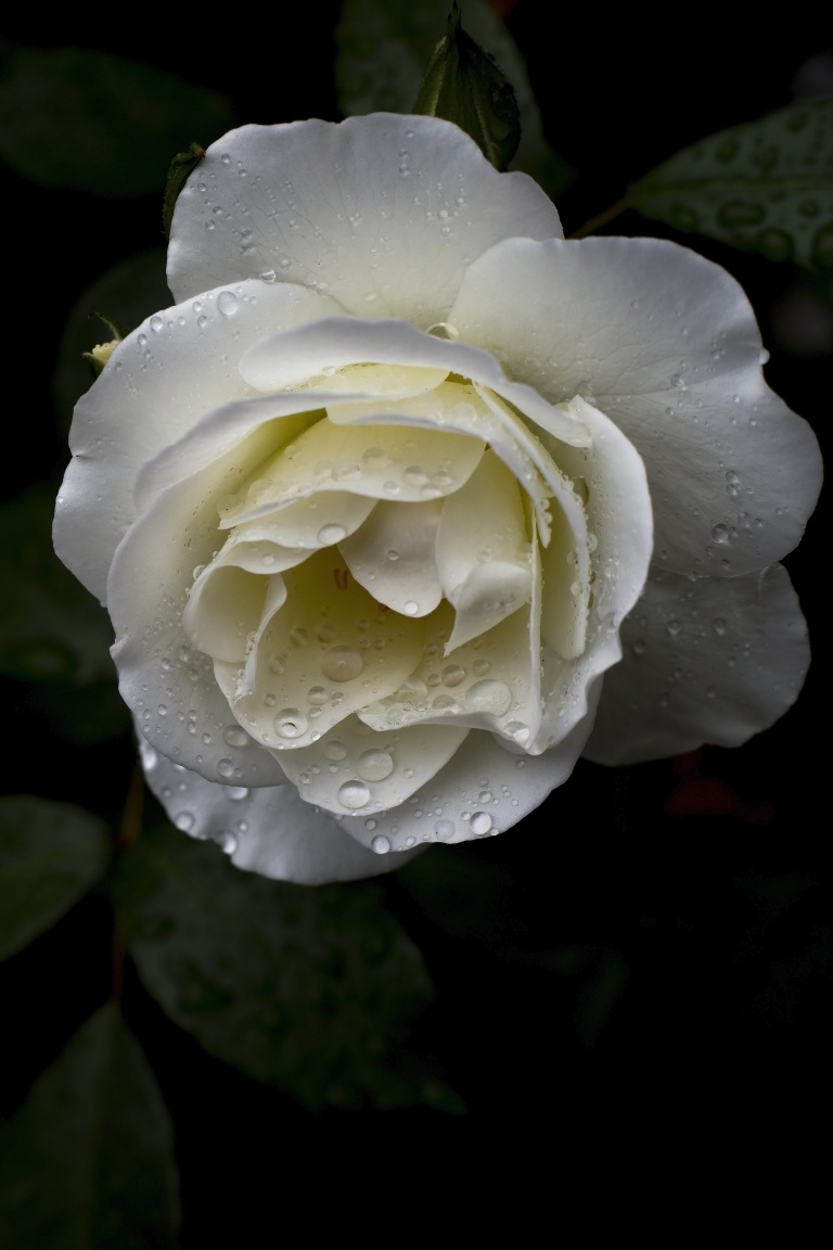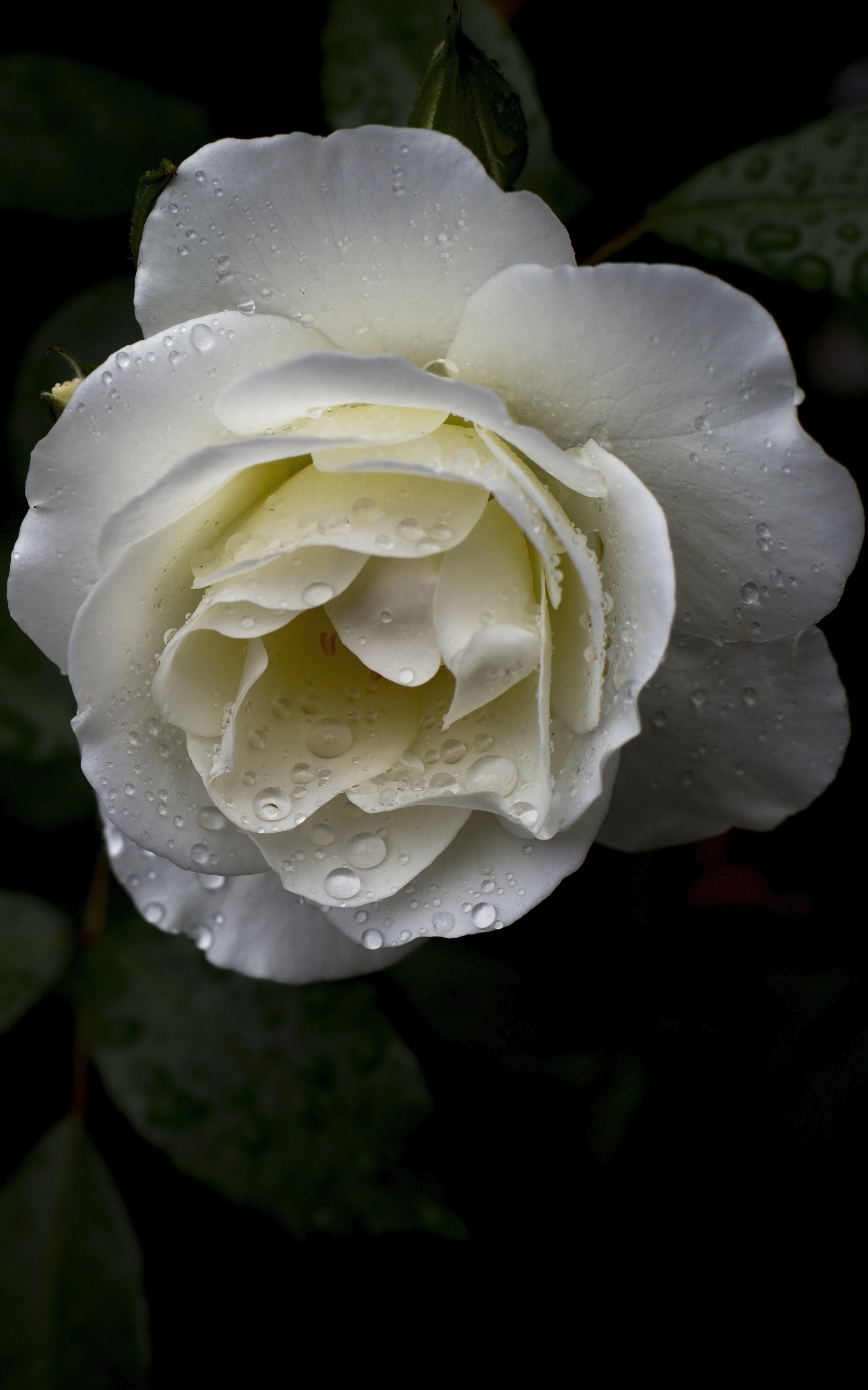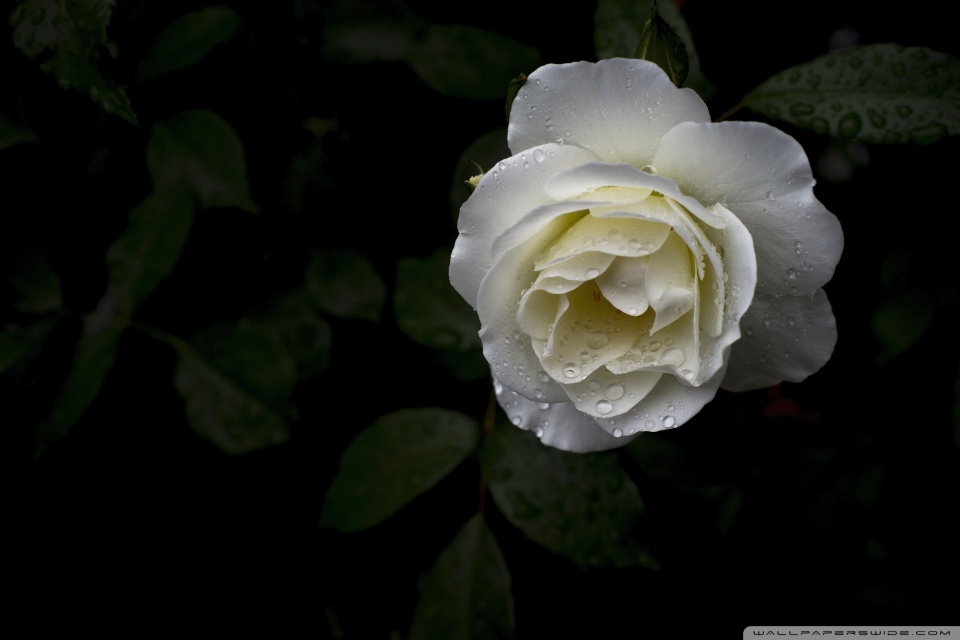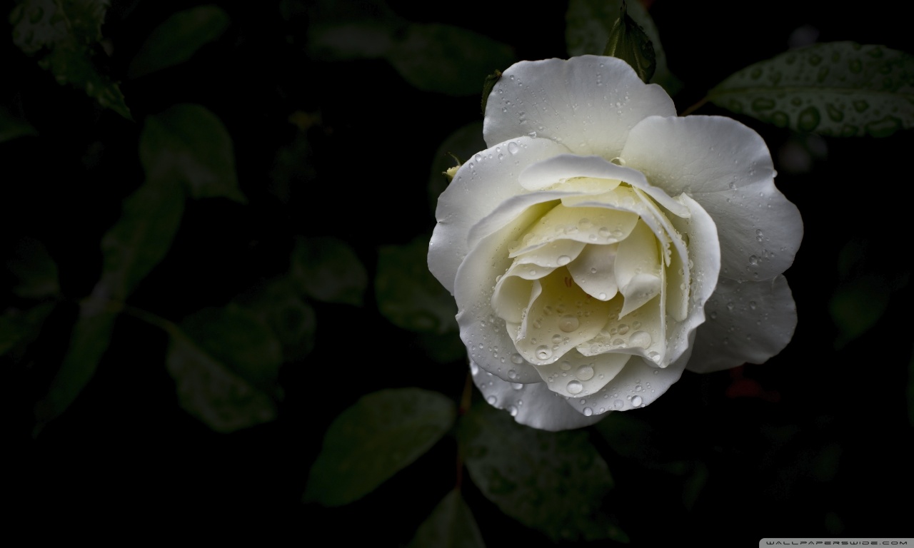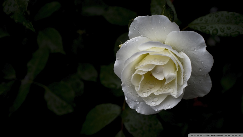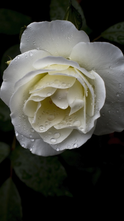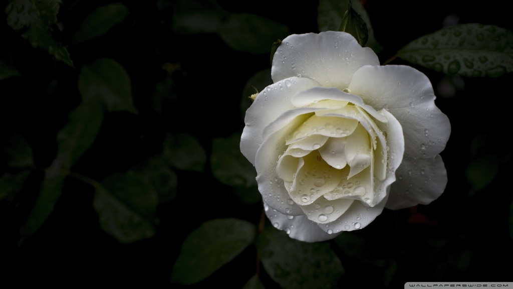 Download Schneewittchen Rose Bloom Covered in Rain Drops 4K UHD Wallpaper