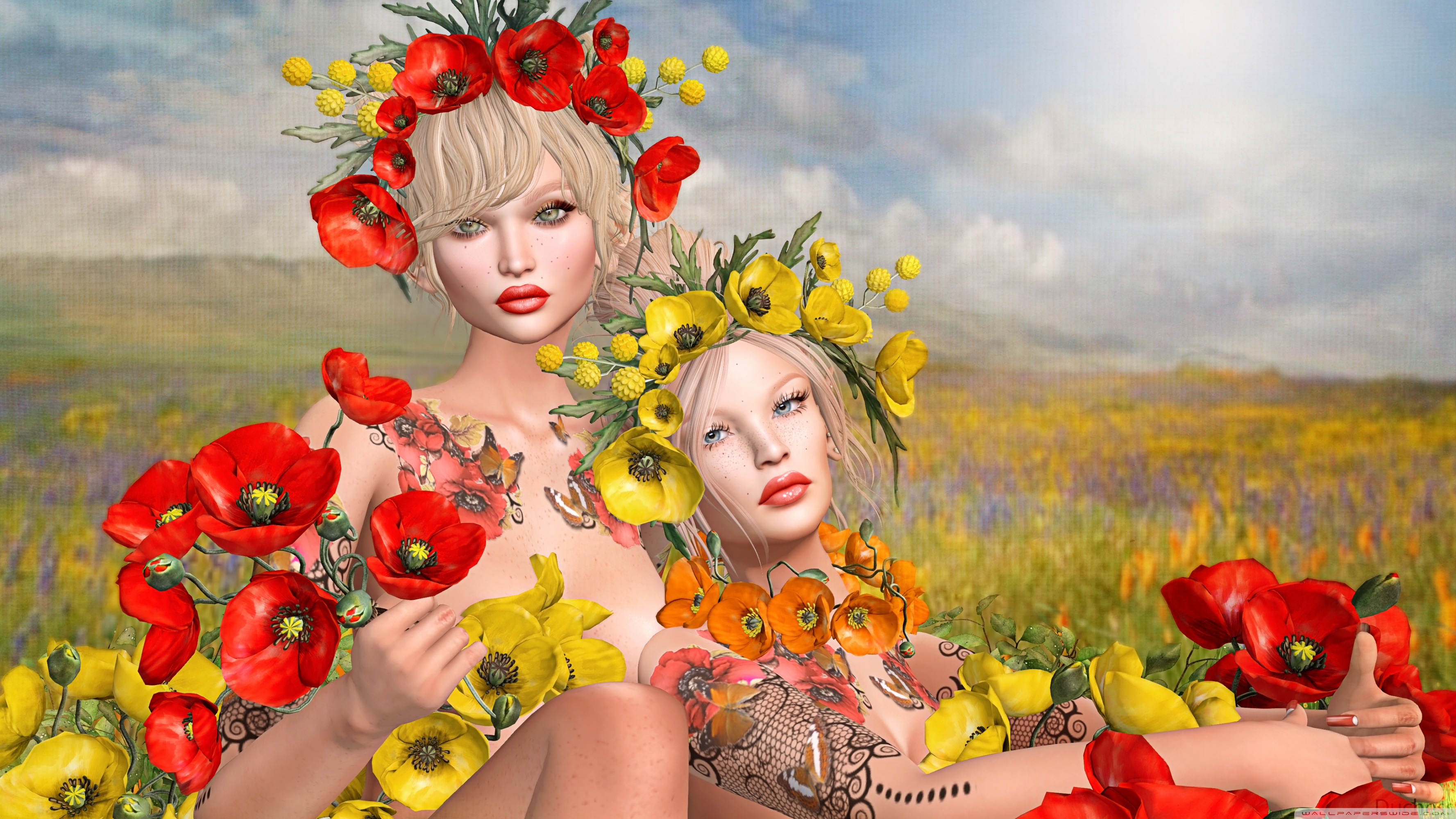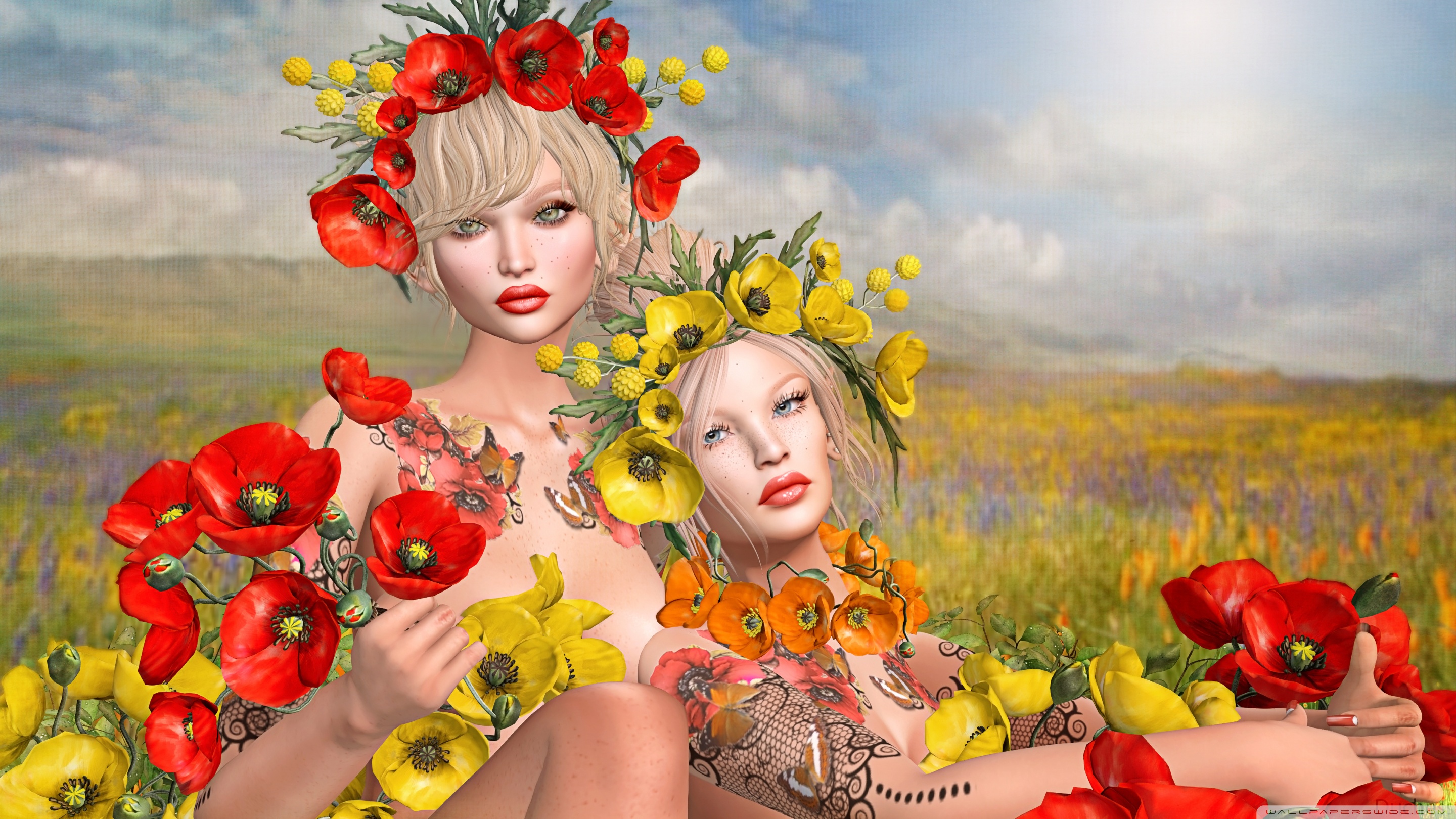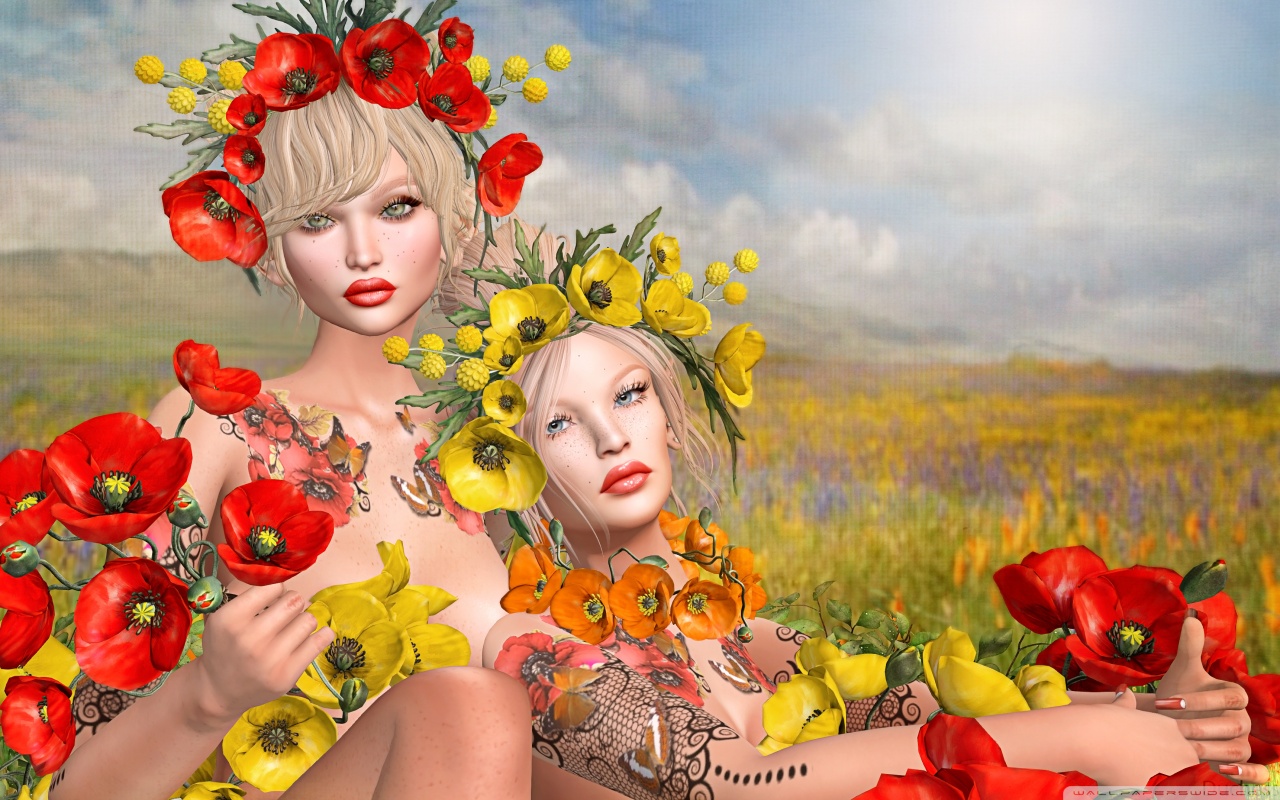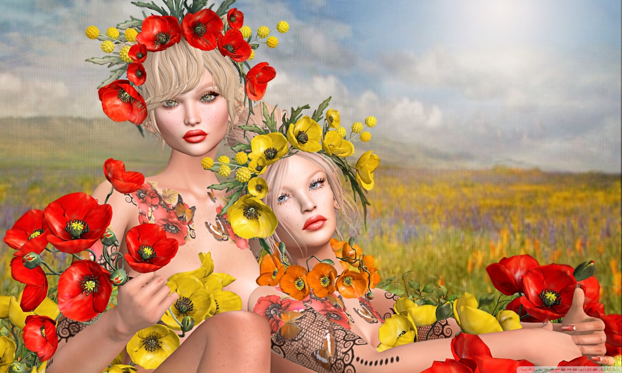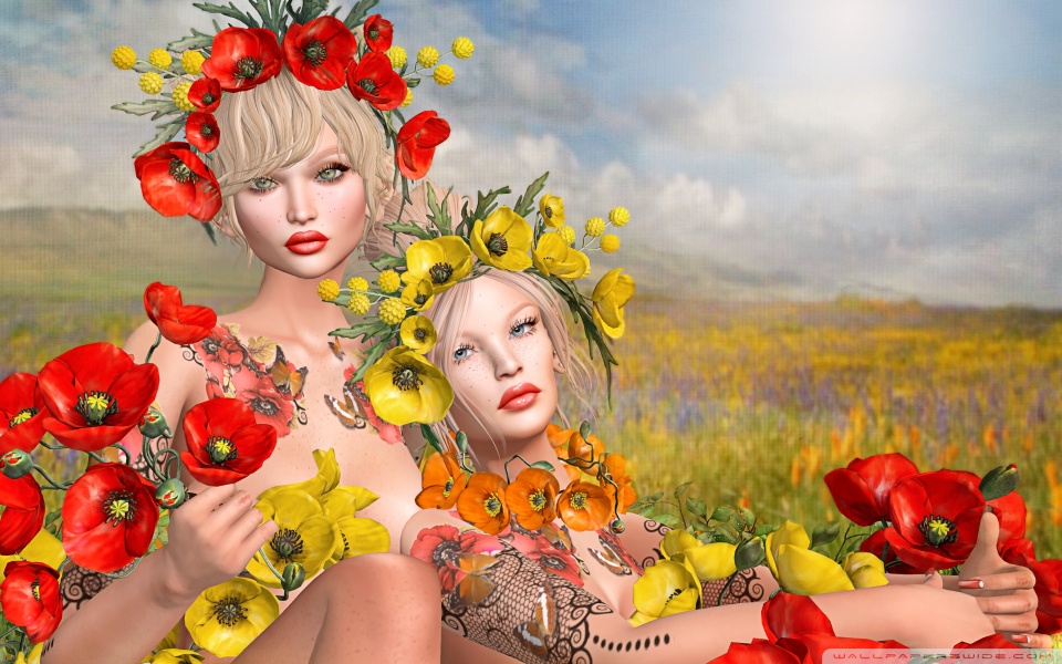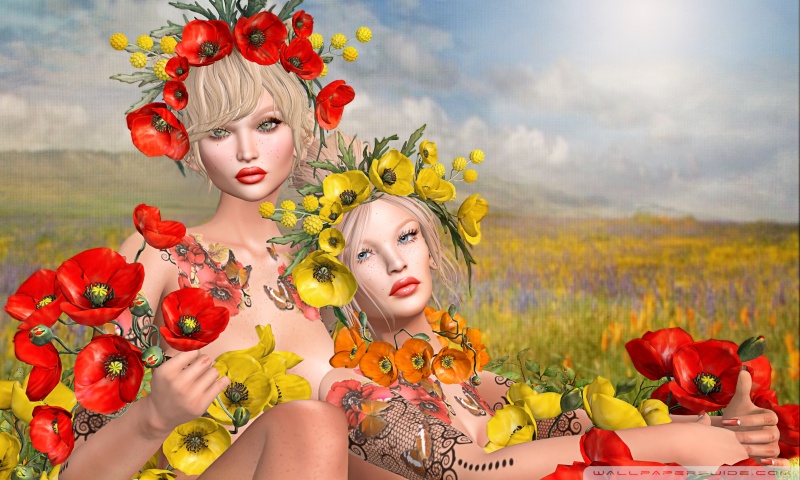 Download Second Life Video Game, Girls, Poppies 4K UHD Wallpaper