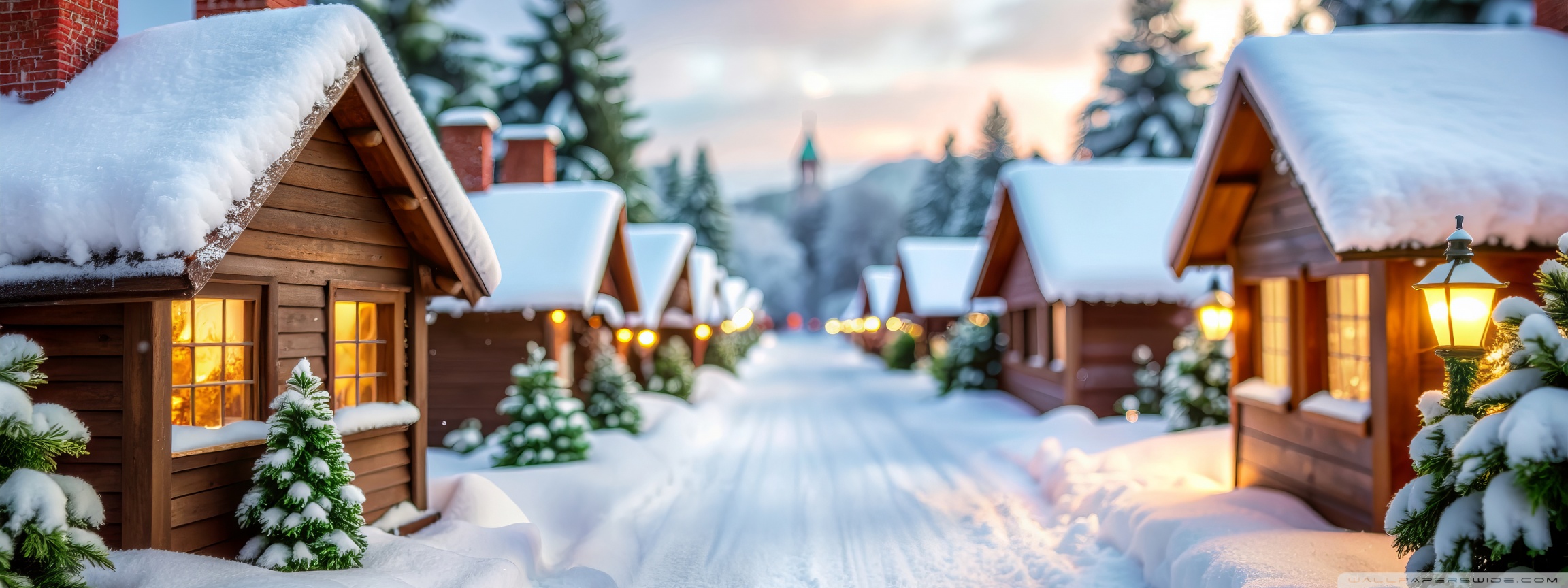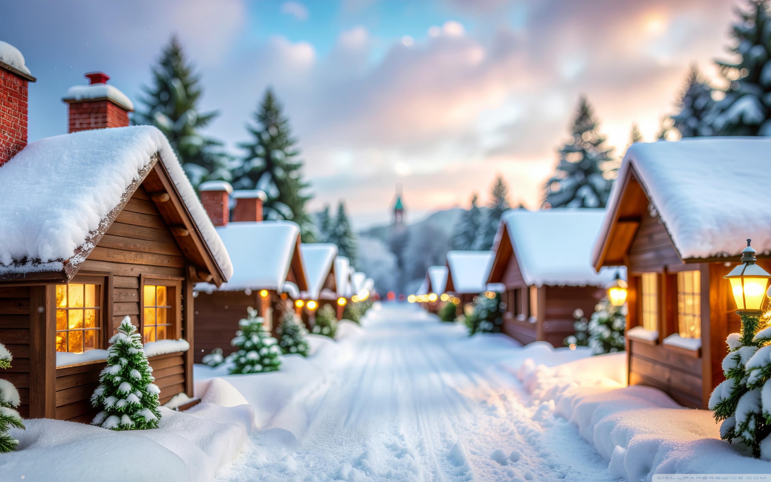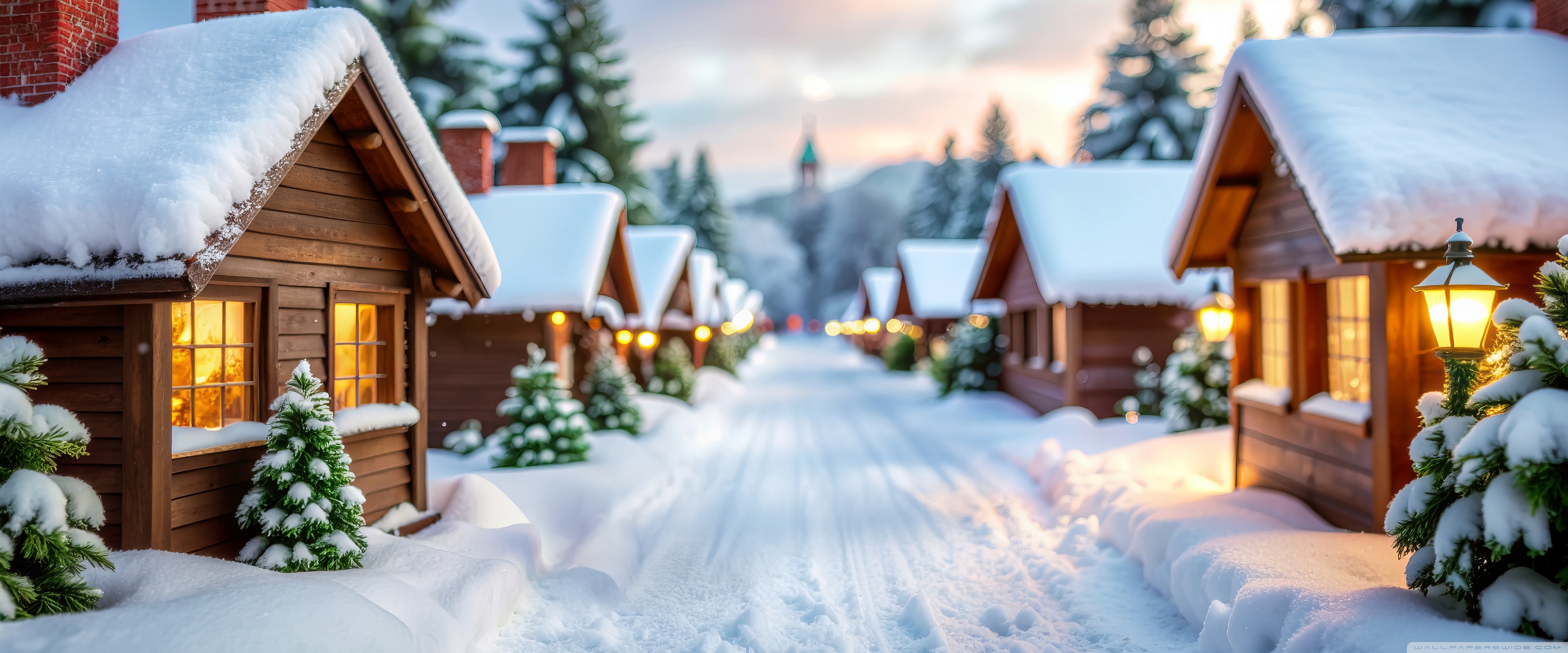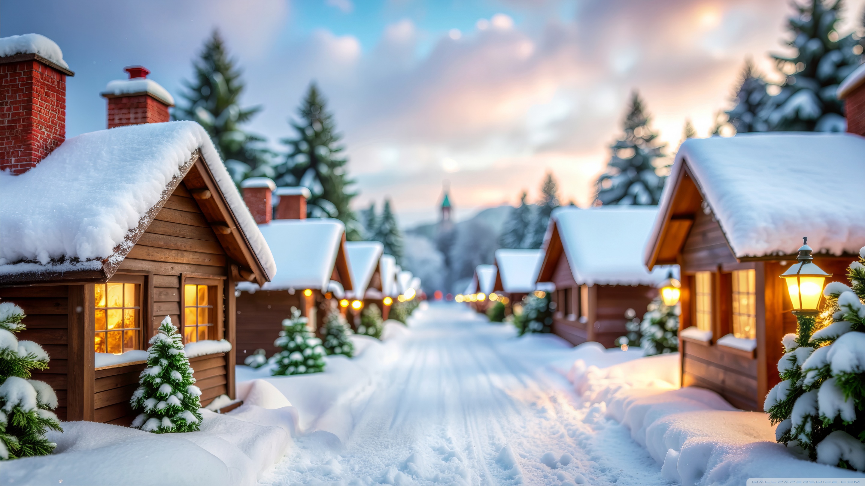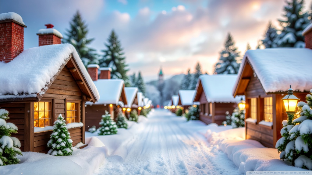Download Serenity in the Snow-Covered Village 4K UHD Wallpaper