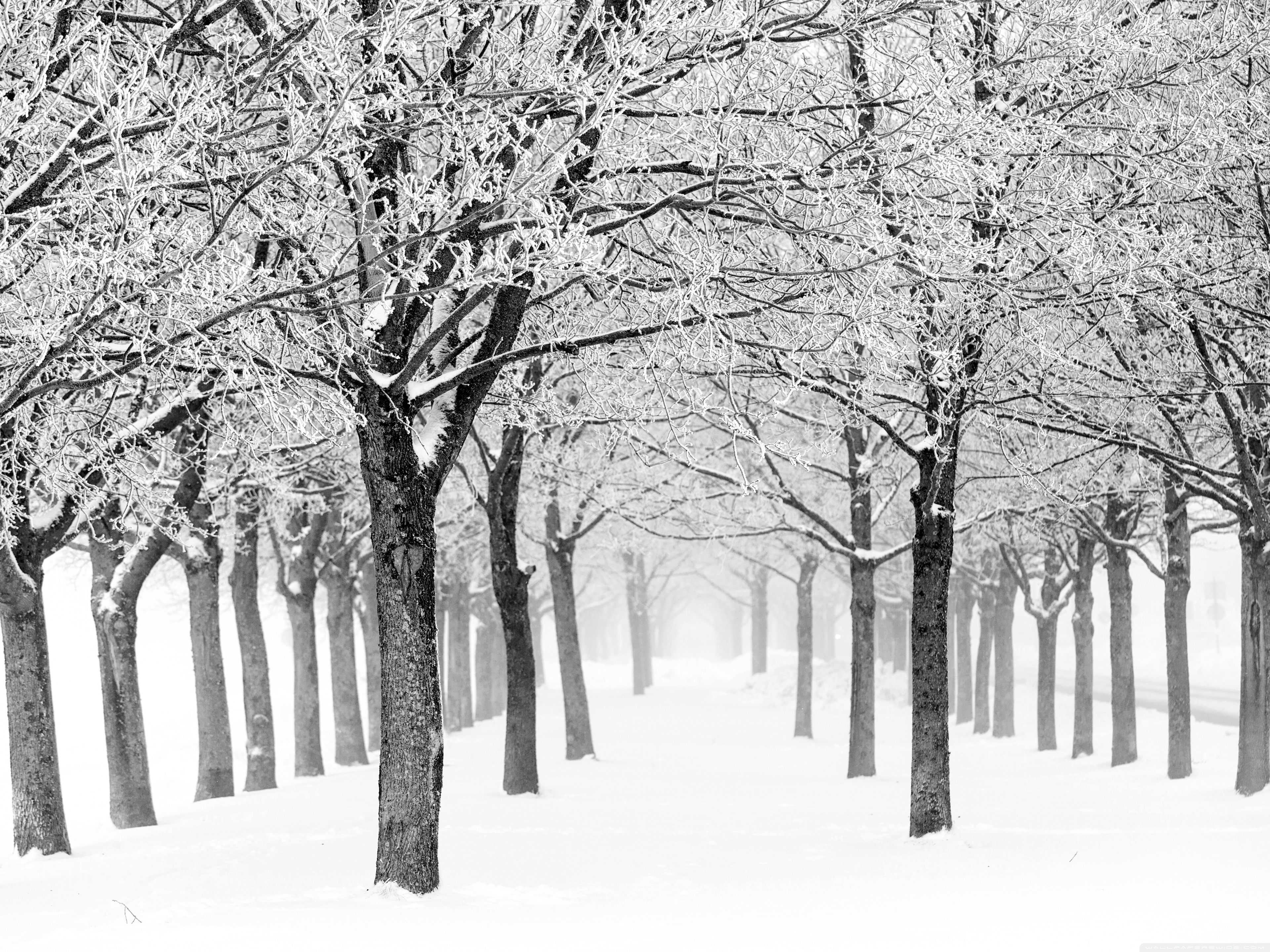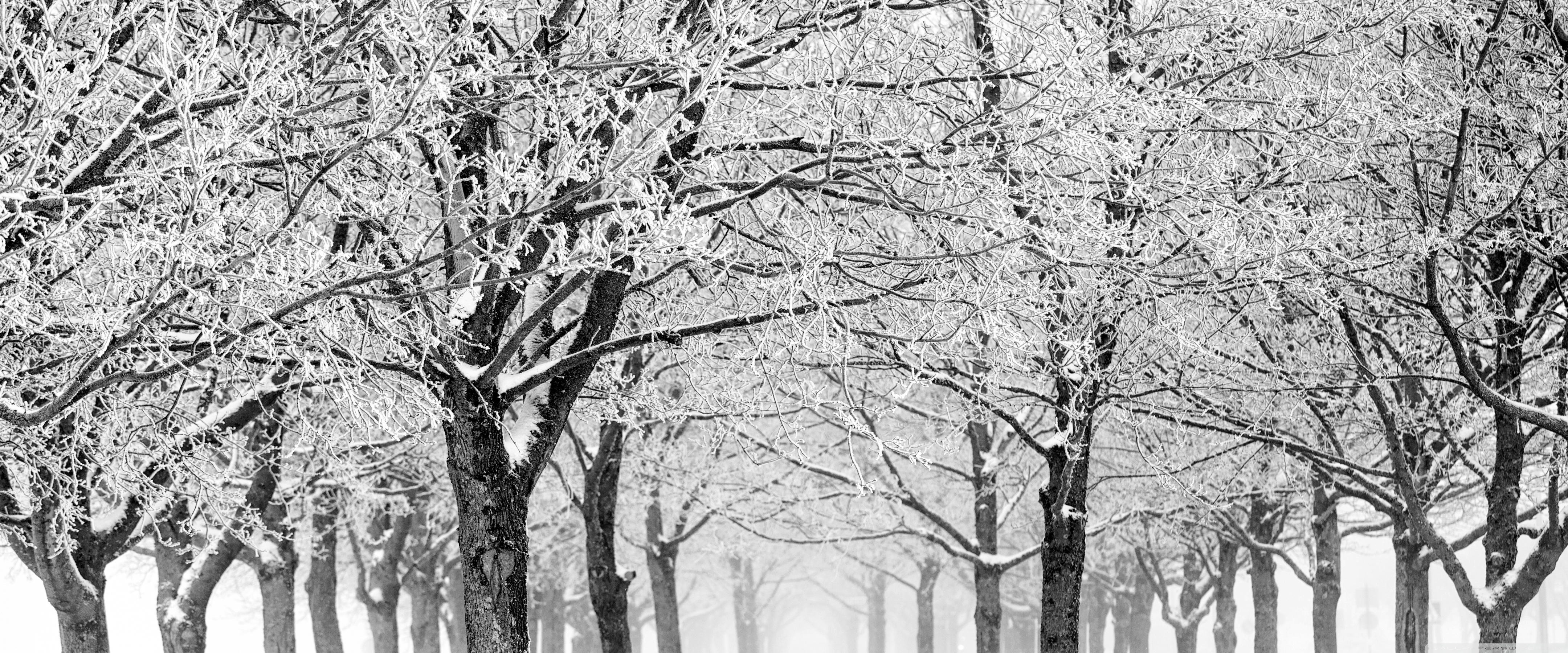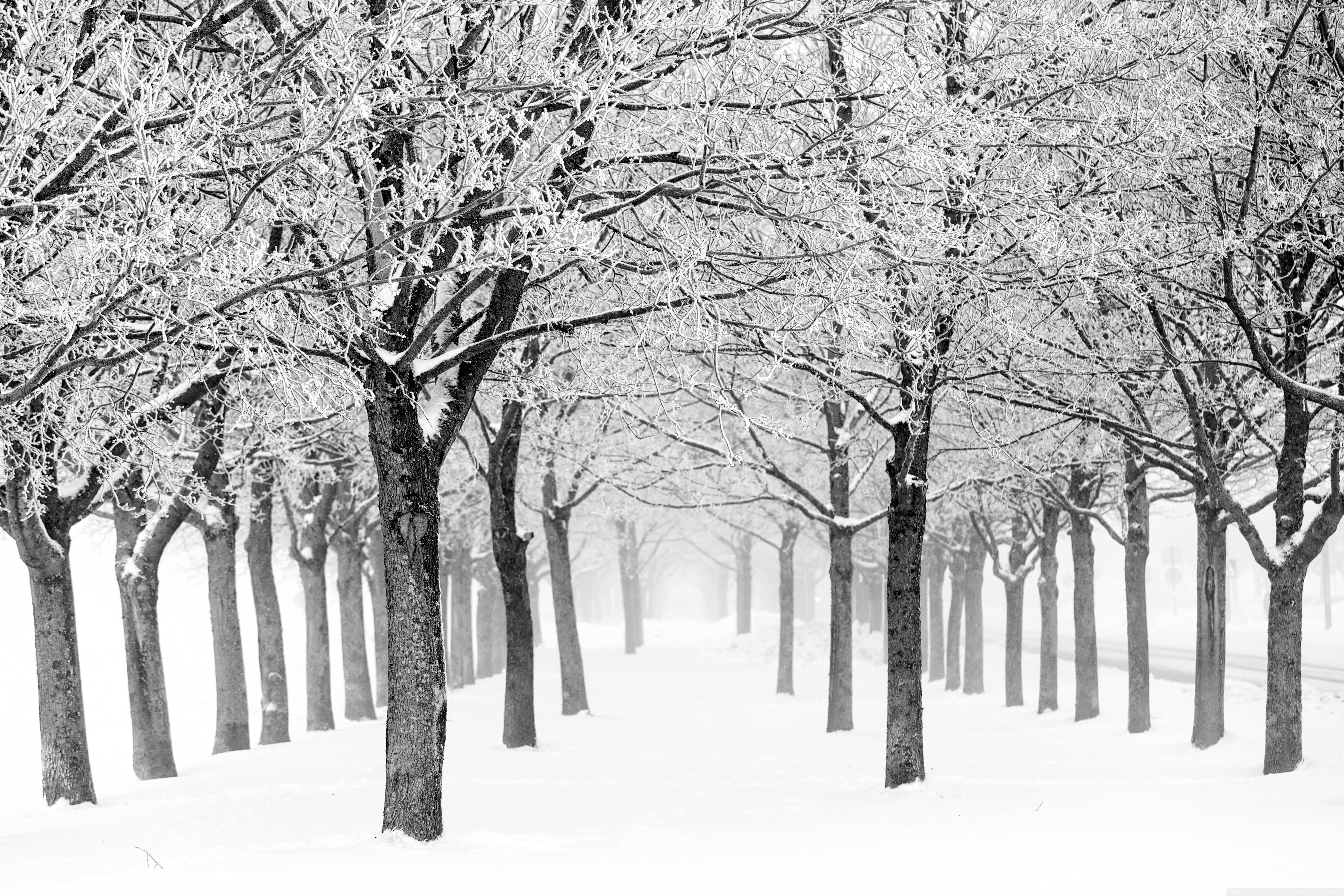 Download Silent Winter Scene, Trees with Rime, Fog,... 4K UHD Wallpaper