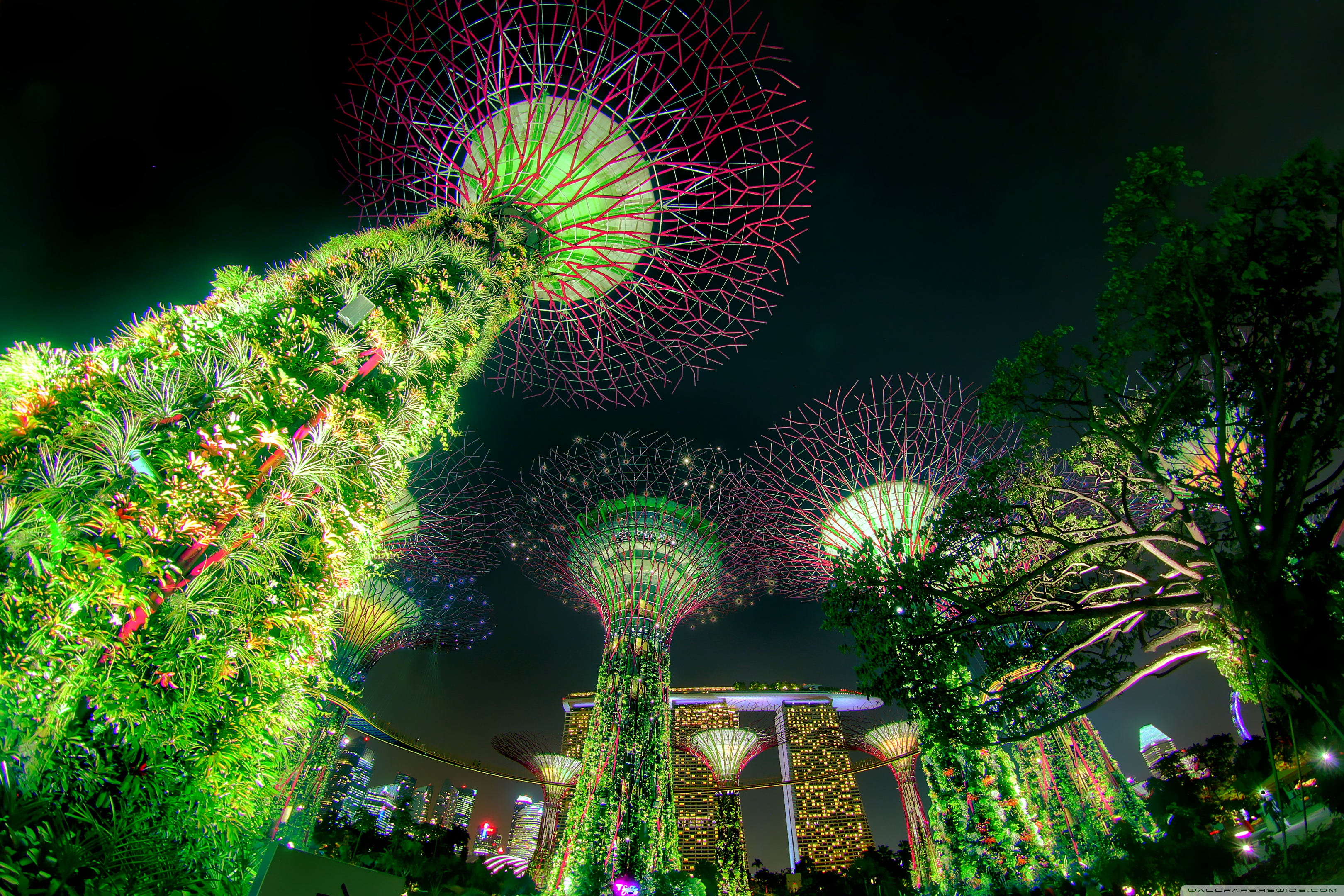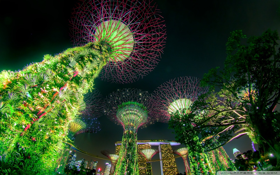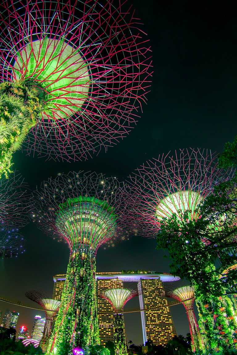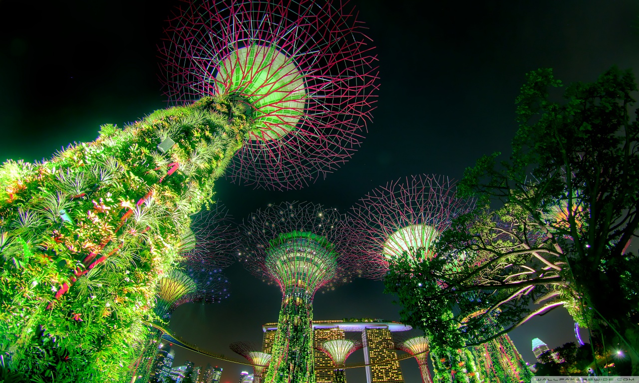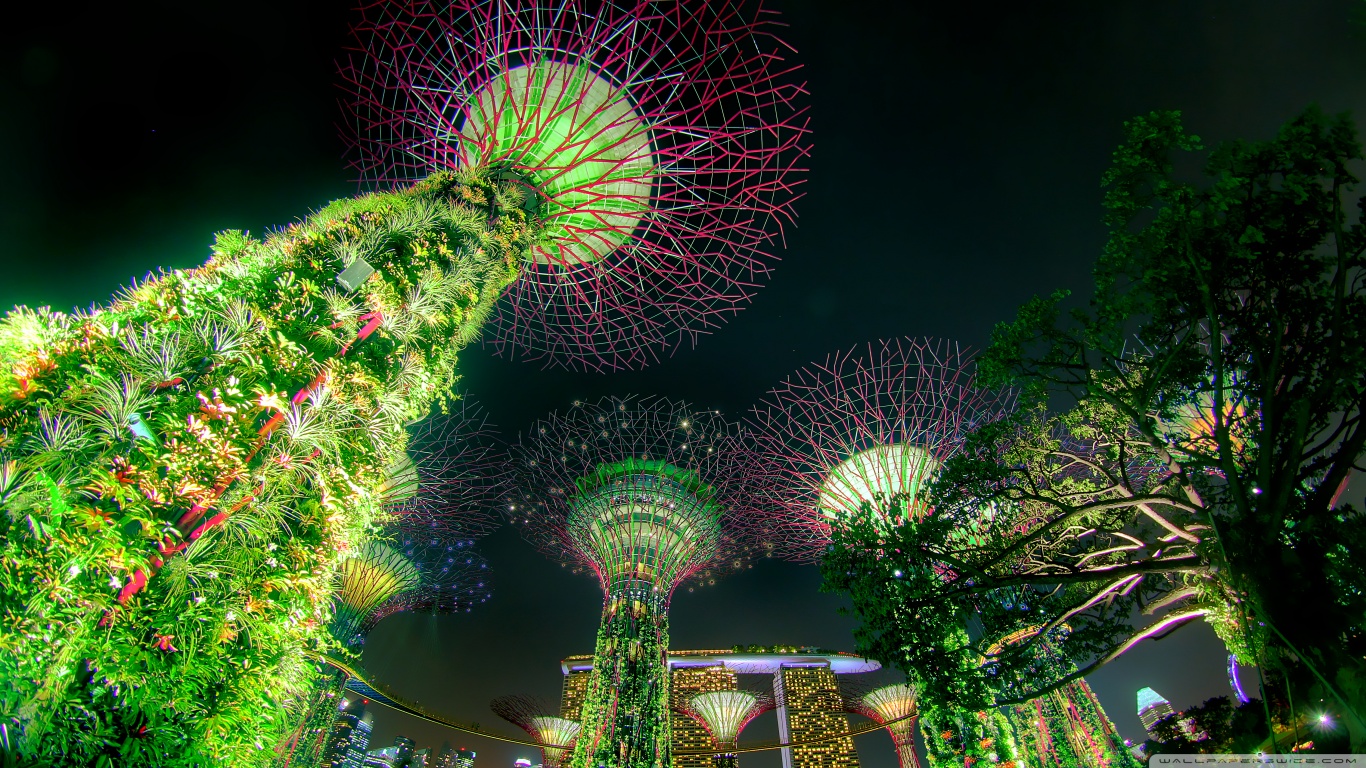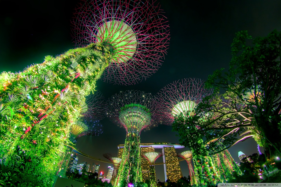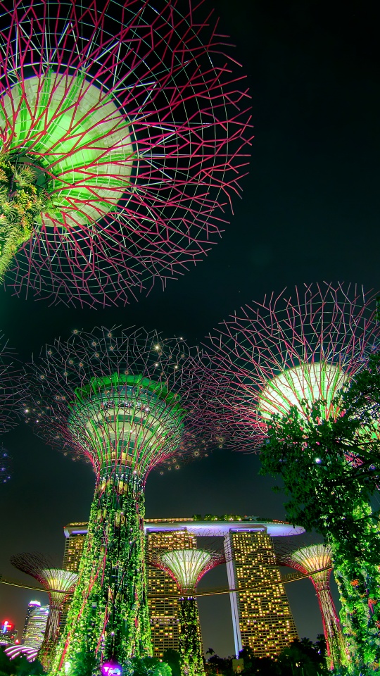 Download Singapore Supertree Grove Green Night Lights 4K UHD Wallpaper
