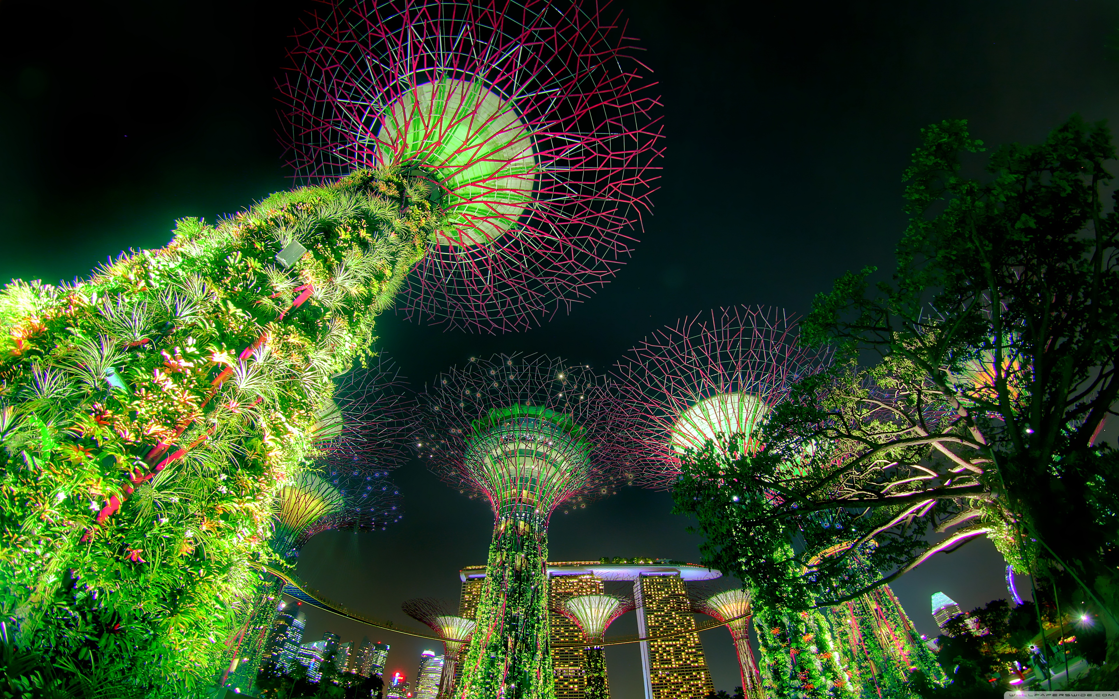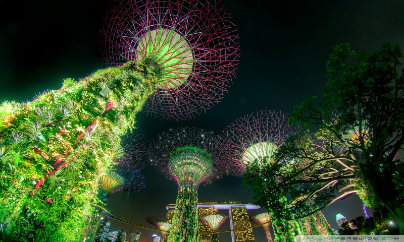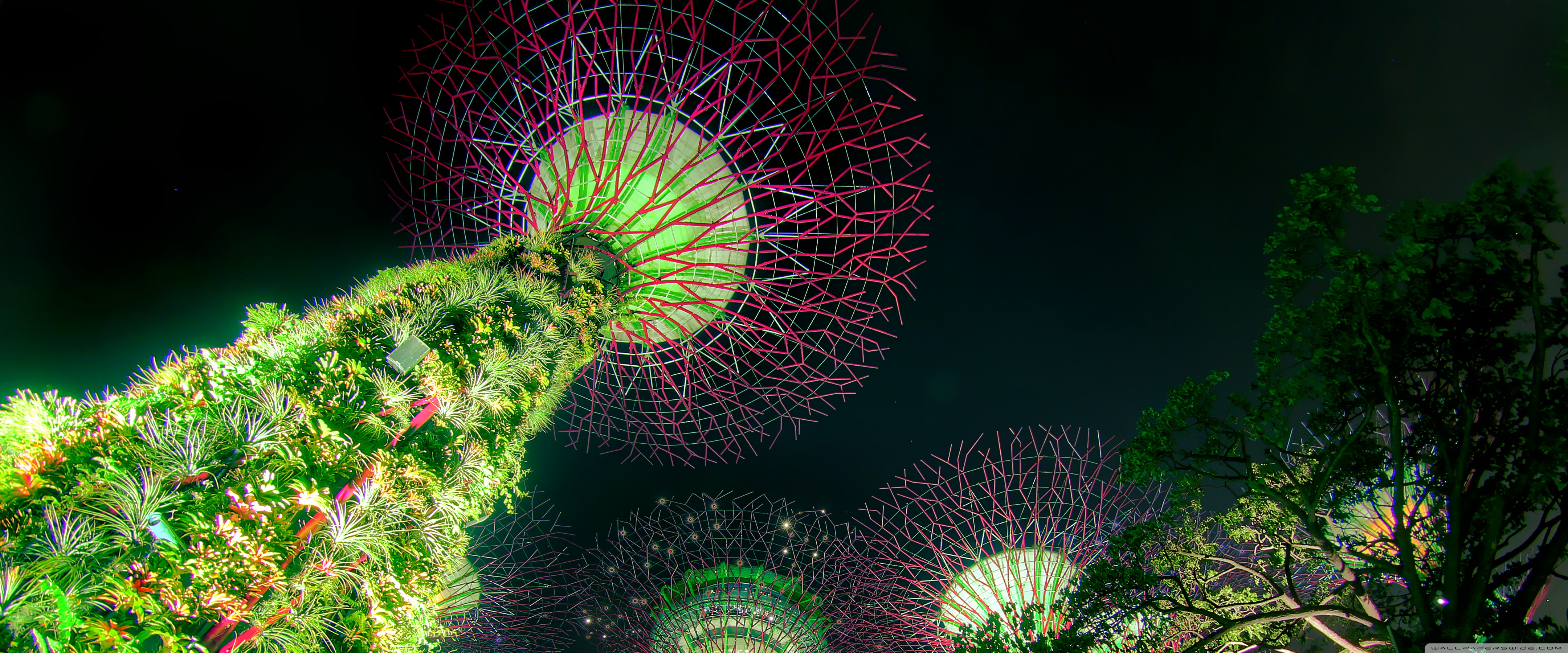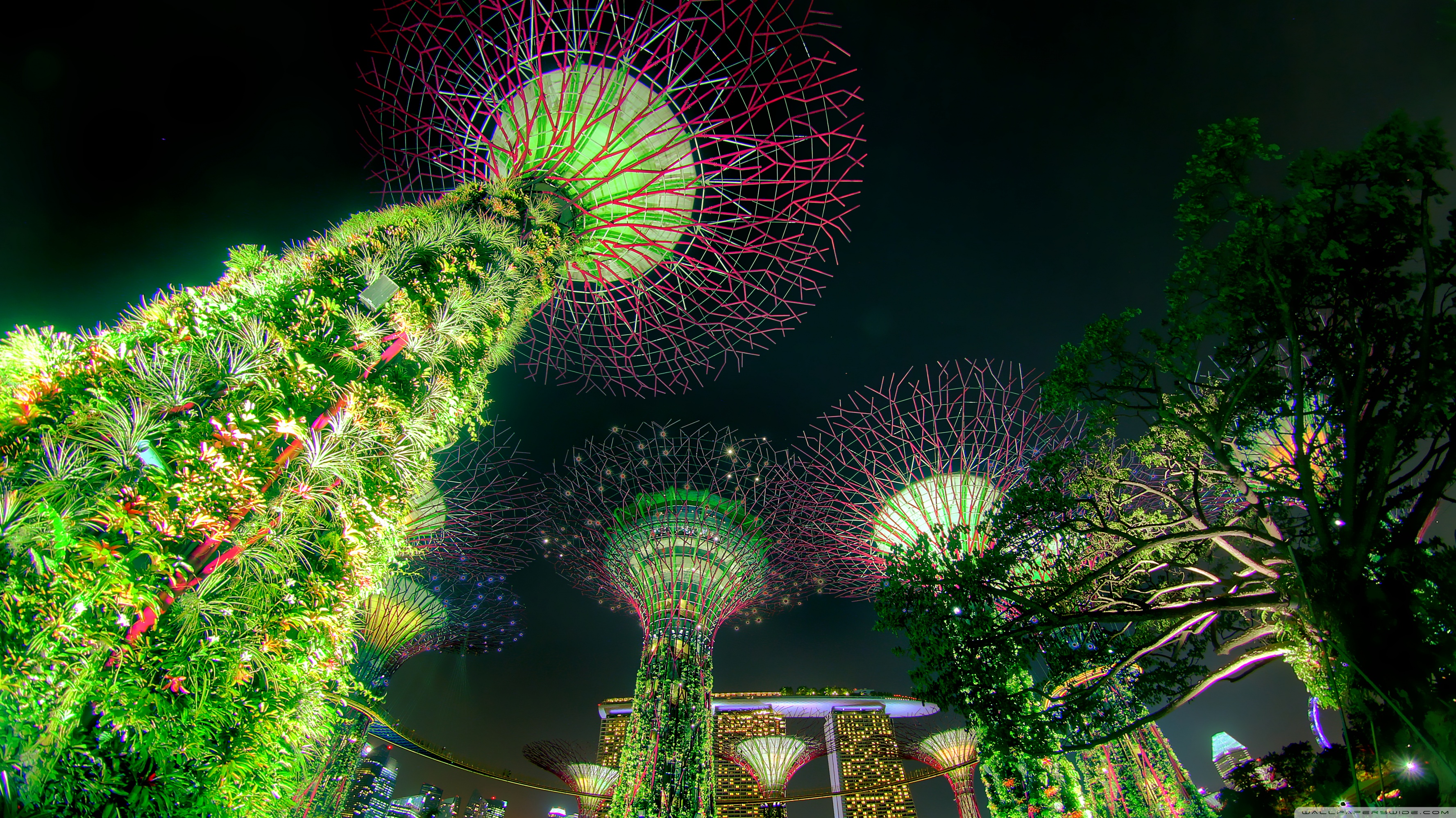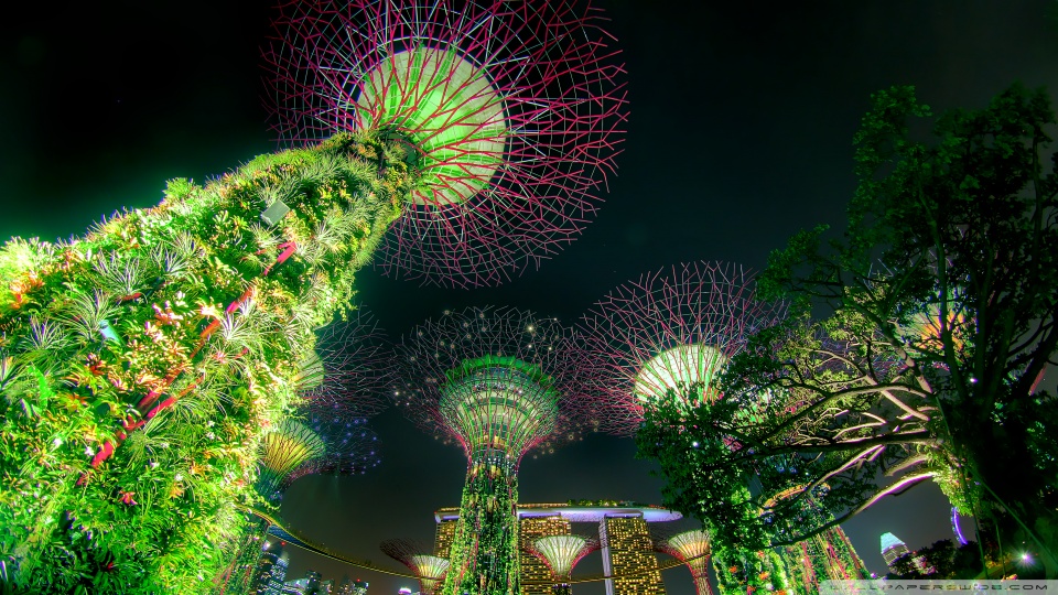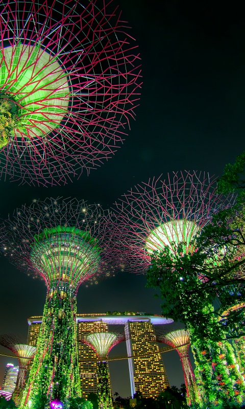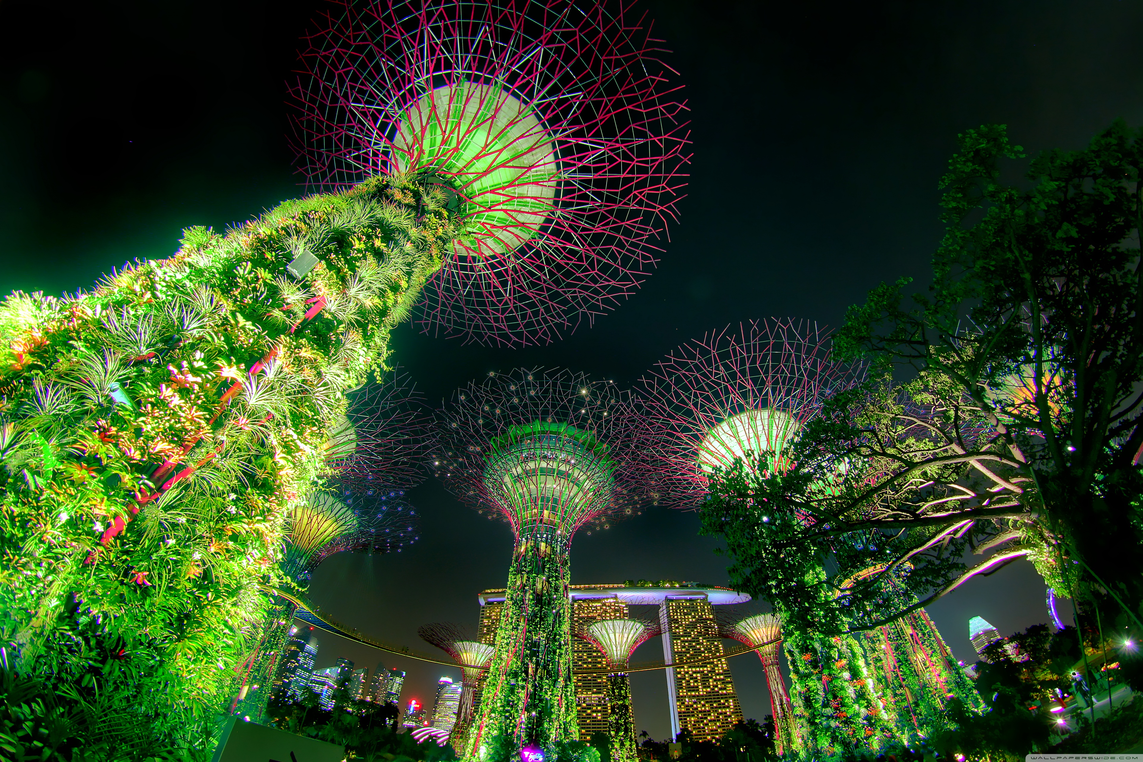 Download Singapore Supertree Grove Green Night Lights 4K UHD Wallpaper