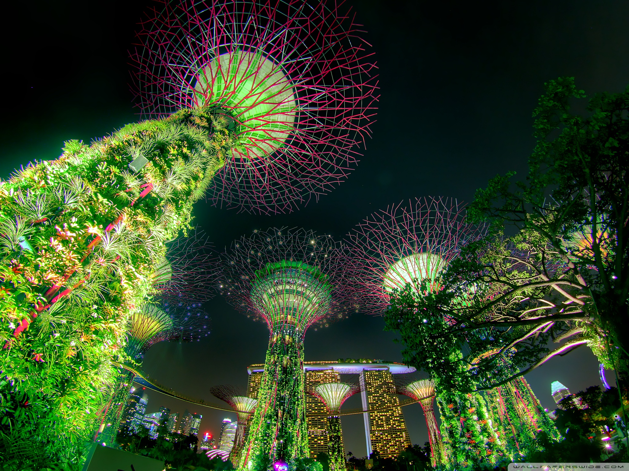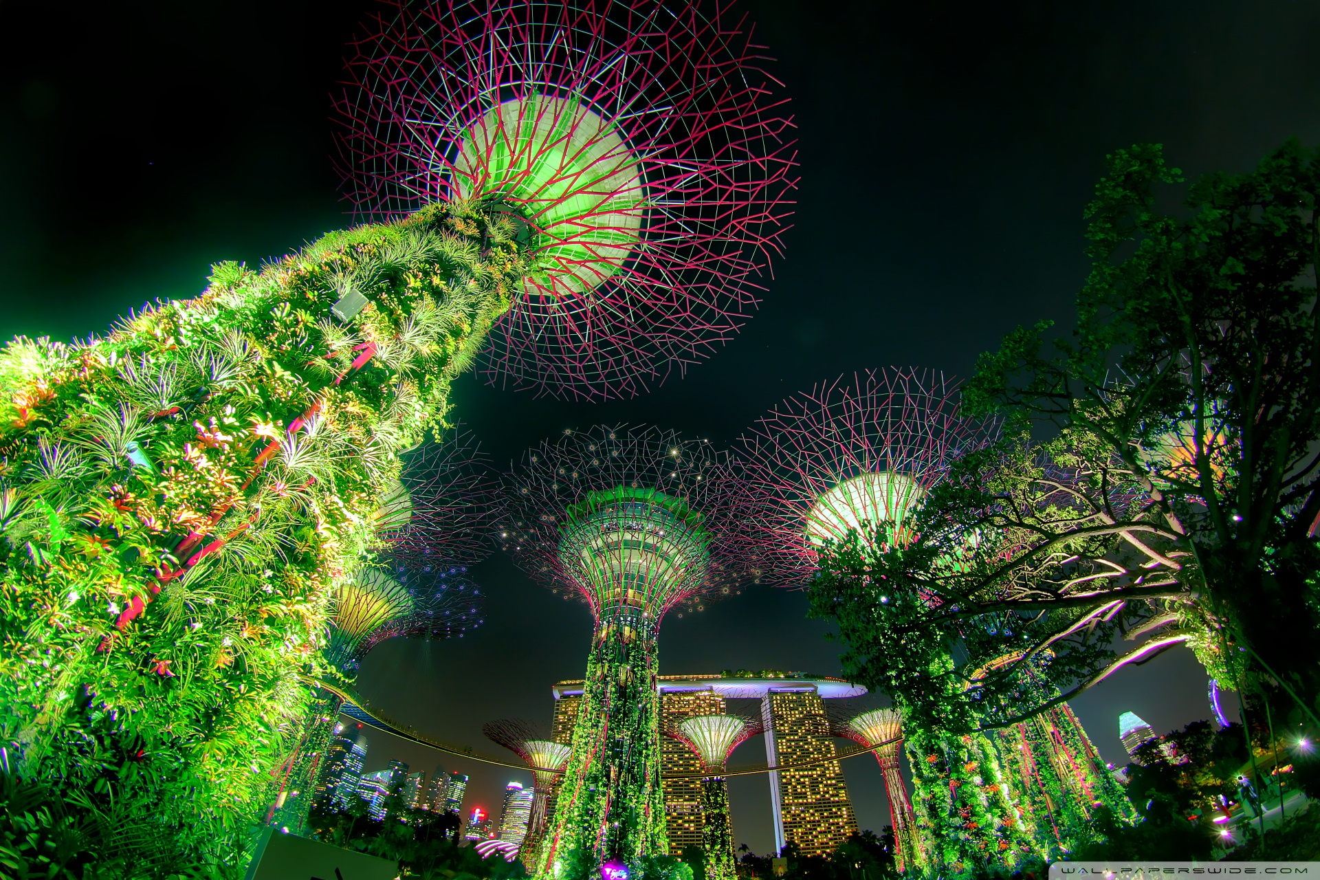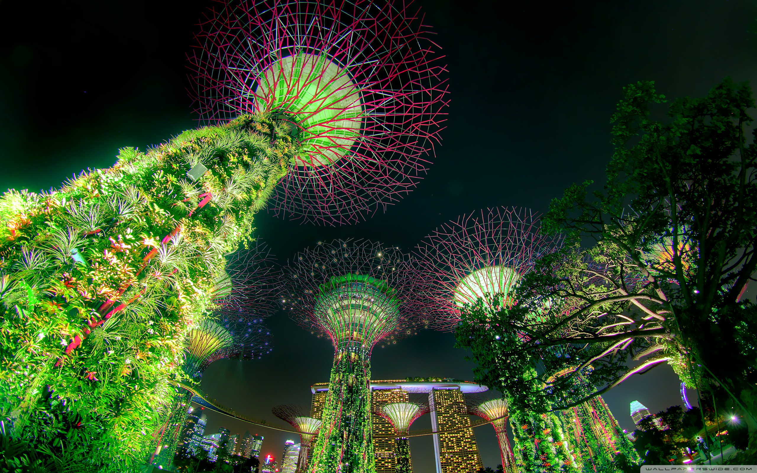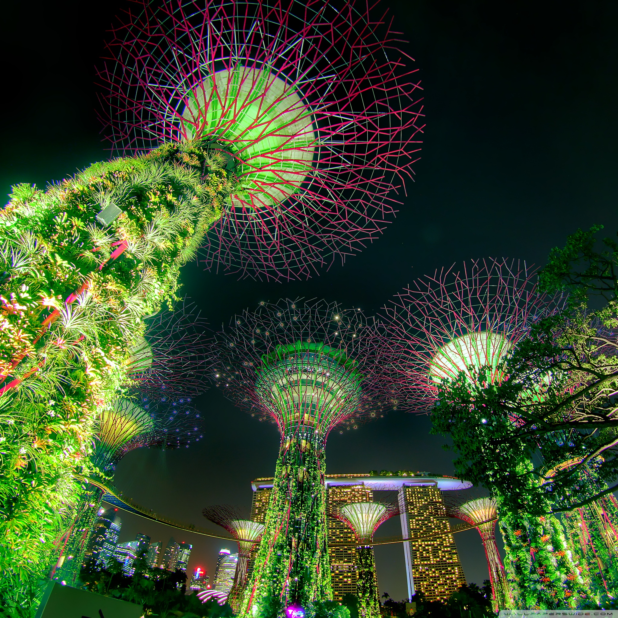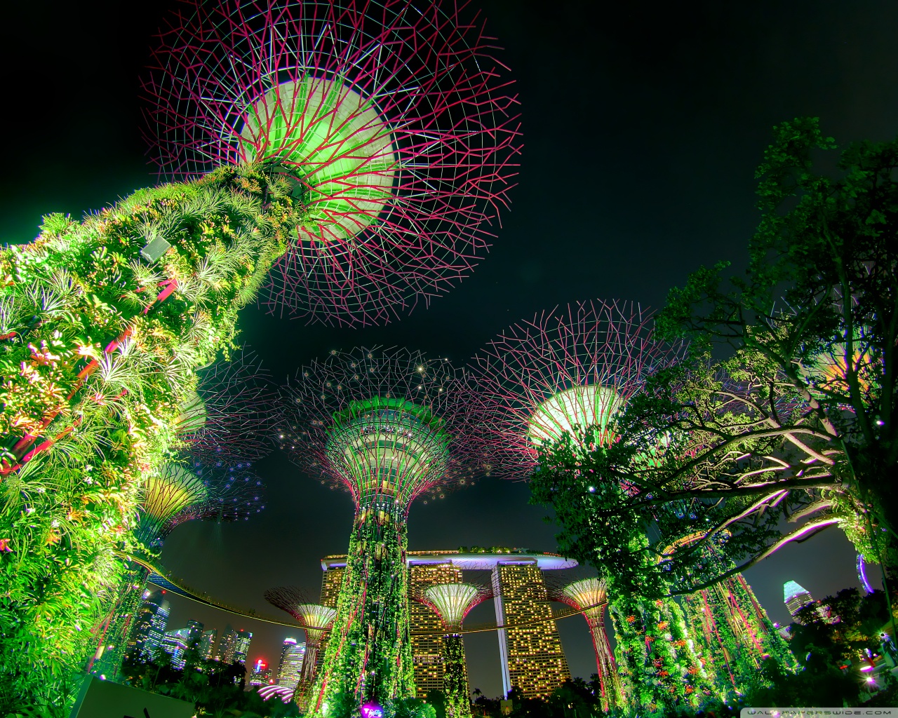 Download Singapore Supertree Grove Green Night Lights 4K UHD Wallpaper