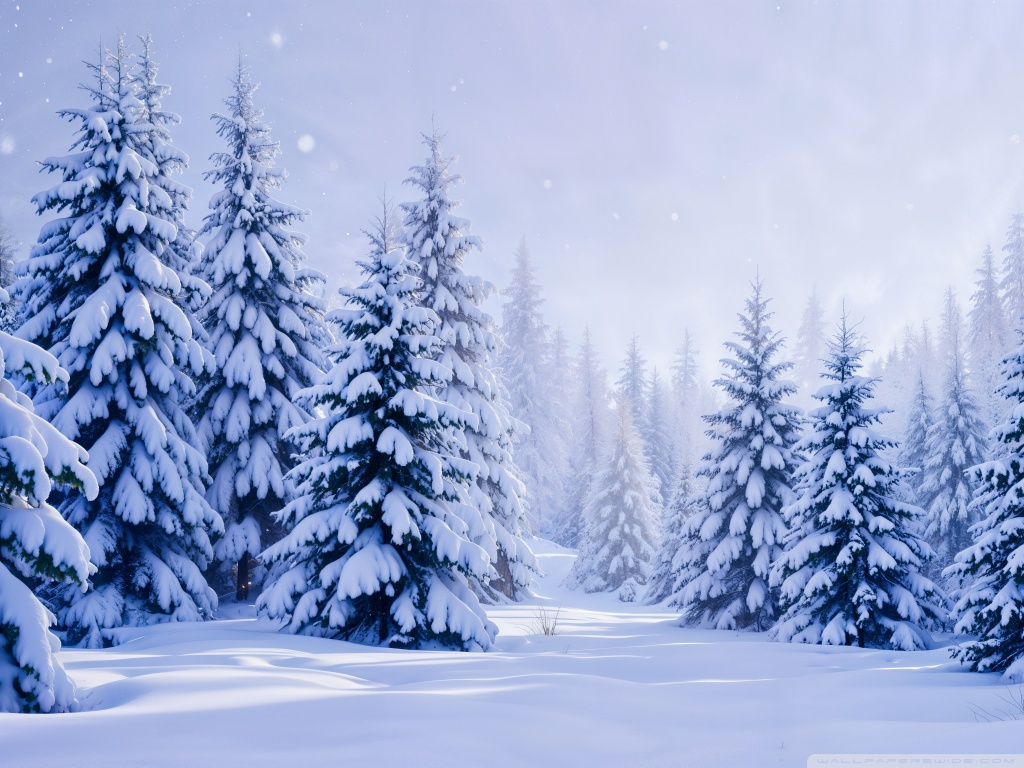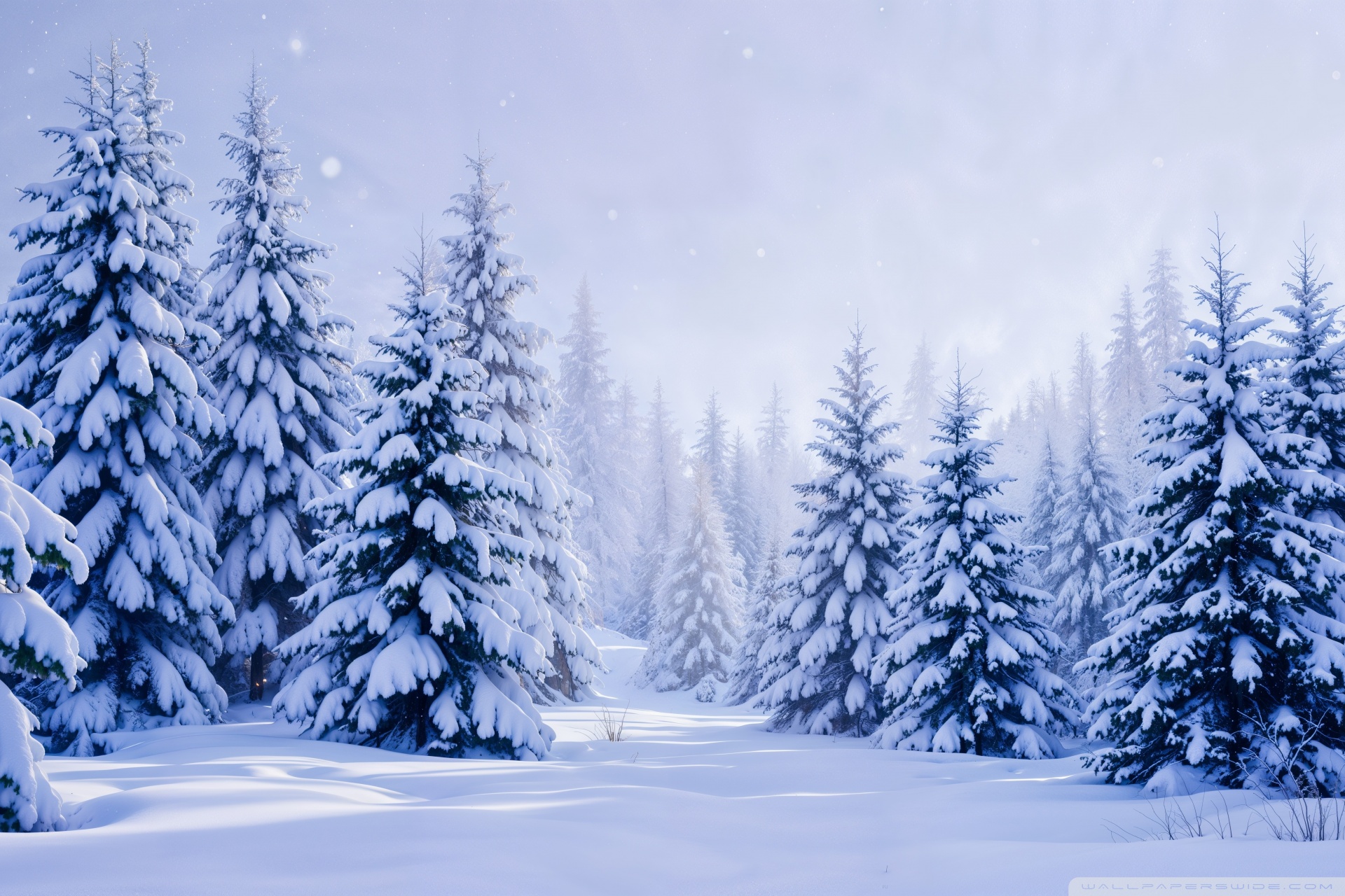 Download Snow Covered Mountain Forest 4K UHD Wallpaper