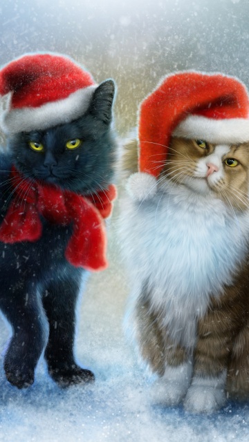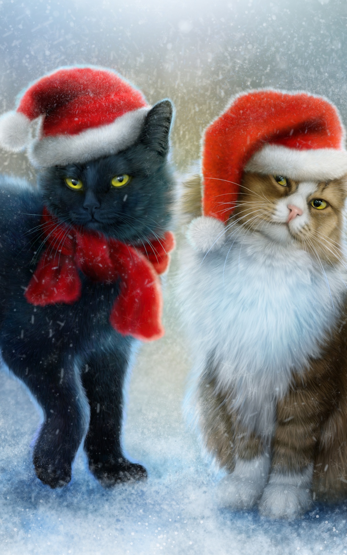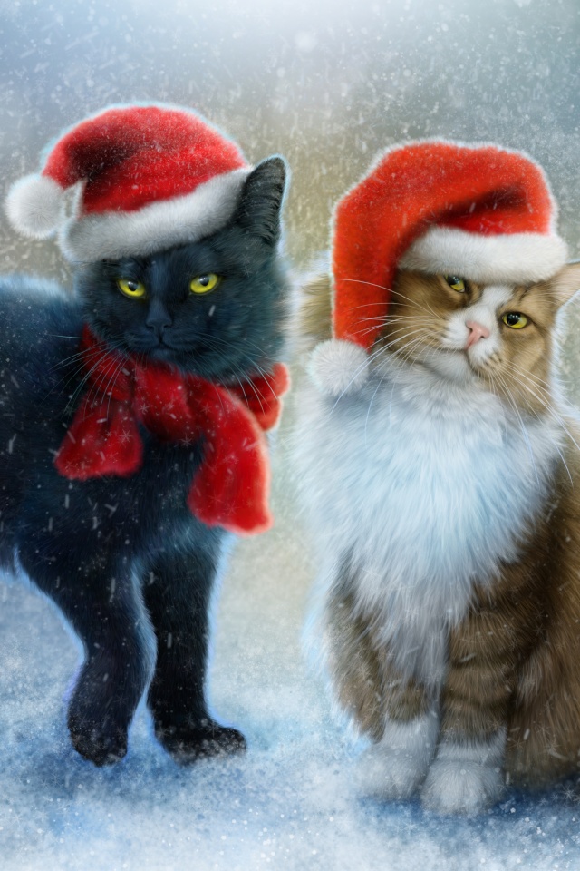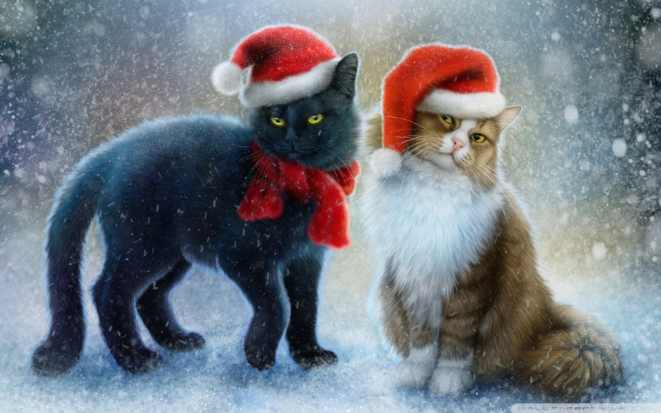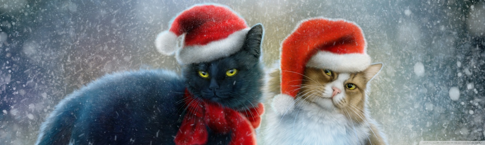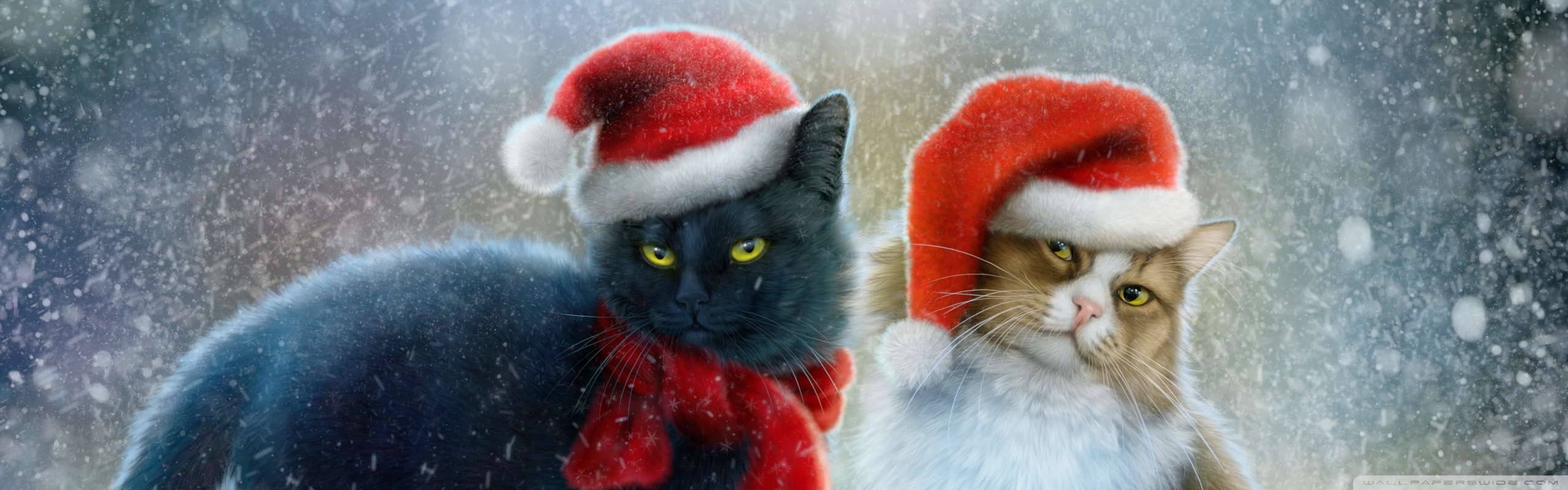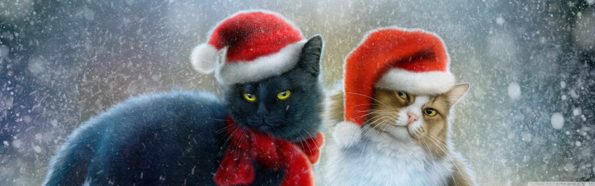 Download Snowy Christmas, Cats Wearing Santa Hats 4K UHD Wallpaper