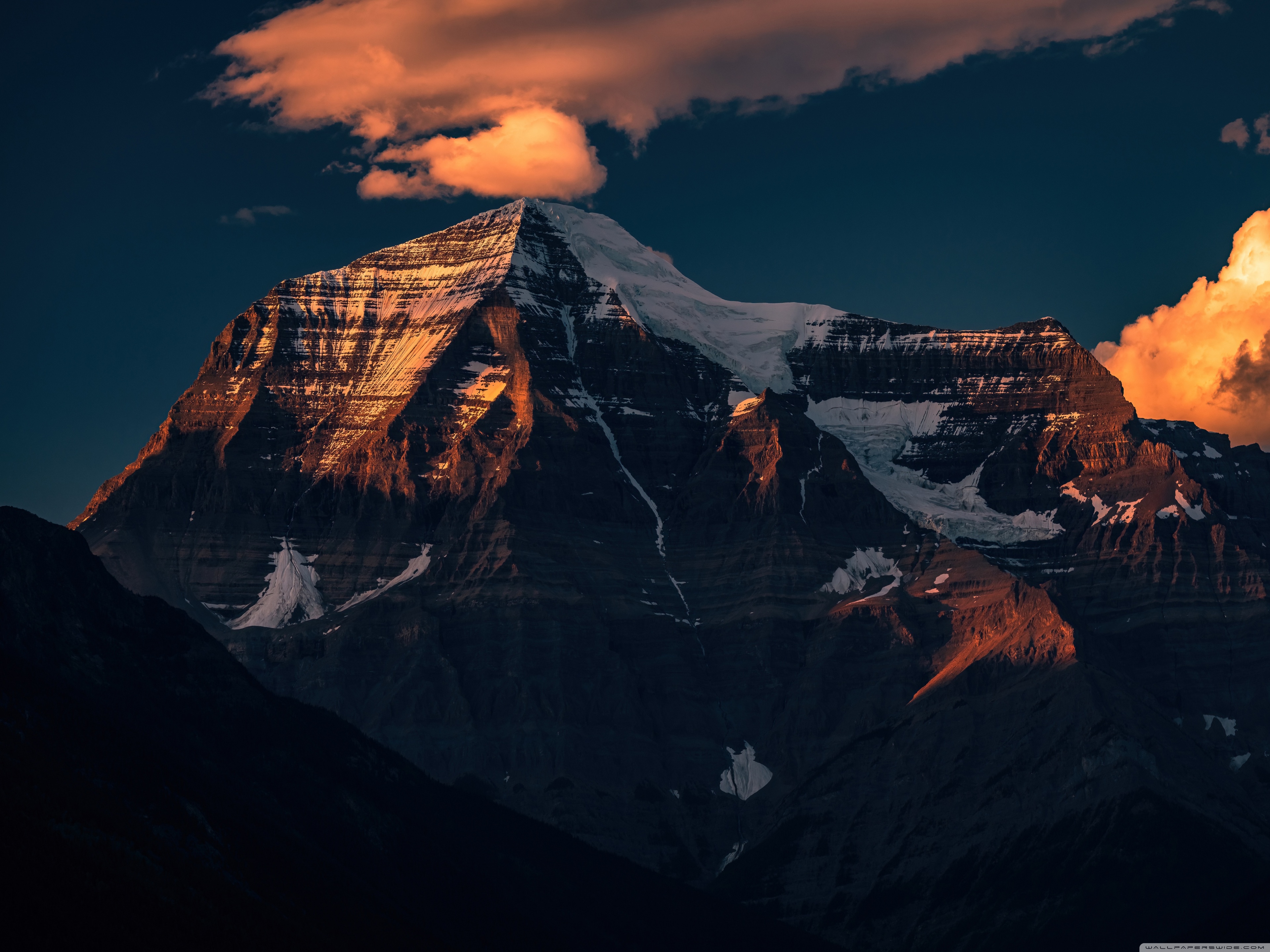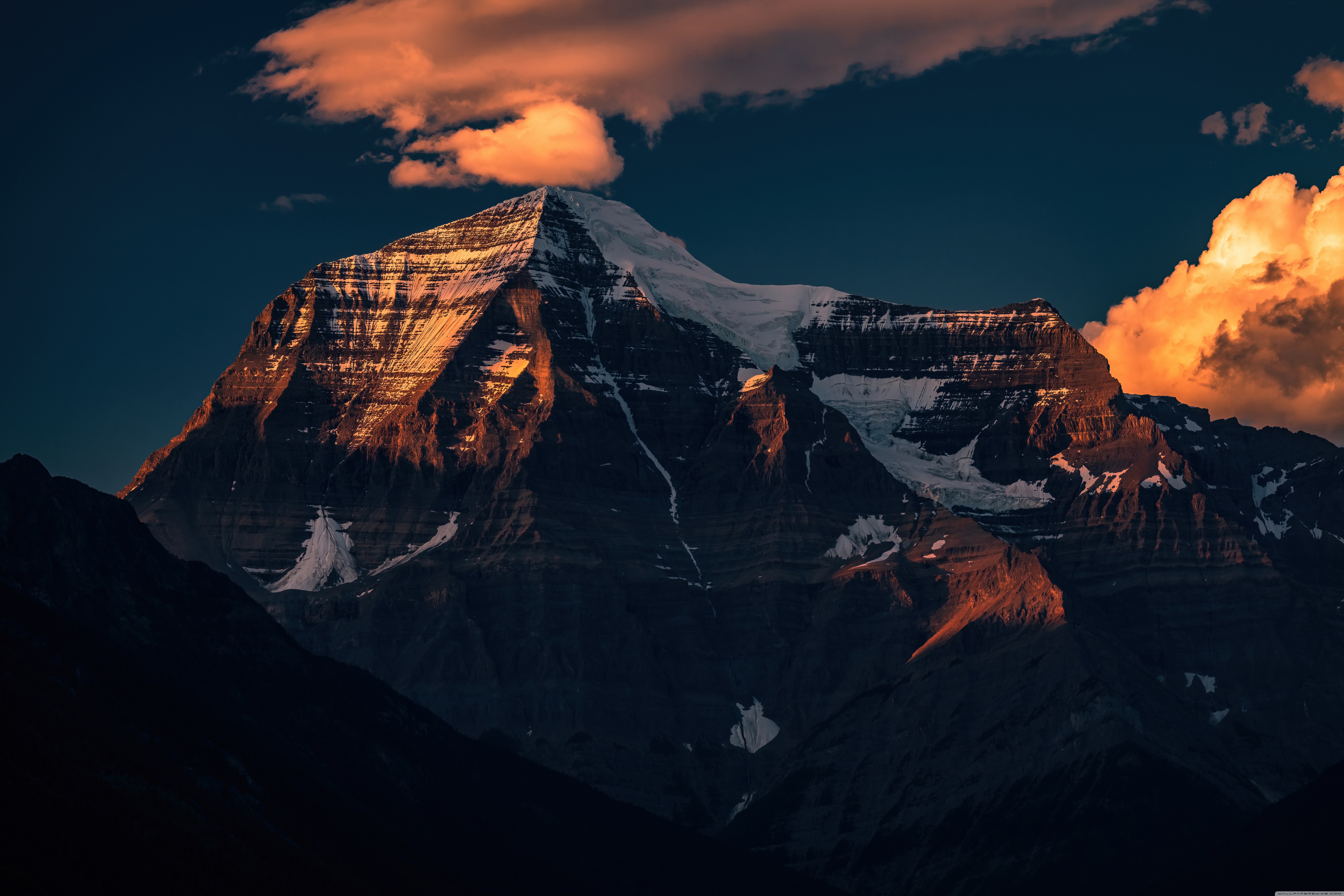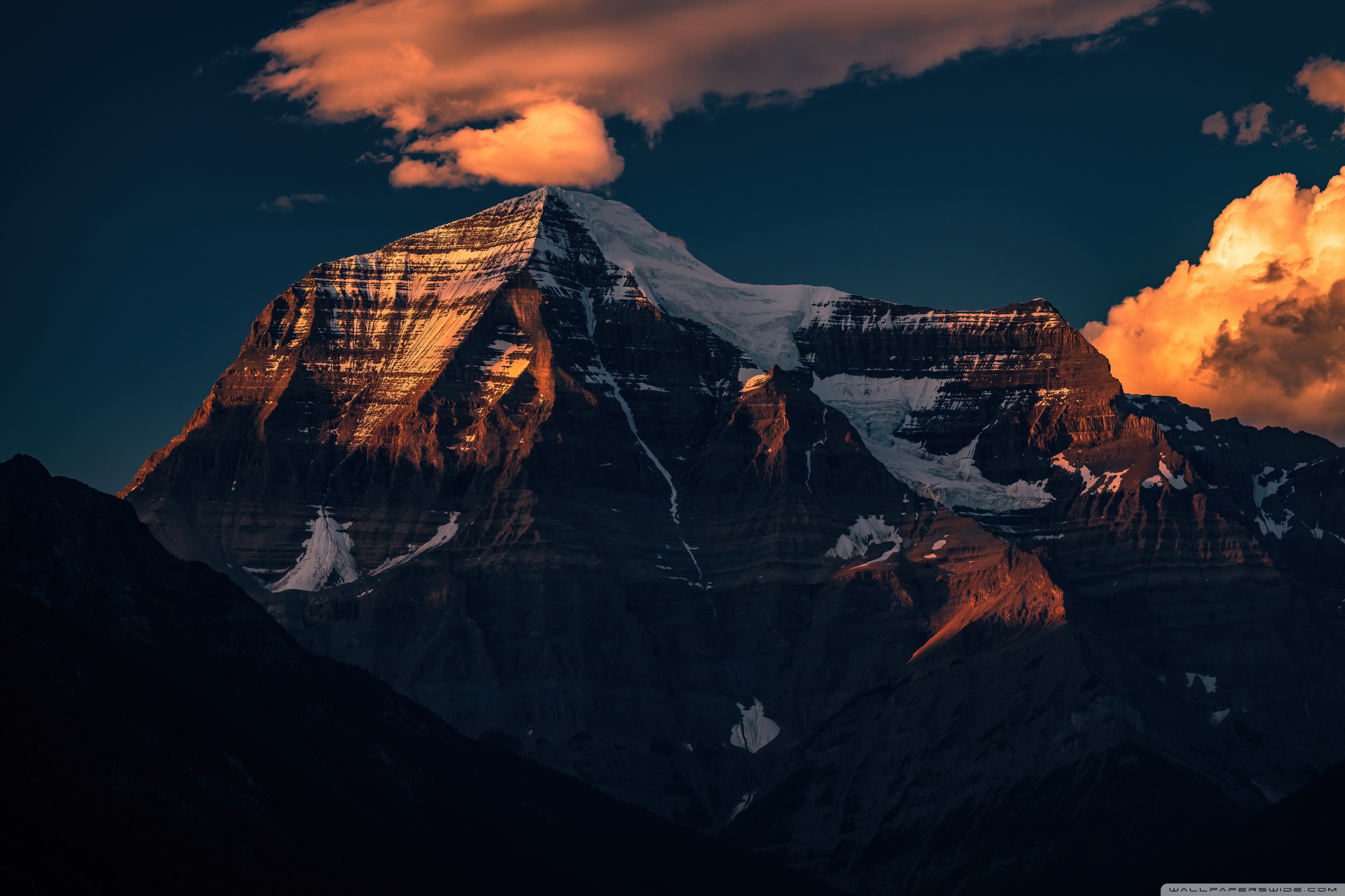Download Snowy Mountain Peak, Sunset 4K UHD Wallpaper