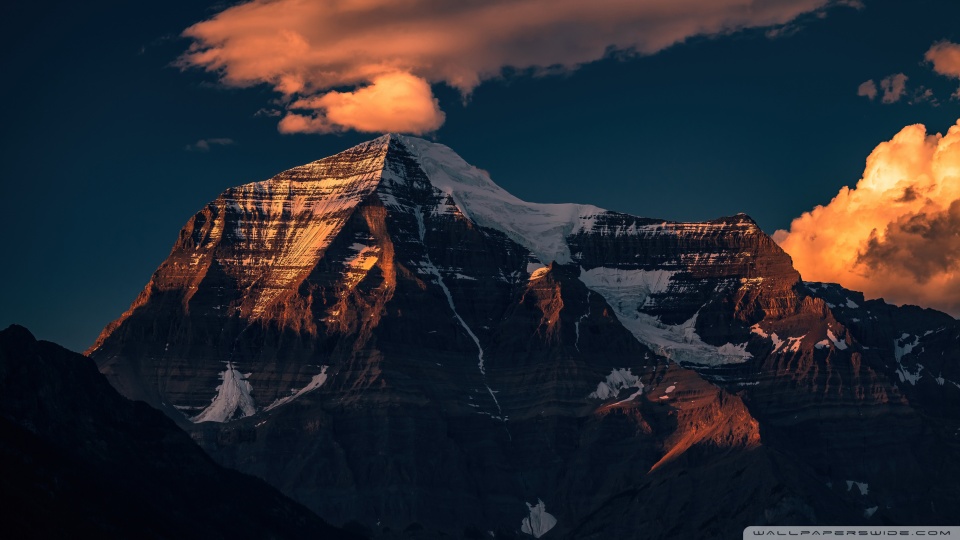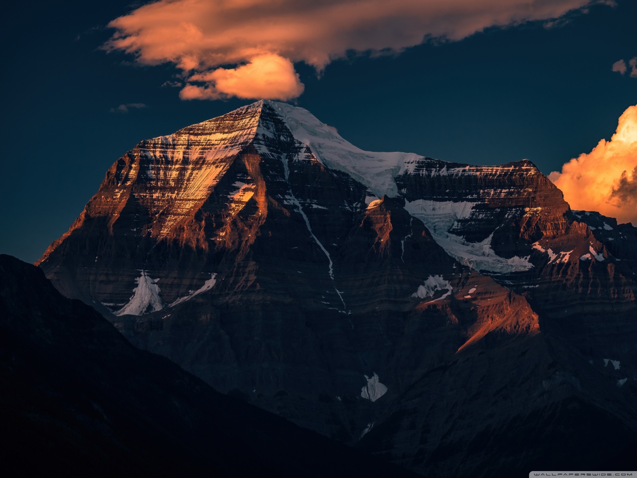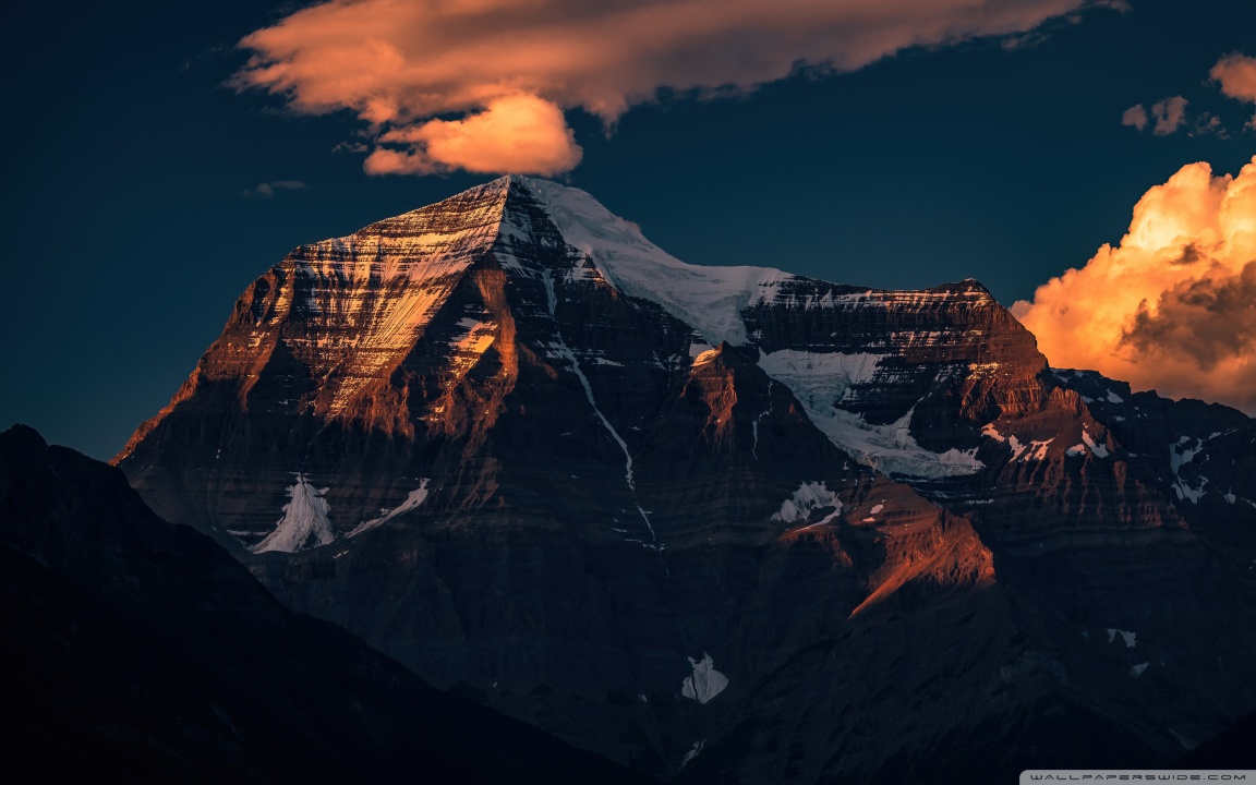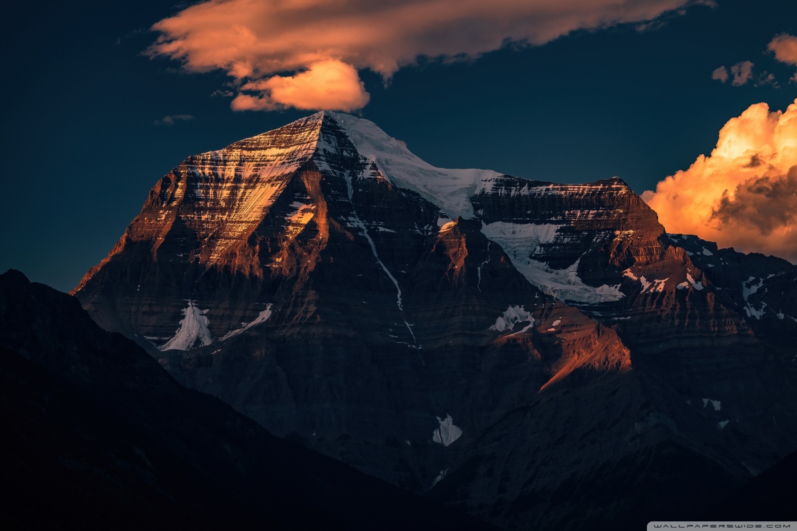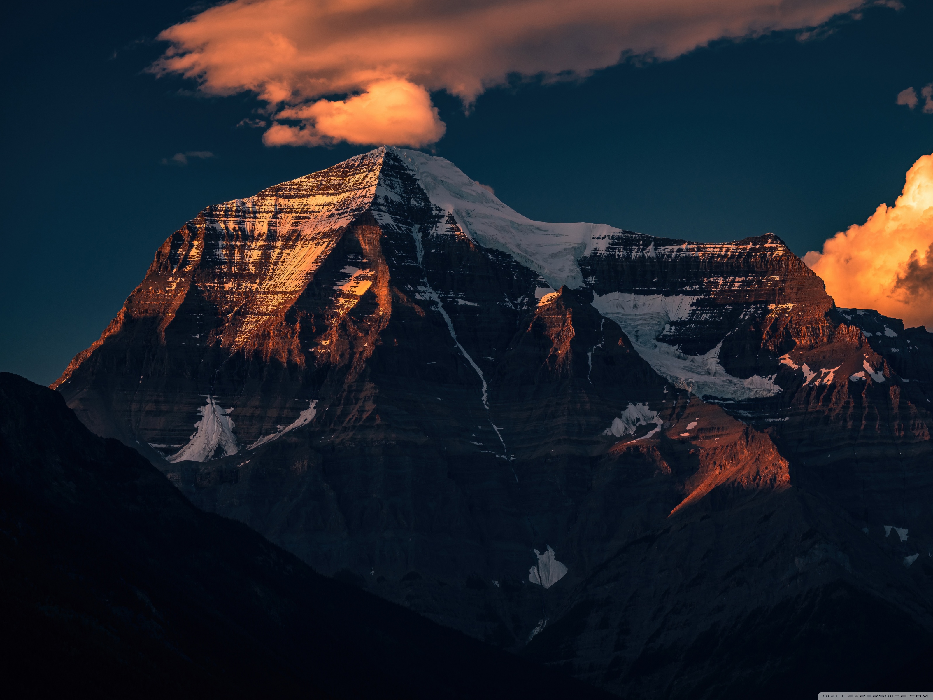 Download Snowy Mountain Peak, Sunset 4K UHD Wallpaper