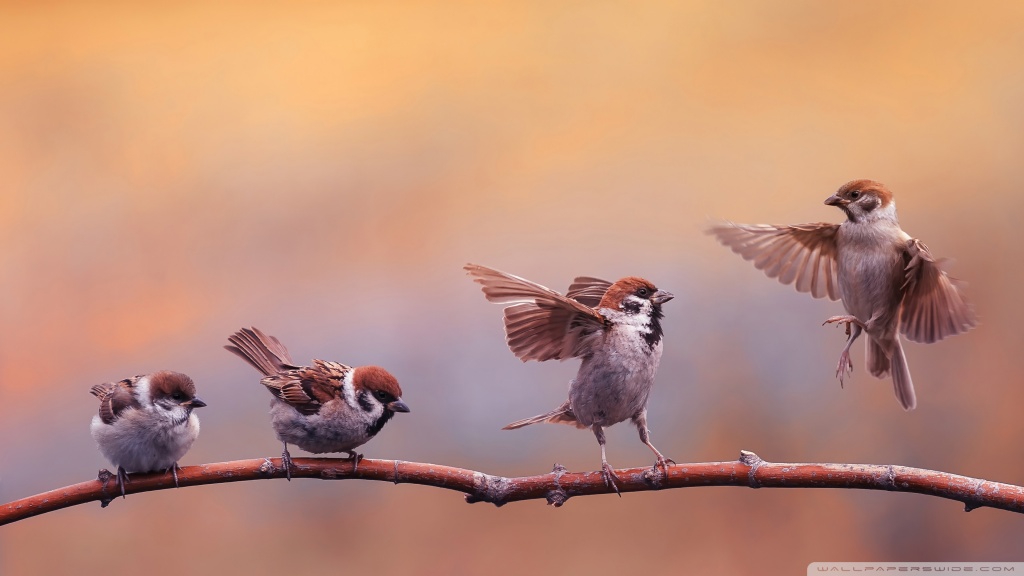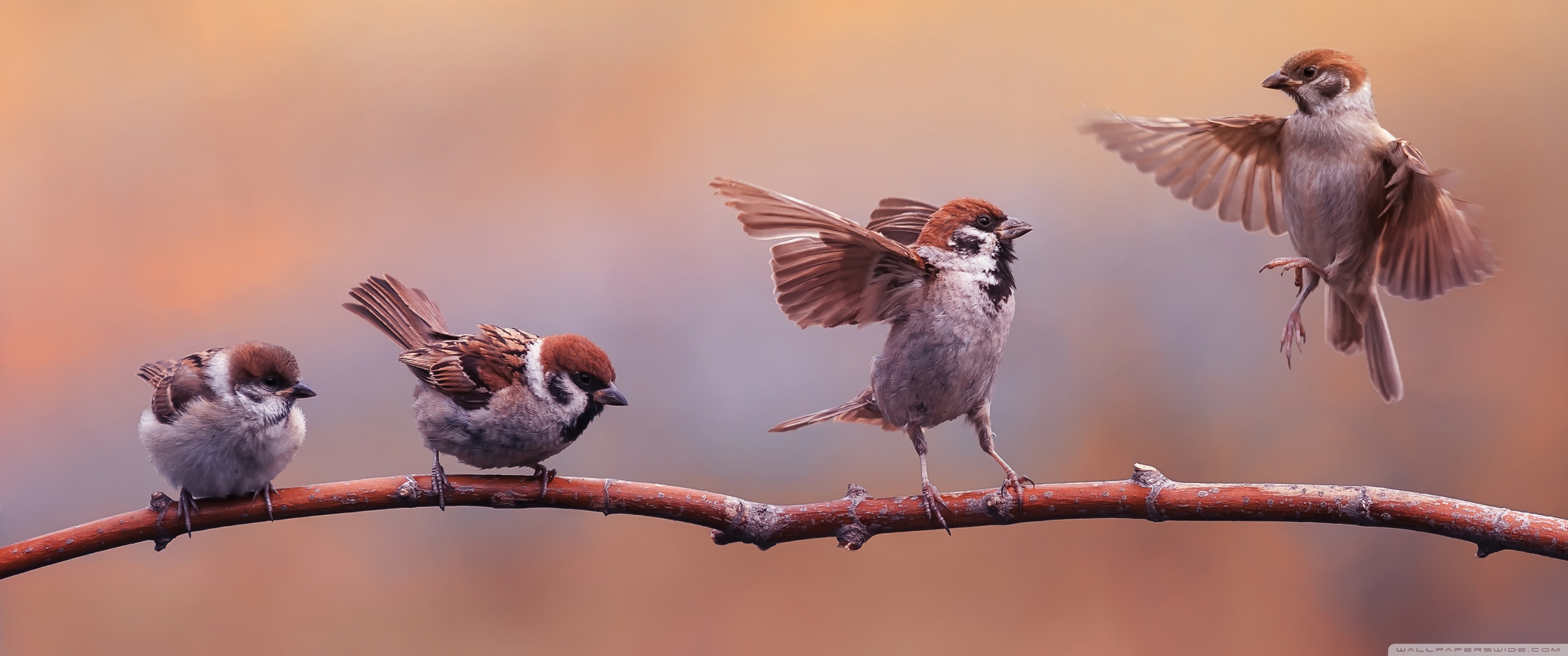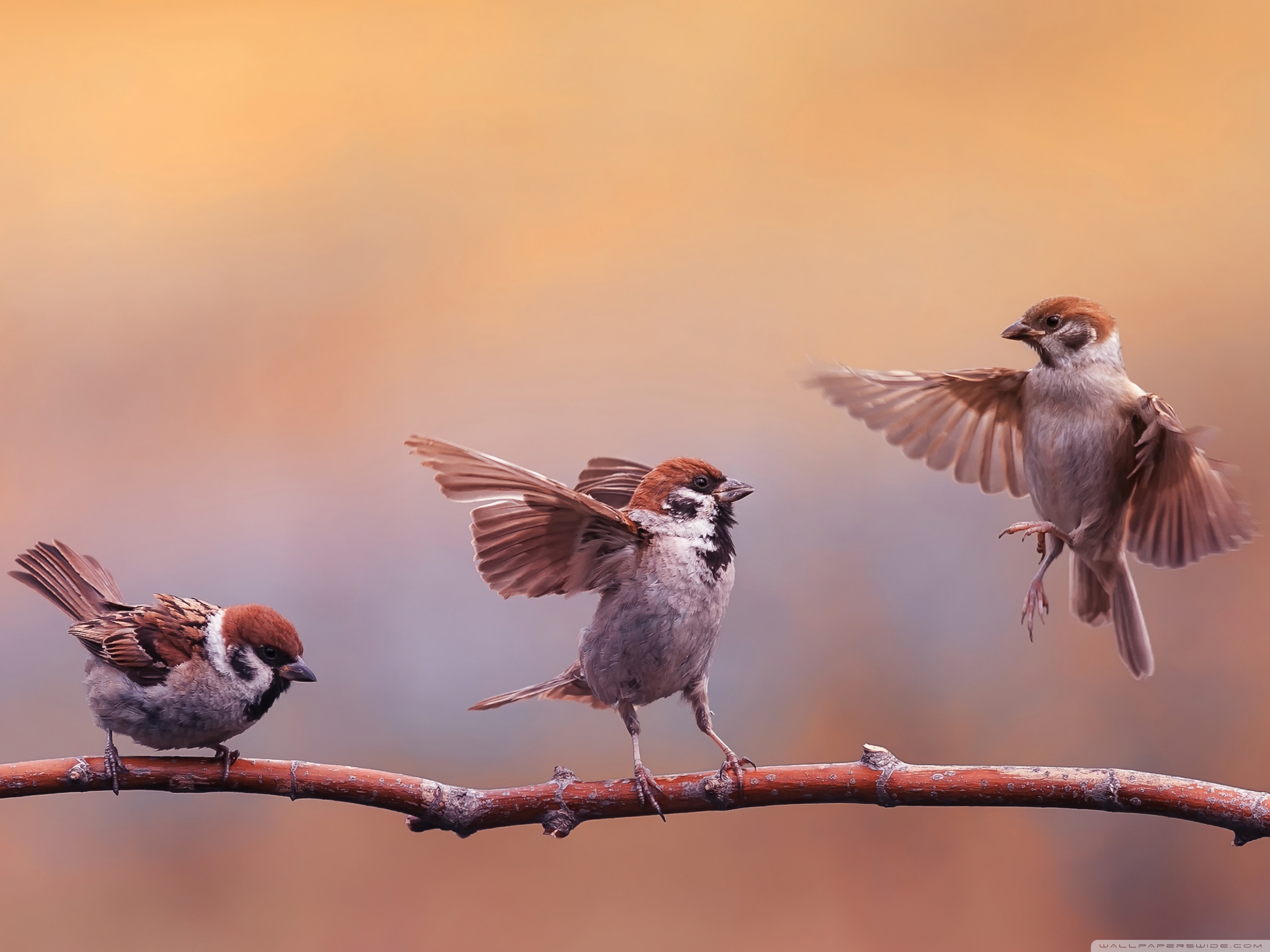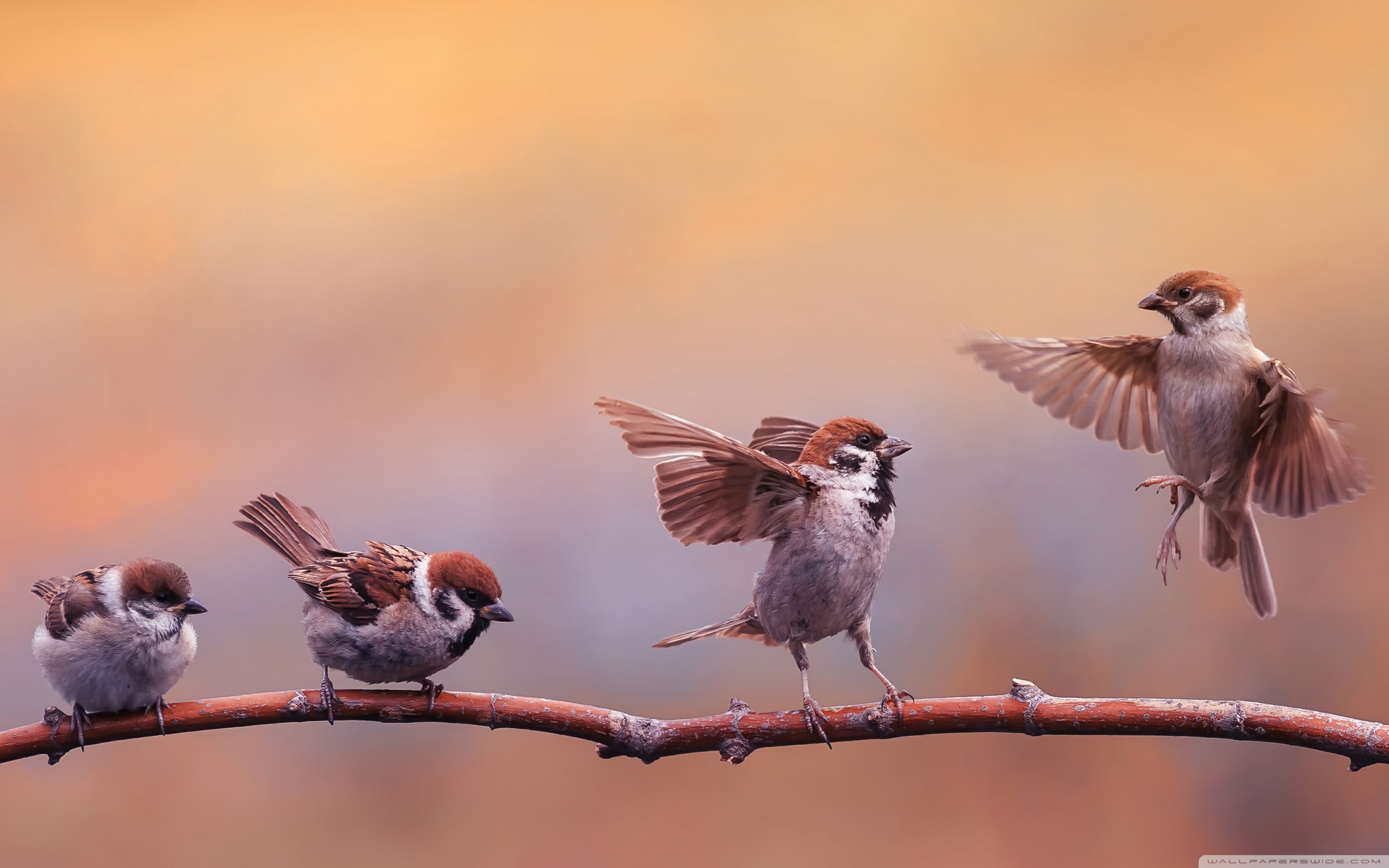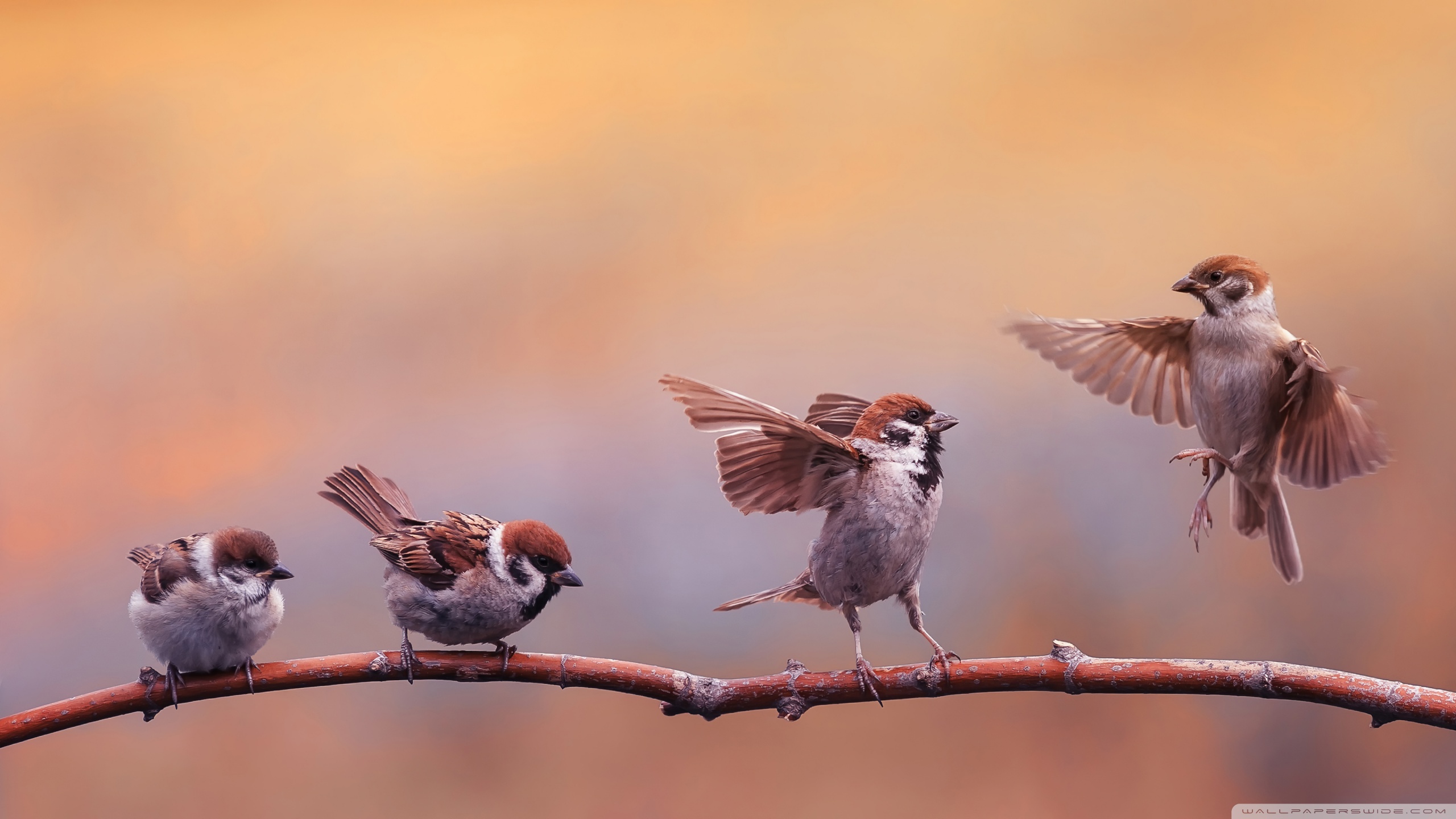 Download Sparrows on a Branch 4K UHD Wallpaper