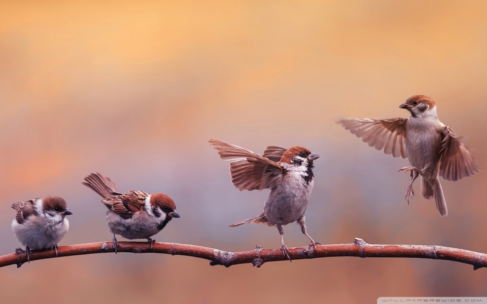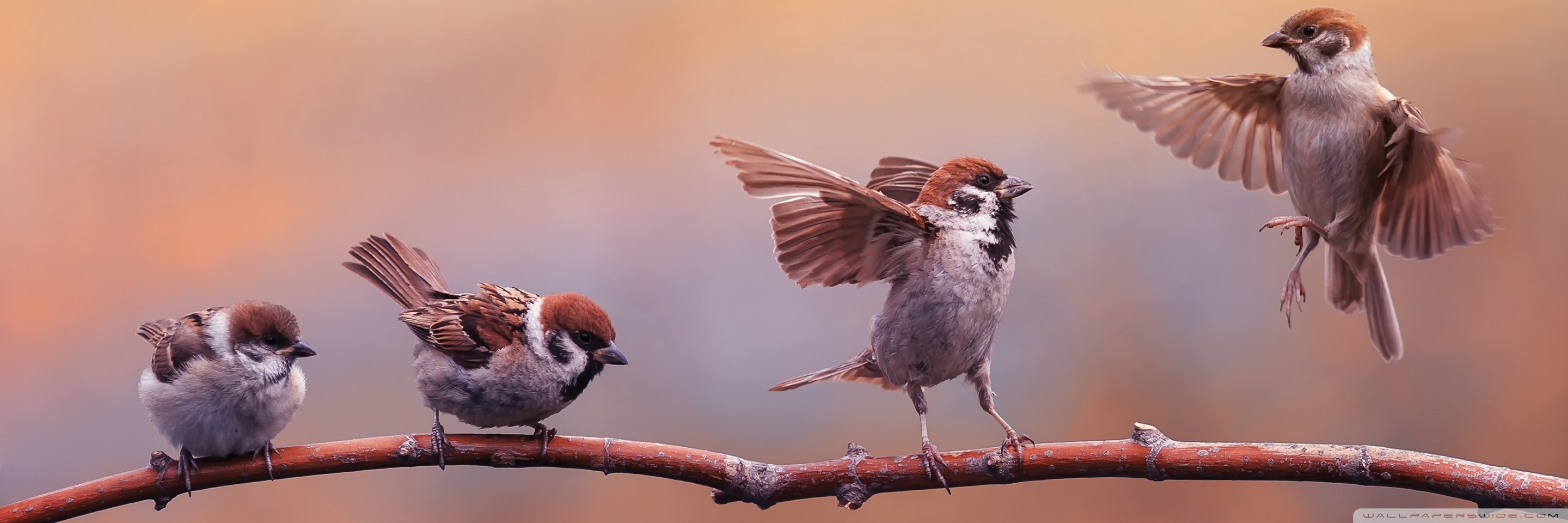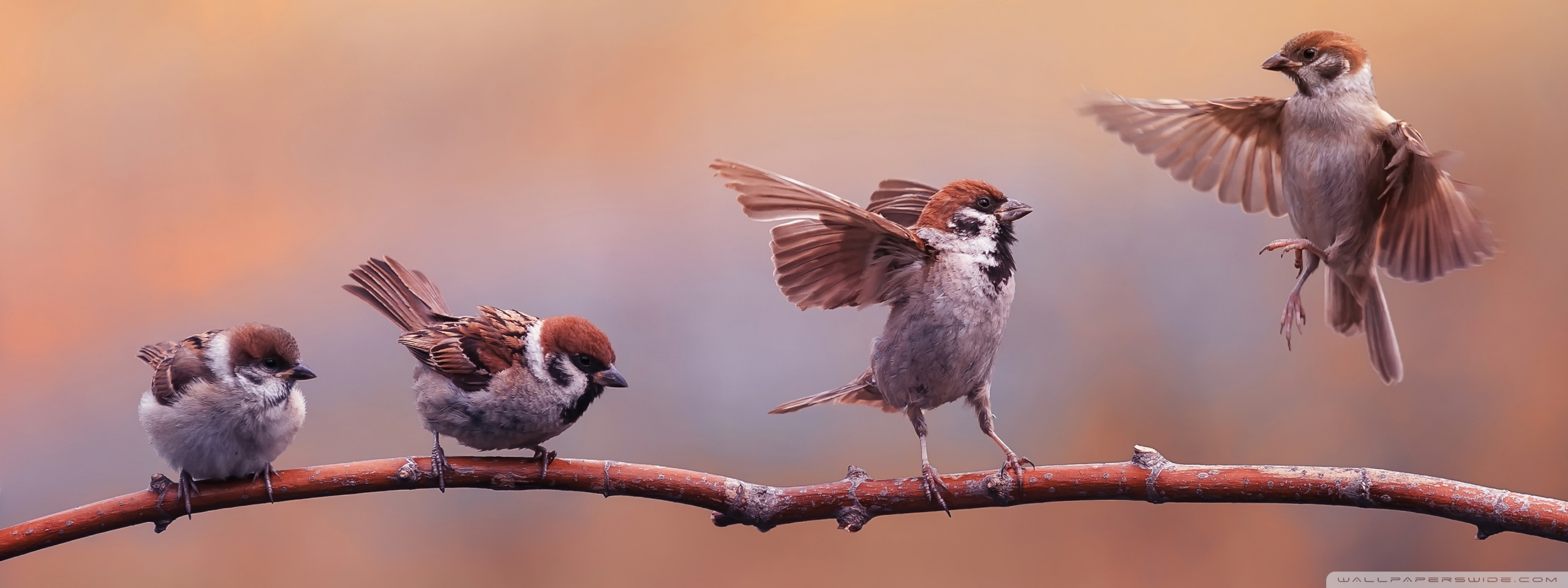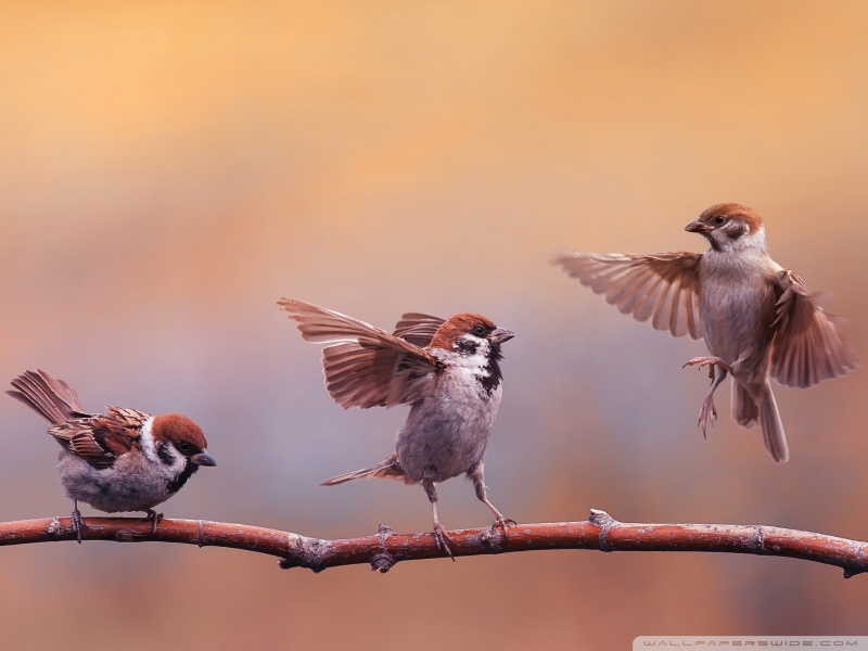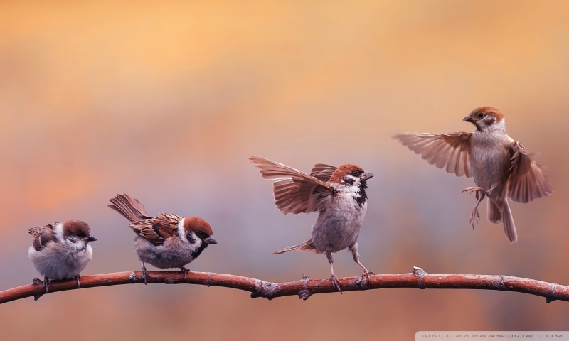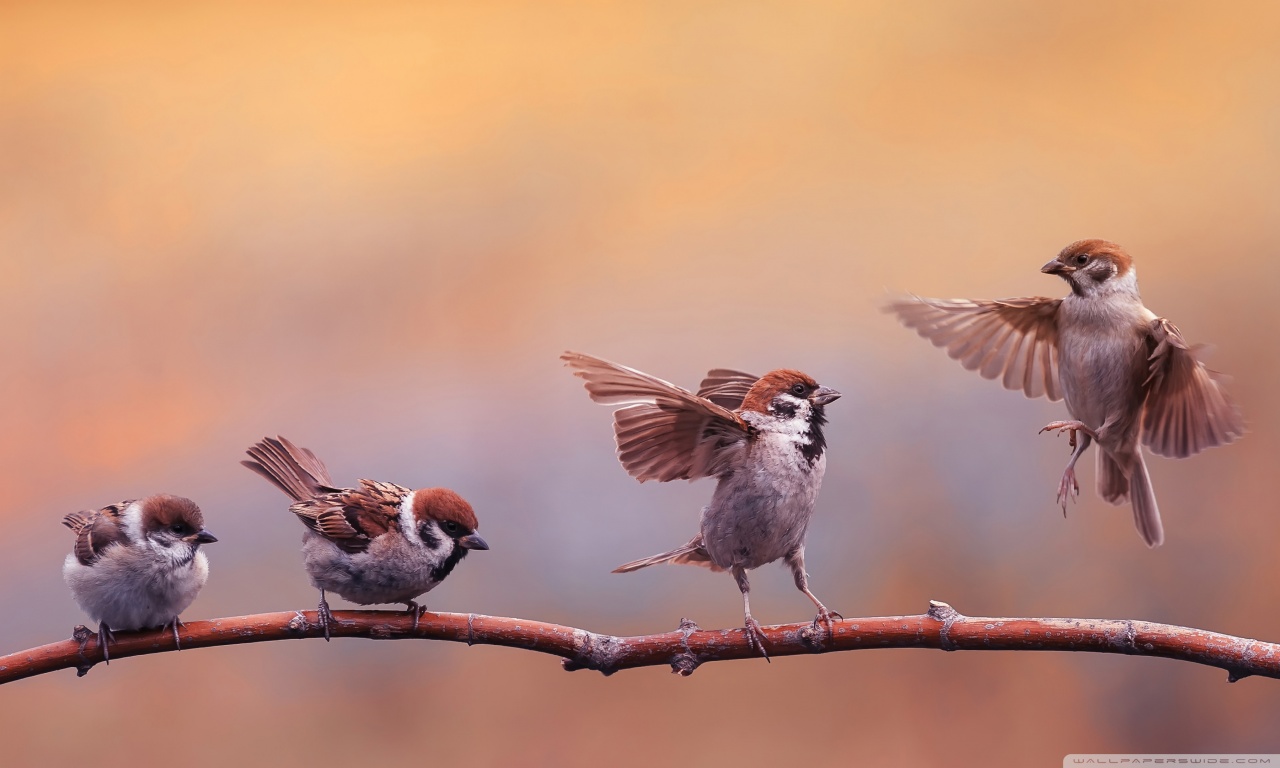 Download Sparrows on a Branch 4K UHD Wallpaper
