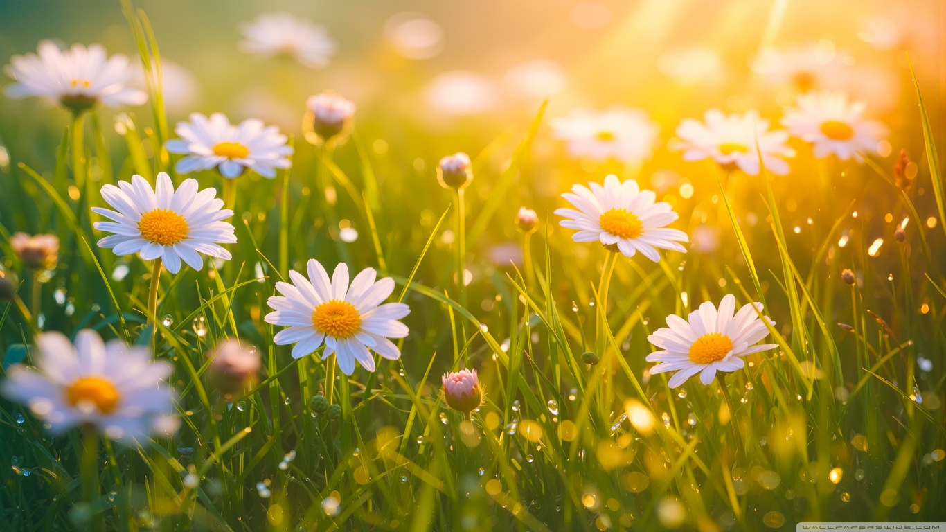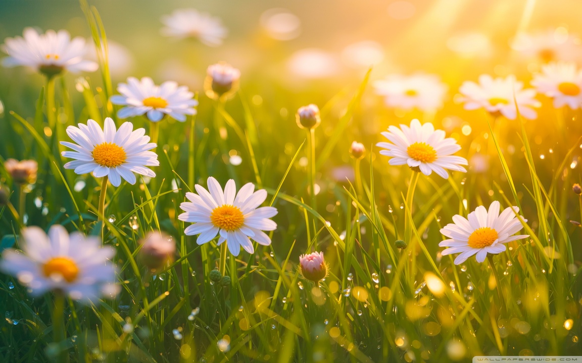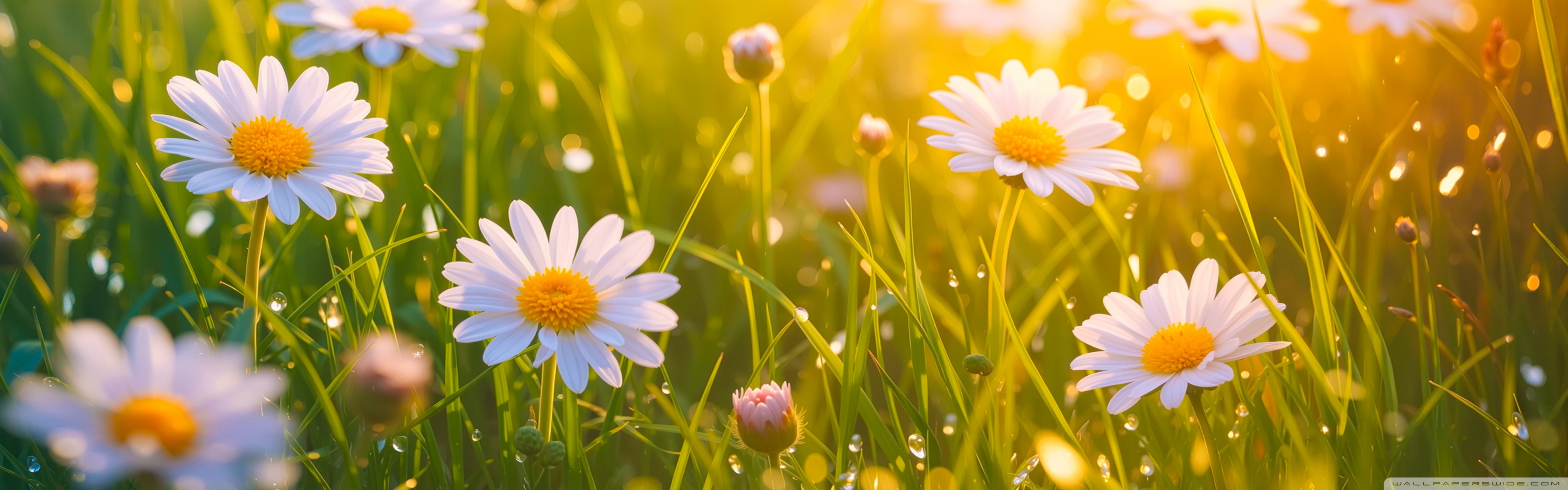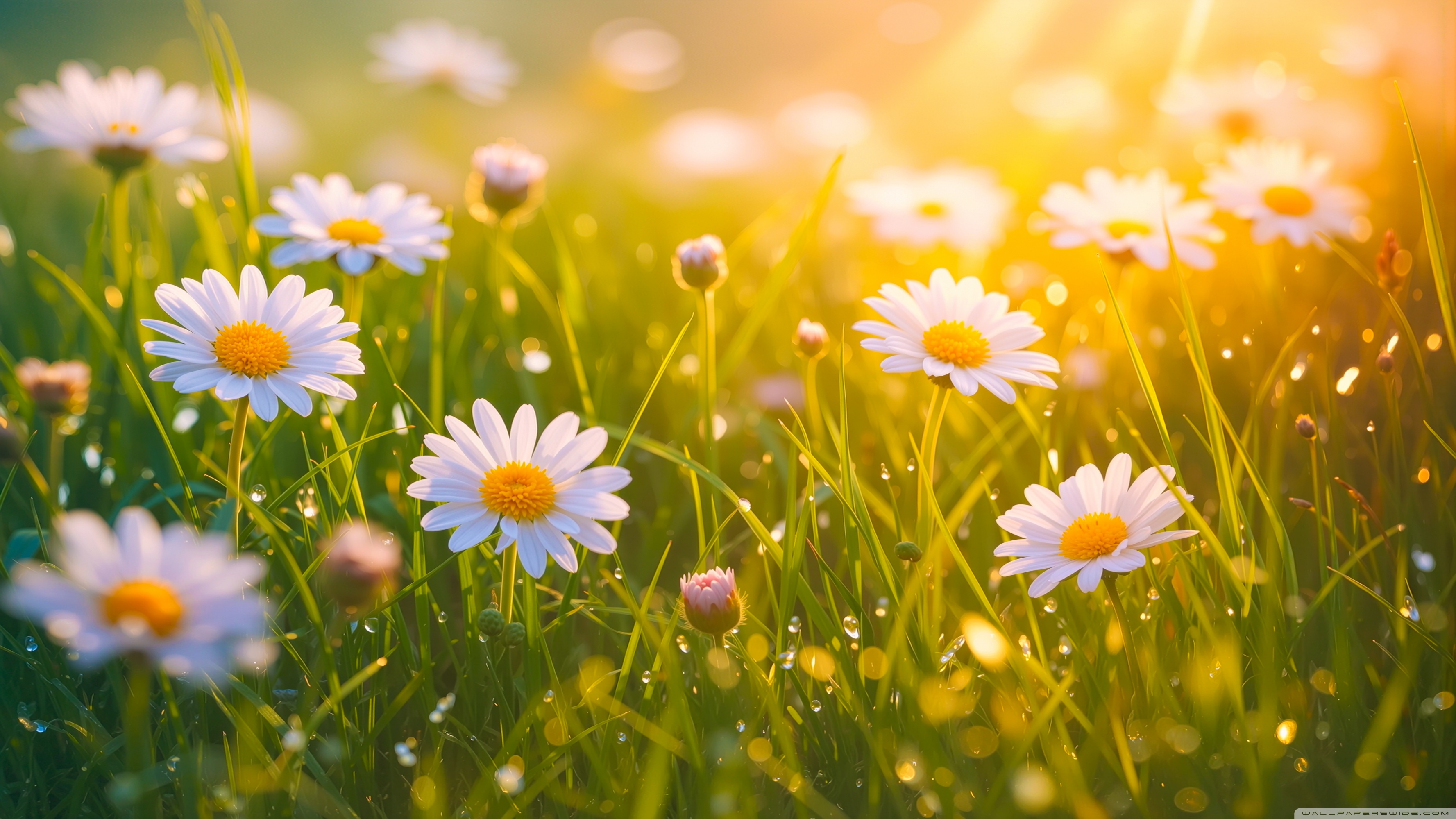 Download Spring Daisies, Golden Sunlight 4K UHD Wallpaper