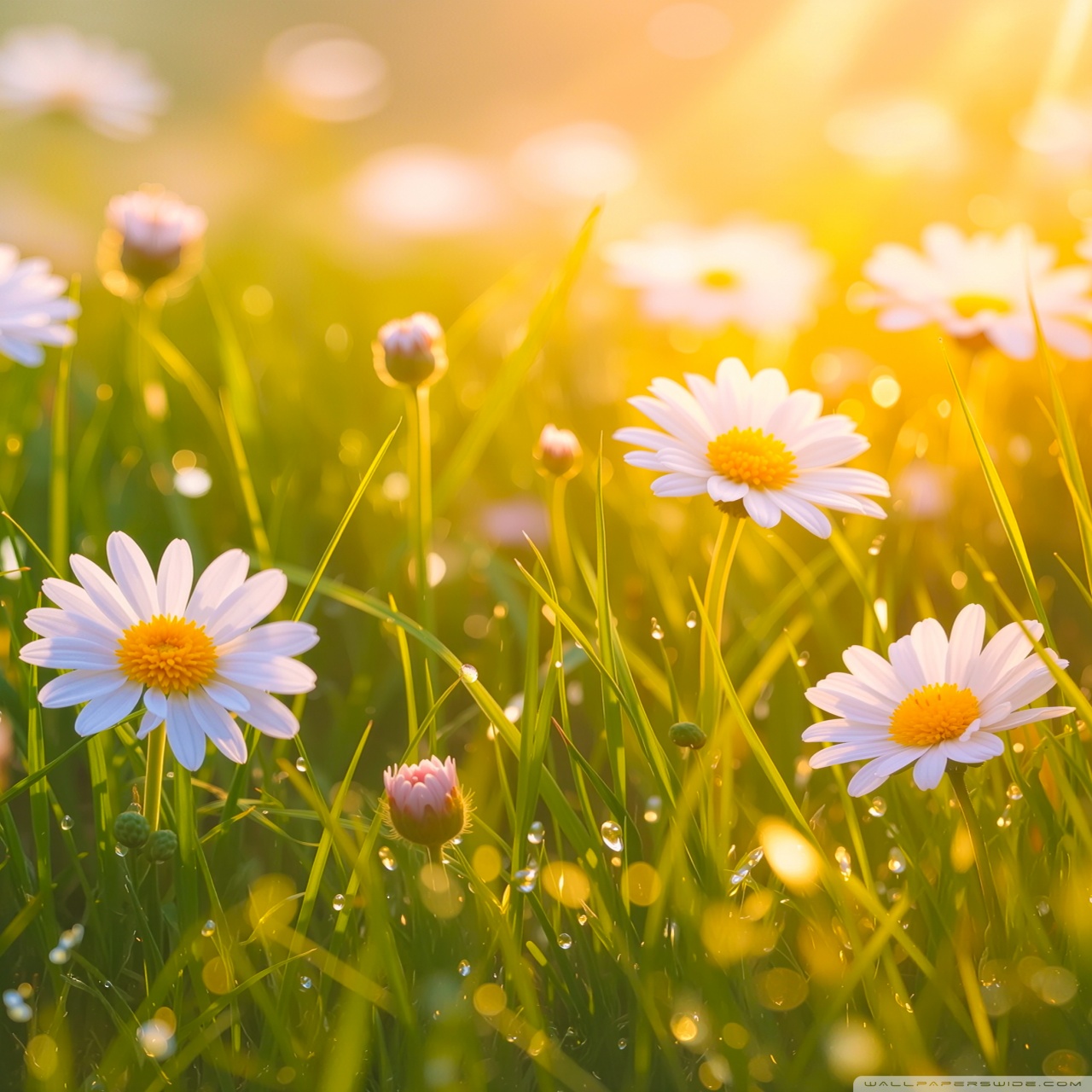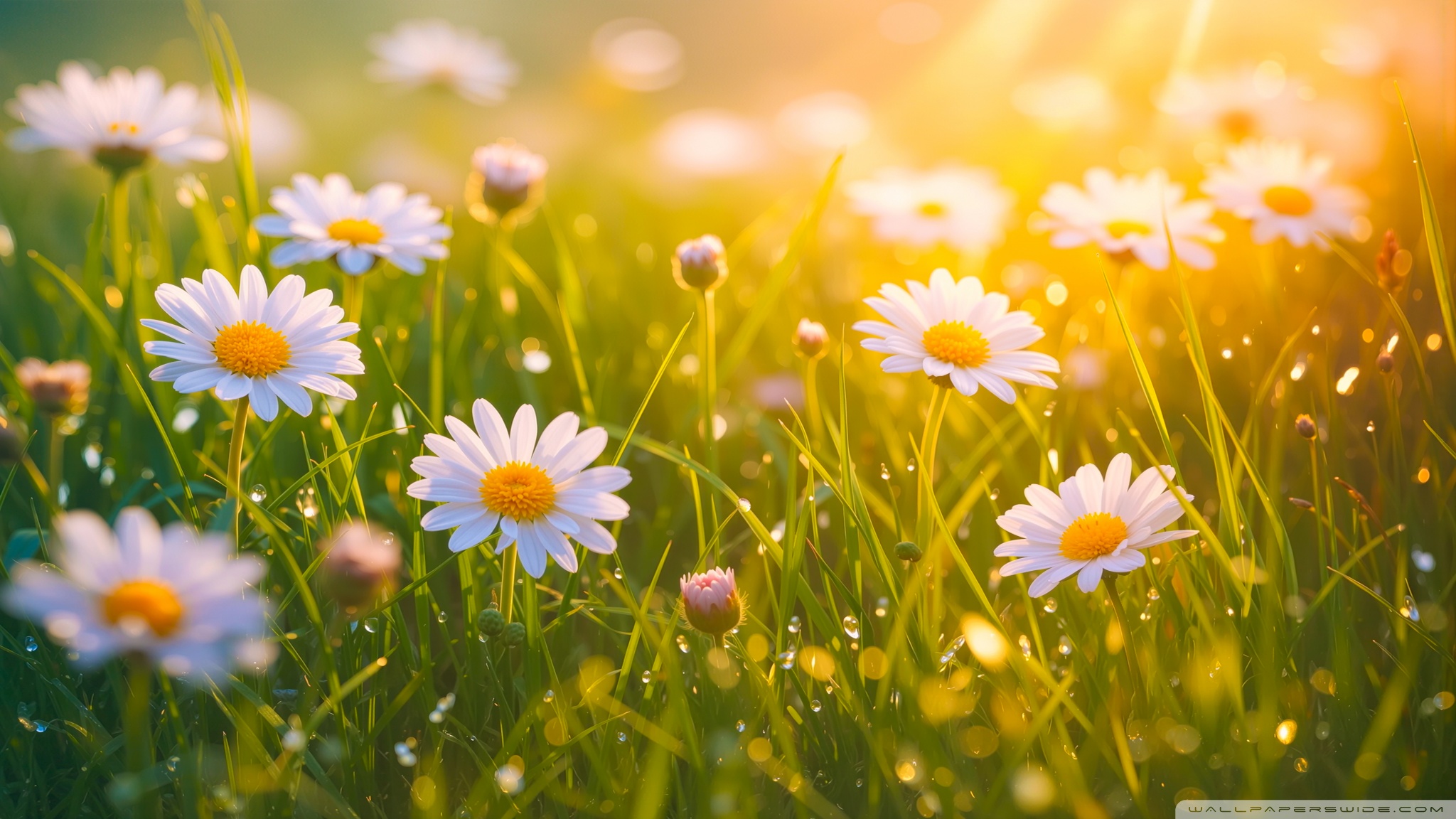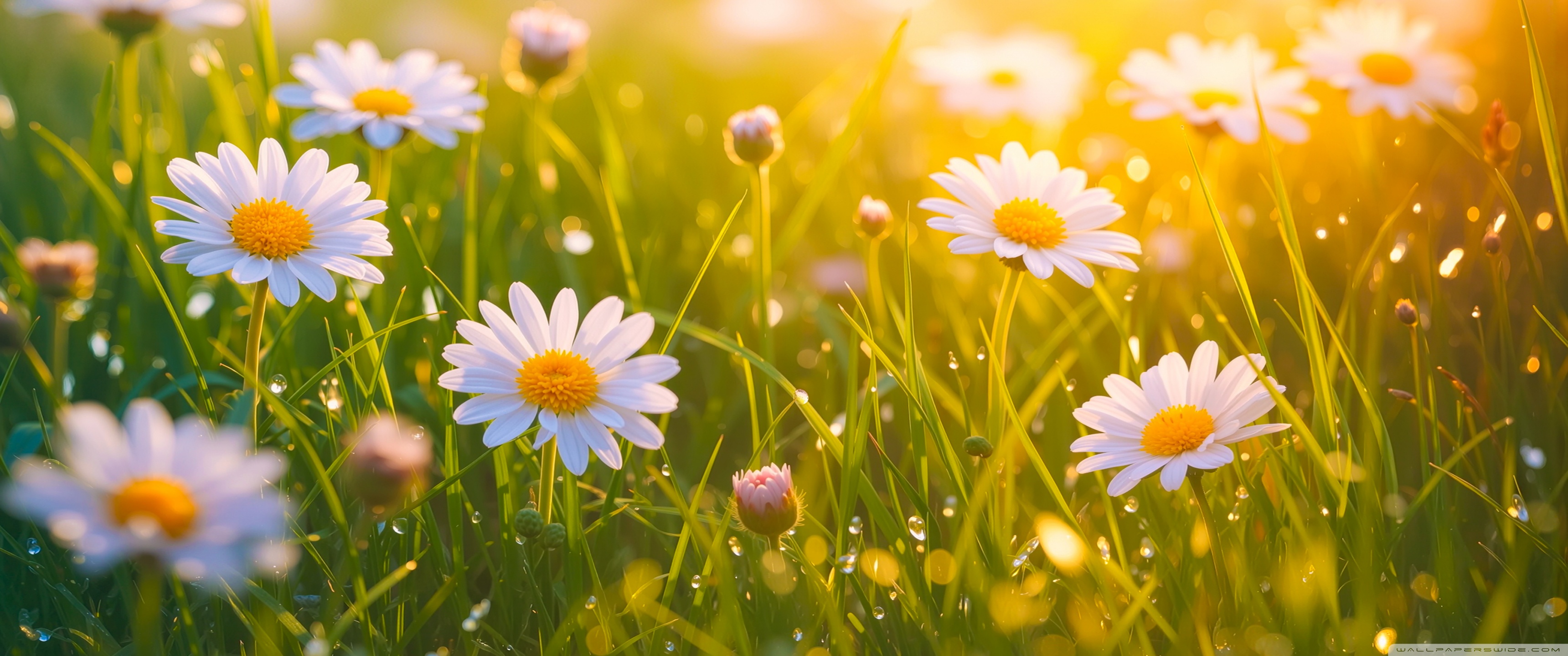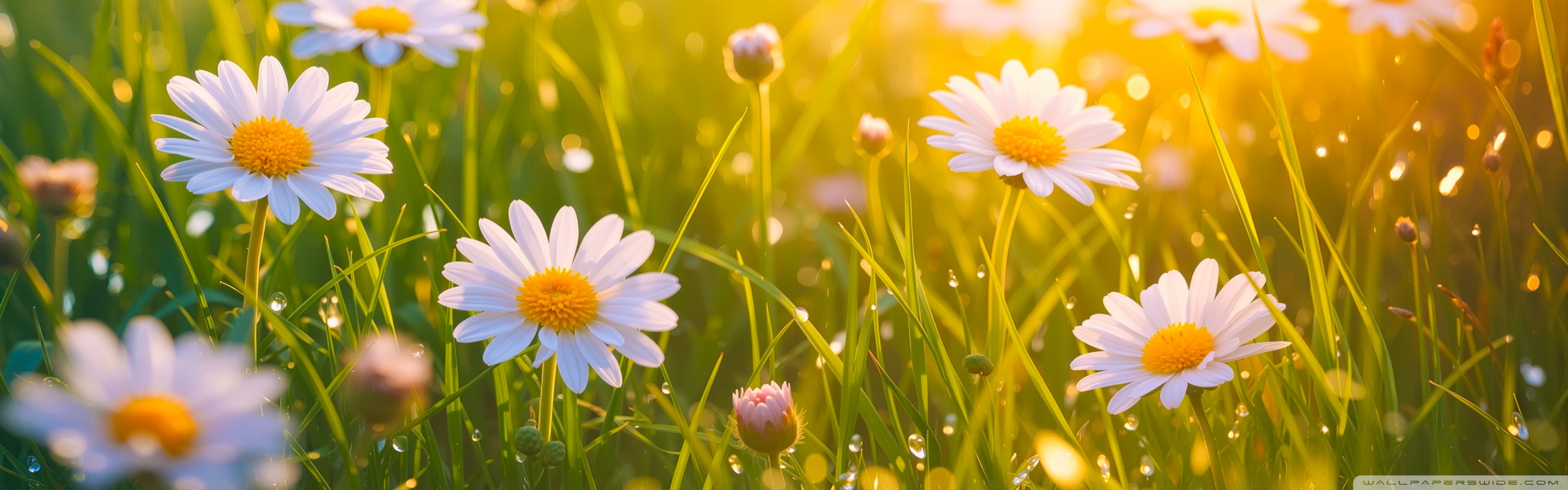Download Spring Daisies, Golden Sunlight 4K UHD Wallpaper