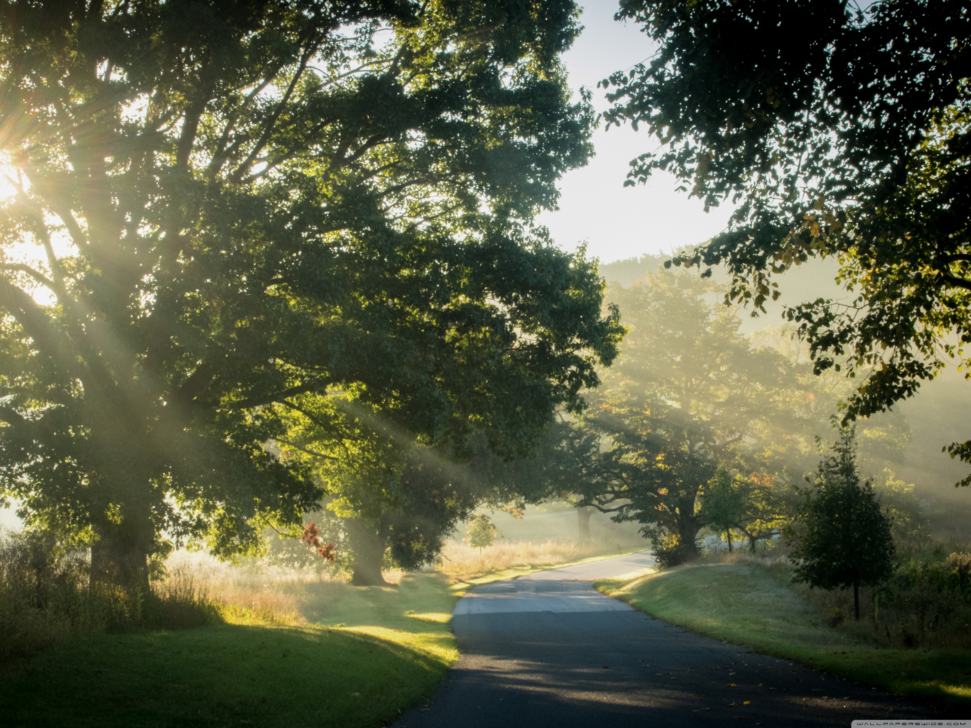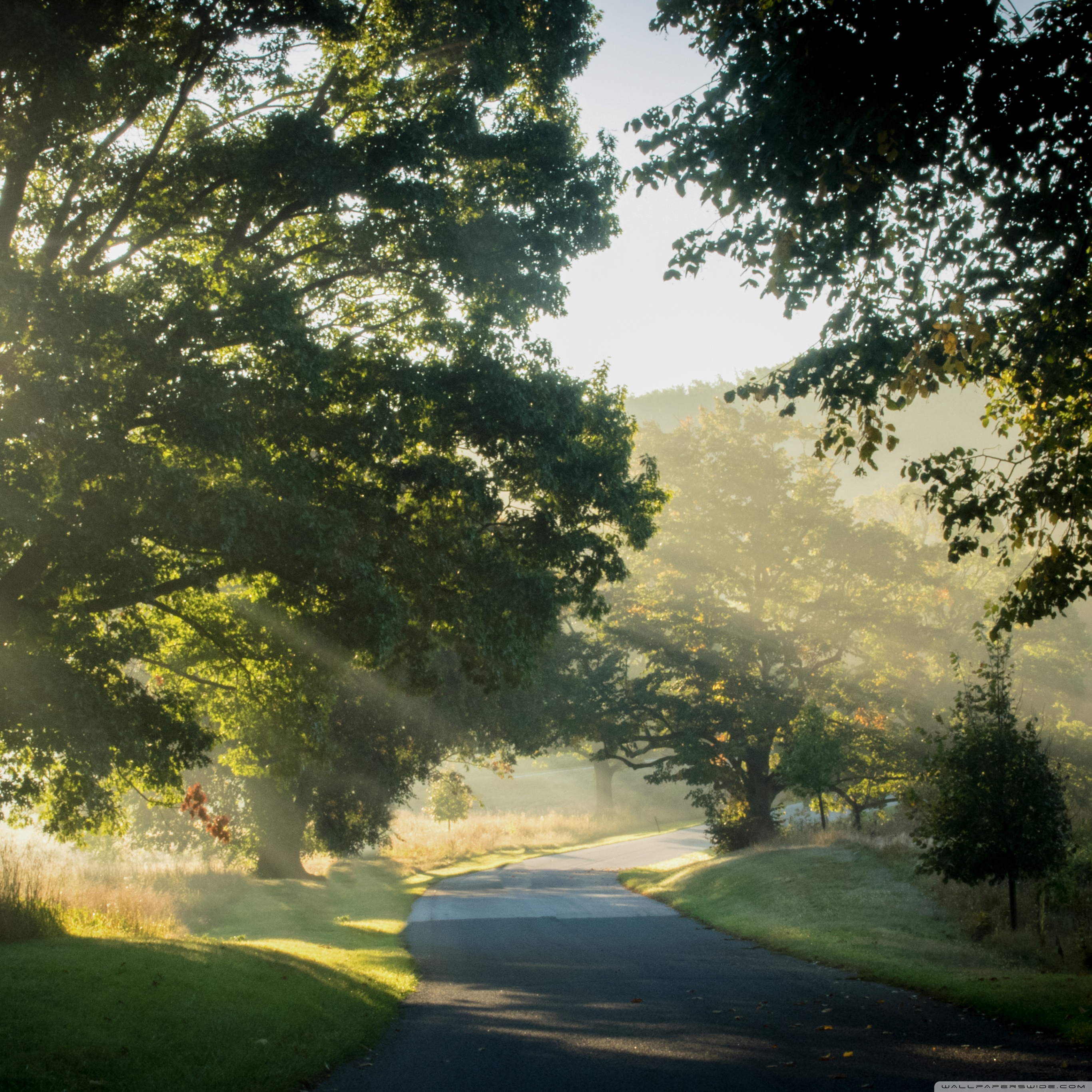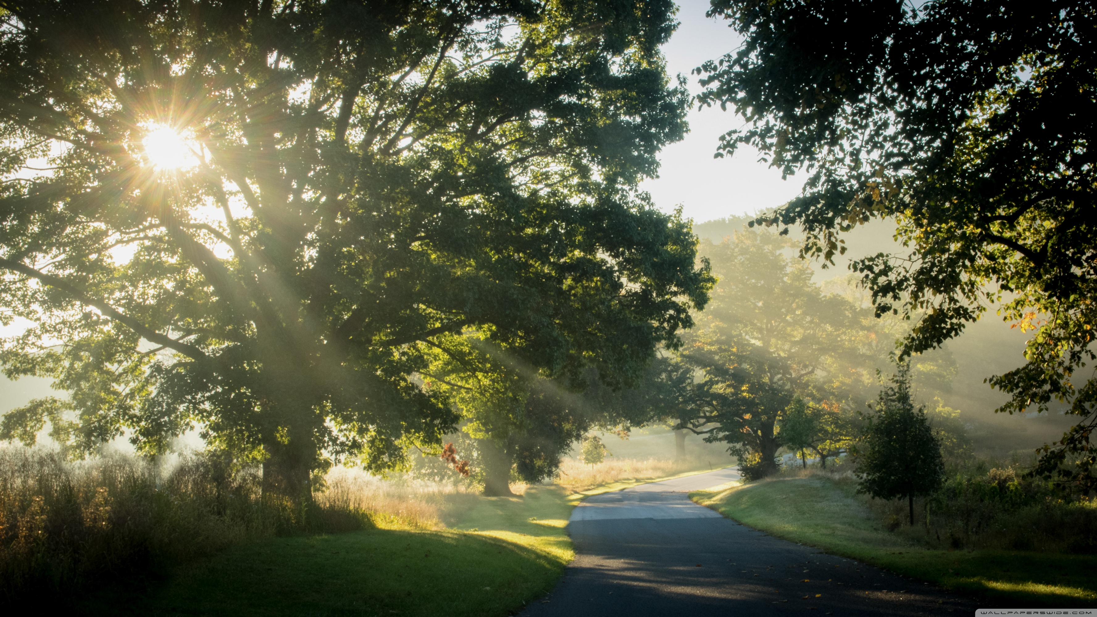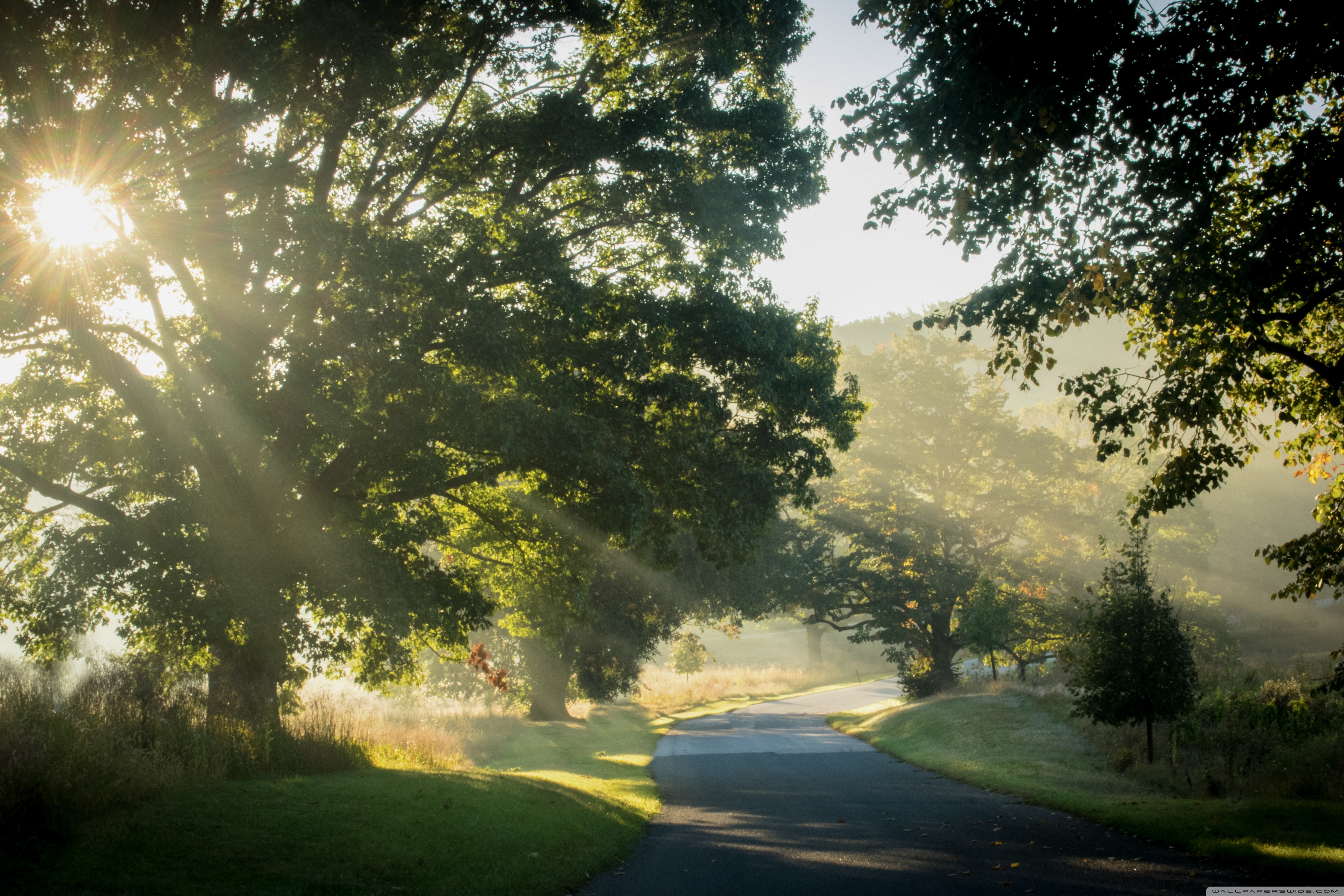 Download Sunlit Road Through the Trees 4K UHD Wallpaper