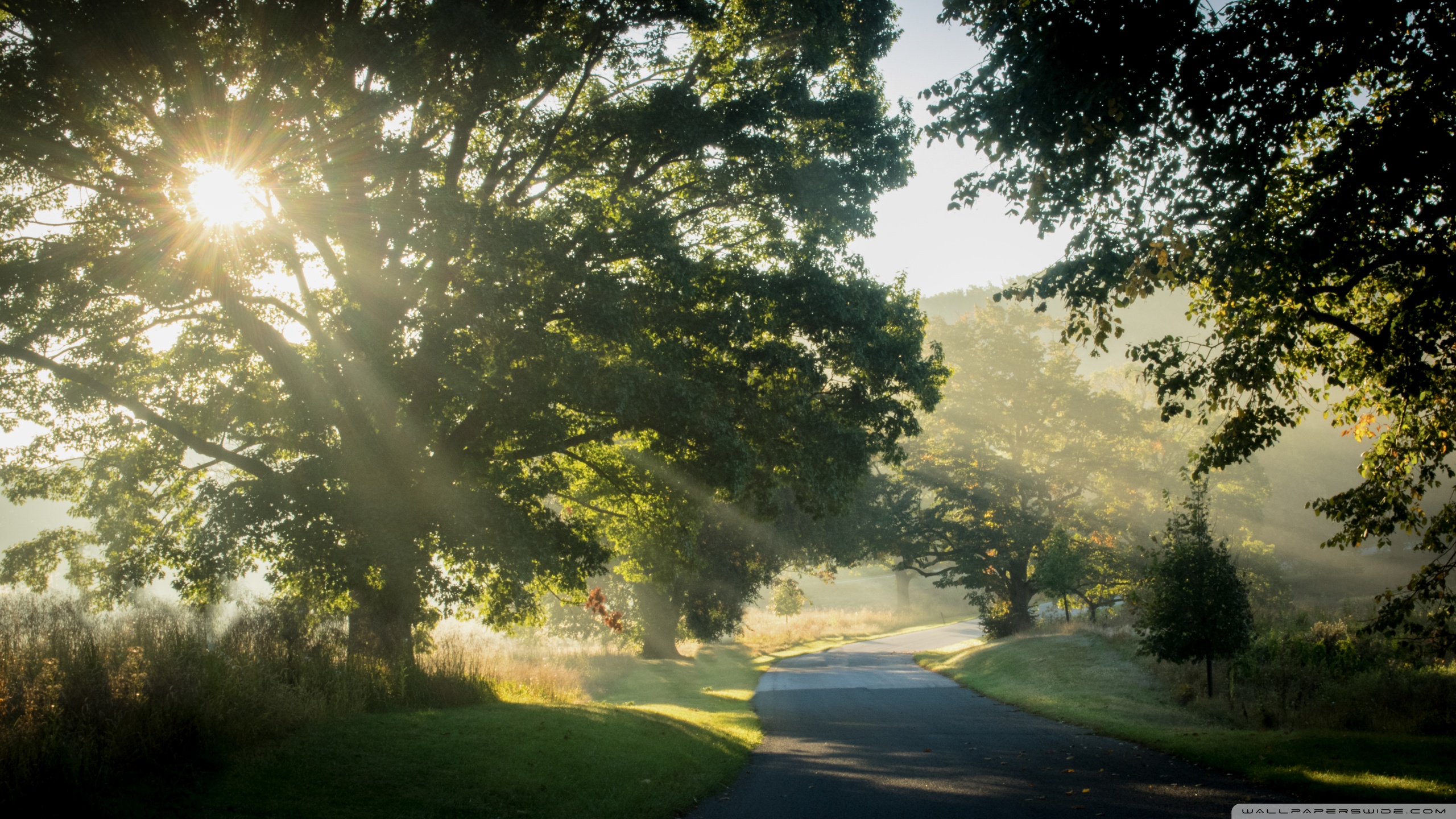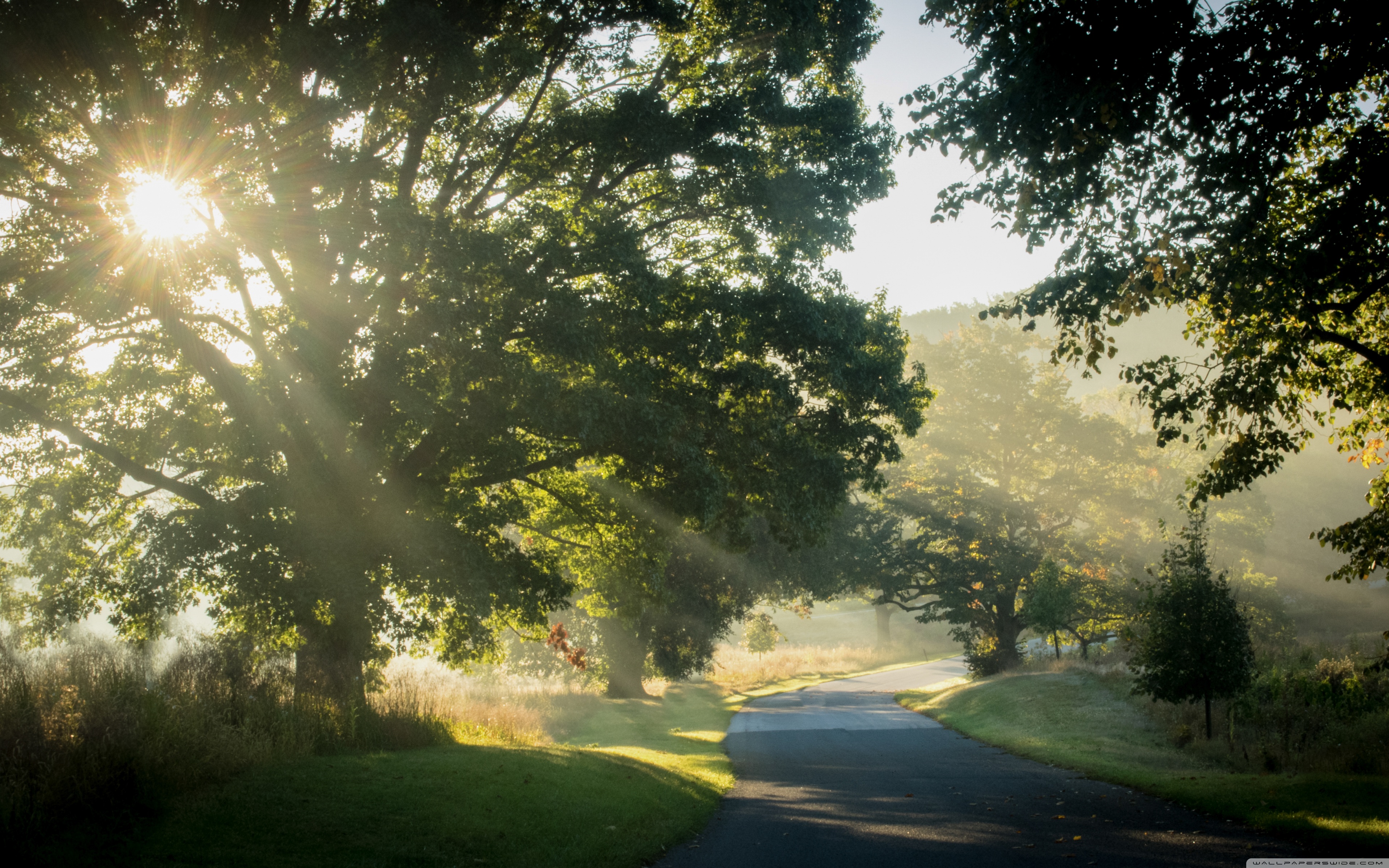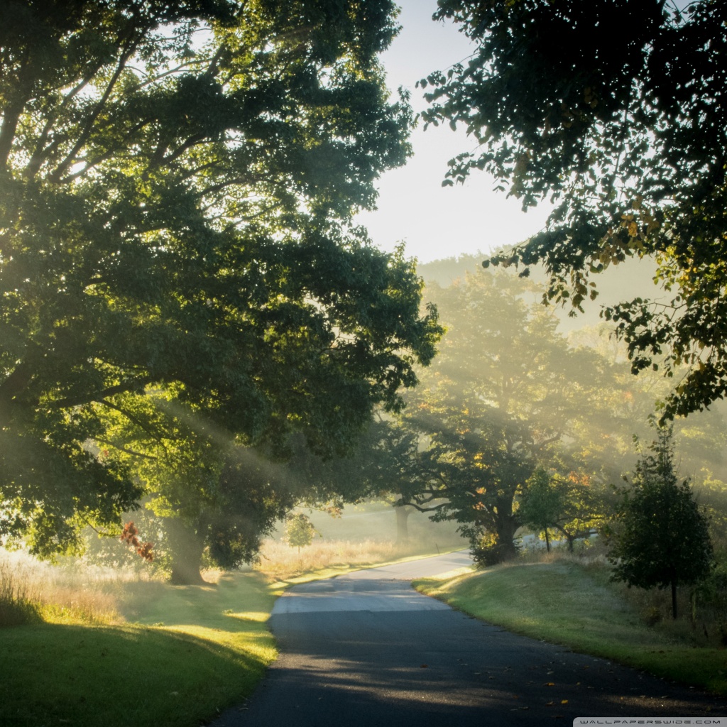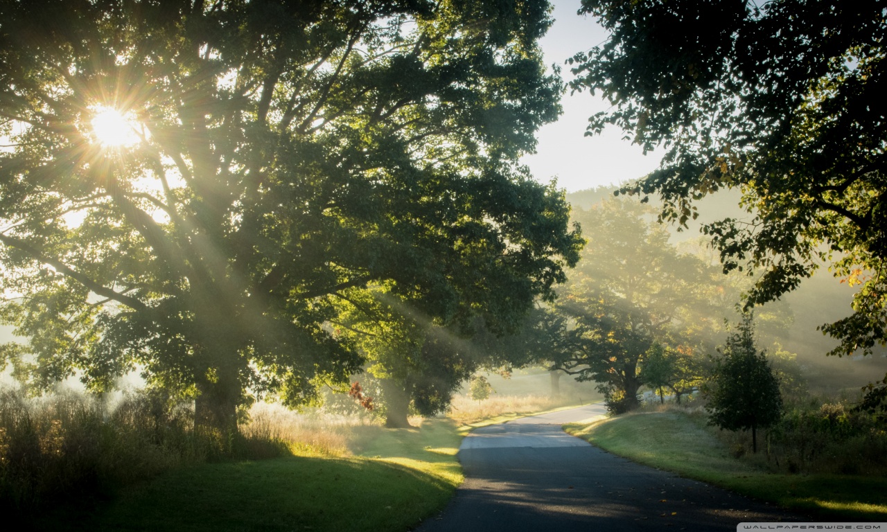 Download Sunlit Road Through the Trees 4K UHD Wallpaper