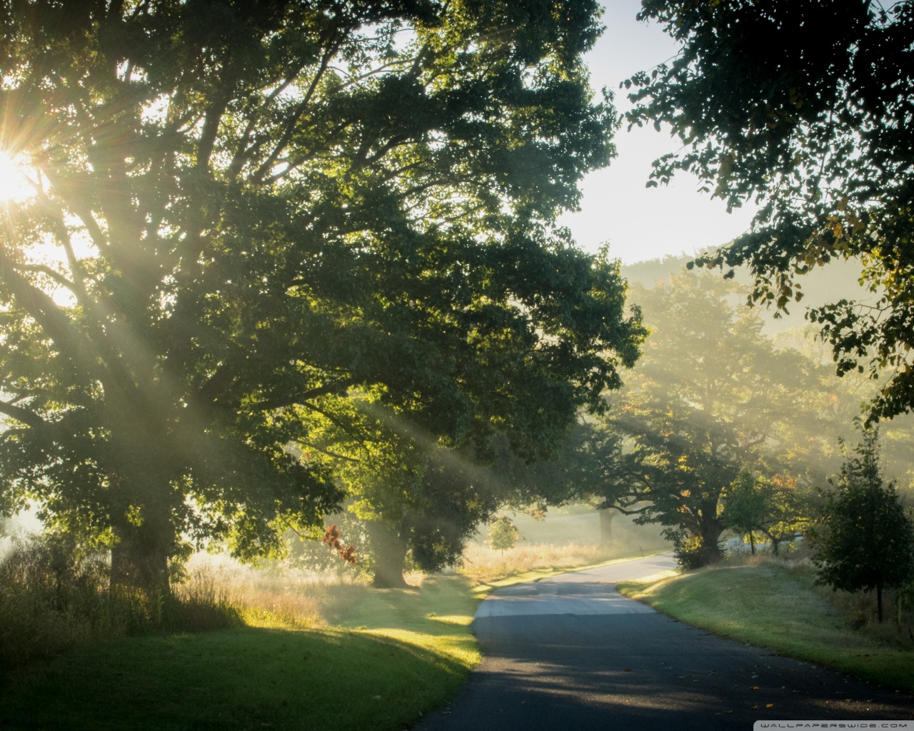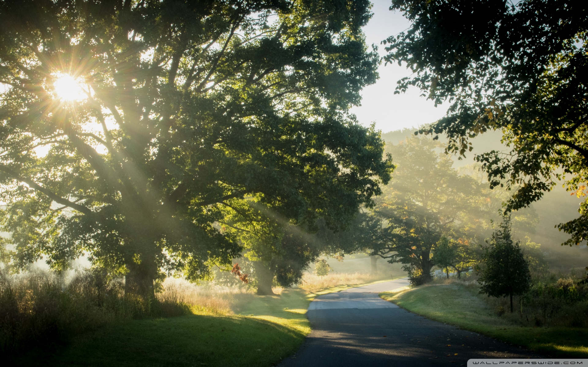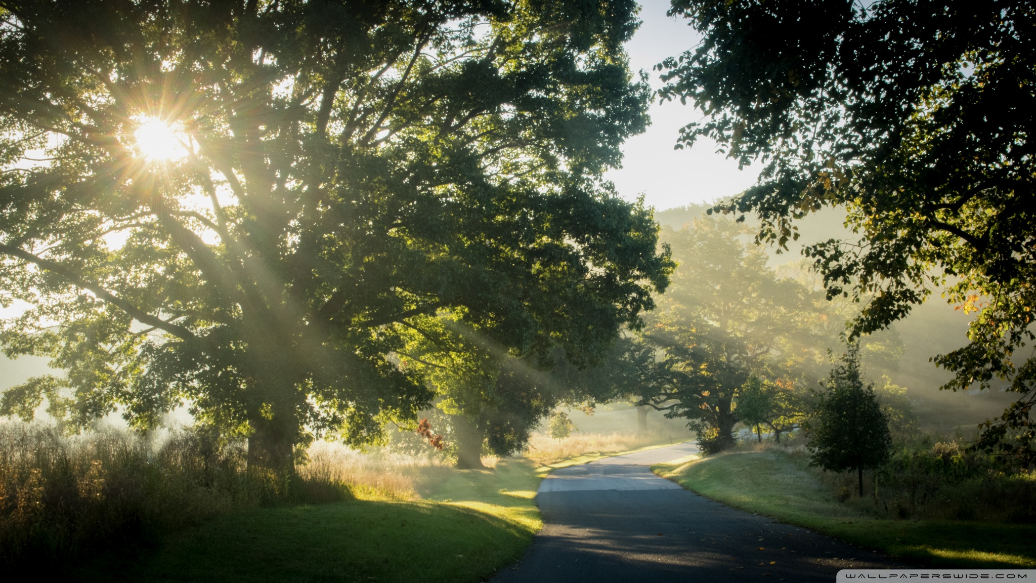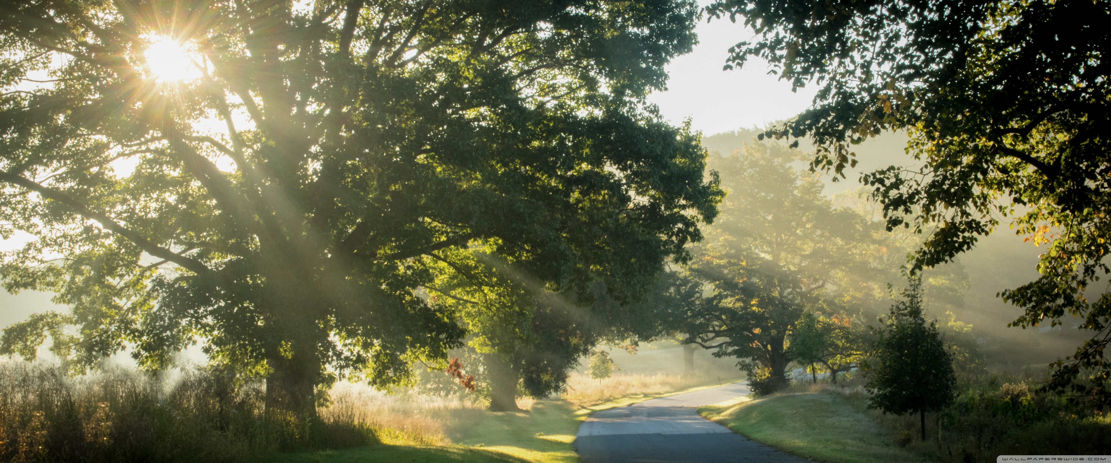 Download Sunlit Road Through the Trees 4K UHD Wallpaper