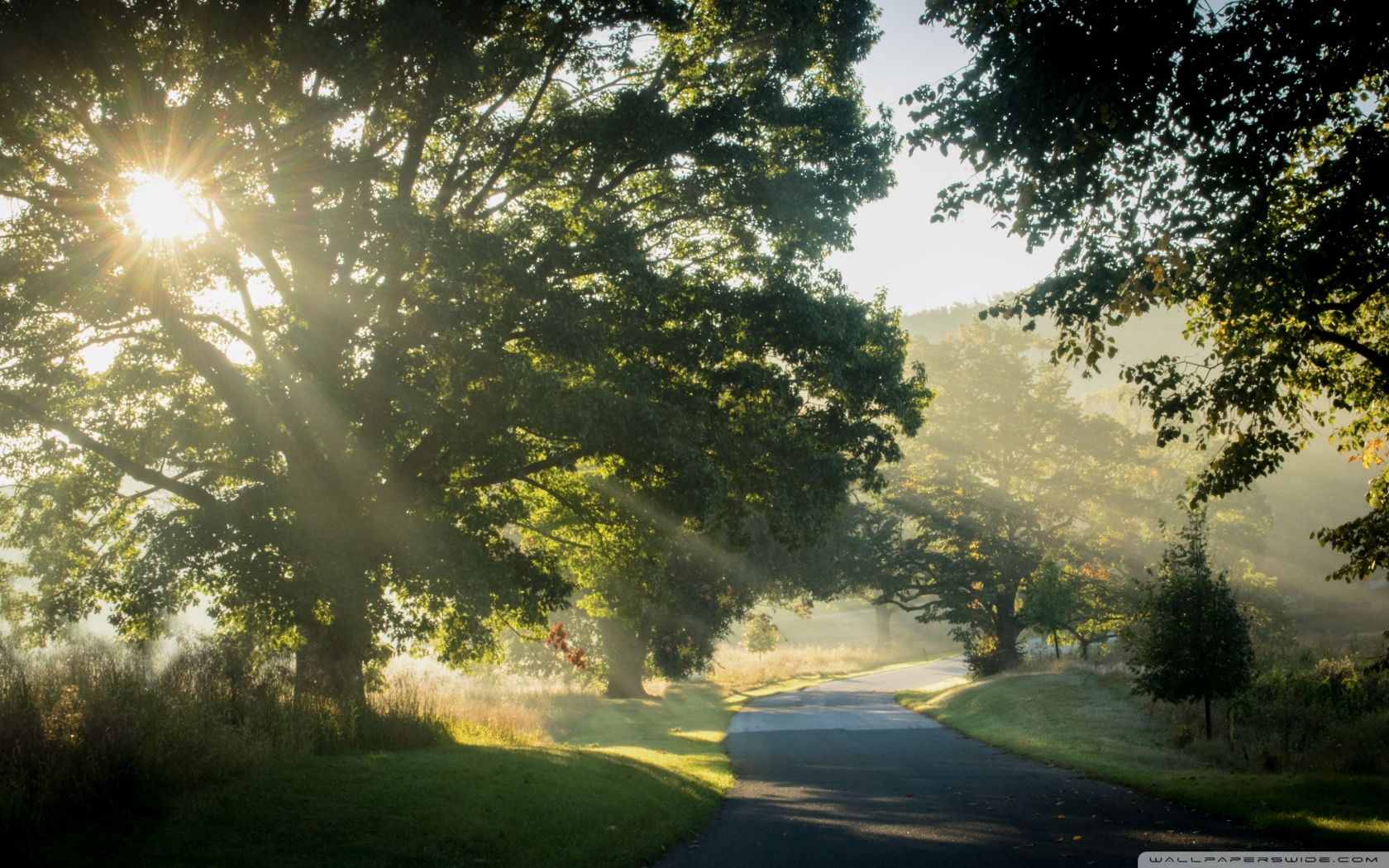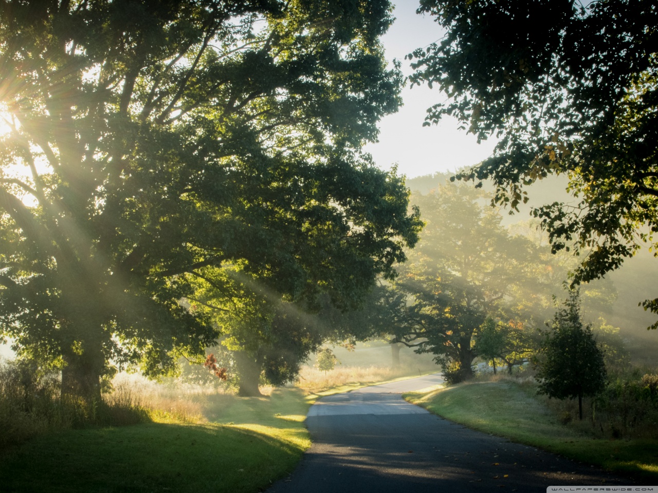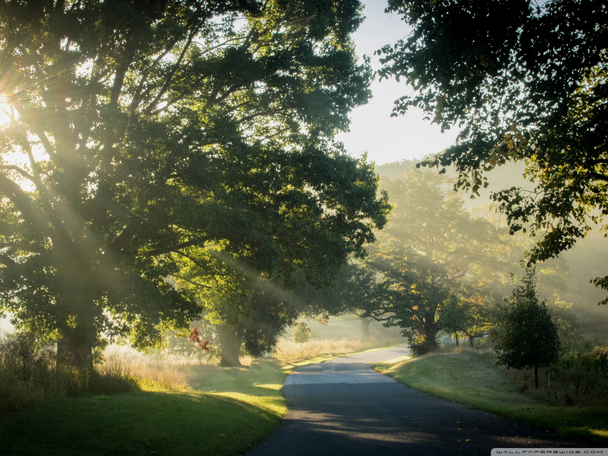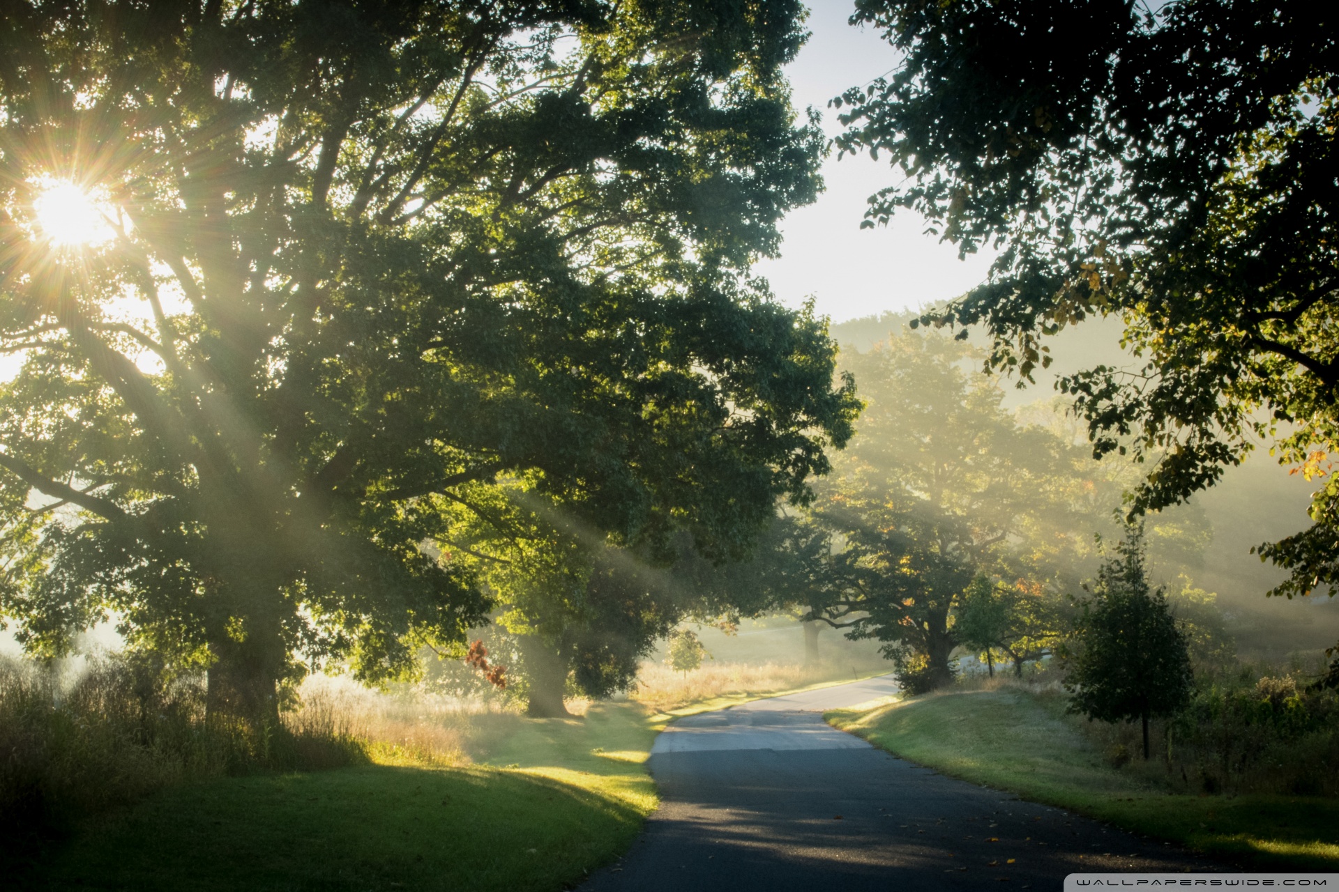 Download Sunlit Road Through the Trees 4K UHD Wallpaper