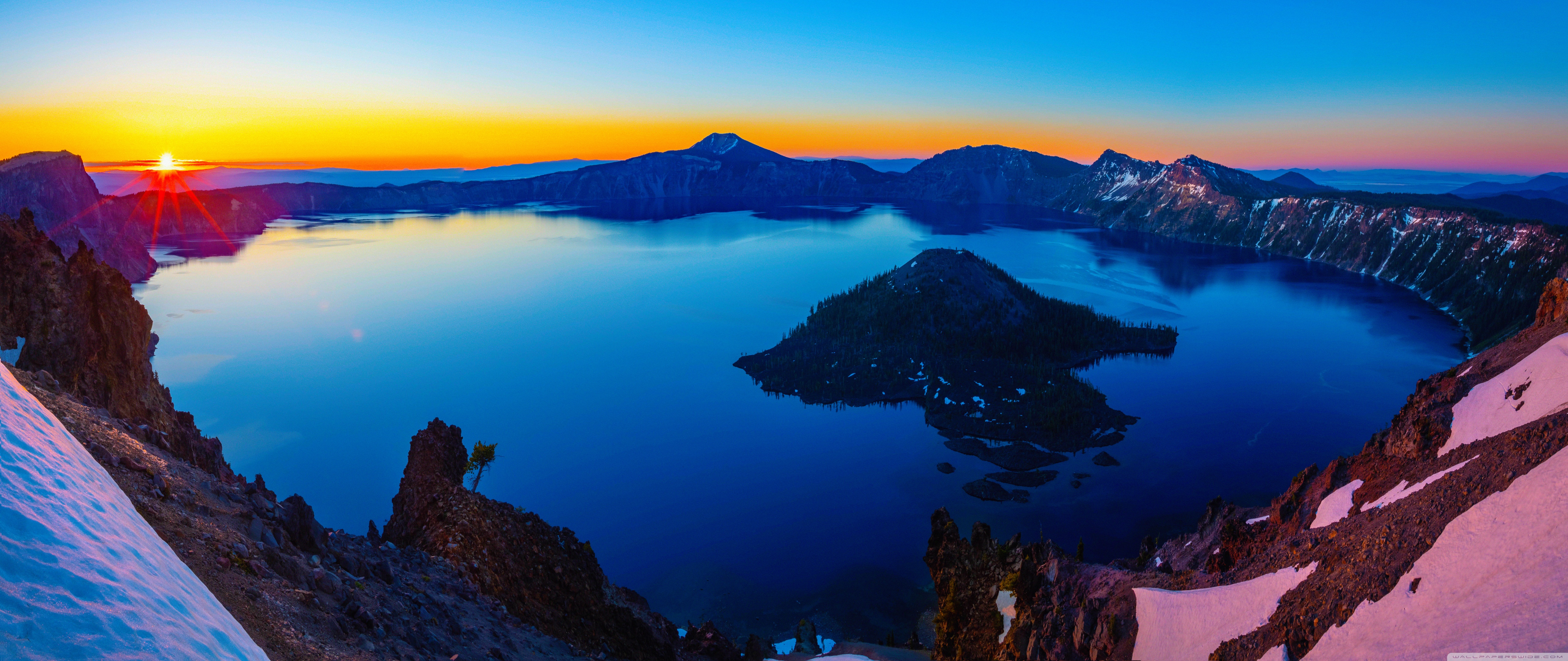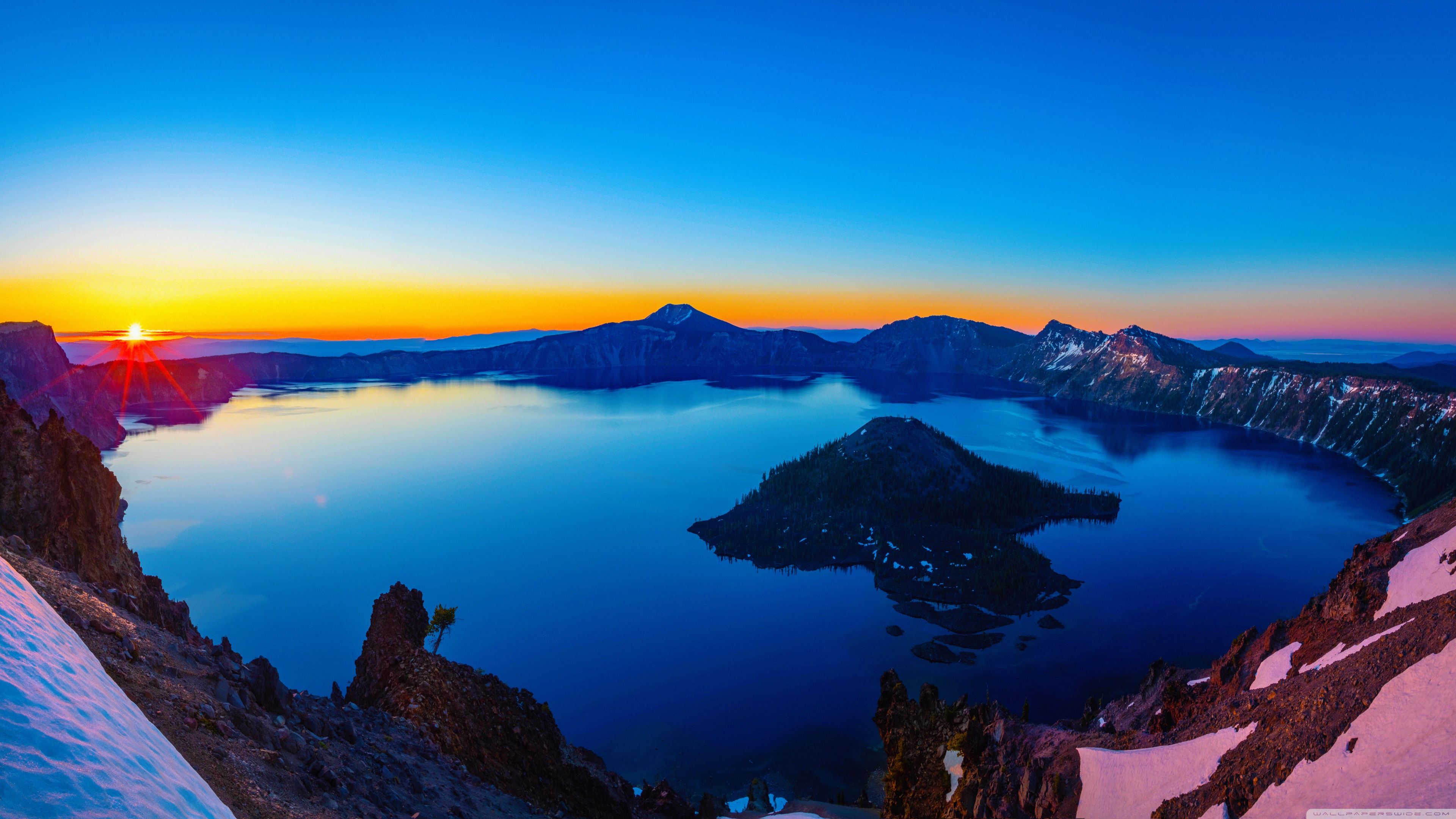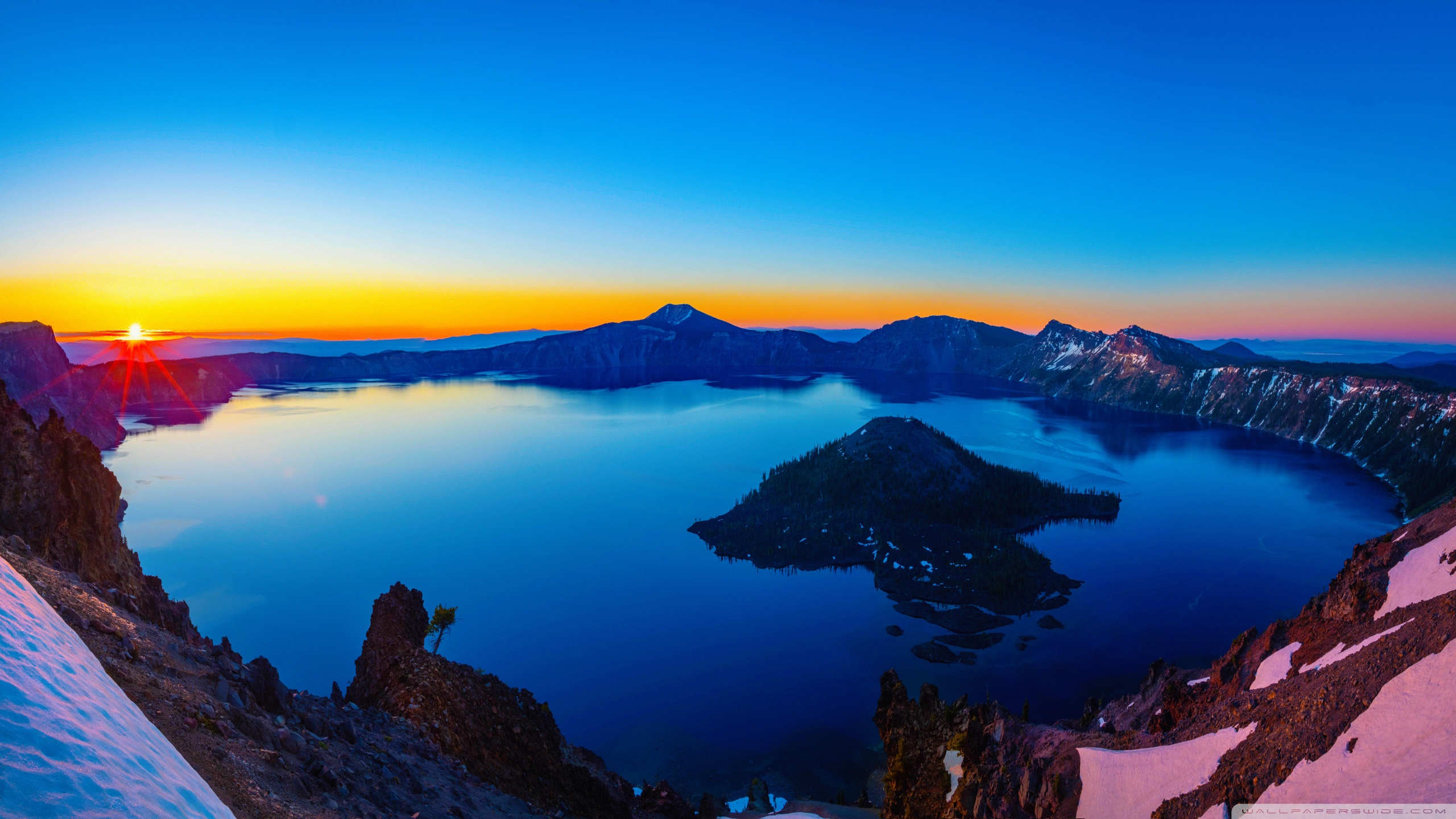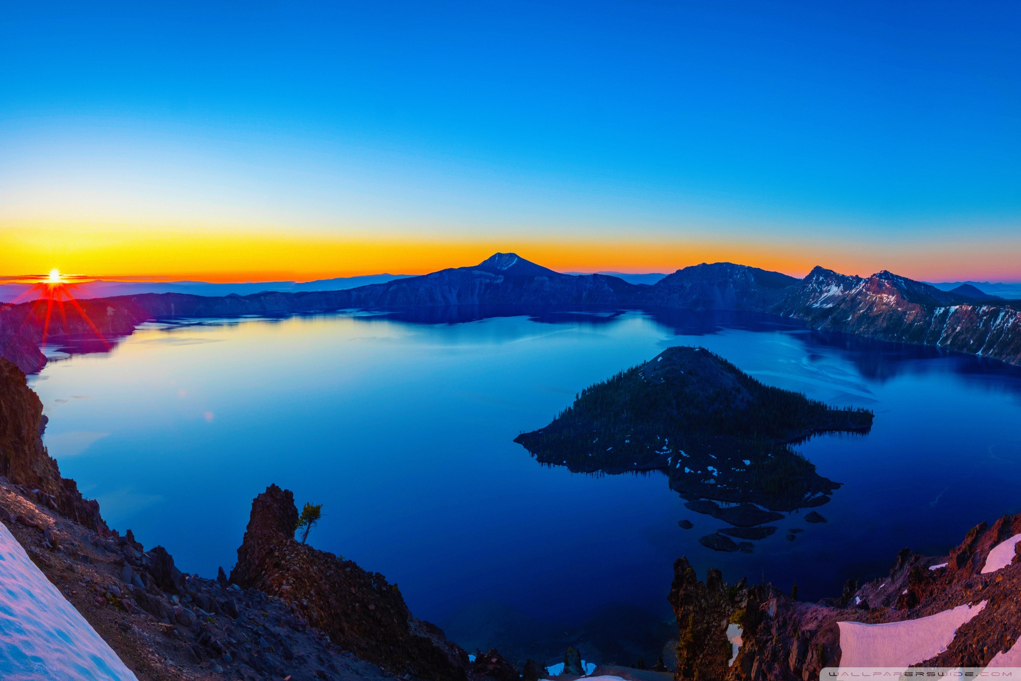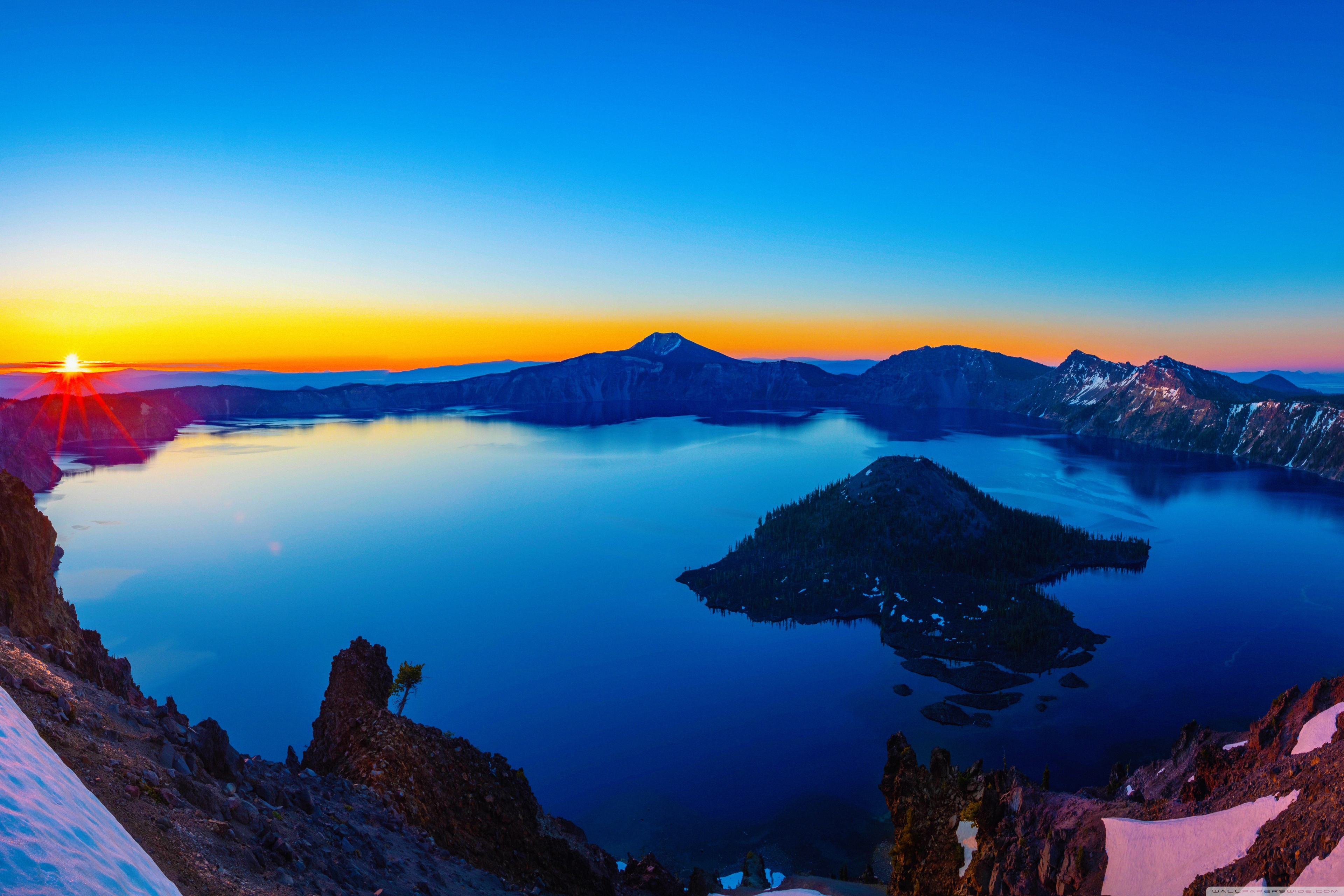 Download Sunrise Over Crater Lake National Park, Oregon 4K UHD Wallpaper