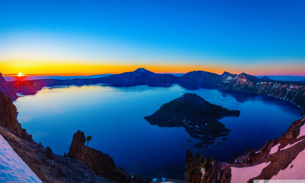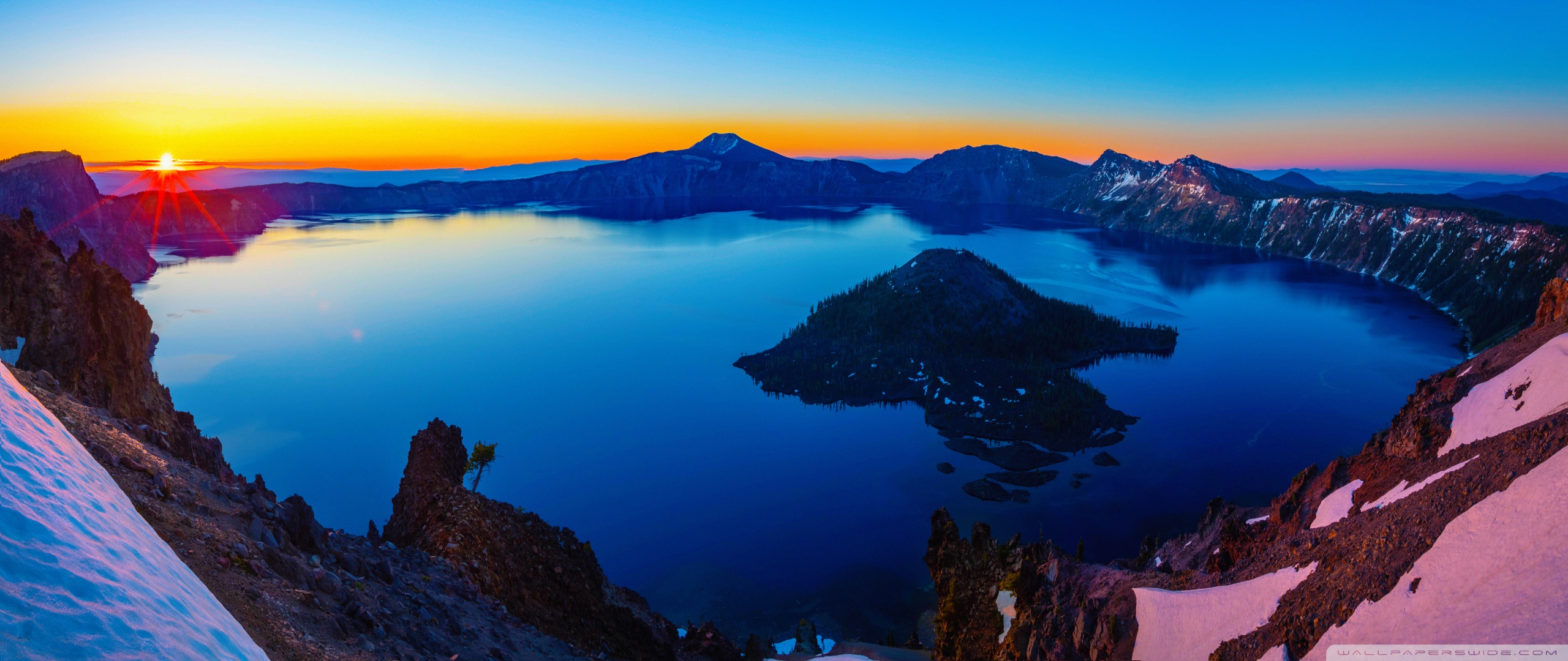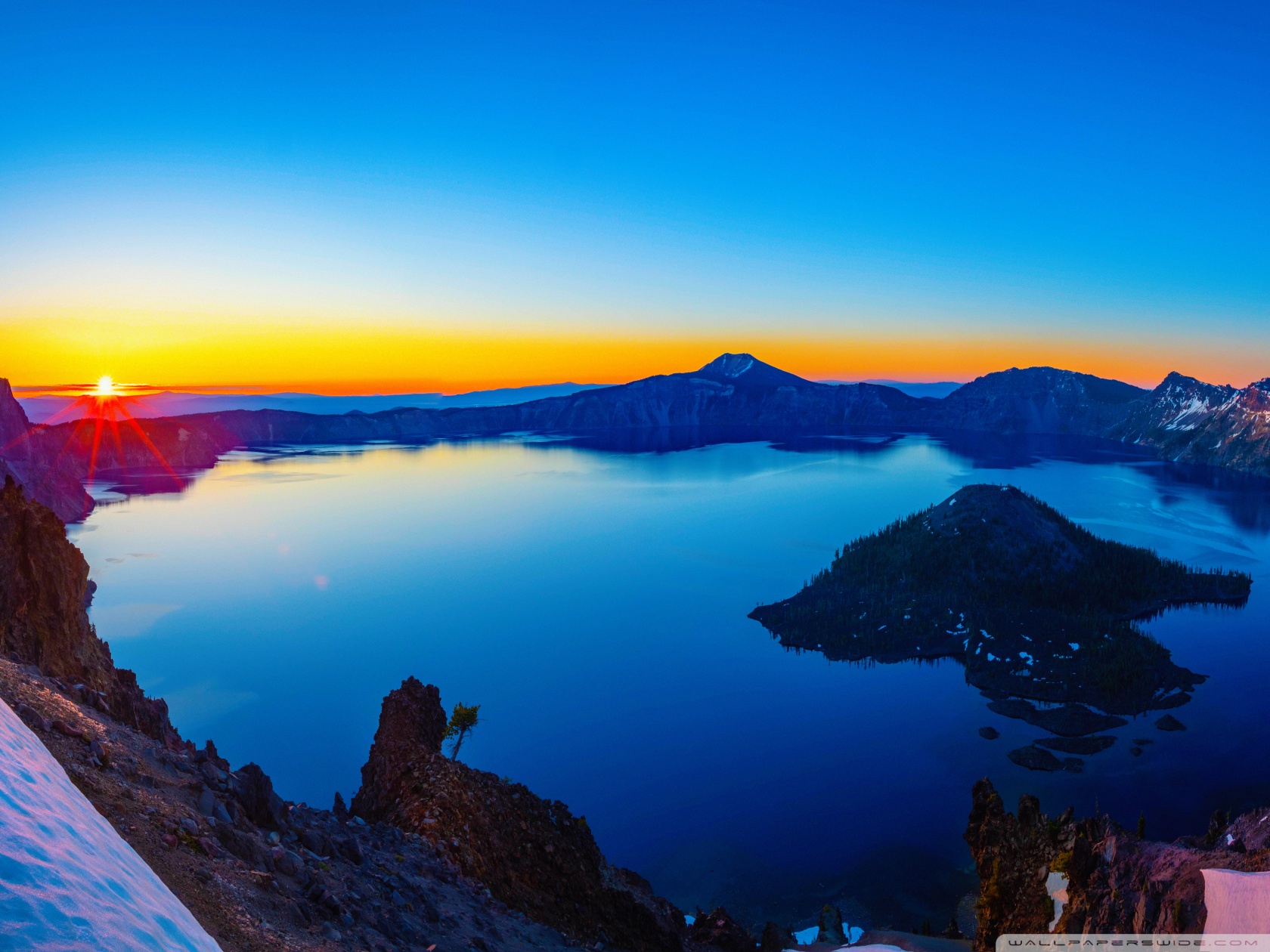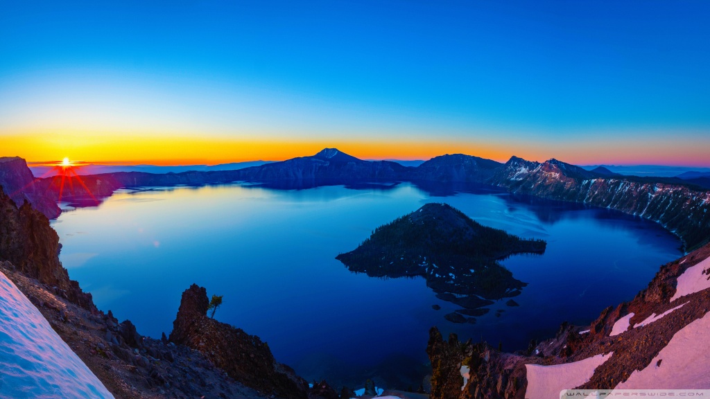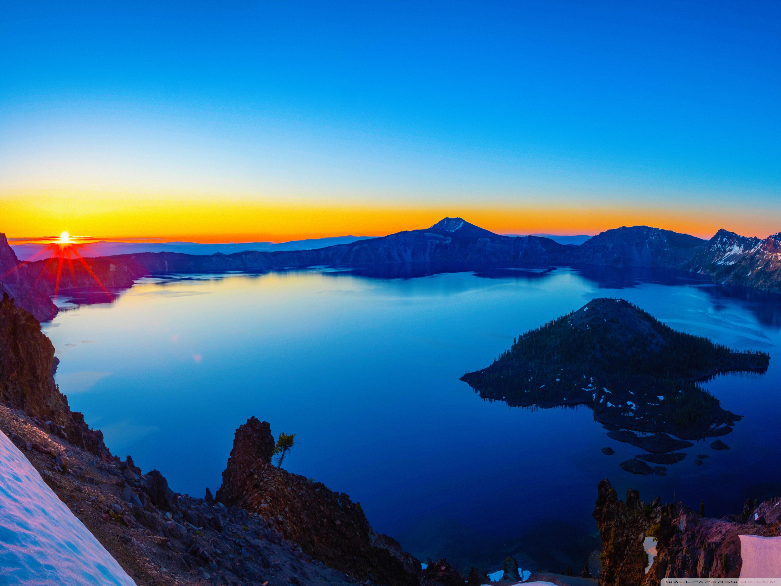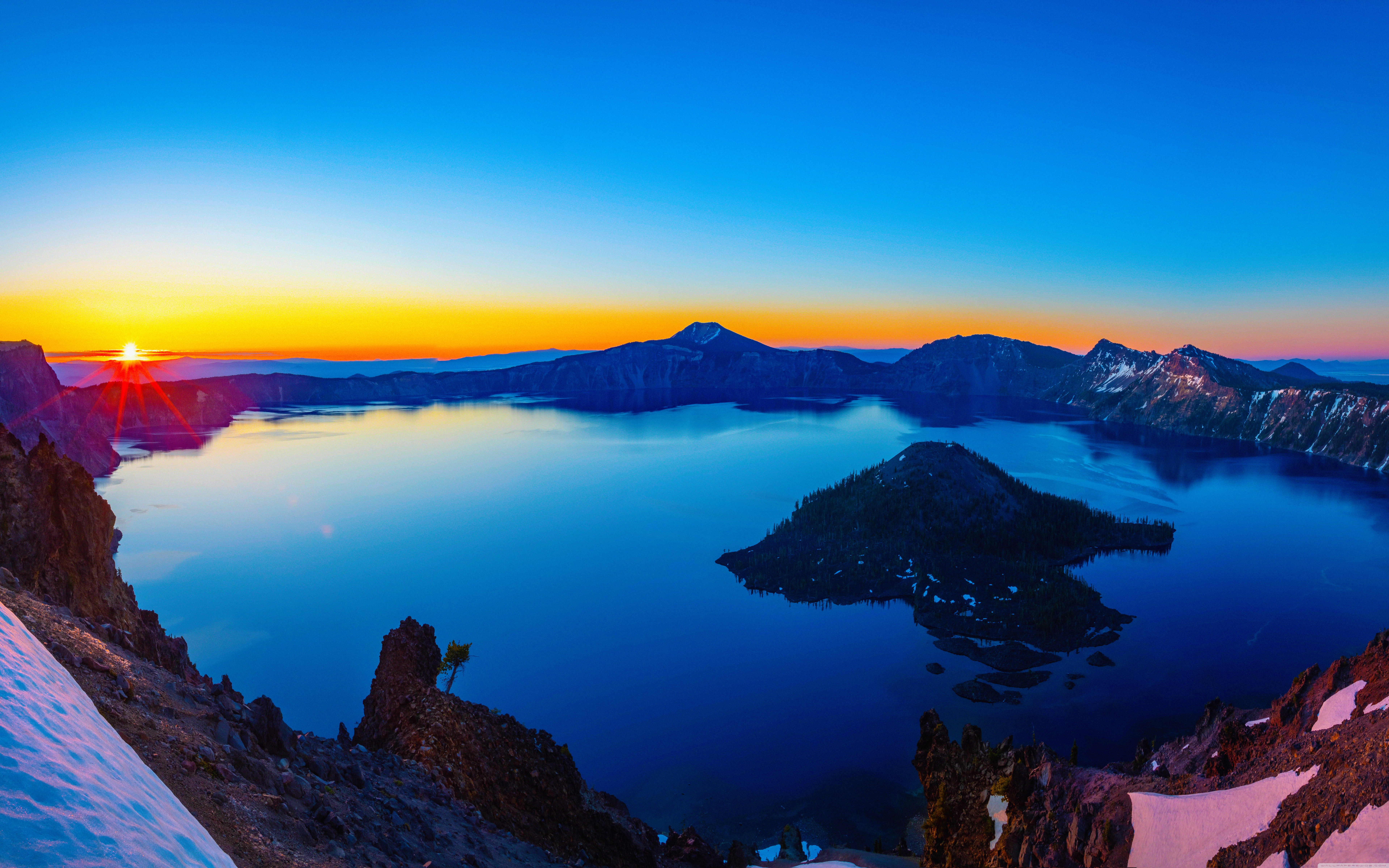 Download Sunrise Over Crater Lake National Park, Oregon 4K UHD Wallpaper