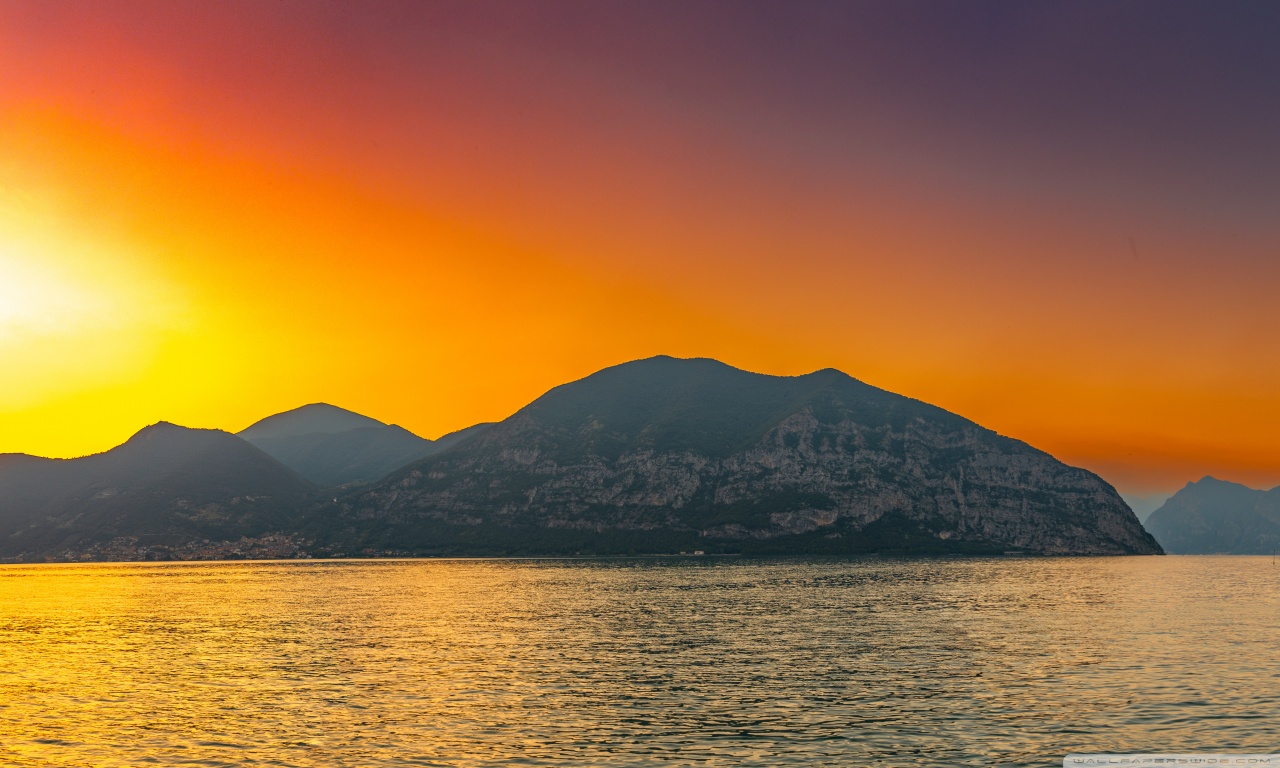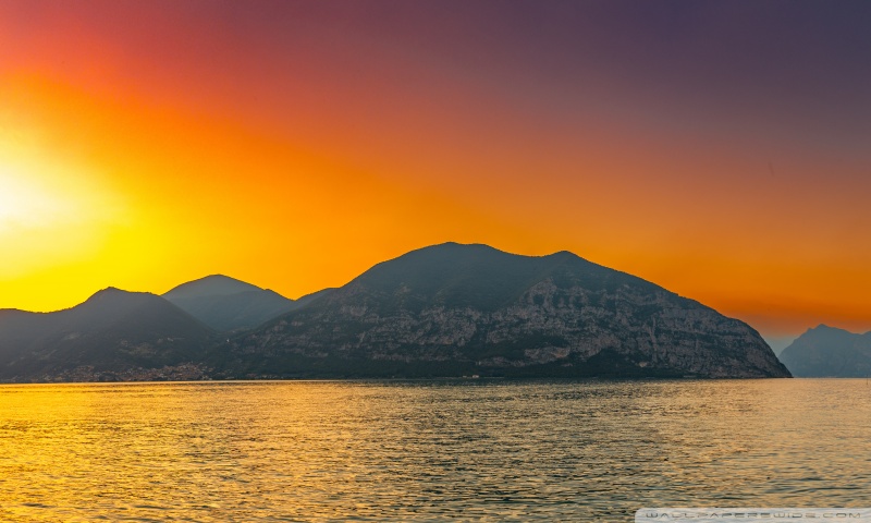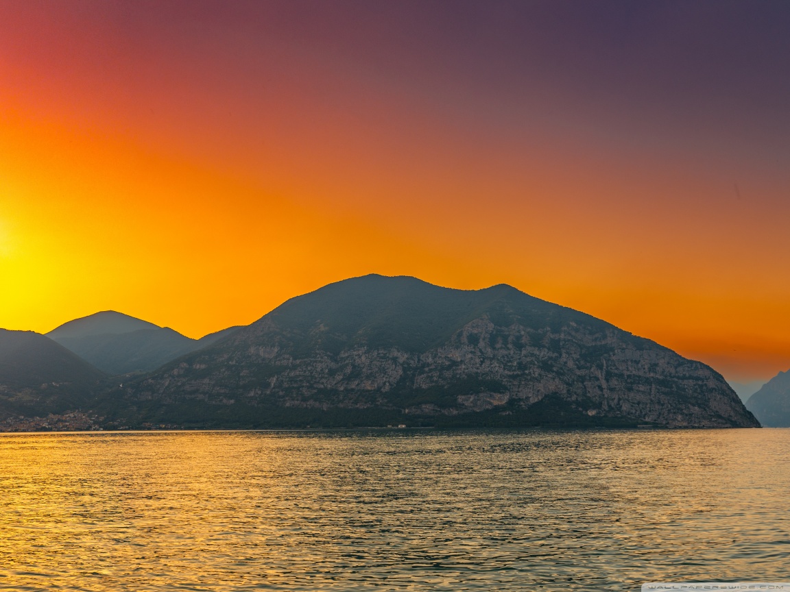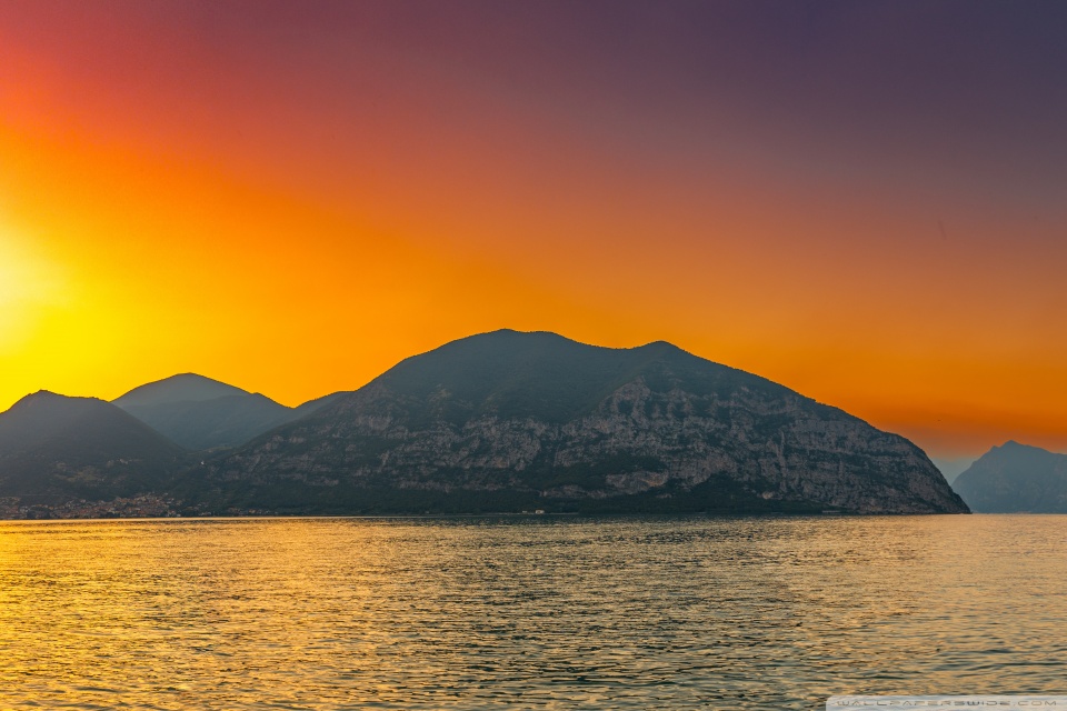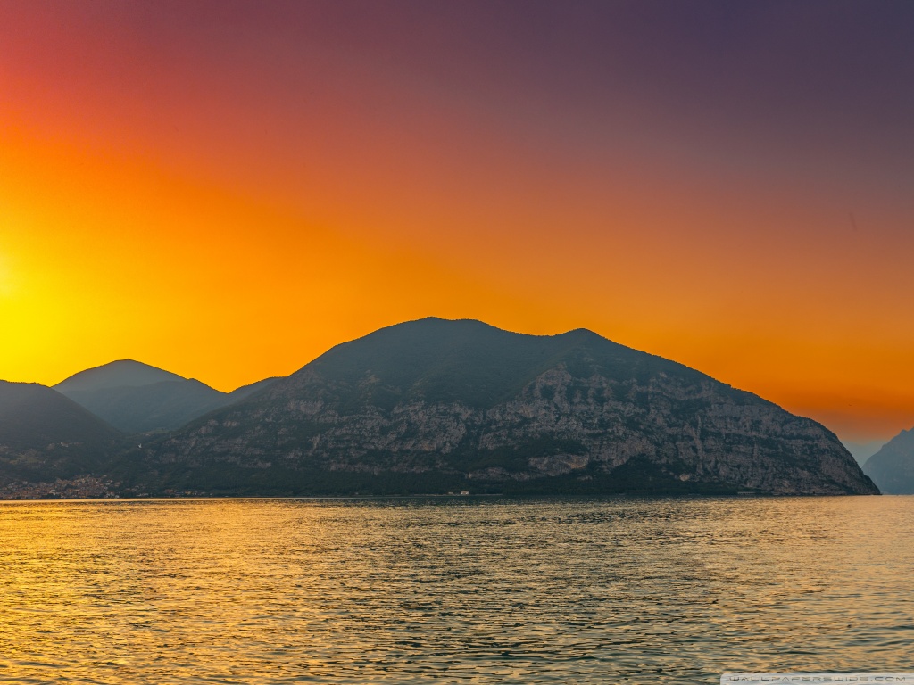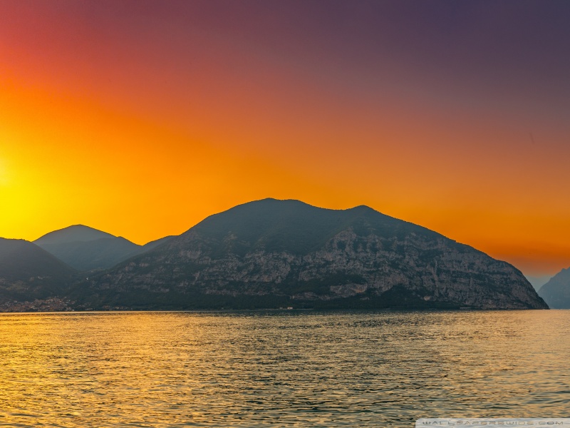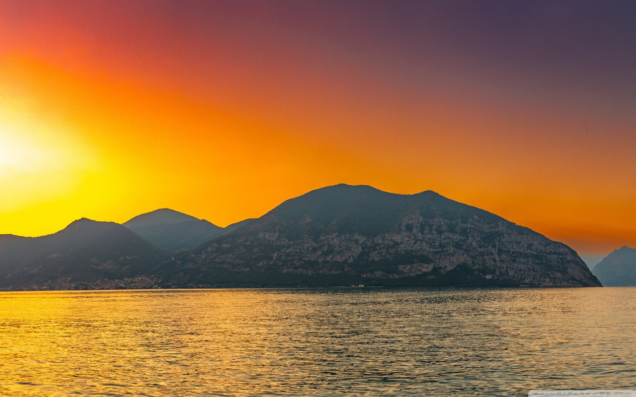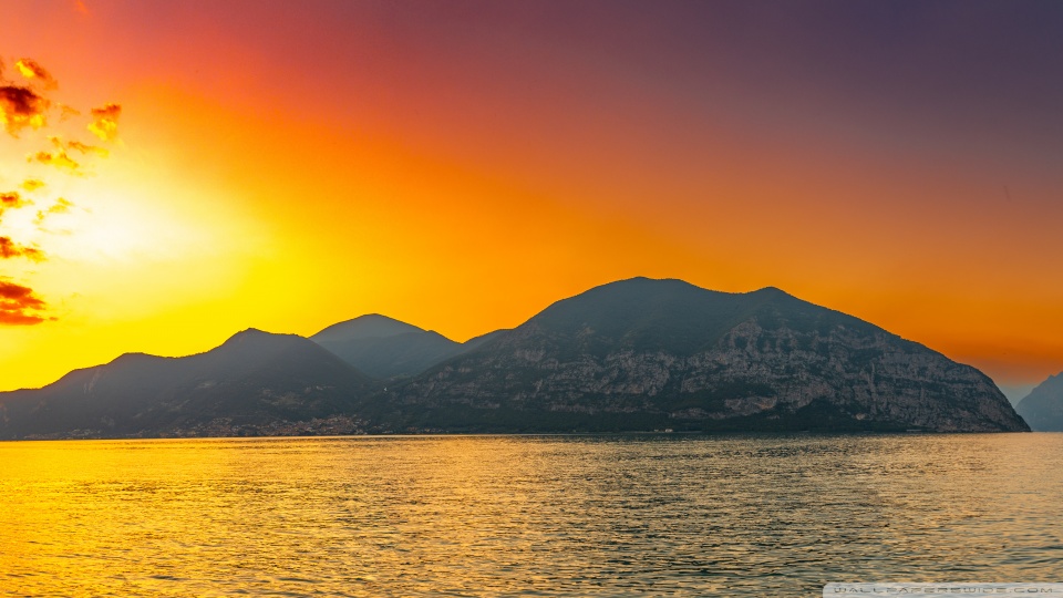 Download Sunset, Lake Iseo, Lombardy, Italy 4K UHD Wallpaper