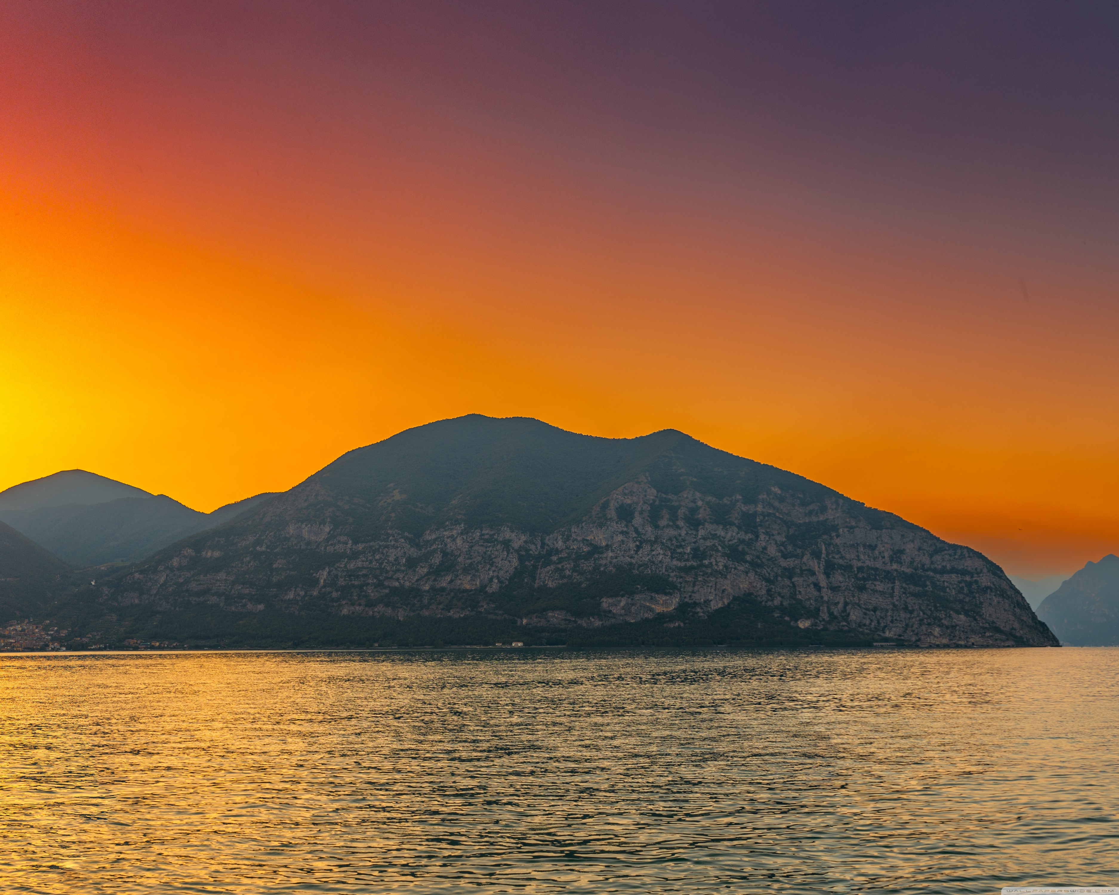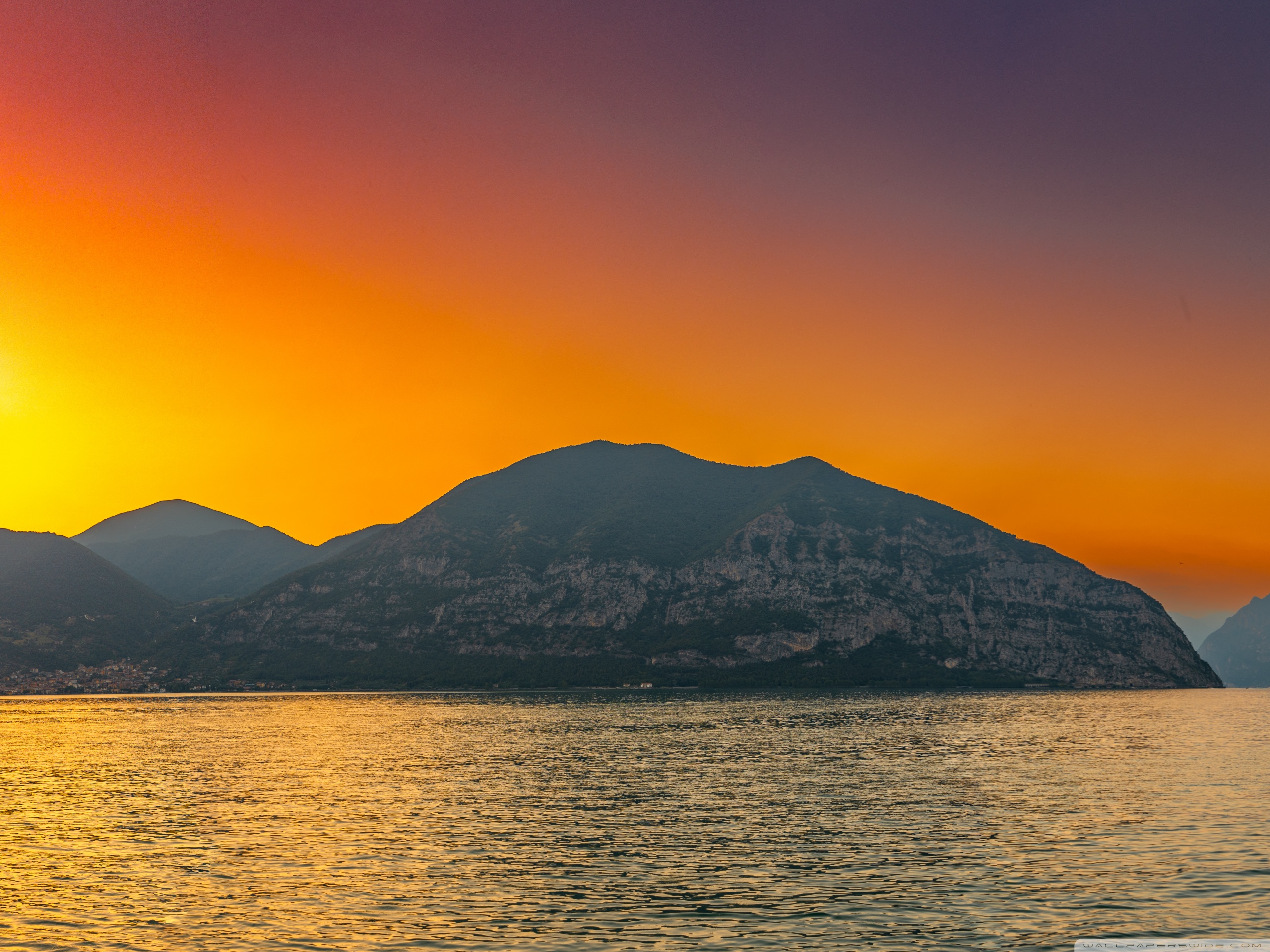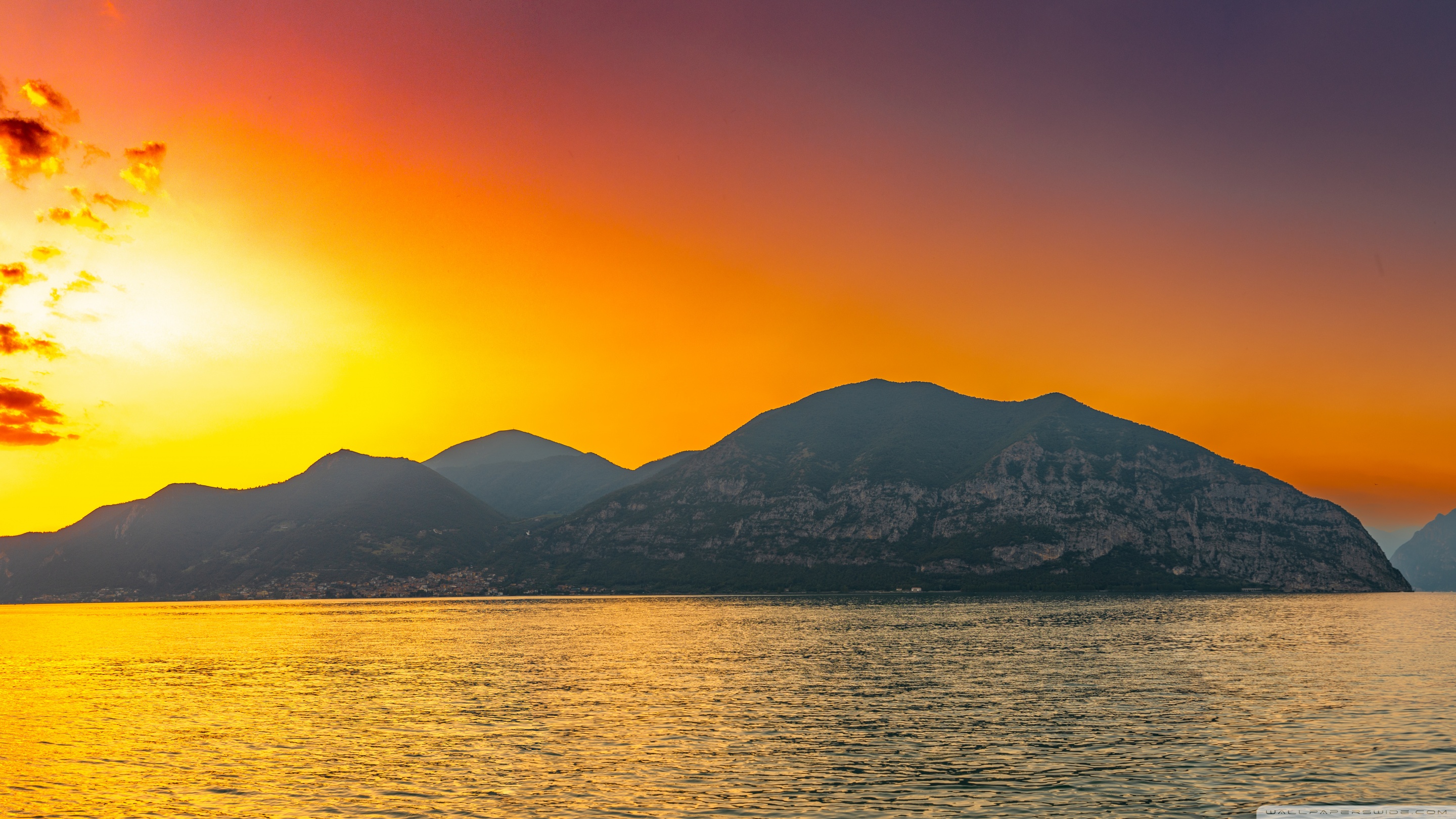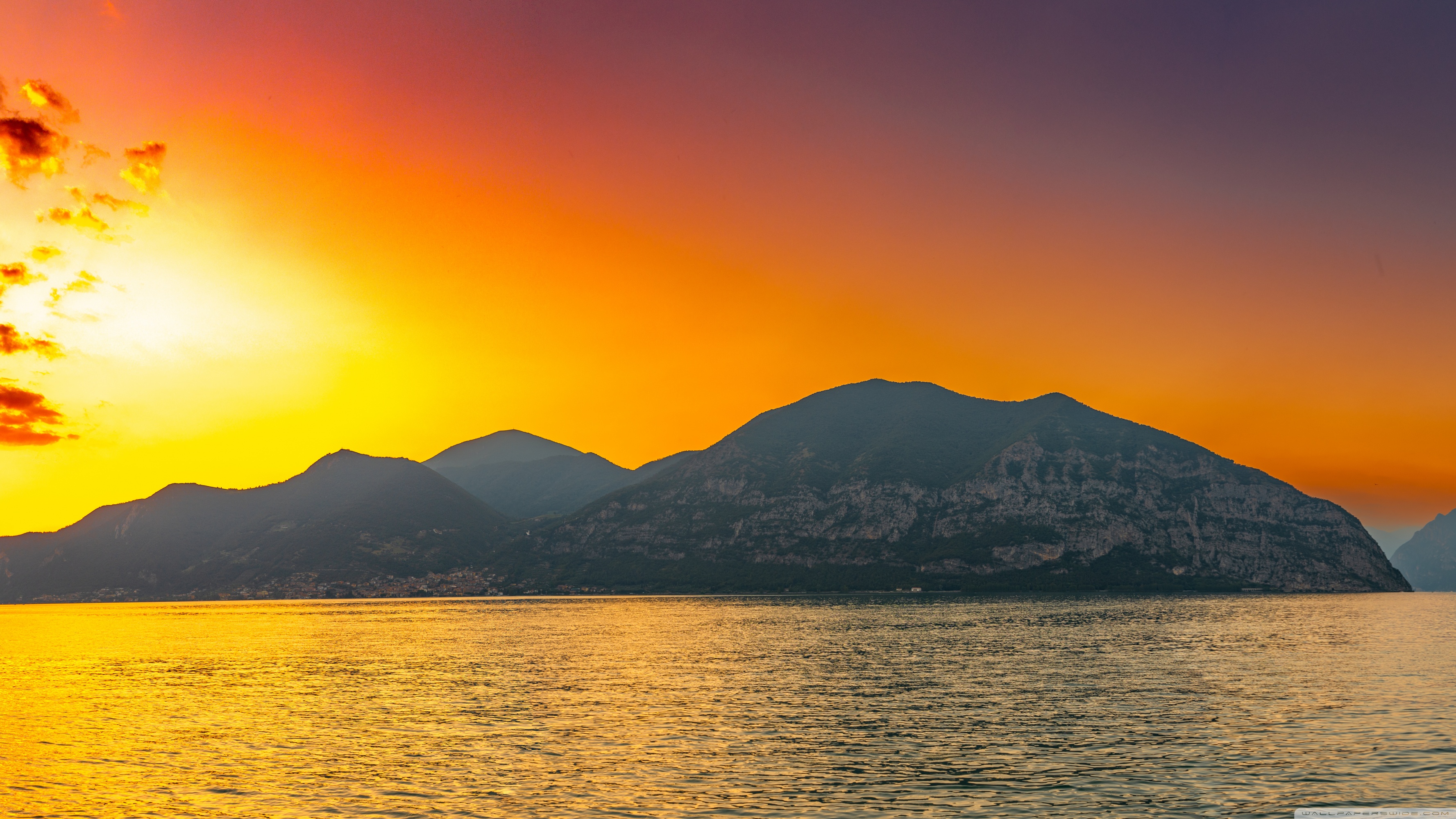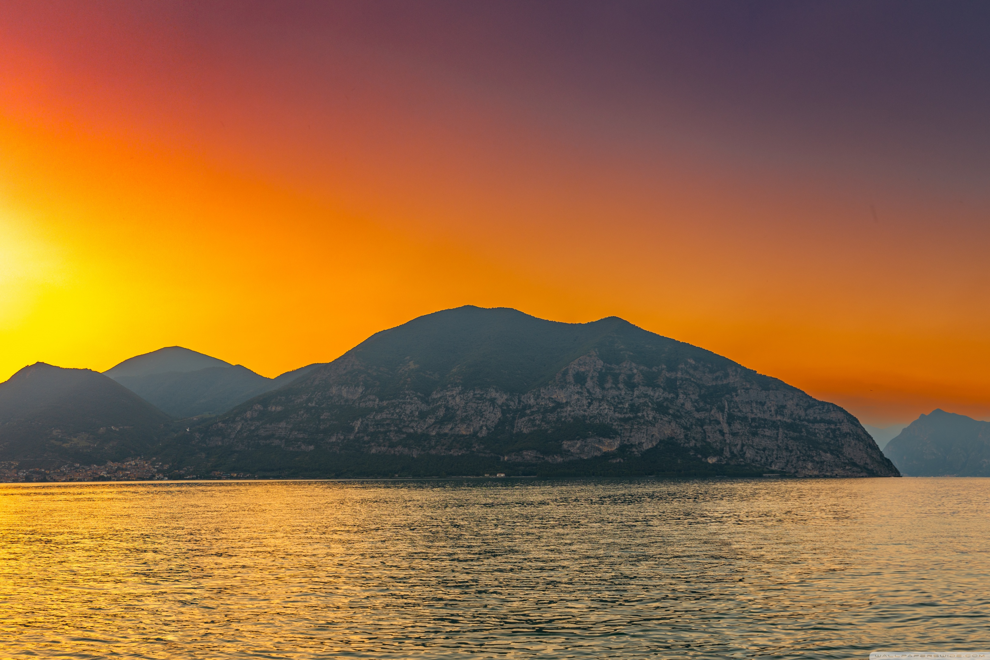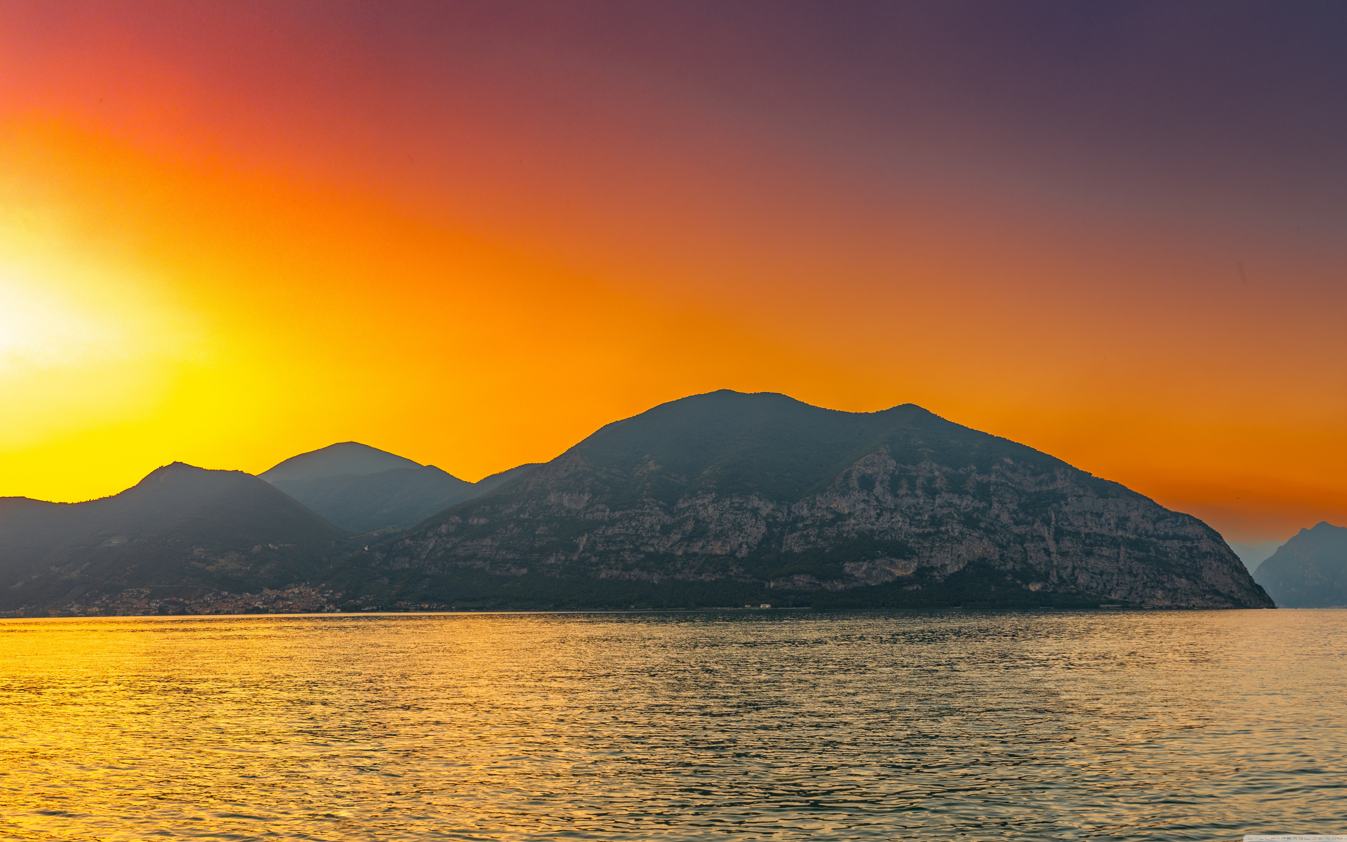 Download Sunset, Lake Iseo, Lombardy, Italy 4K UHD Wallpaper