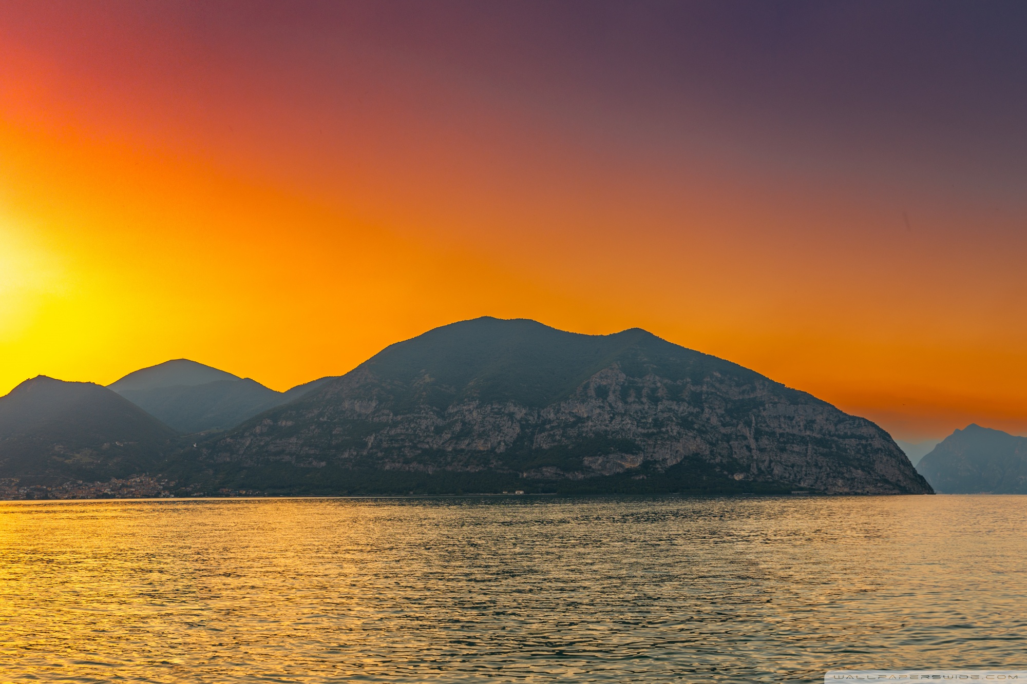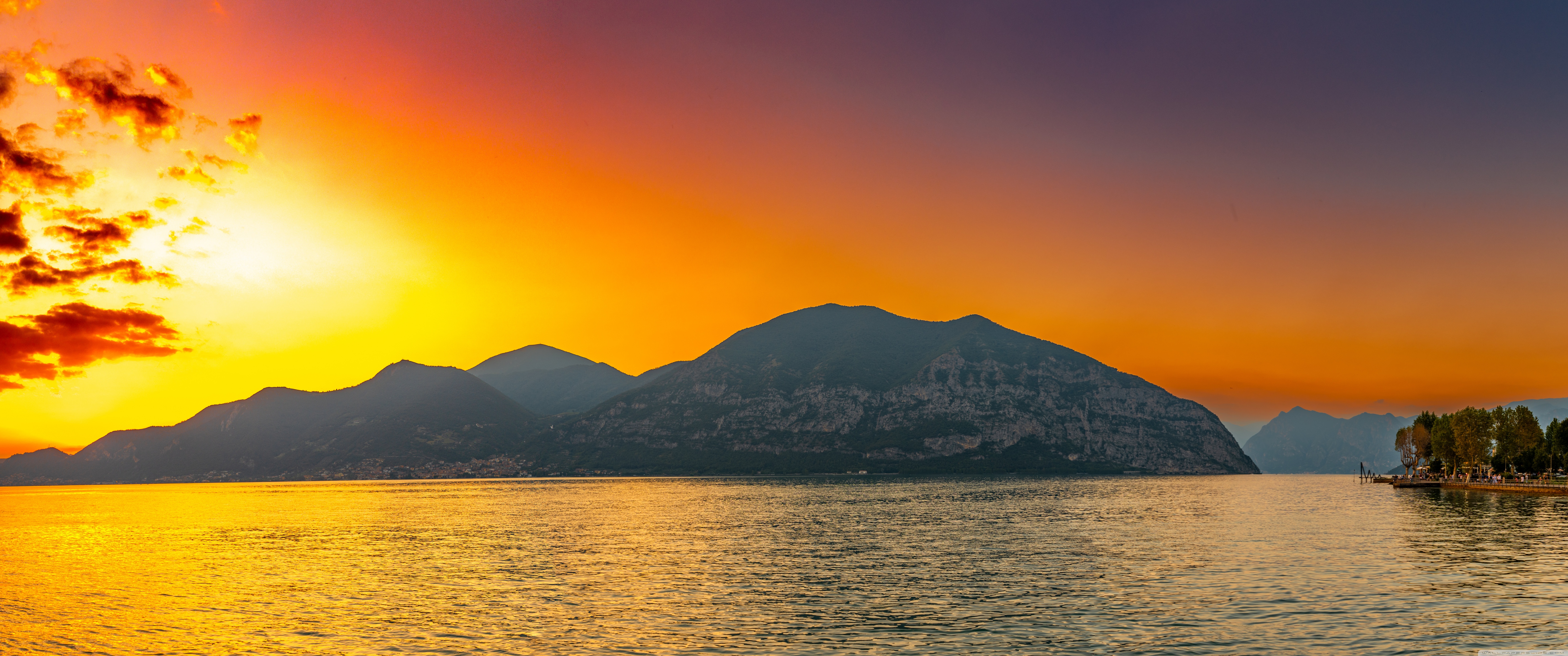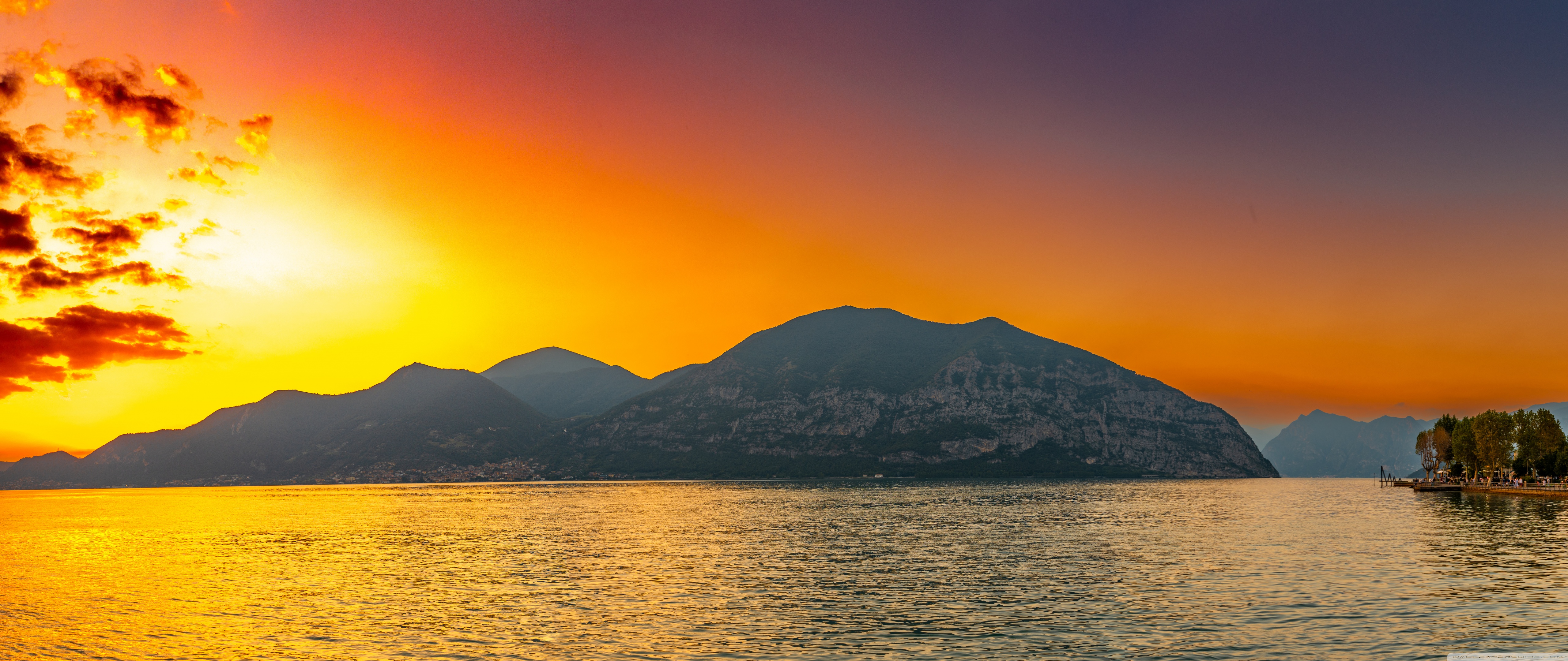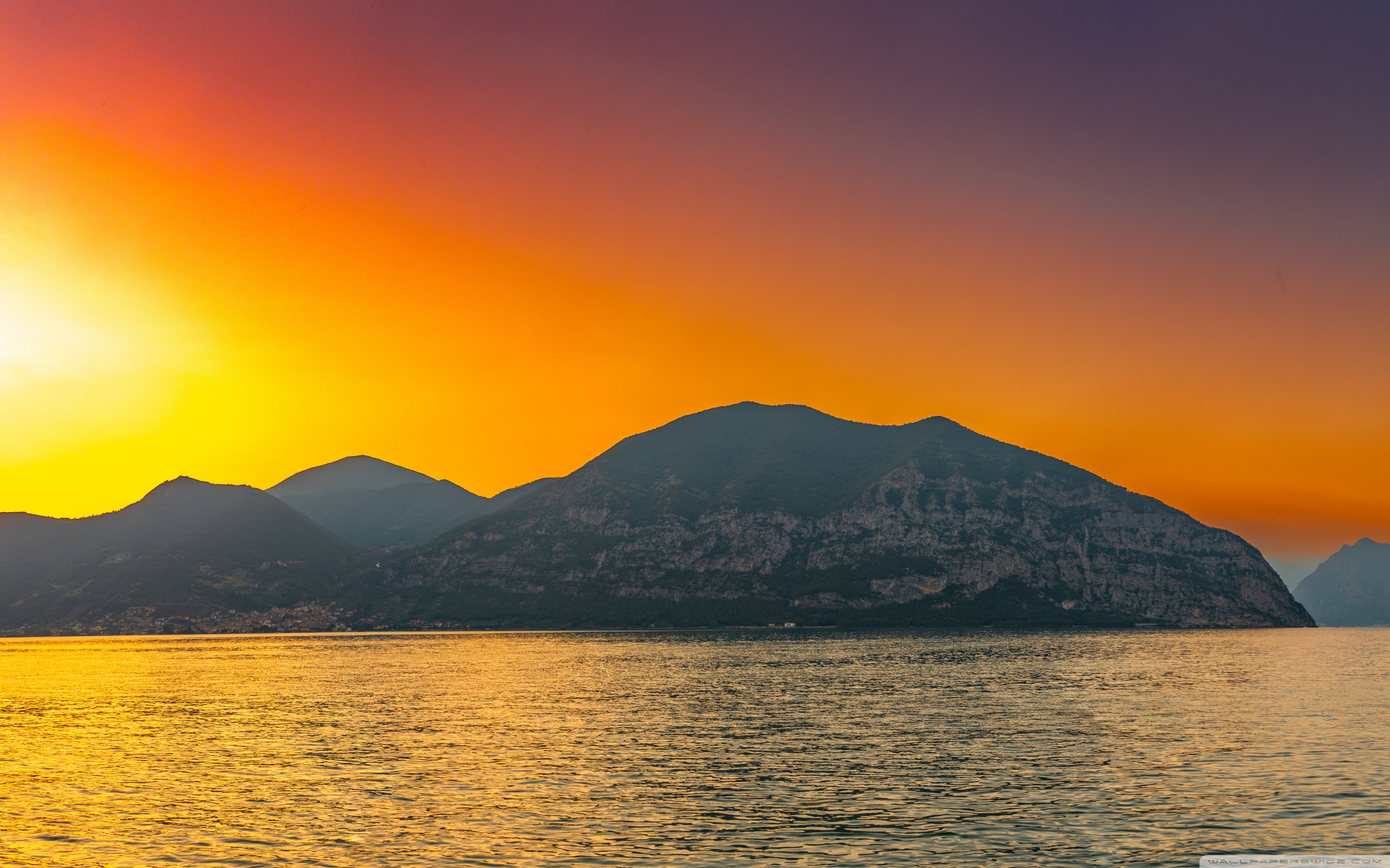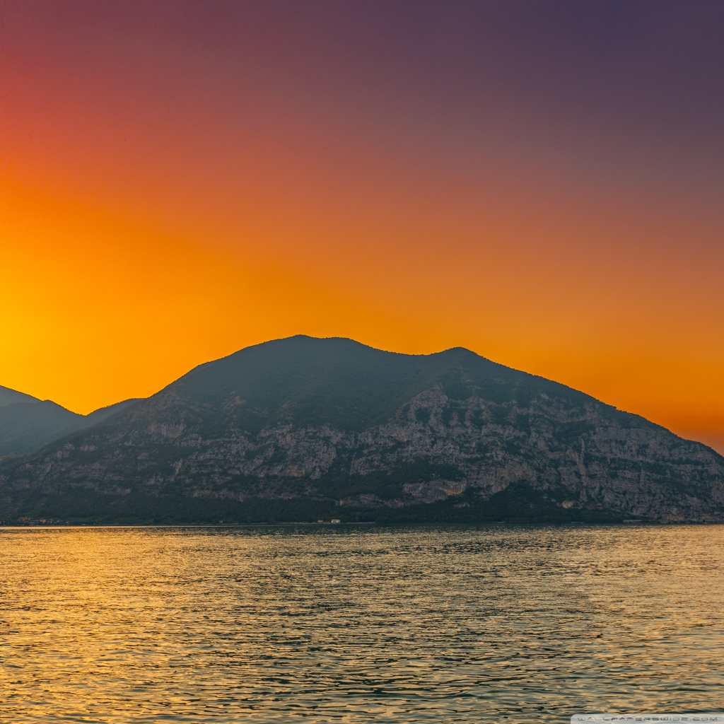 Download Sunset, Lake Iseo, Lombardy, Italy 4K UHD Wallpaper