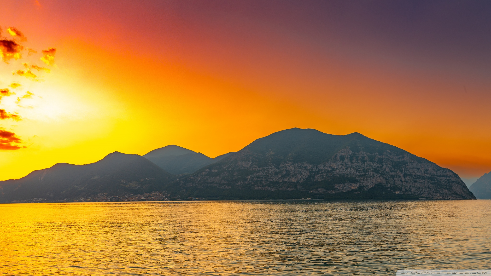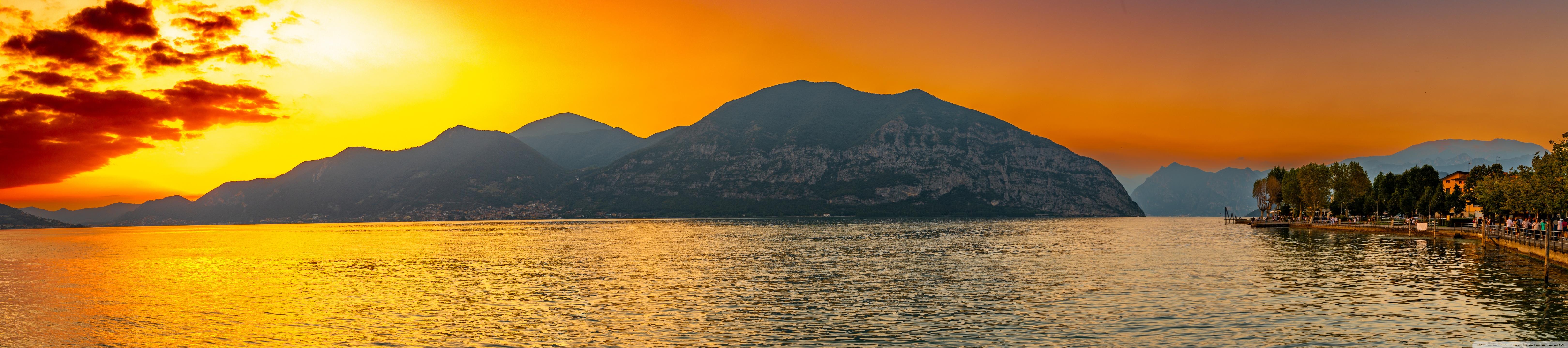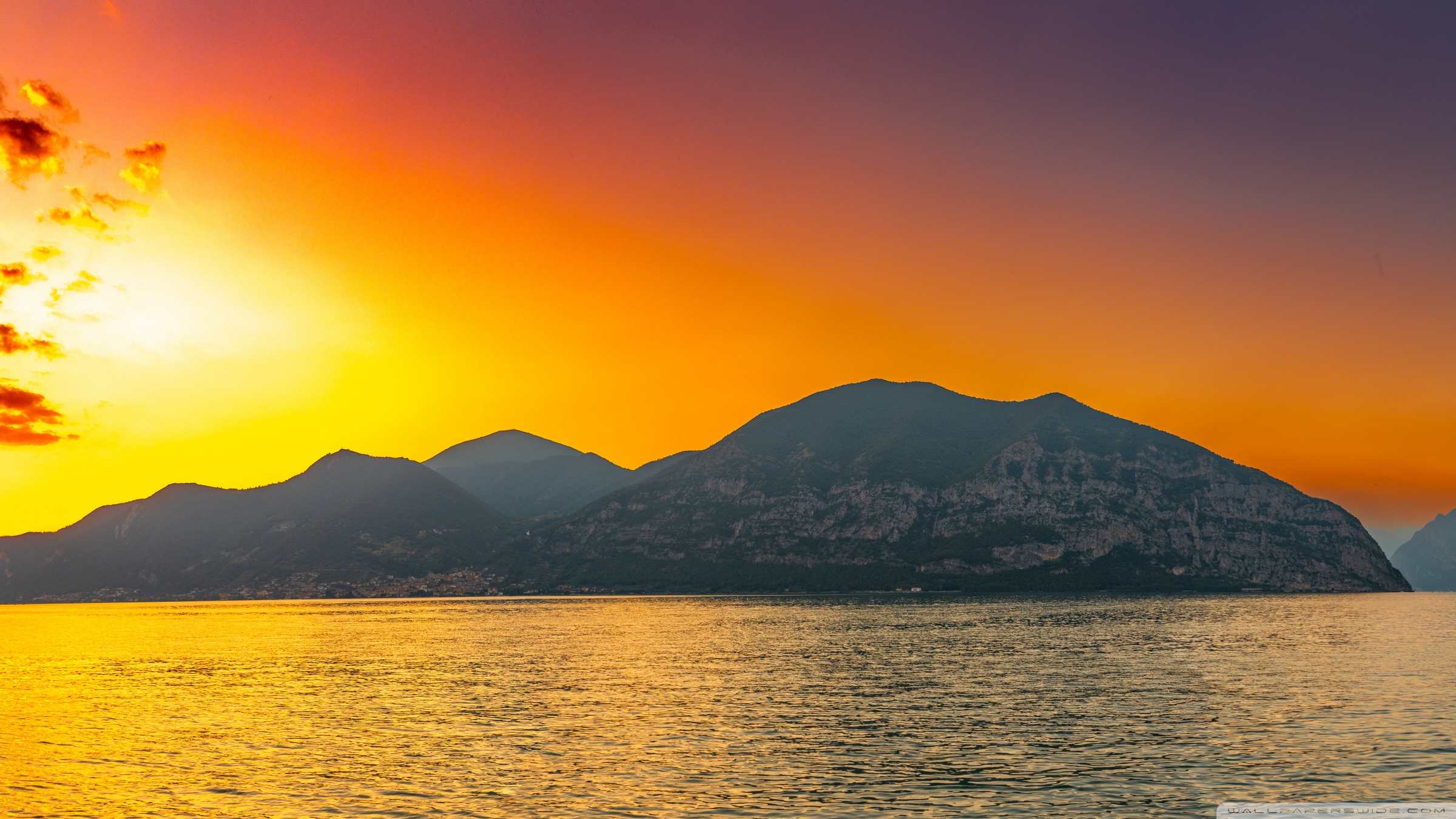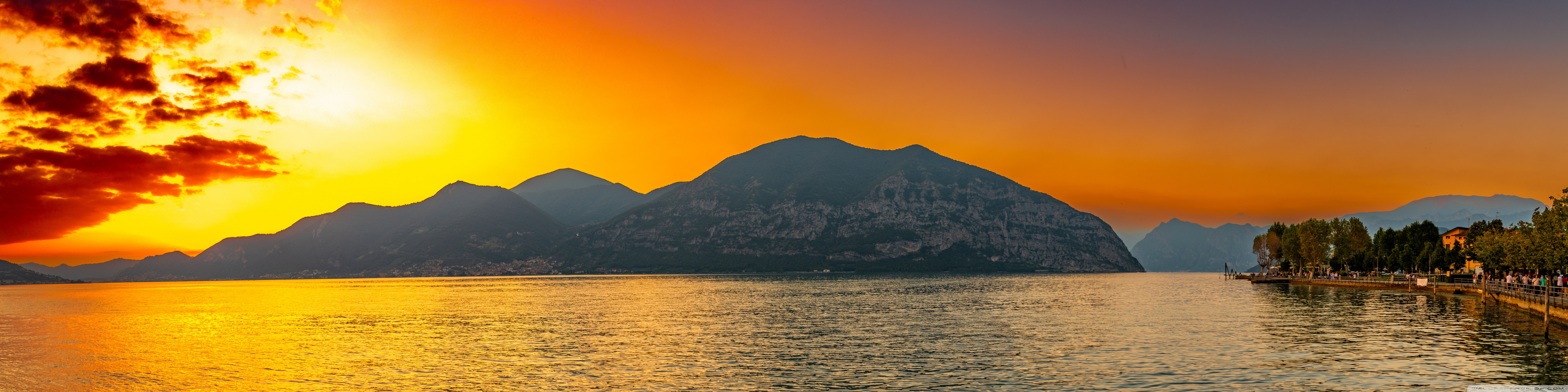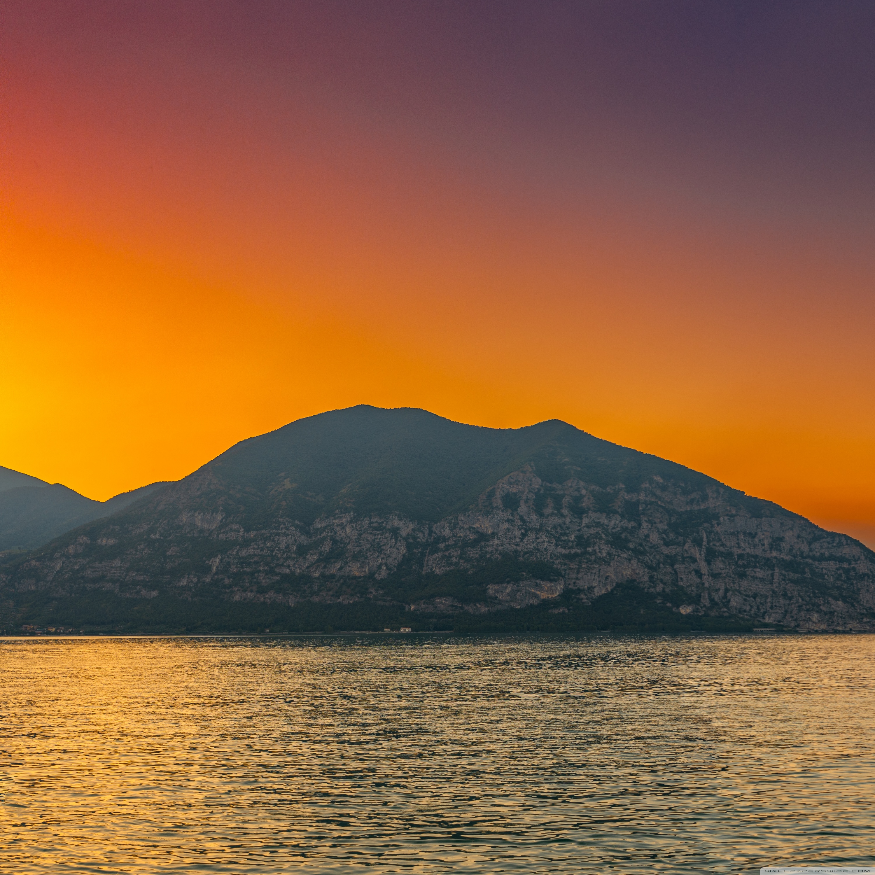 Download Sunset, Lake Iseo, Lombardy, Italy 4K UHD Wallpaper