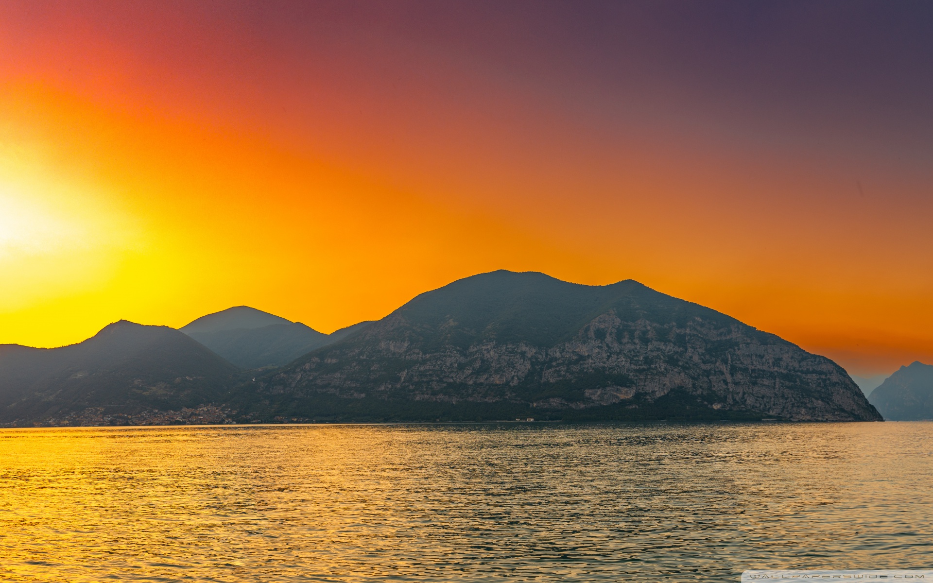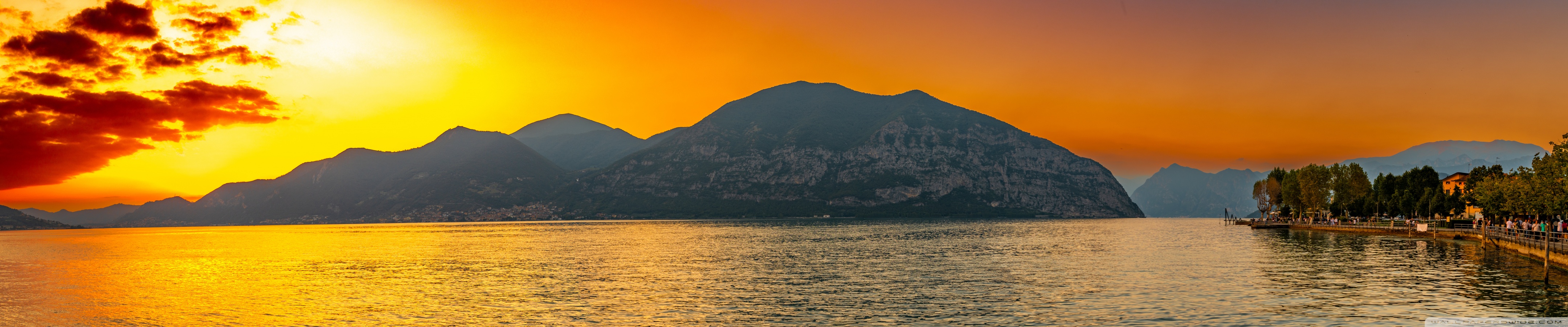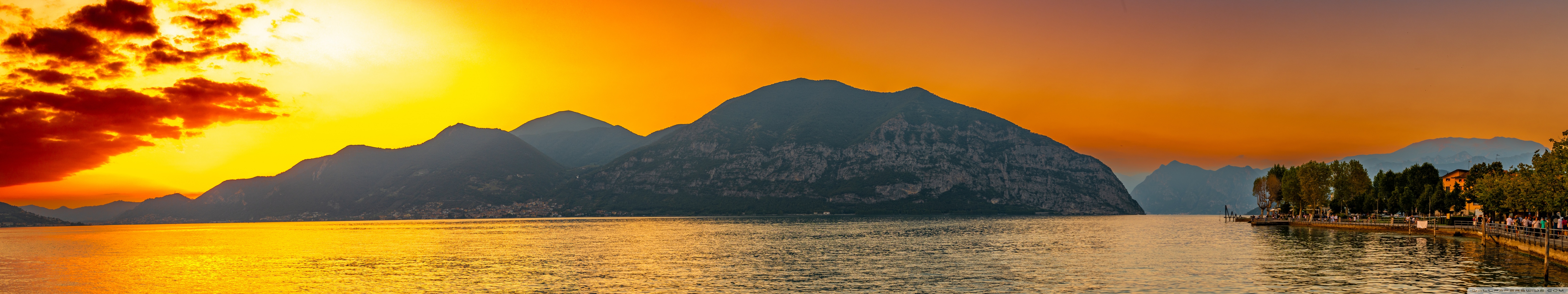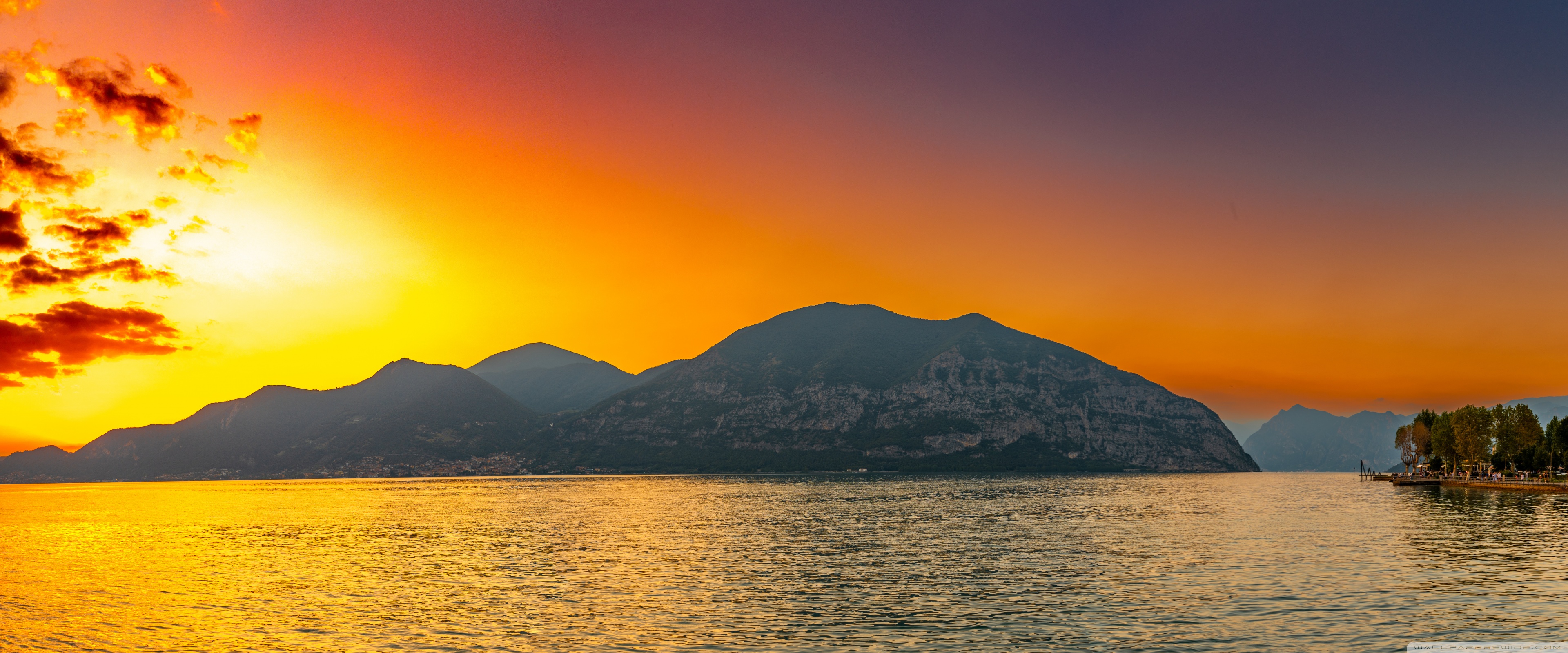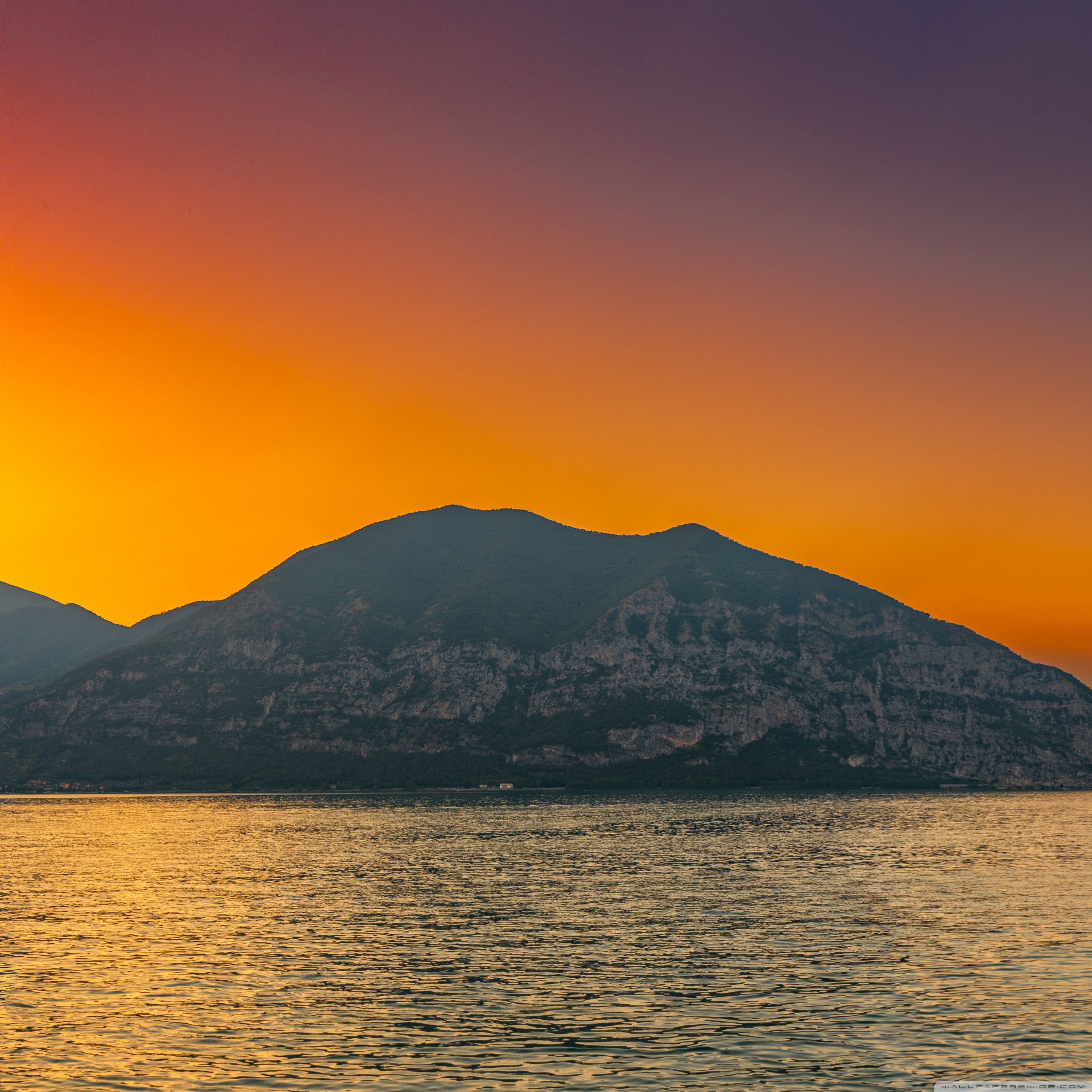 Download Sunset, Lake Iseo, Lombardy, Italy 4K UHD Wallpaper