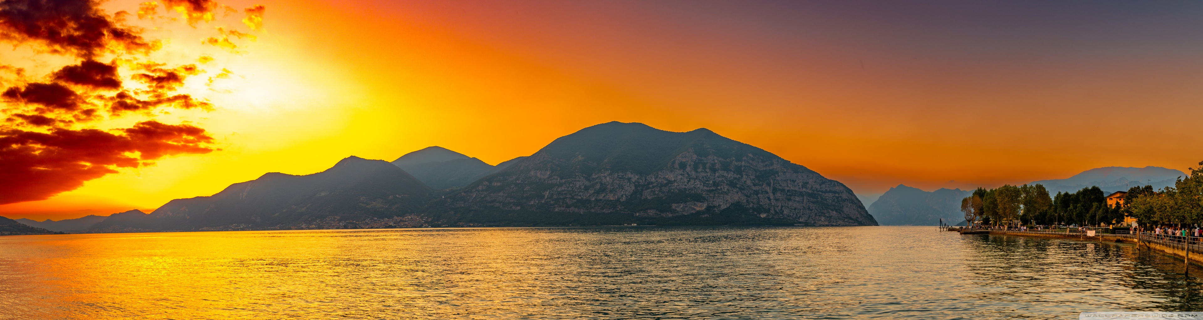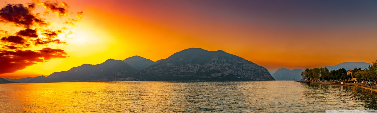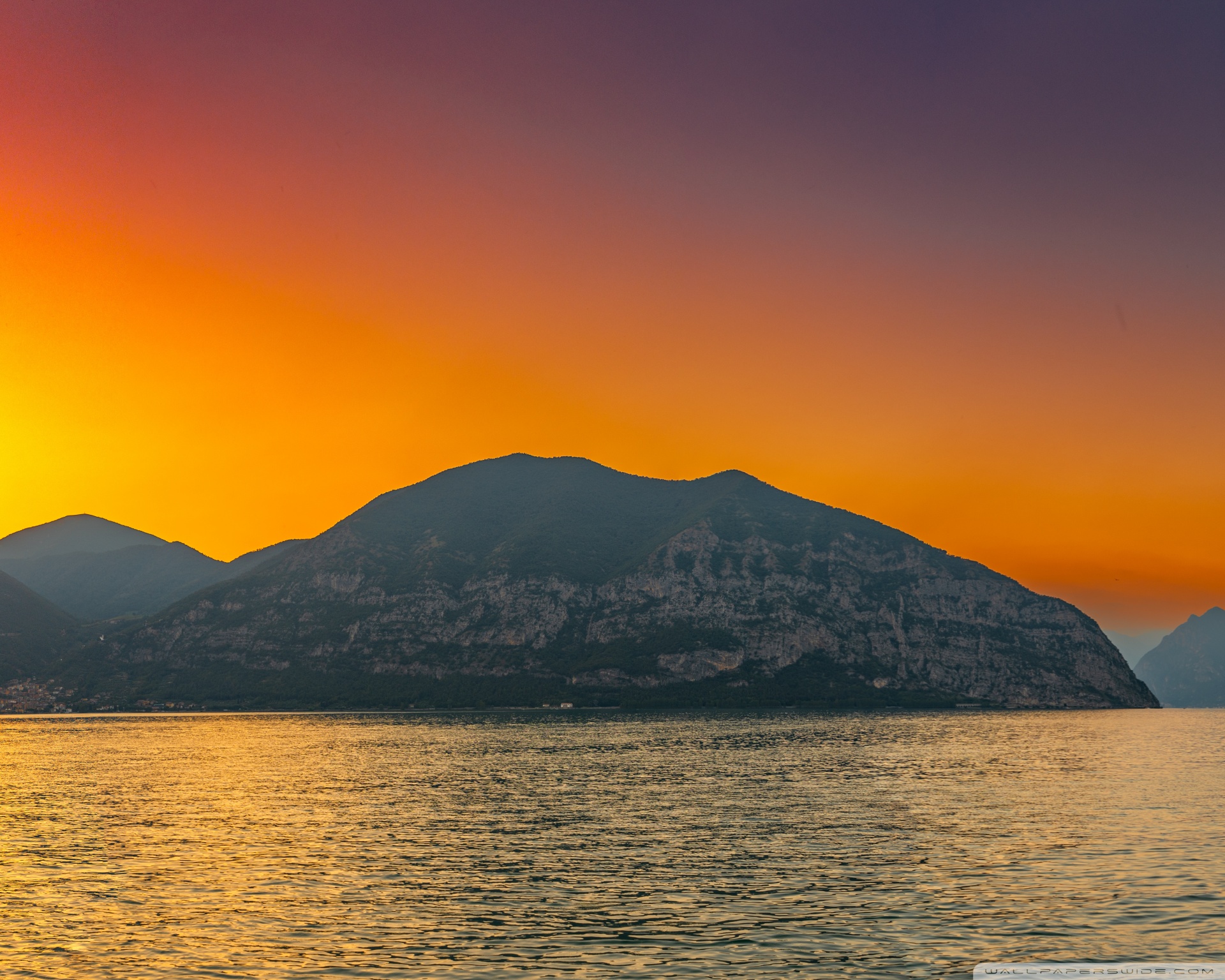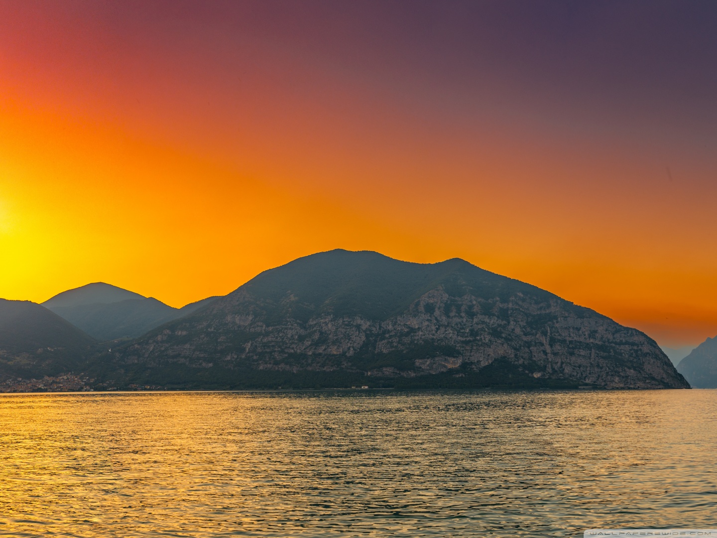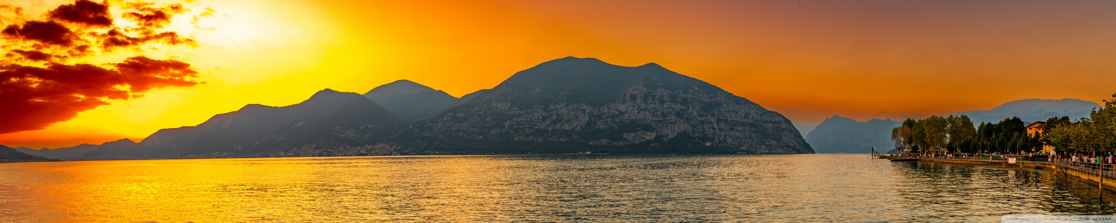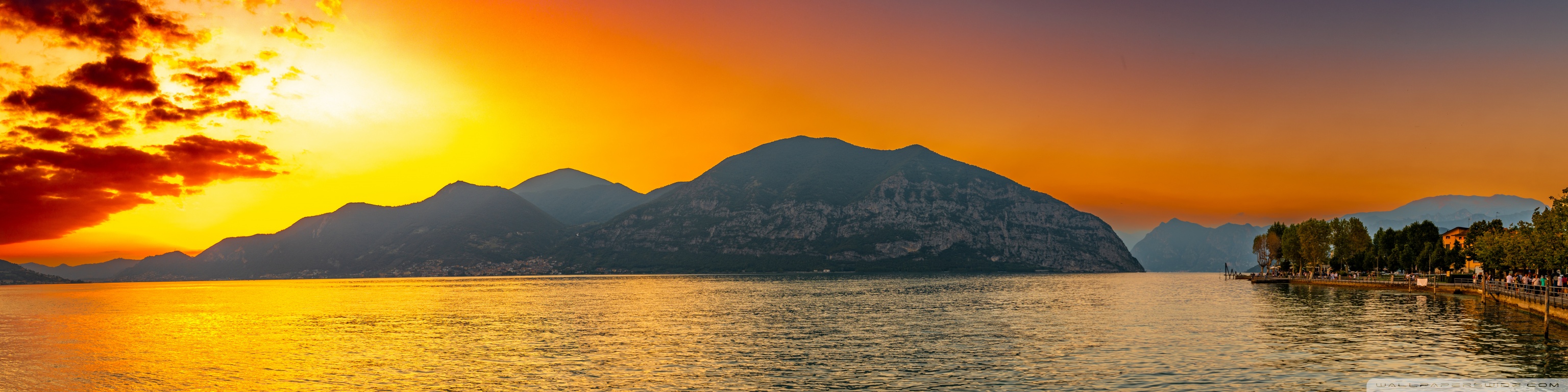 Download Sunset, Lake Iseo, Lombardy, Italy 4K UHD Wallpaper