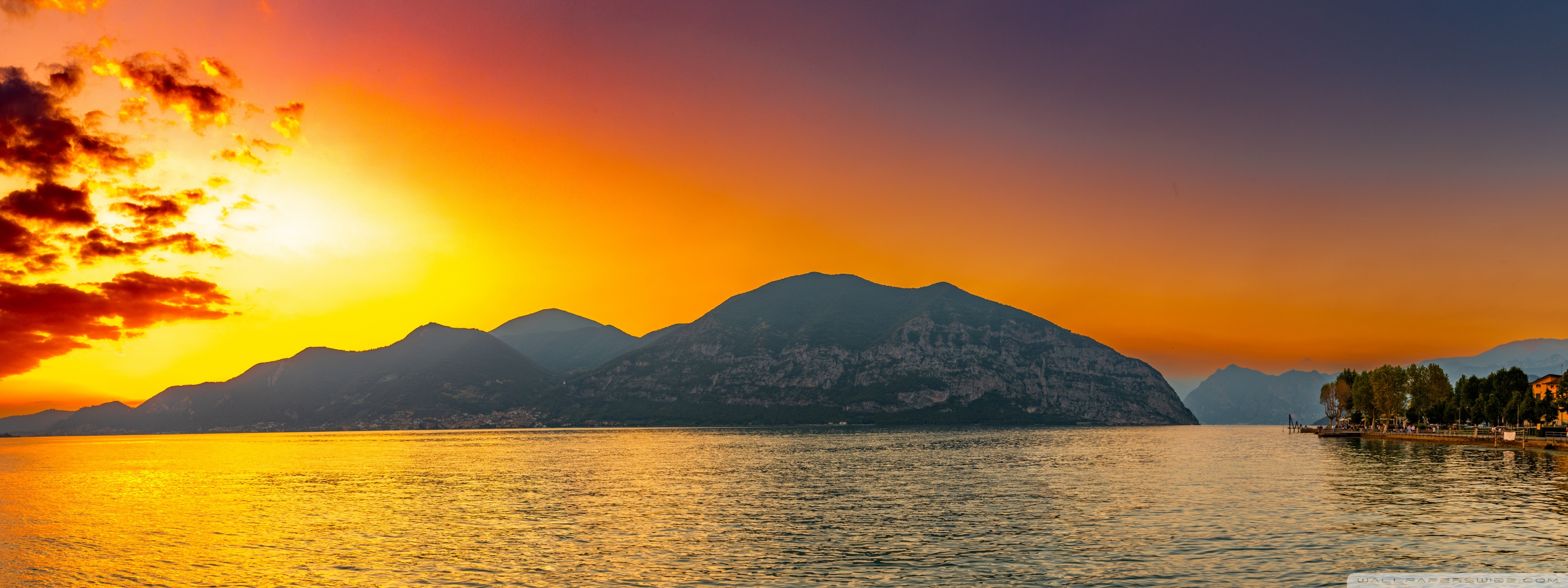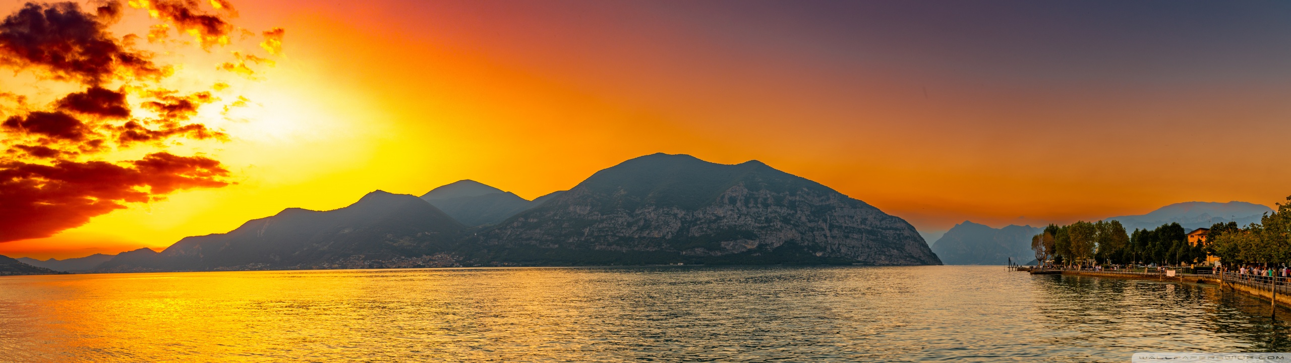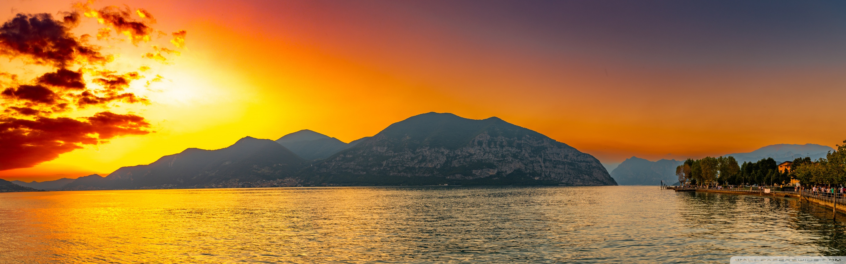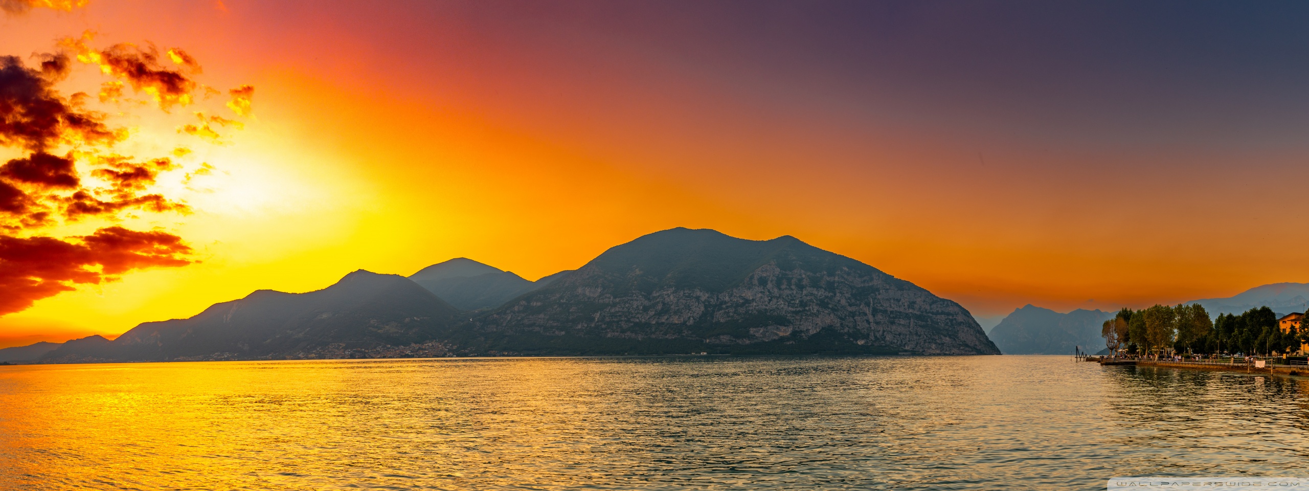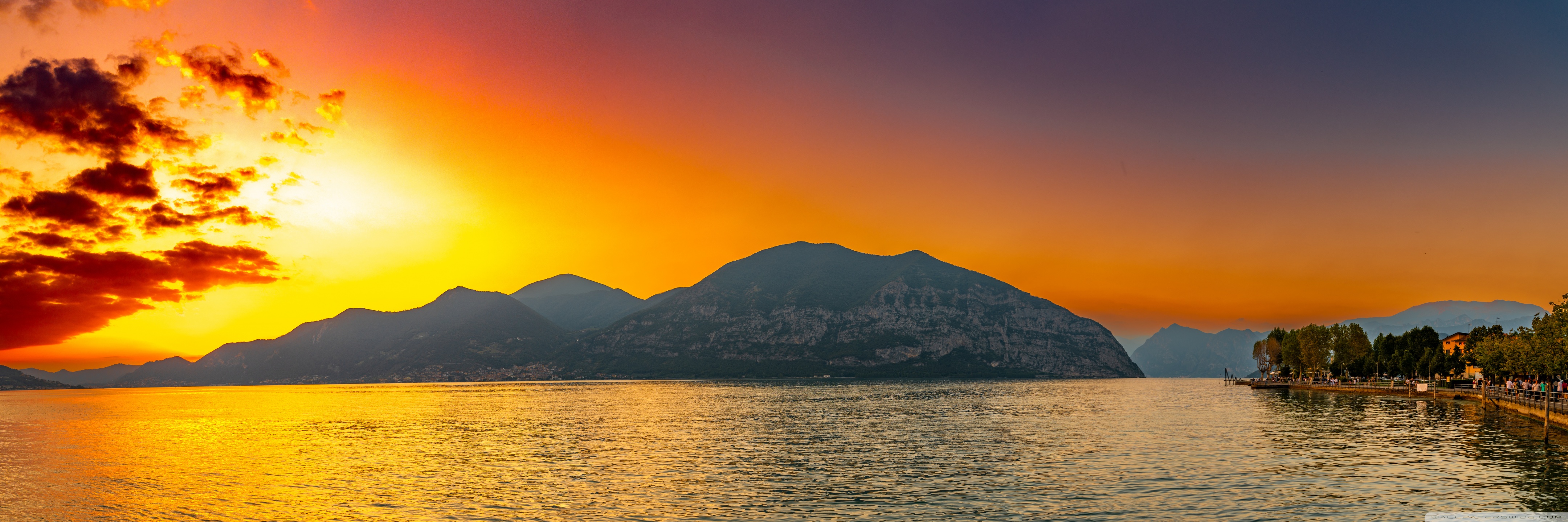 Download Sunset, Lake Iseo, Lombardy, Italy 4K UHD Wallpaper
