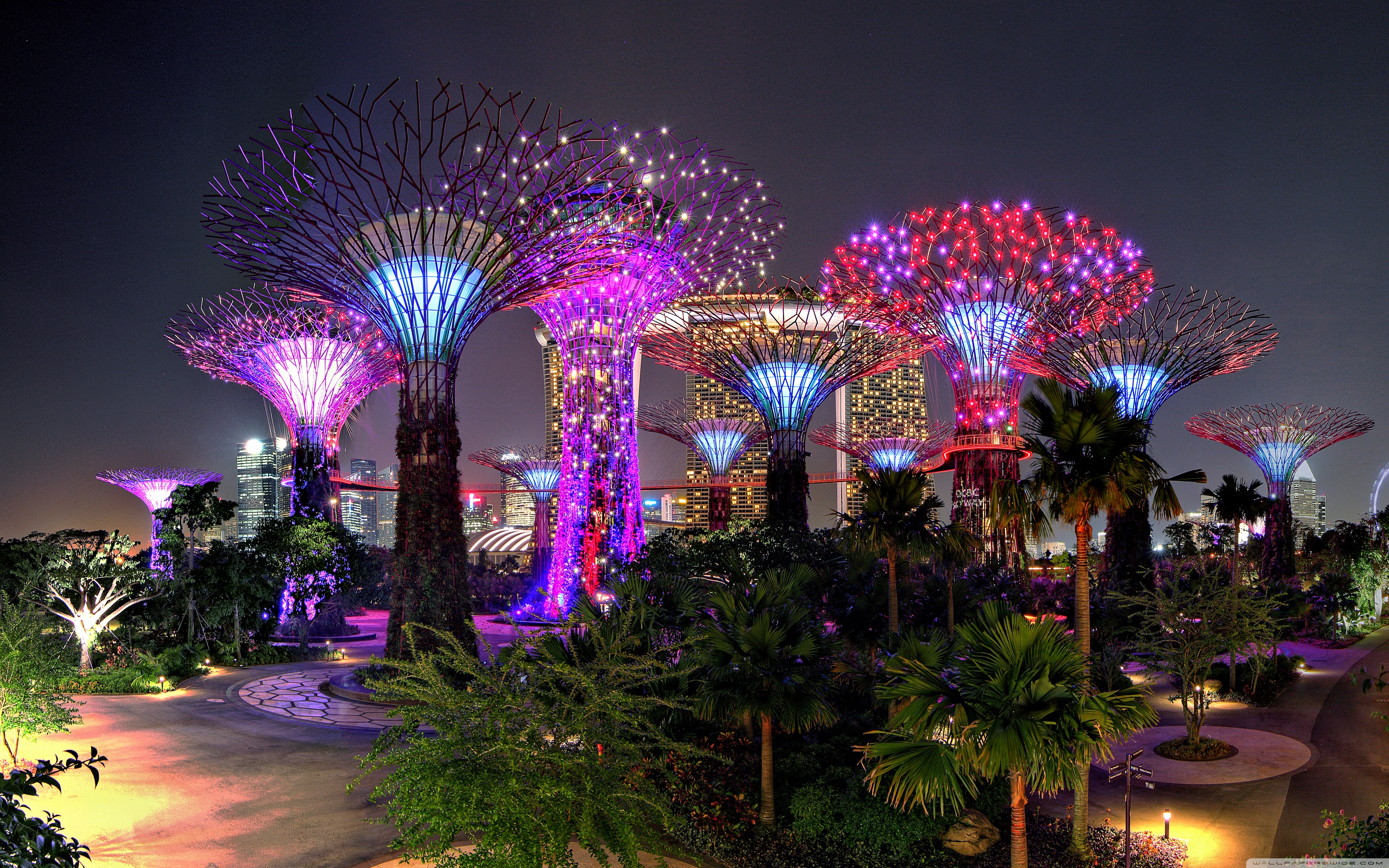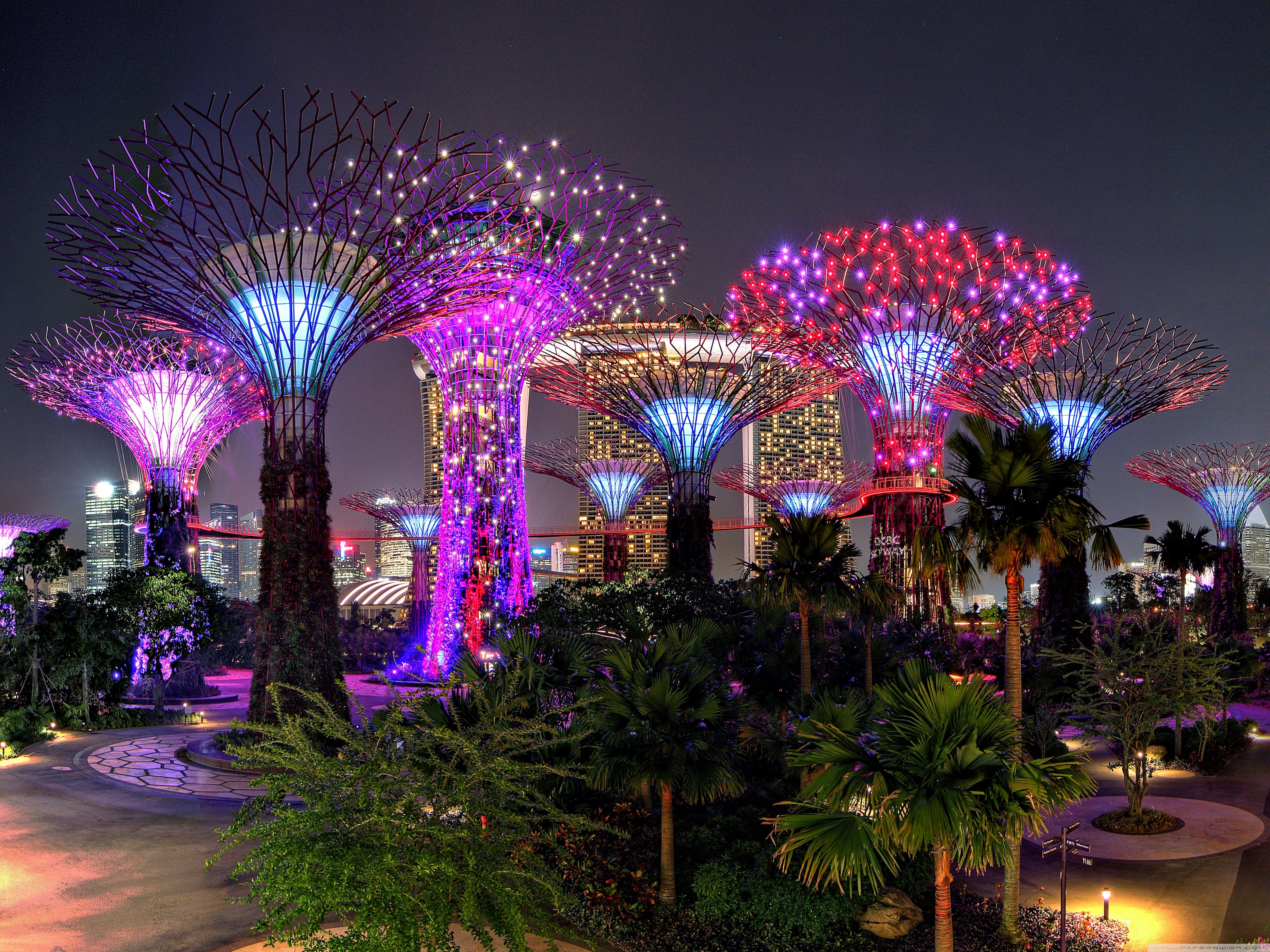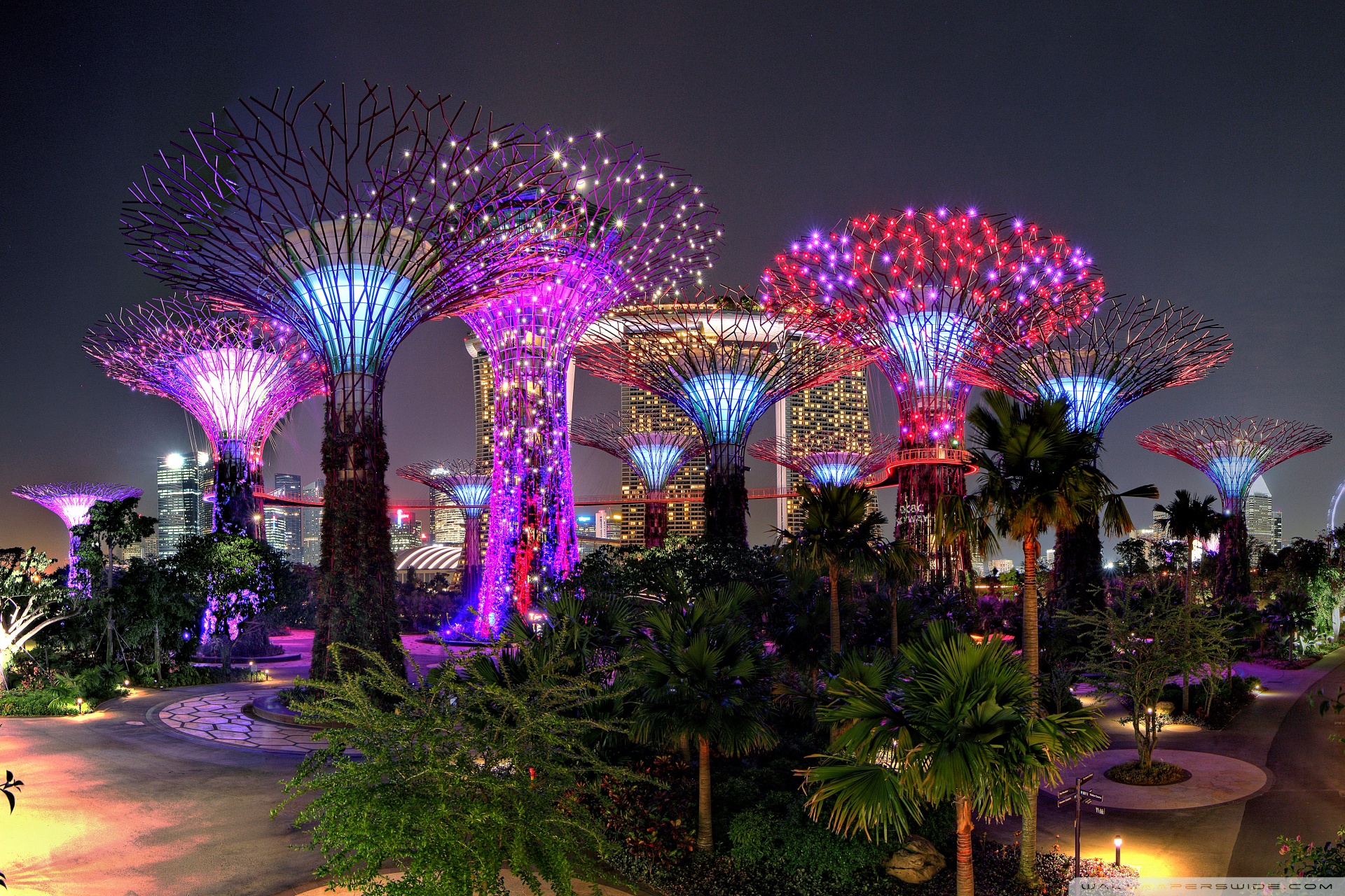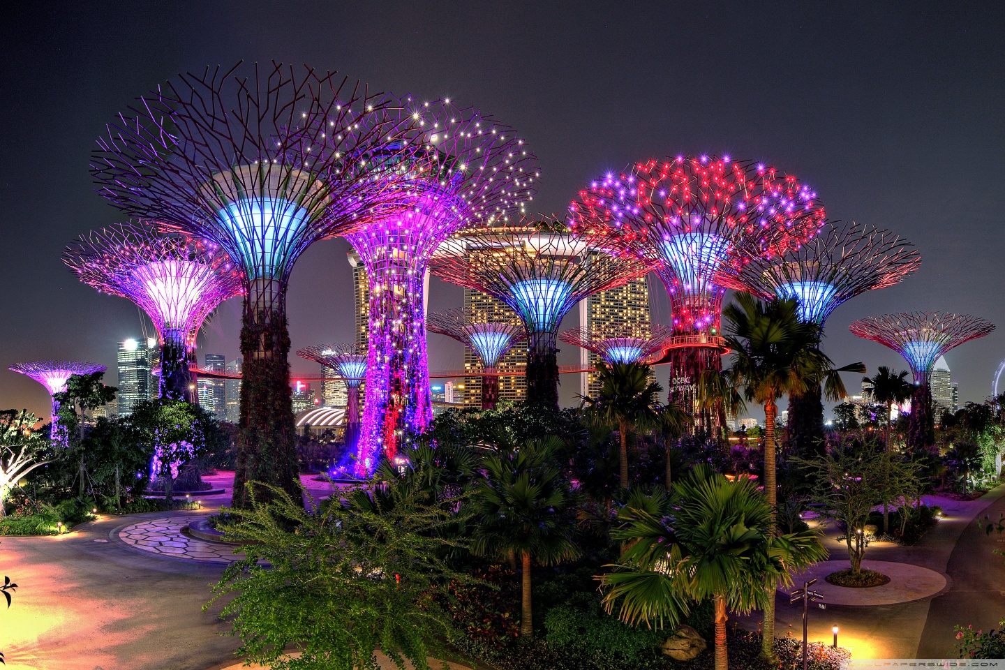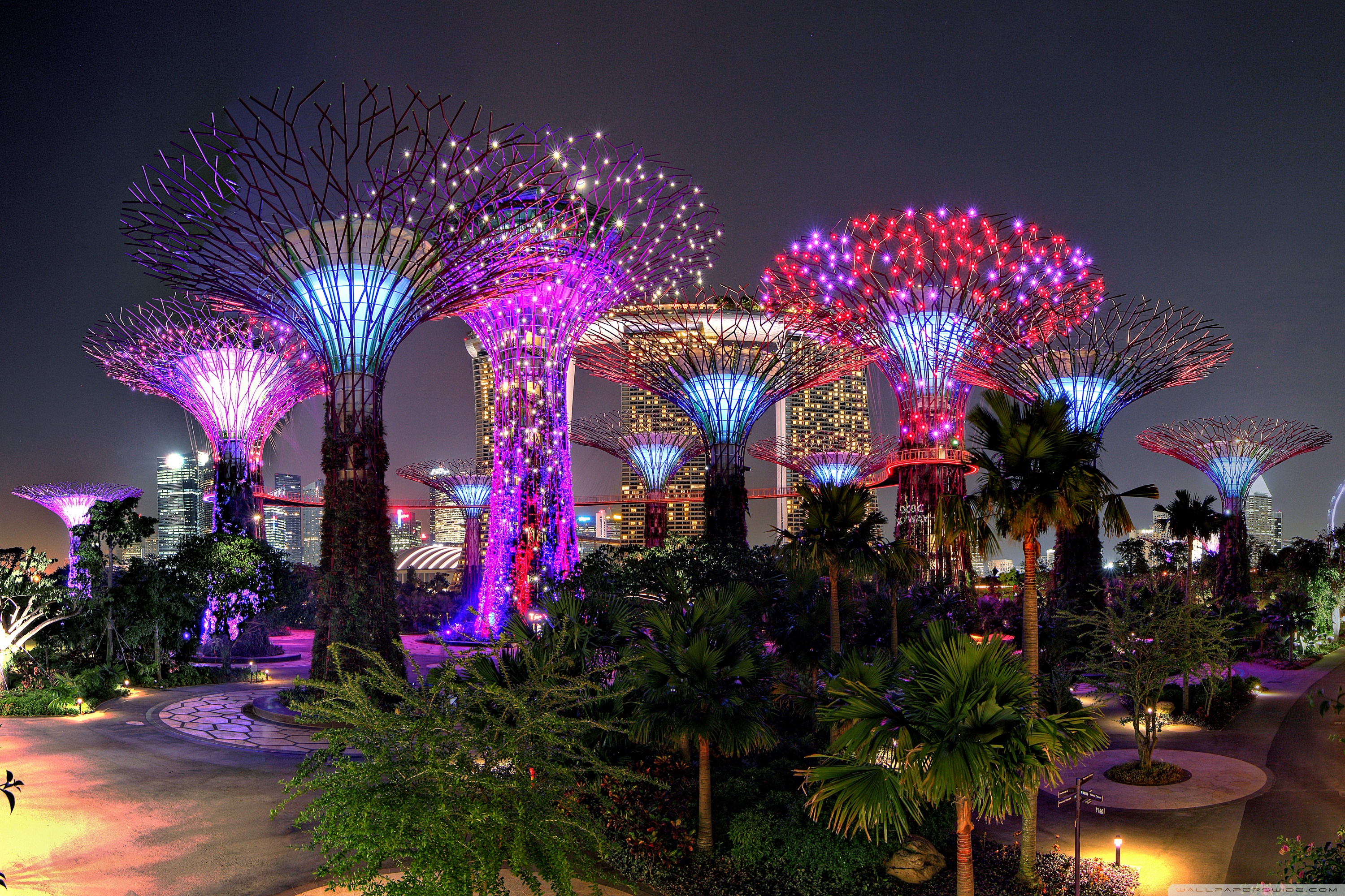 Download Supertree Grove Evening Light Show, Gardens... 4K UHD Wallpaper