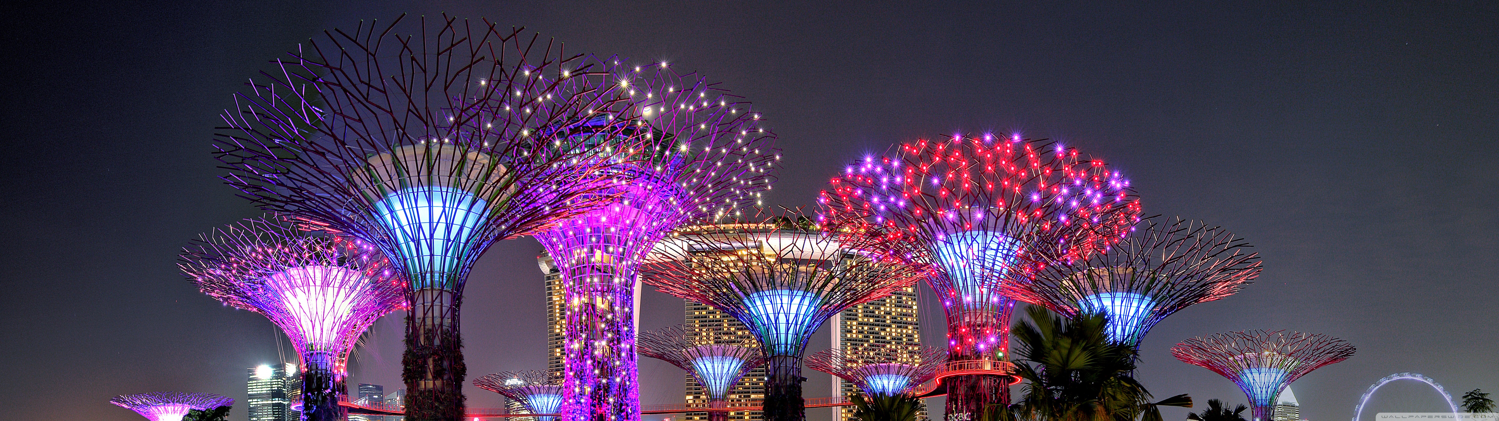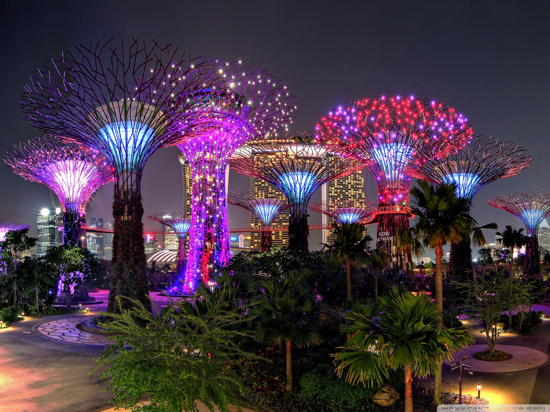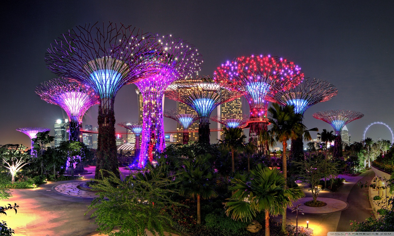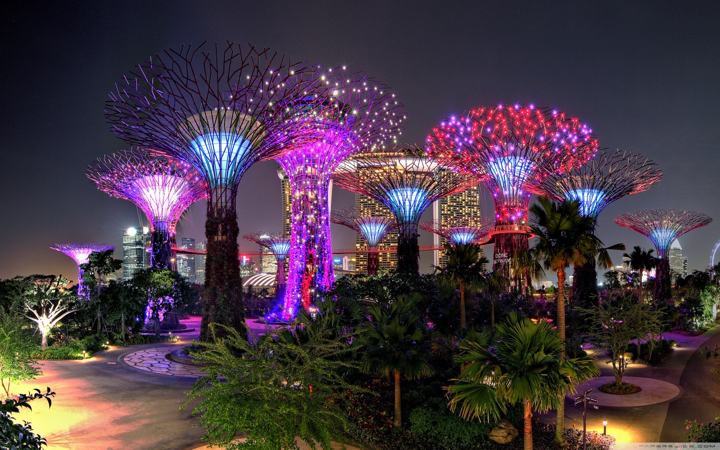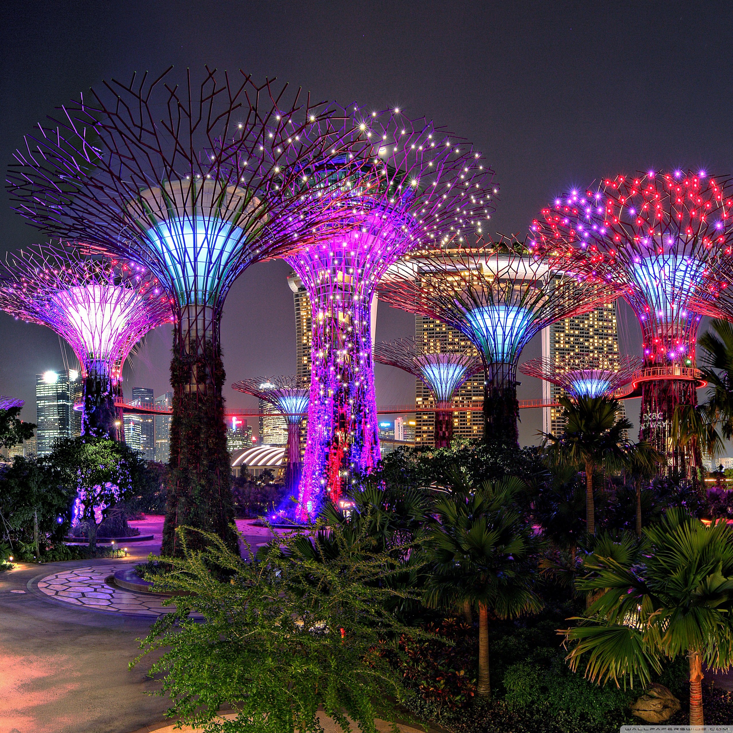 Download Supertree Grove Evening Light Show, Gardens... 4K UHD Wallpaper