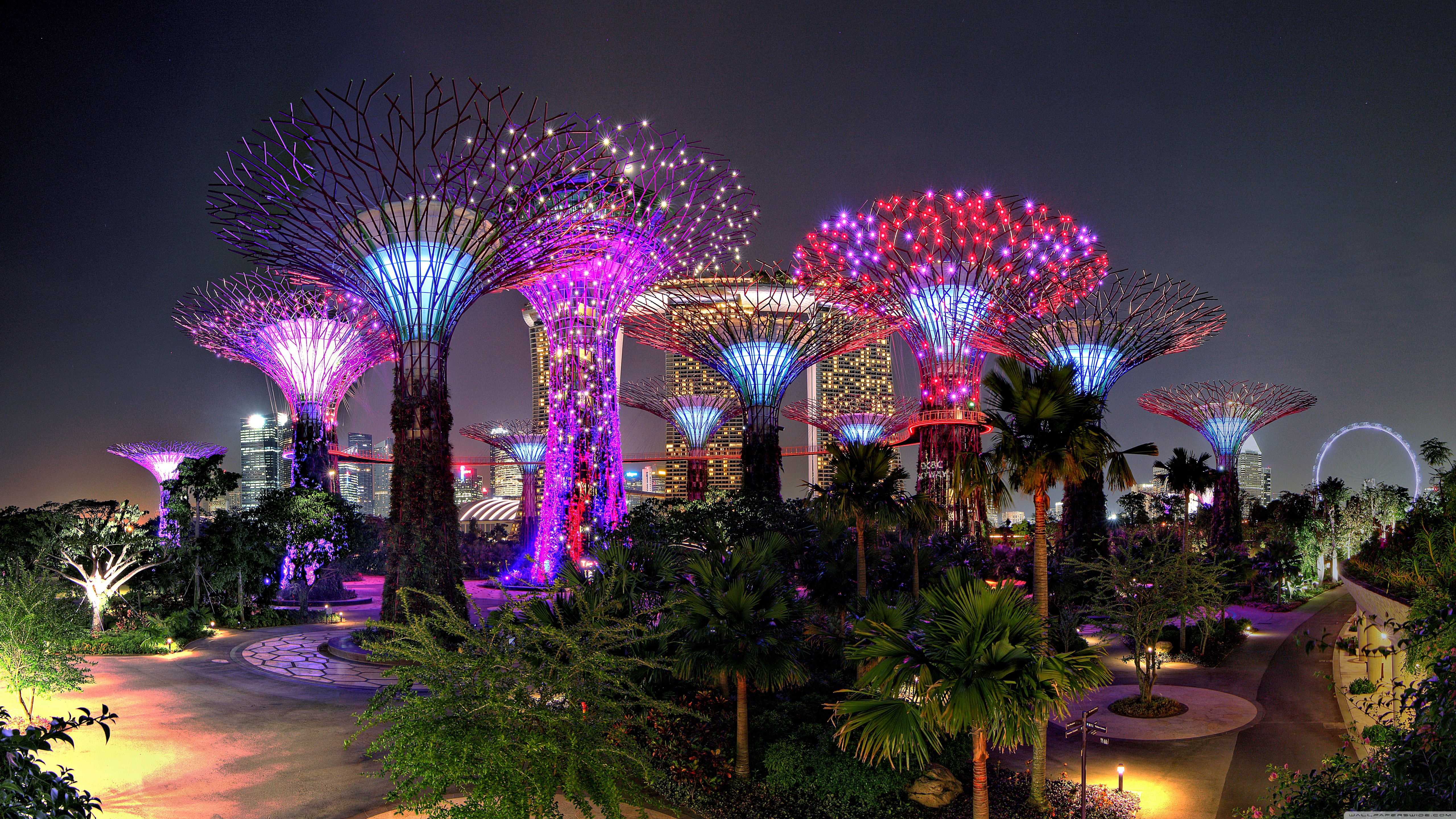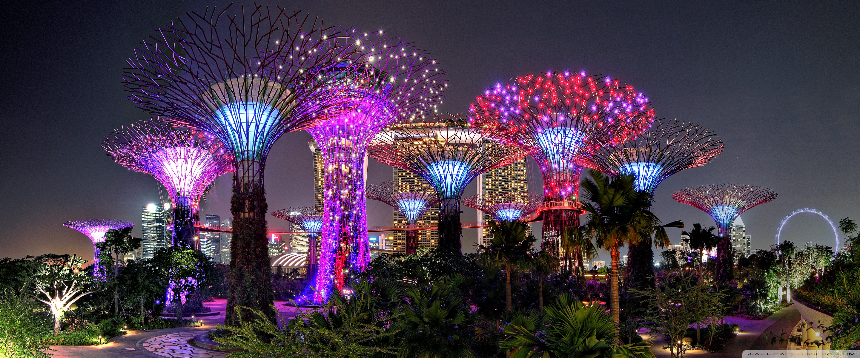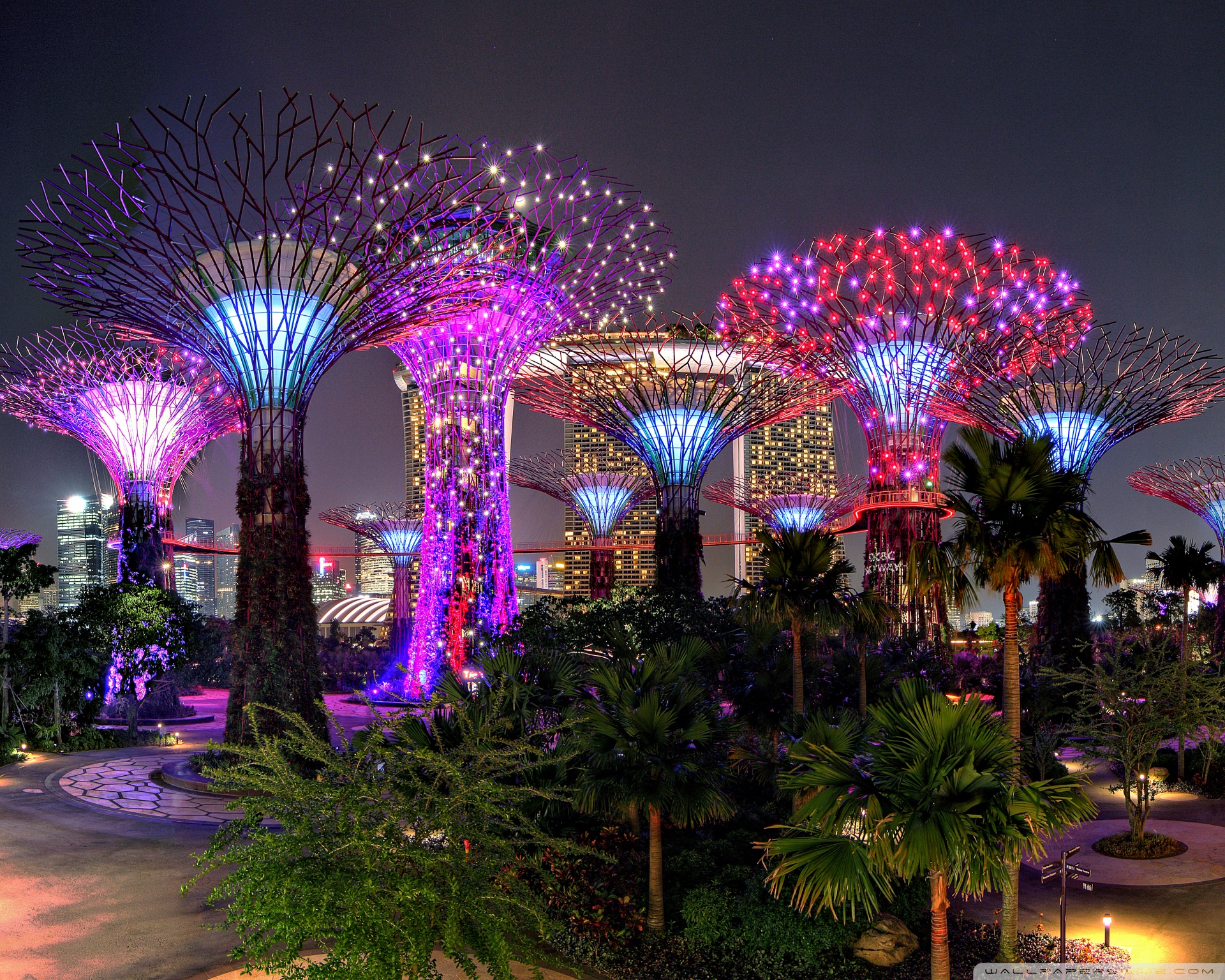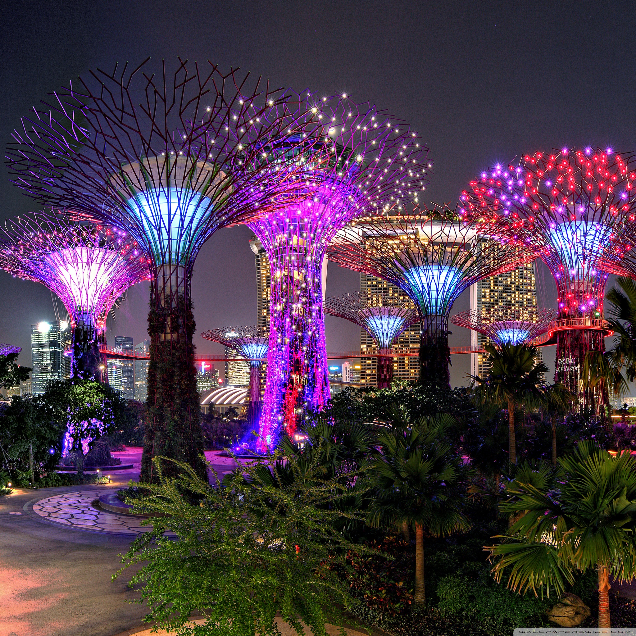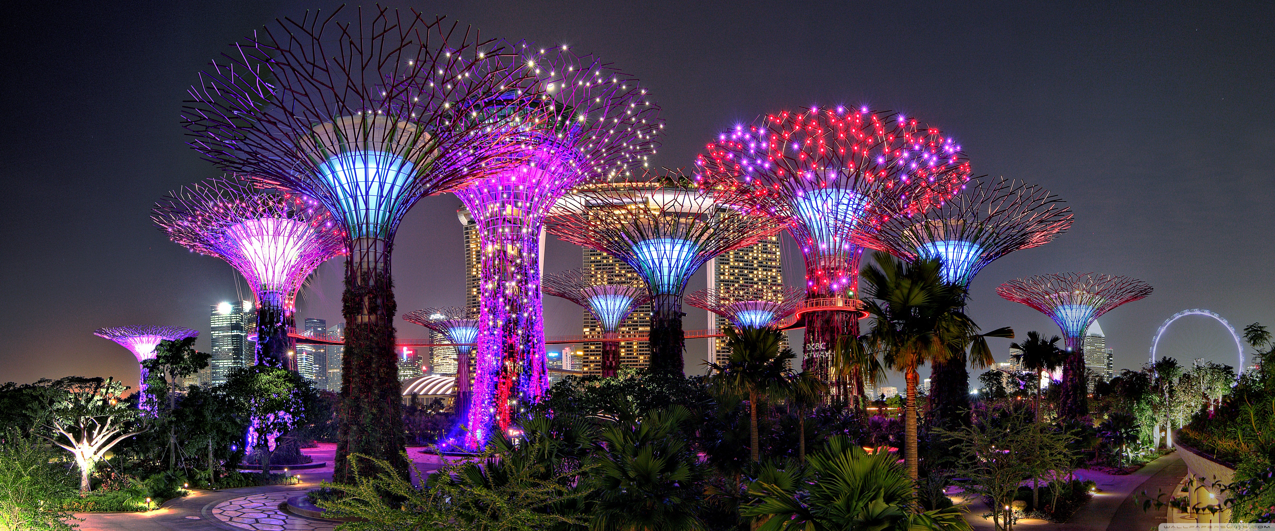 Download Supertree Grove Evening Light Show, Gardens... 4K UHD Wallpaper