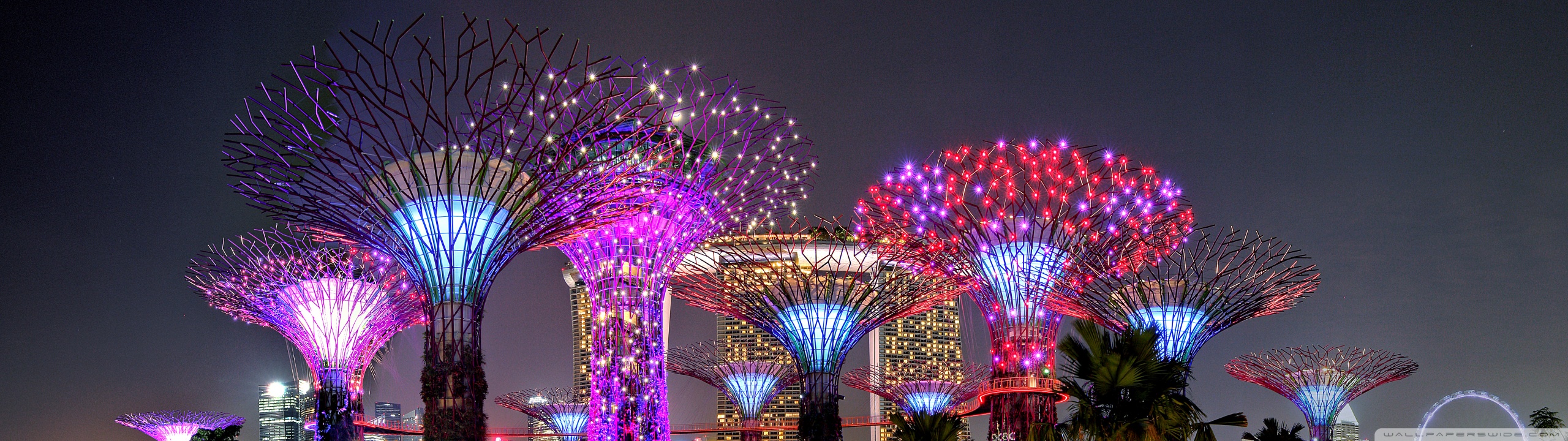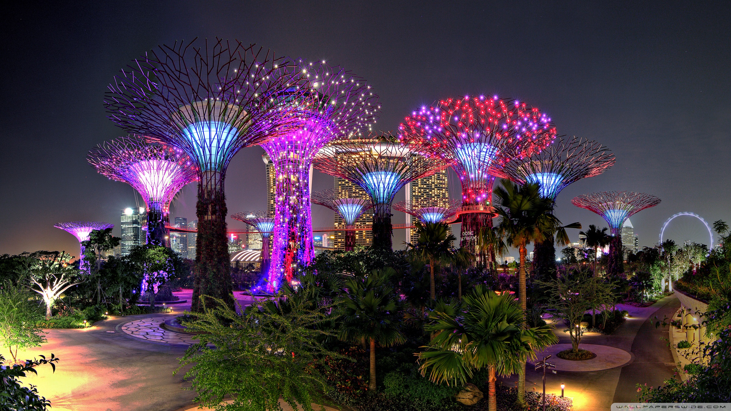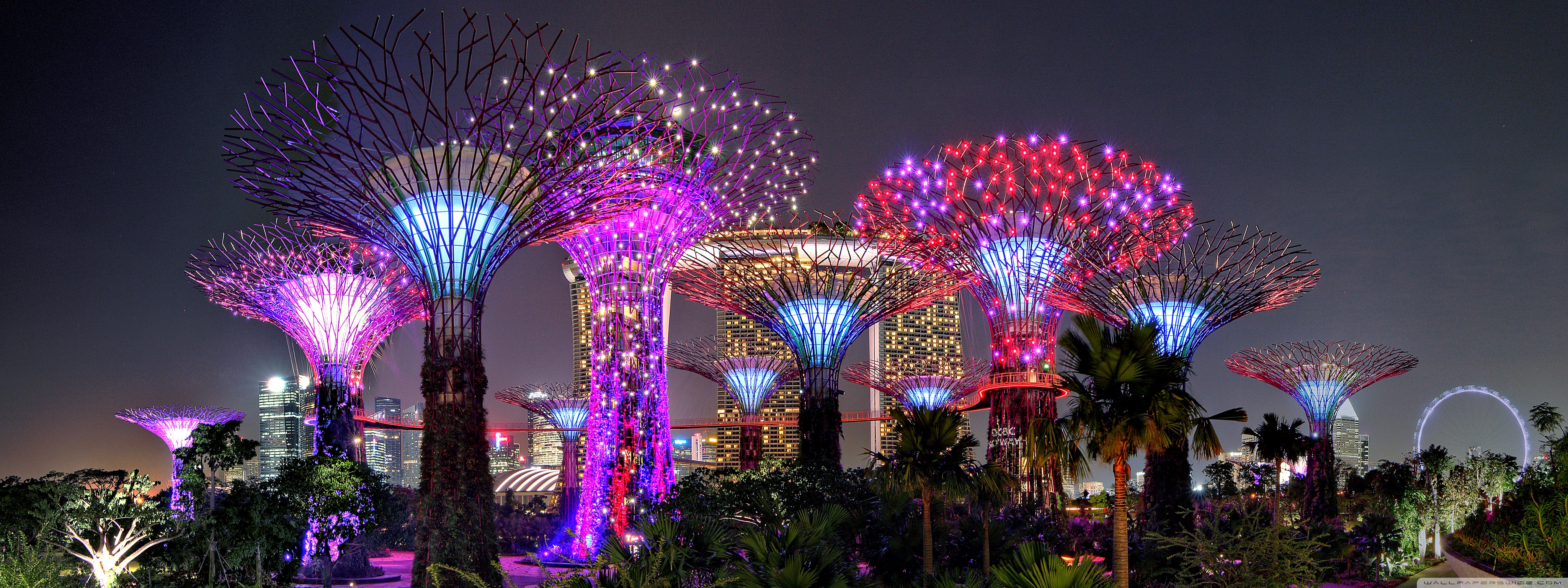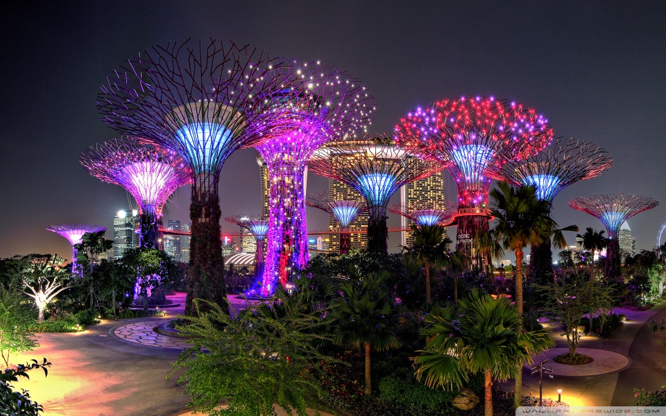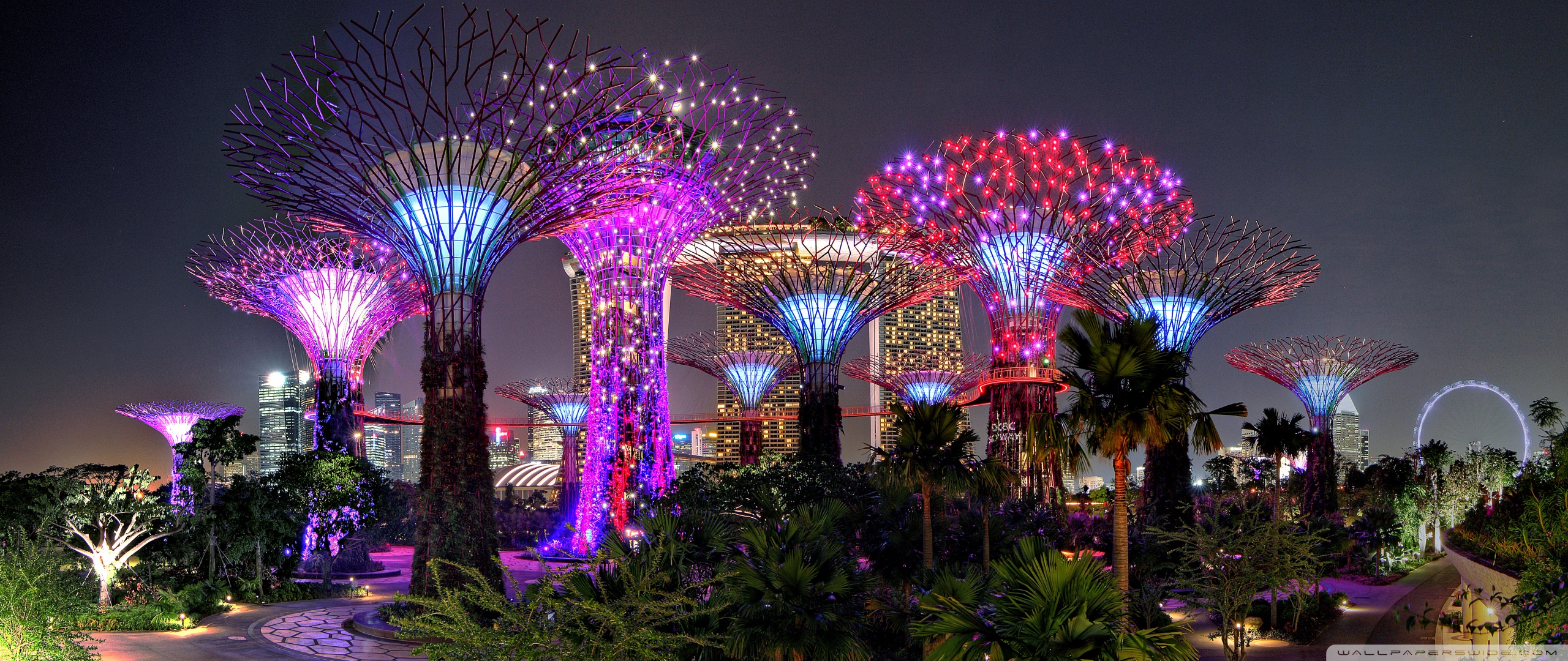 Download Supertree Grove Evening Light Show, Gardens... 4K UHD Wallpaper