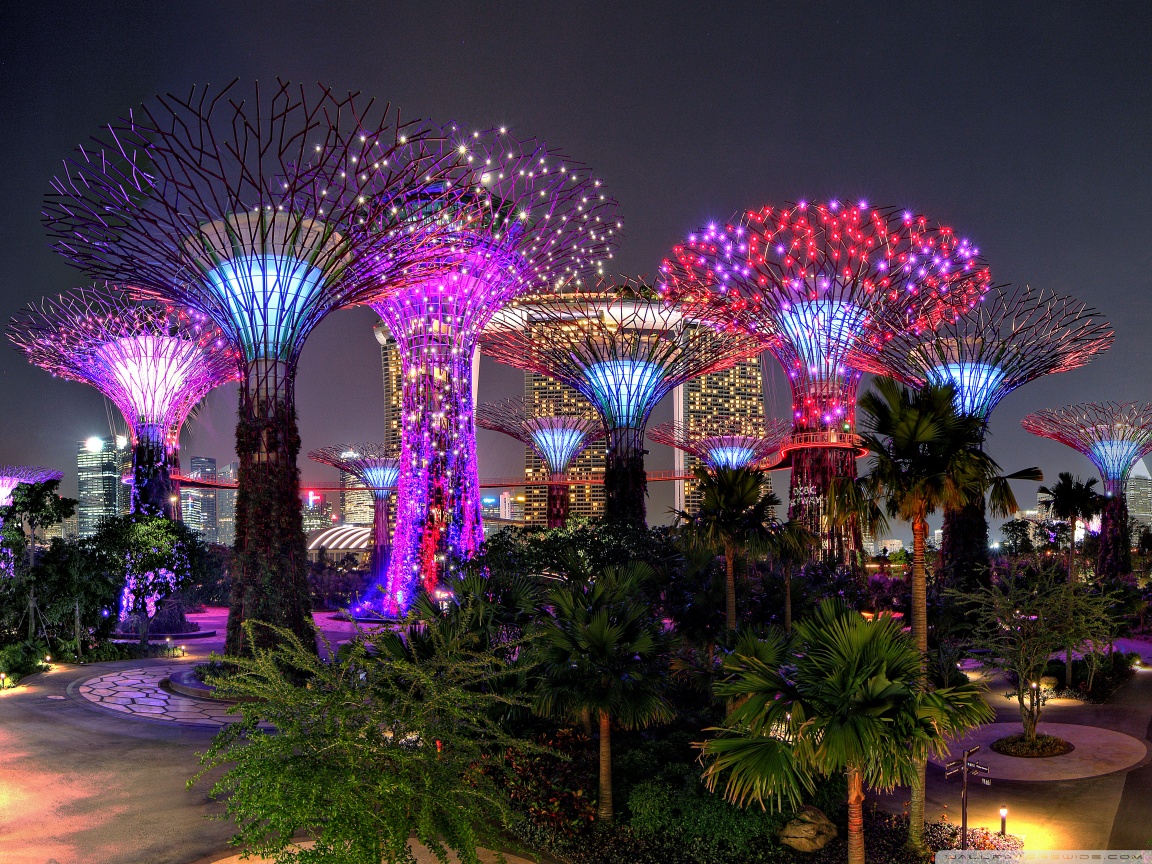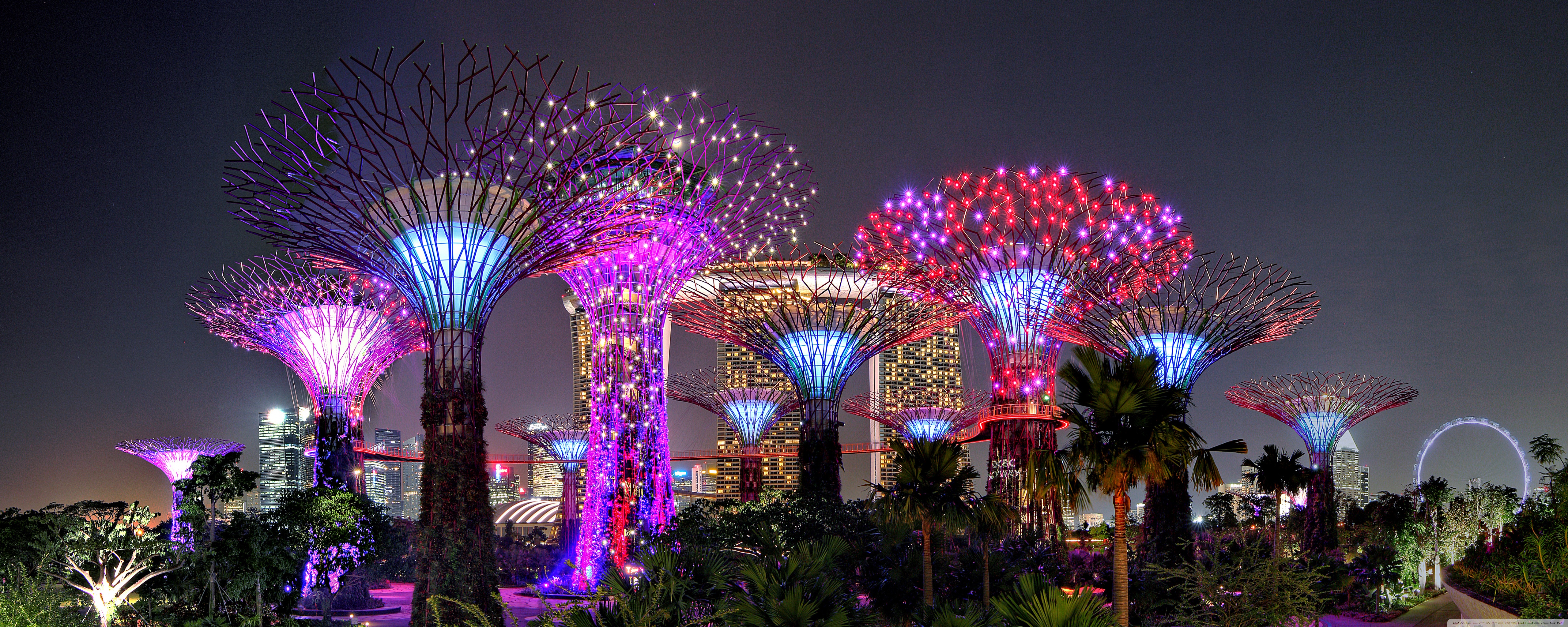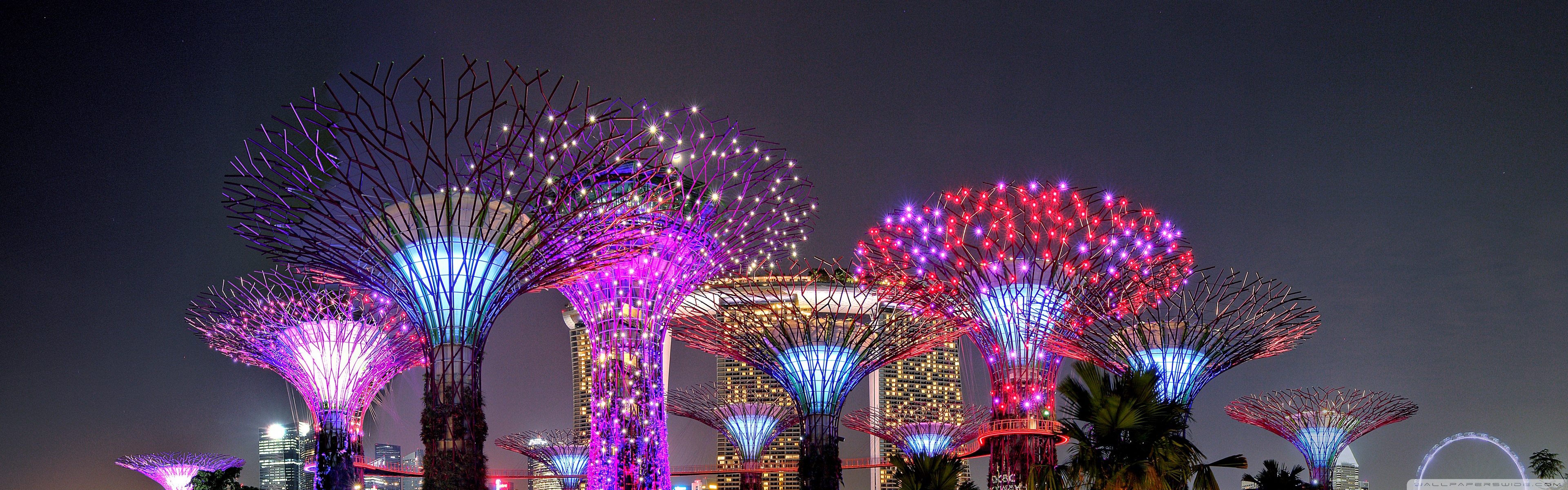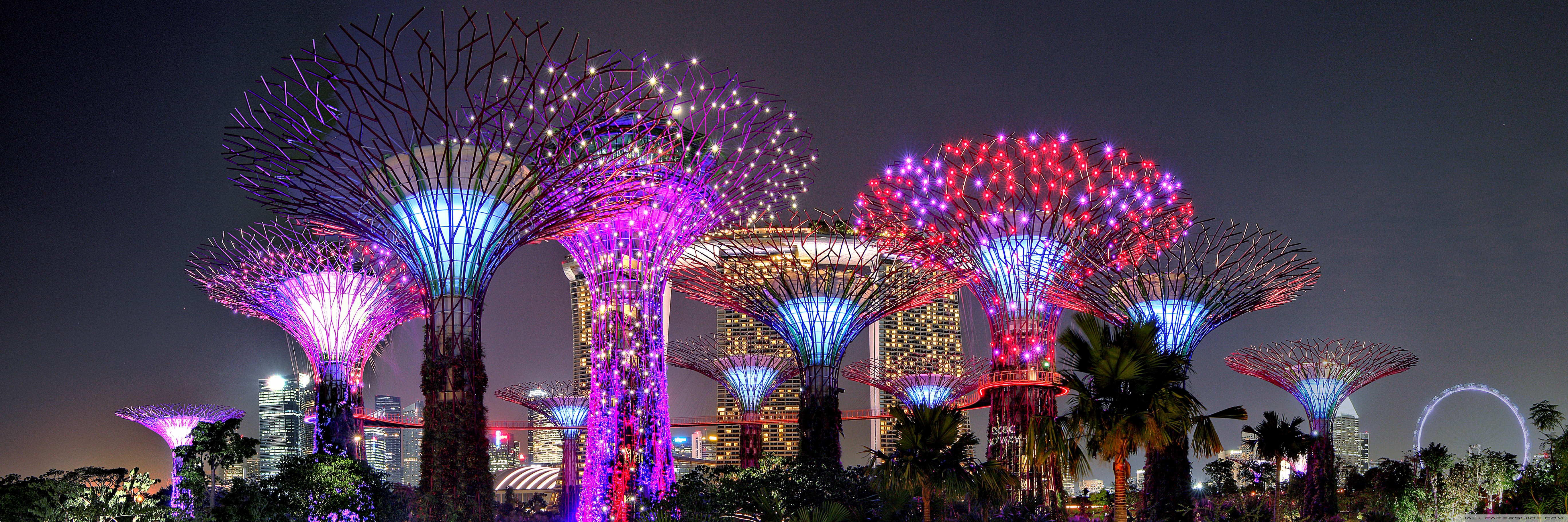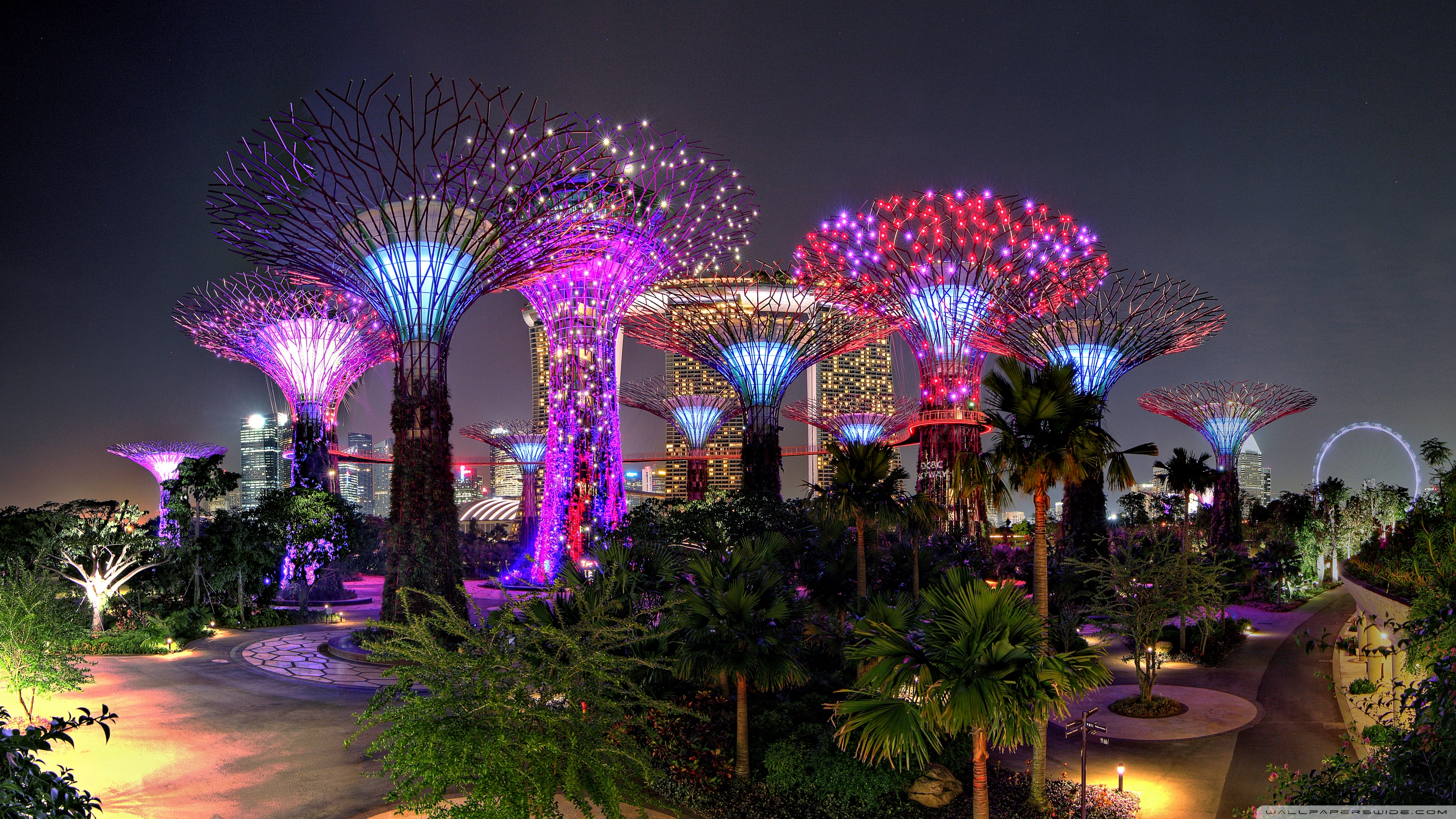 Download Supertree Grove Evening Light Show, Gardens... 4K UHD Wallpaper