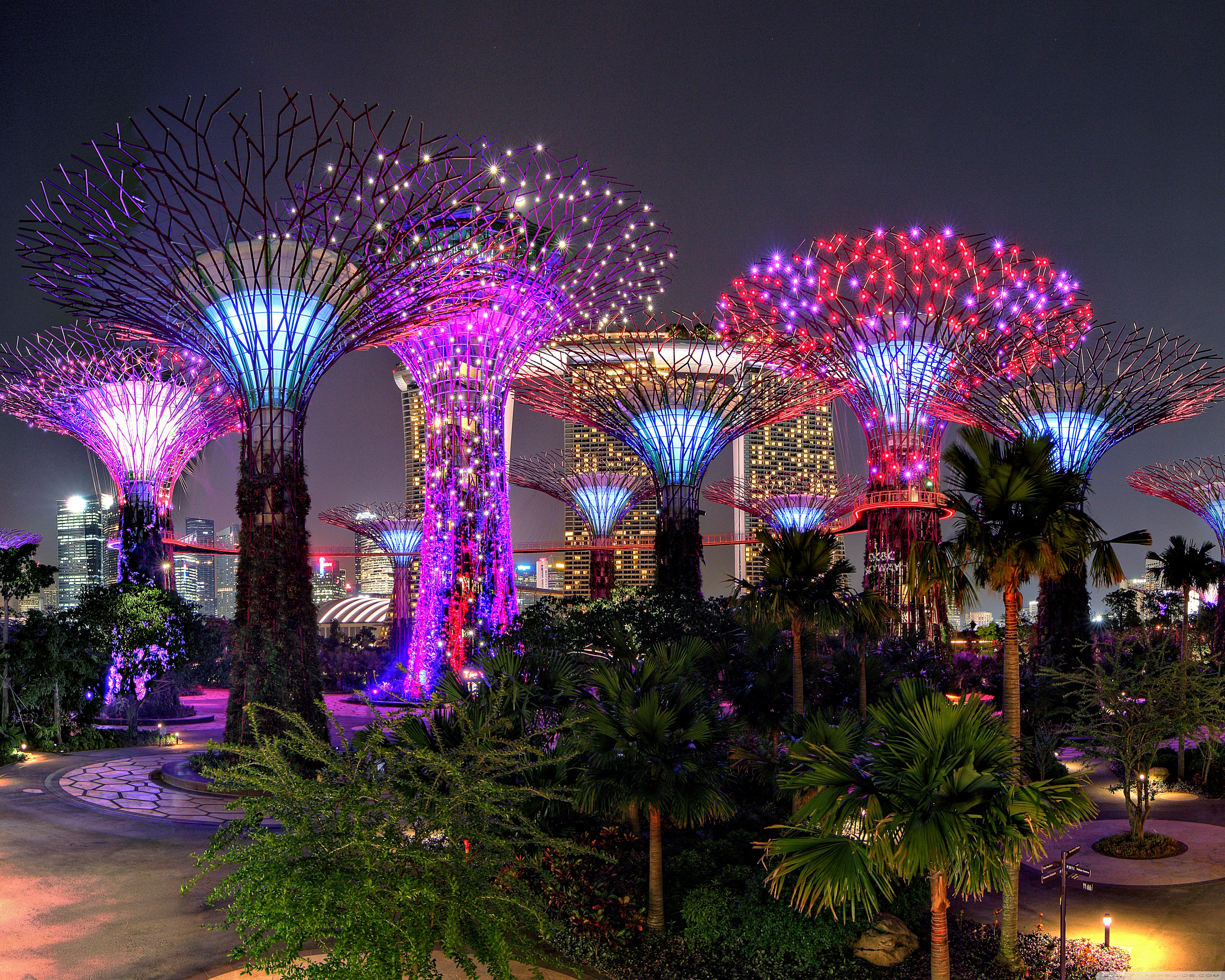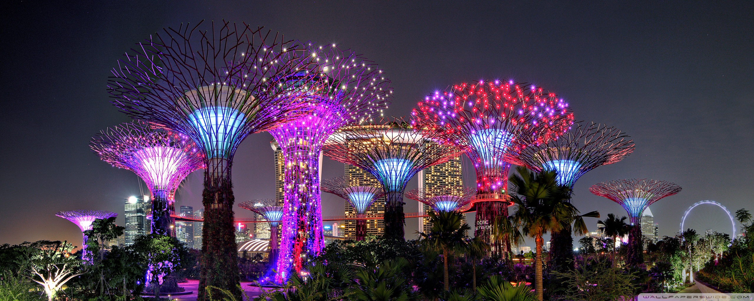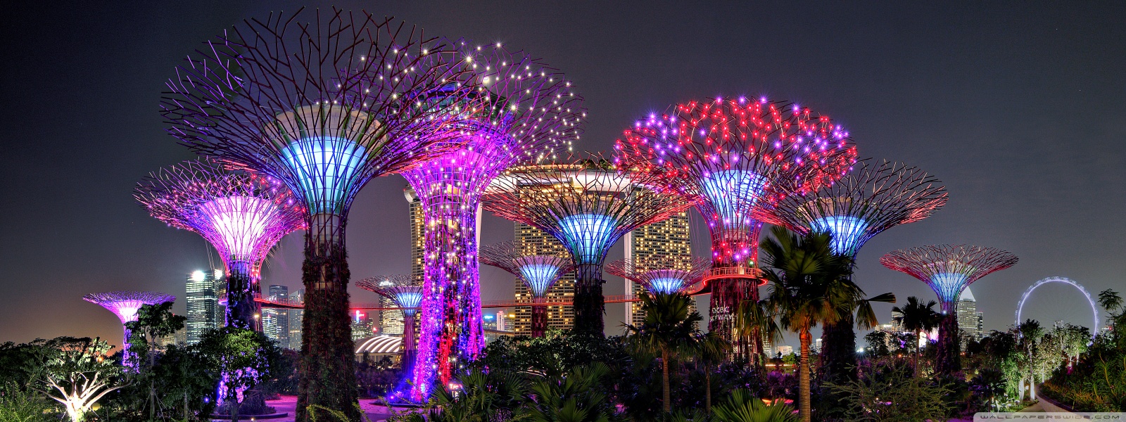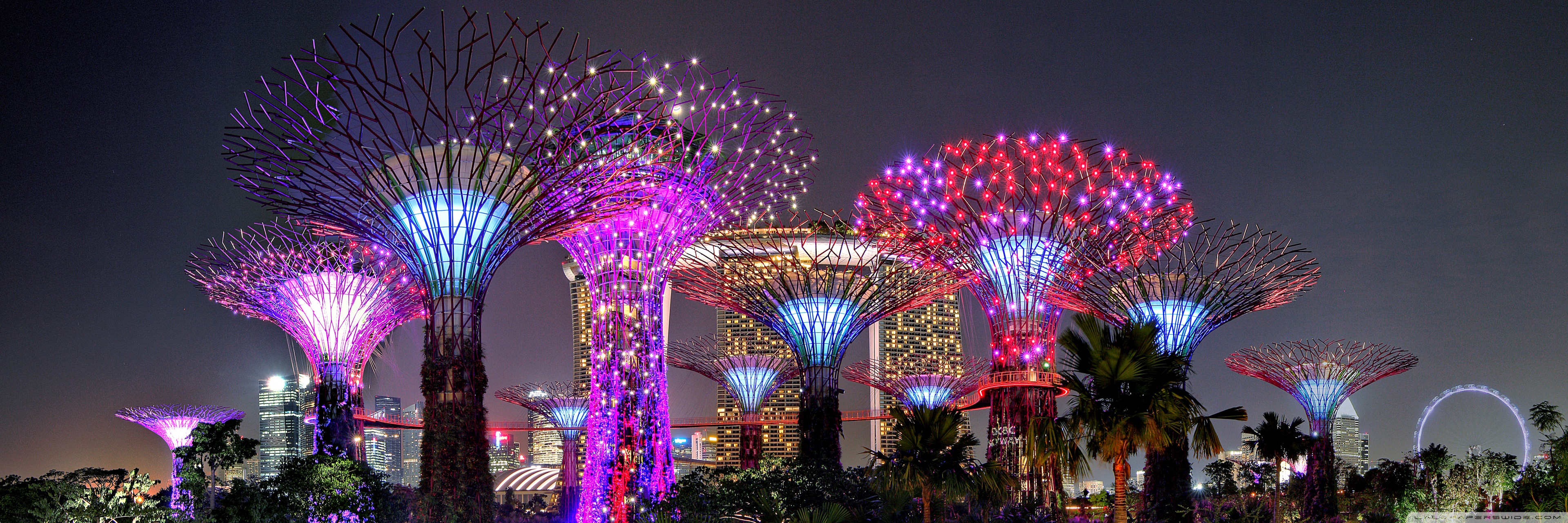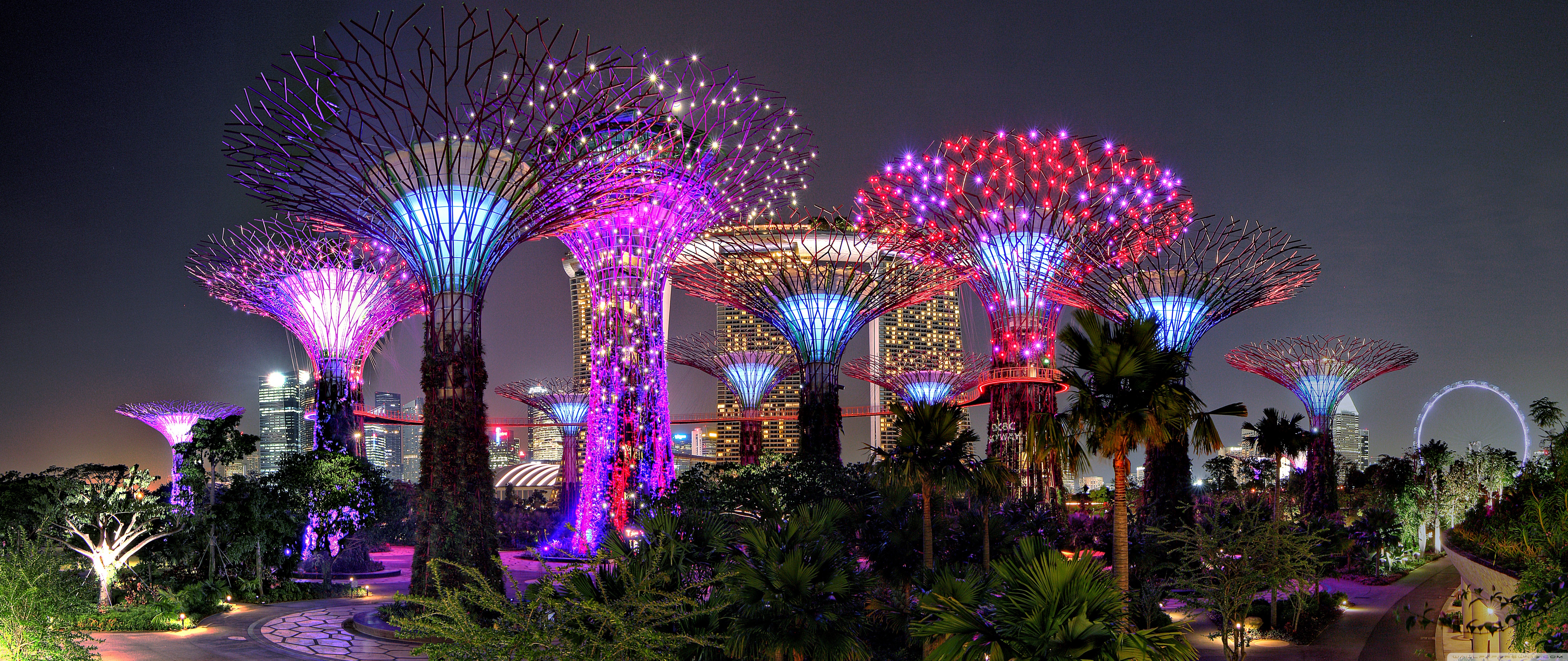 Download Supertree Grove Evening Light Show, Gardens... 4K UHD Wallpaper