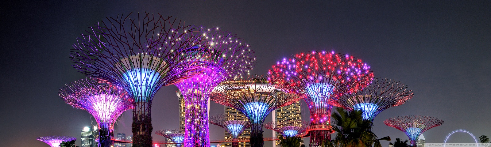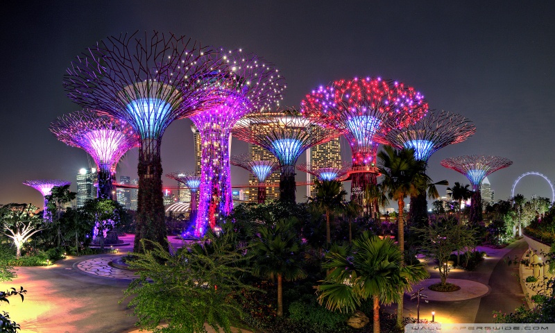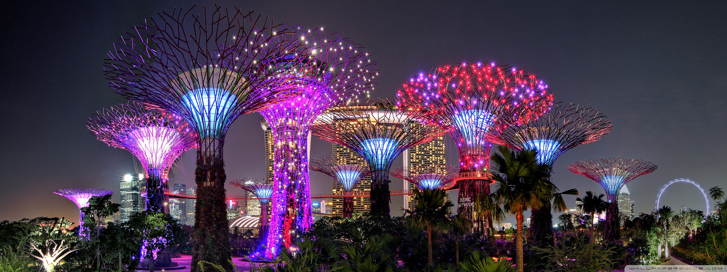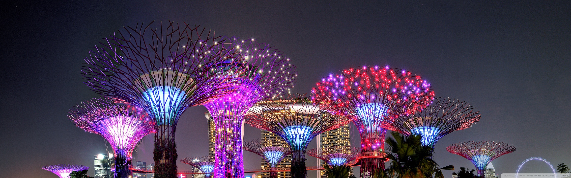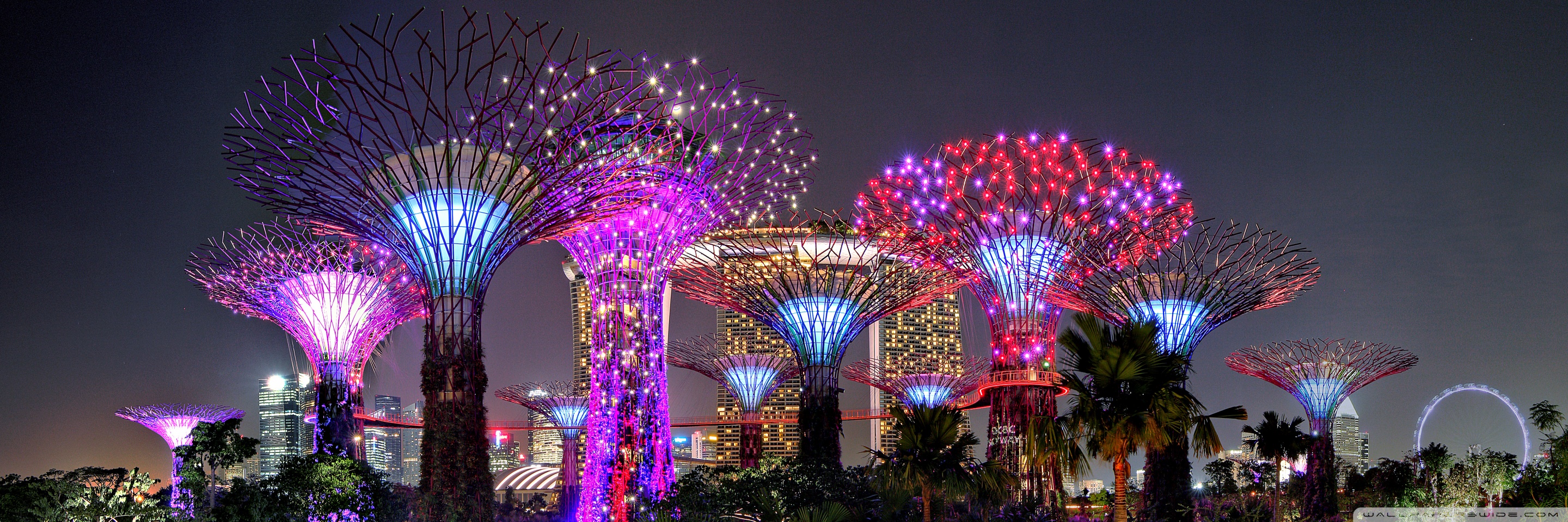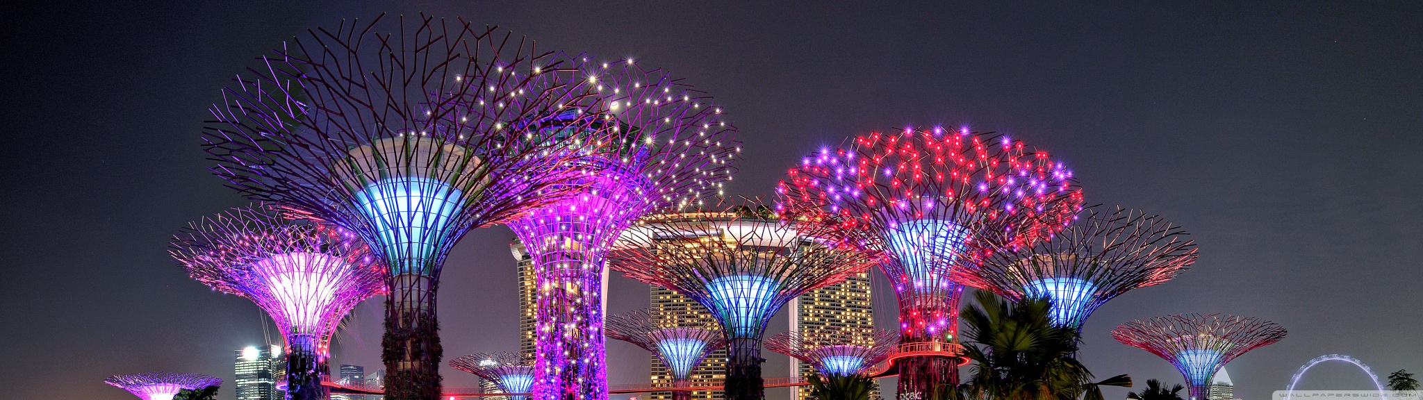 Download Supertree Grove Evening Light Show, Gardens... 4K UHD Wallpaper