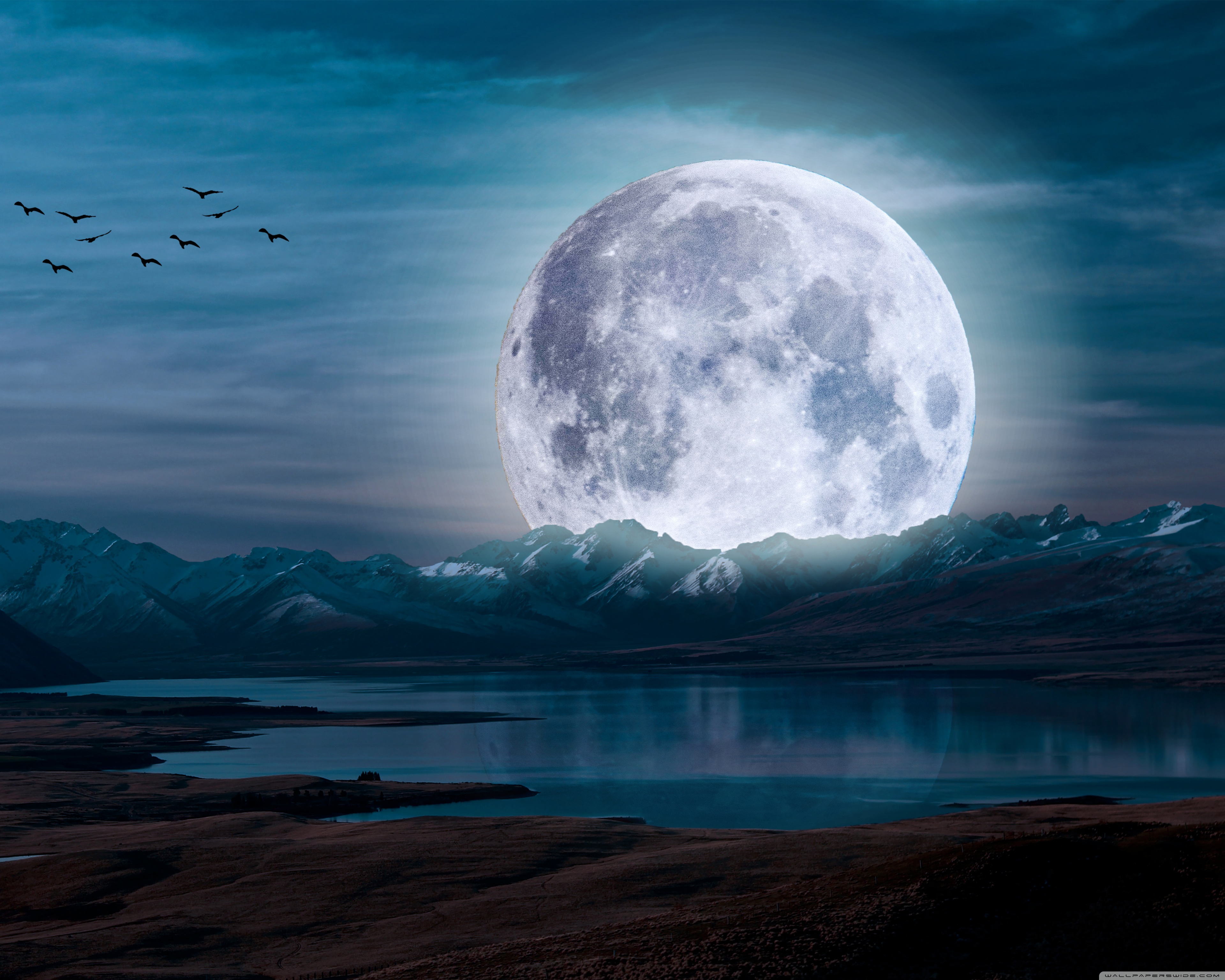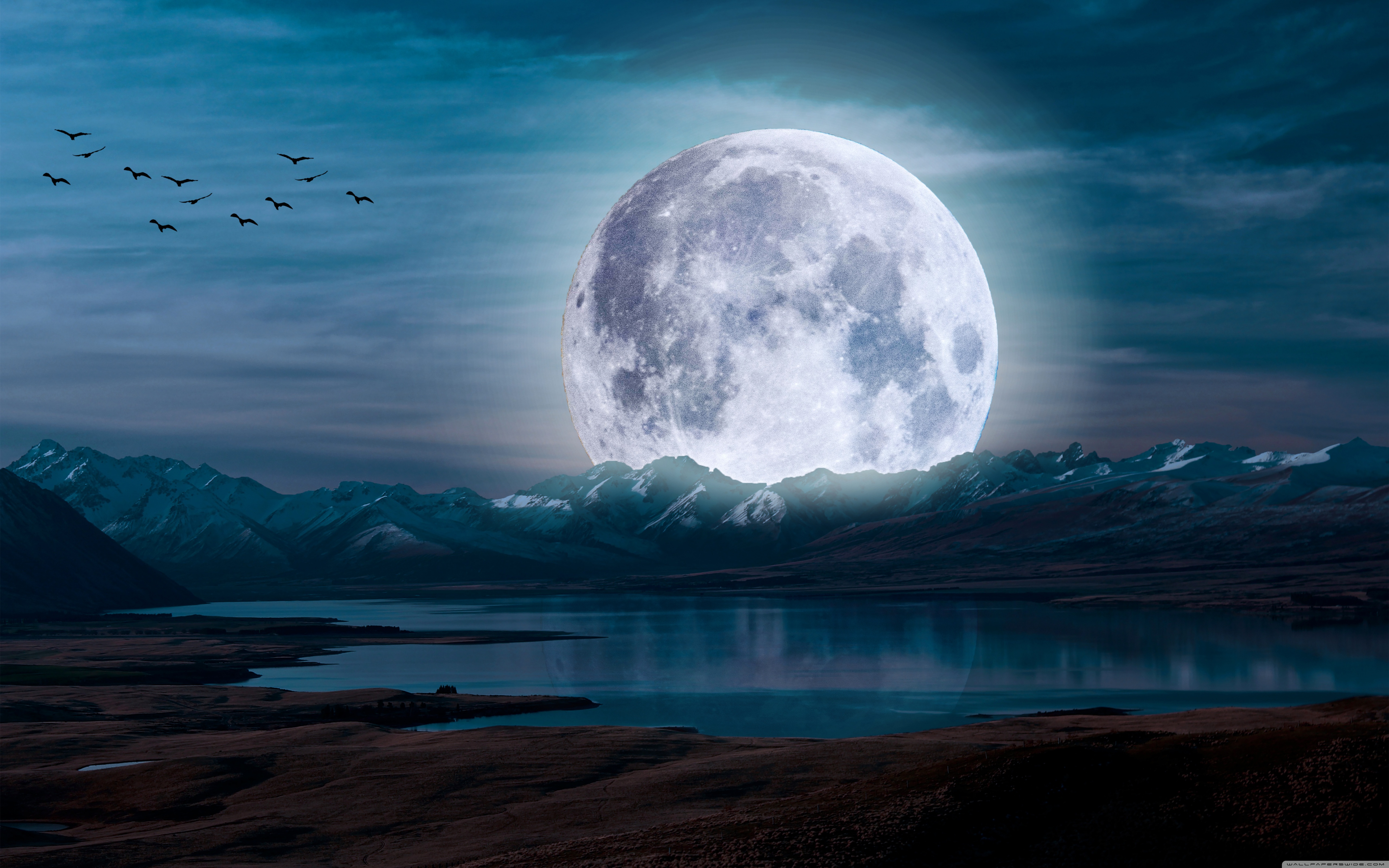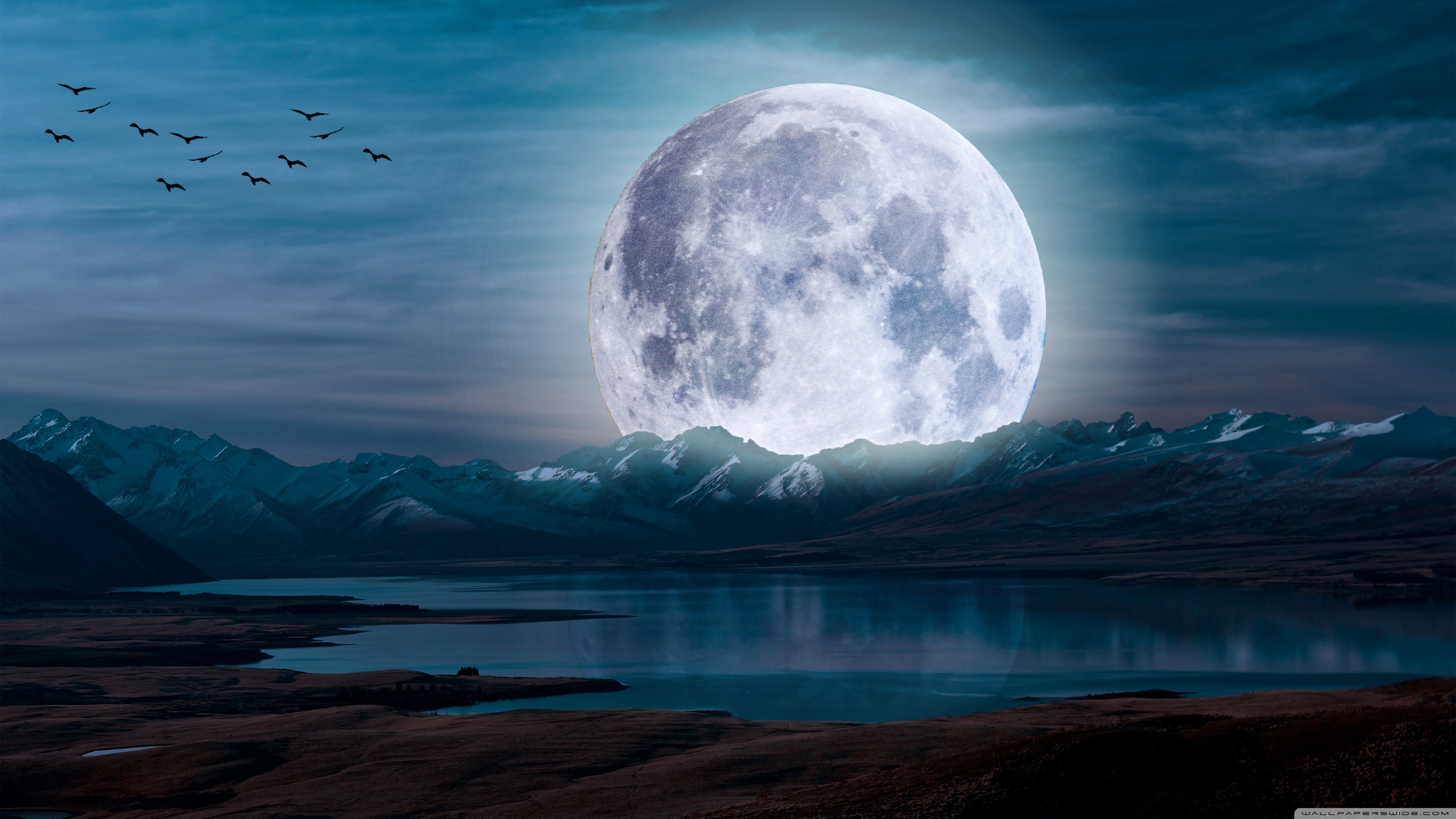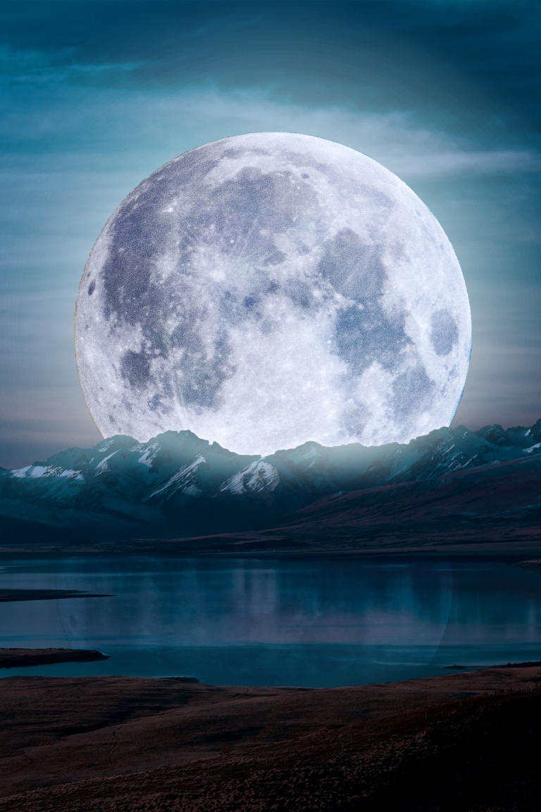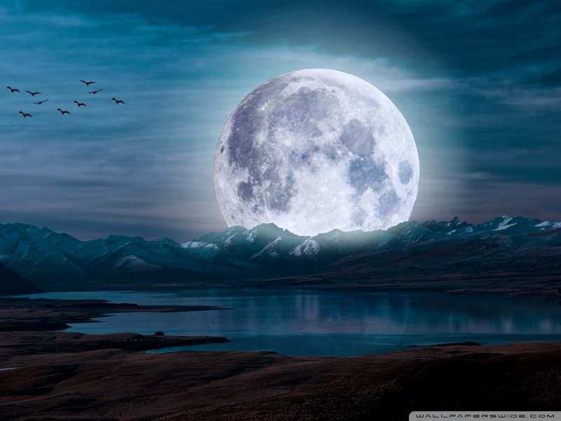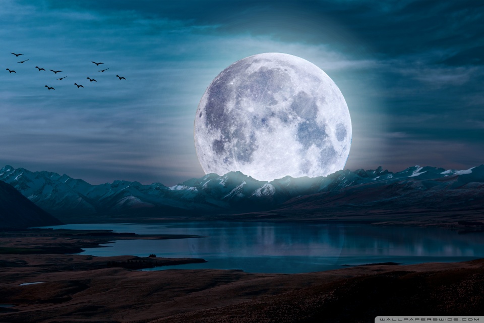 Download Surreal Moon in a Mountain Landscape 4K UHD Wallpaper