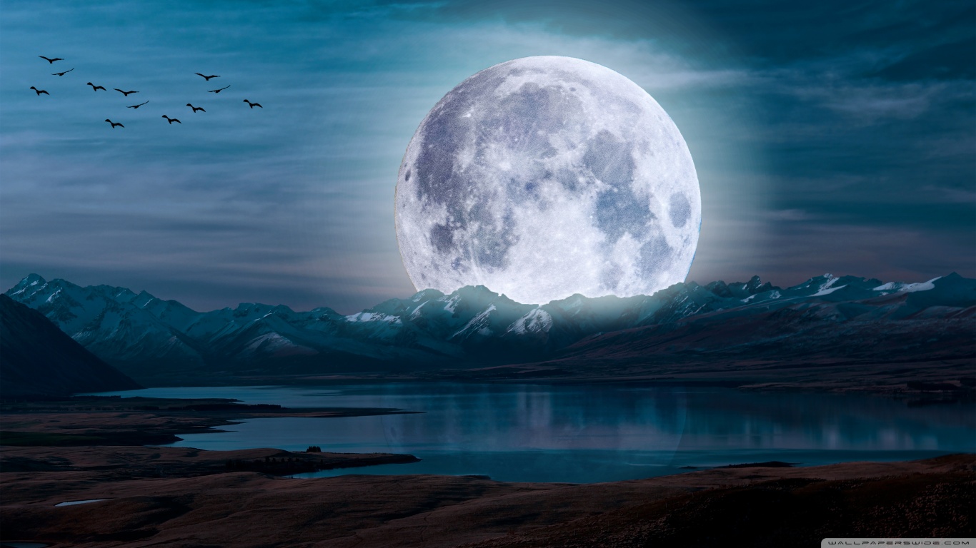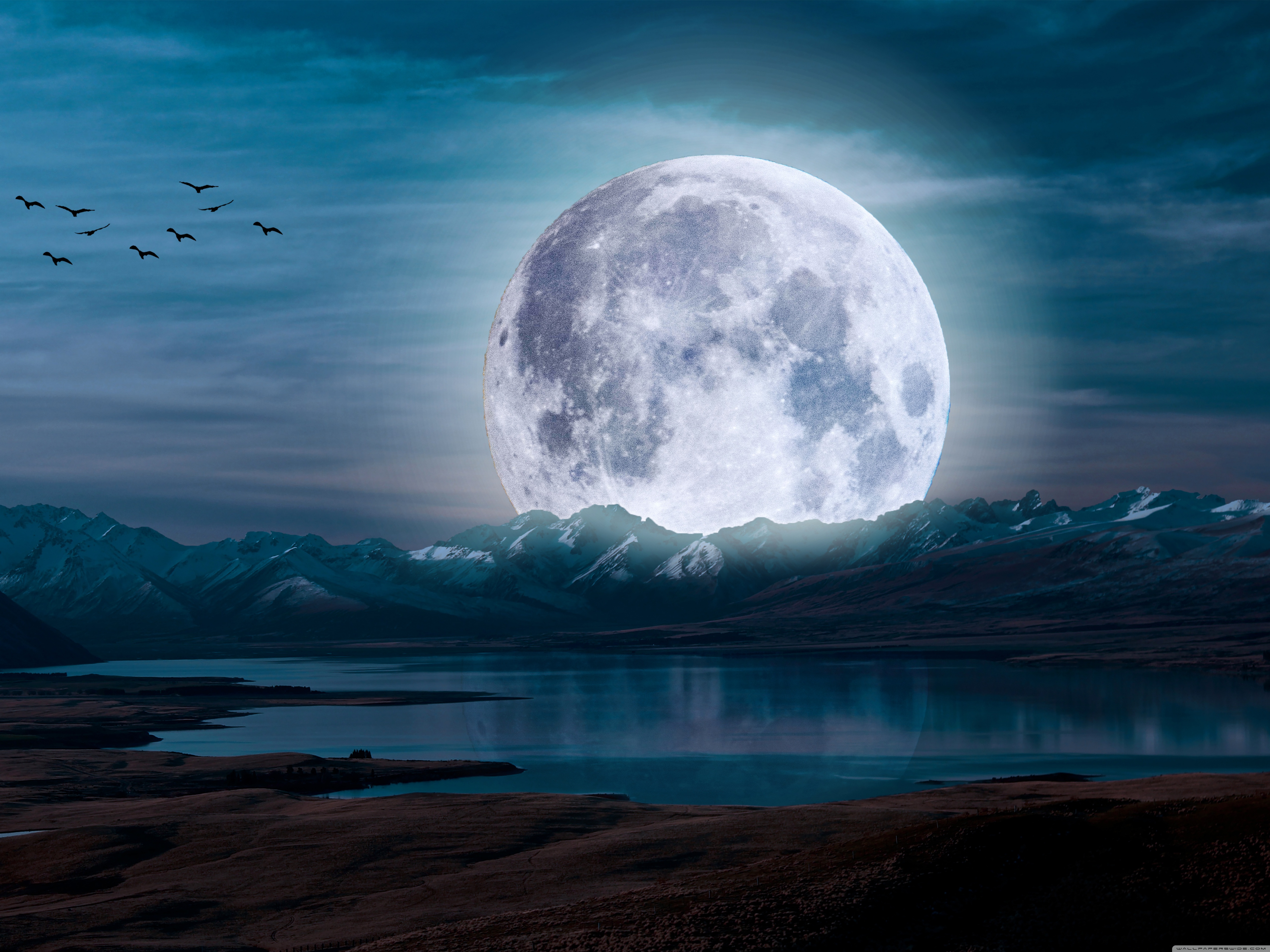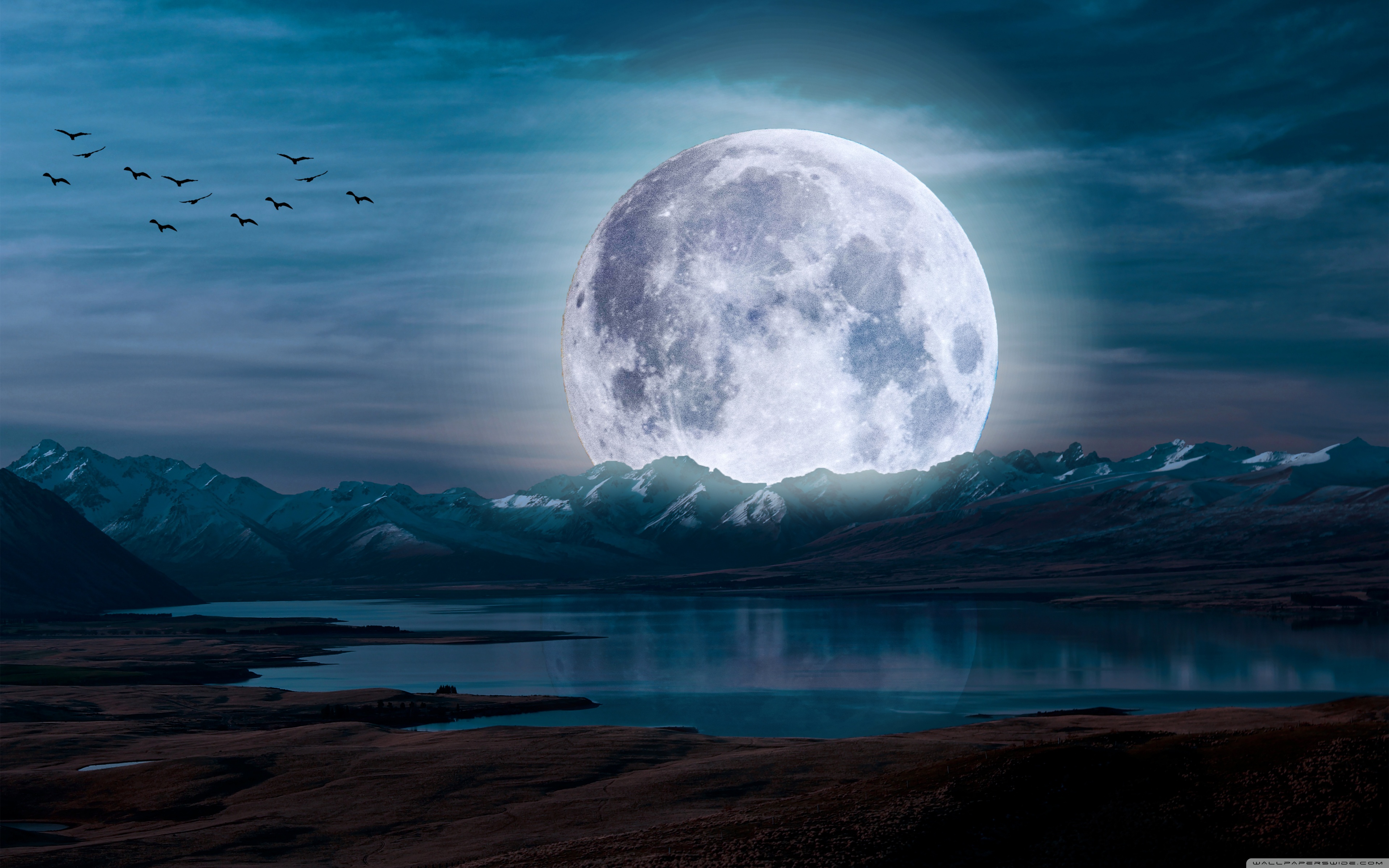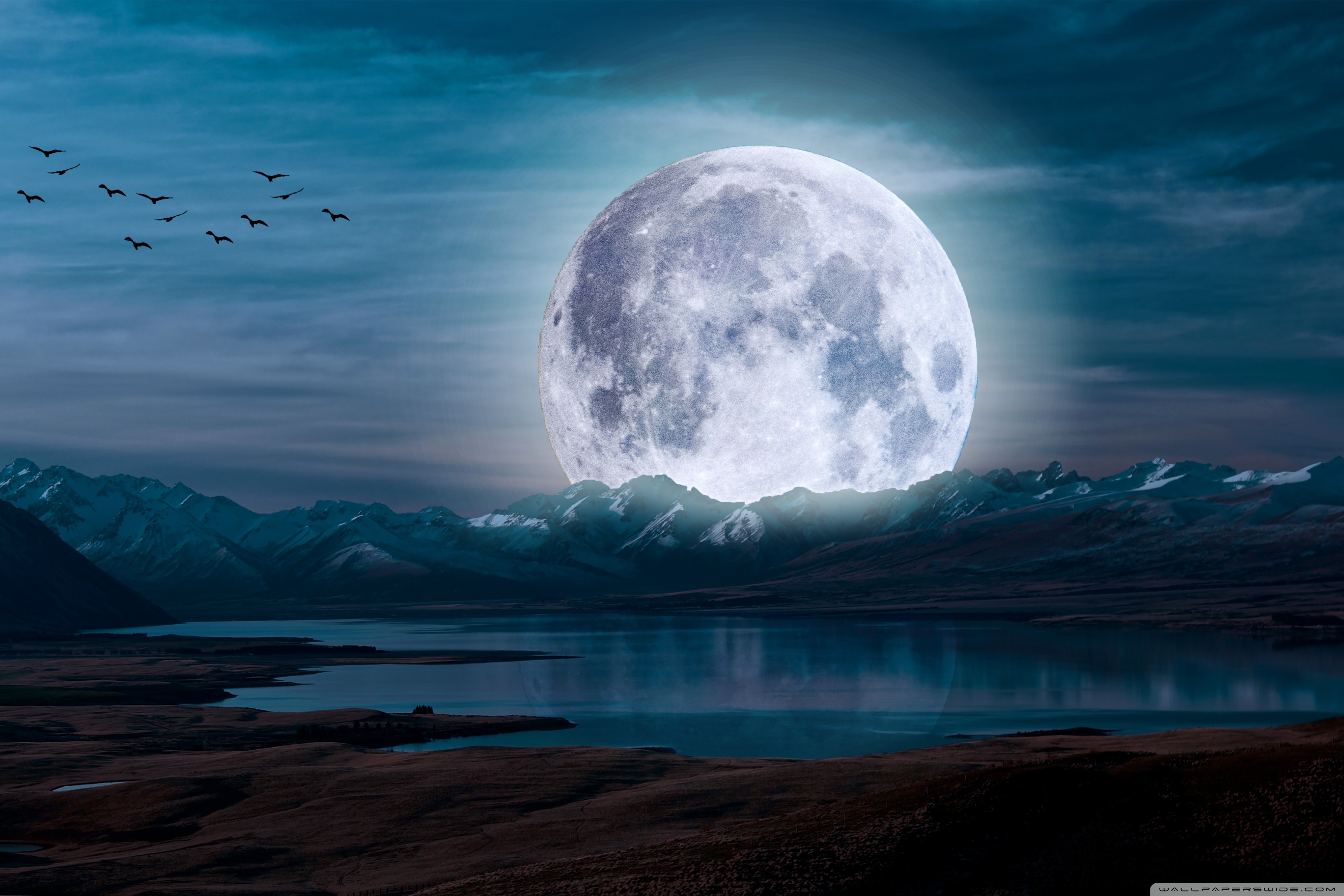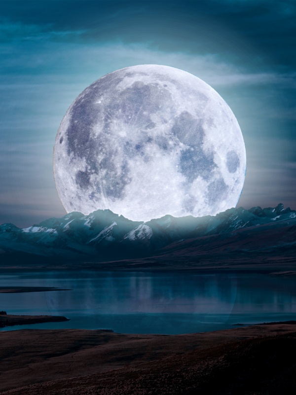 Download Surreal Moon in a Mountain Landscape 4K UHD Wallpaper