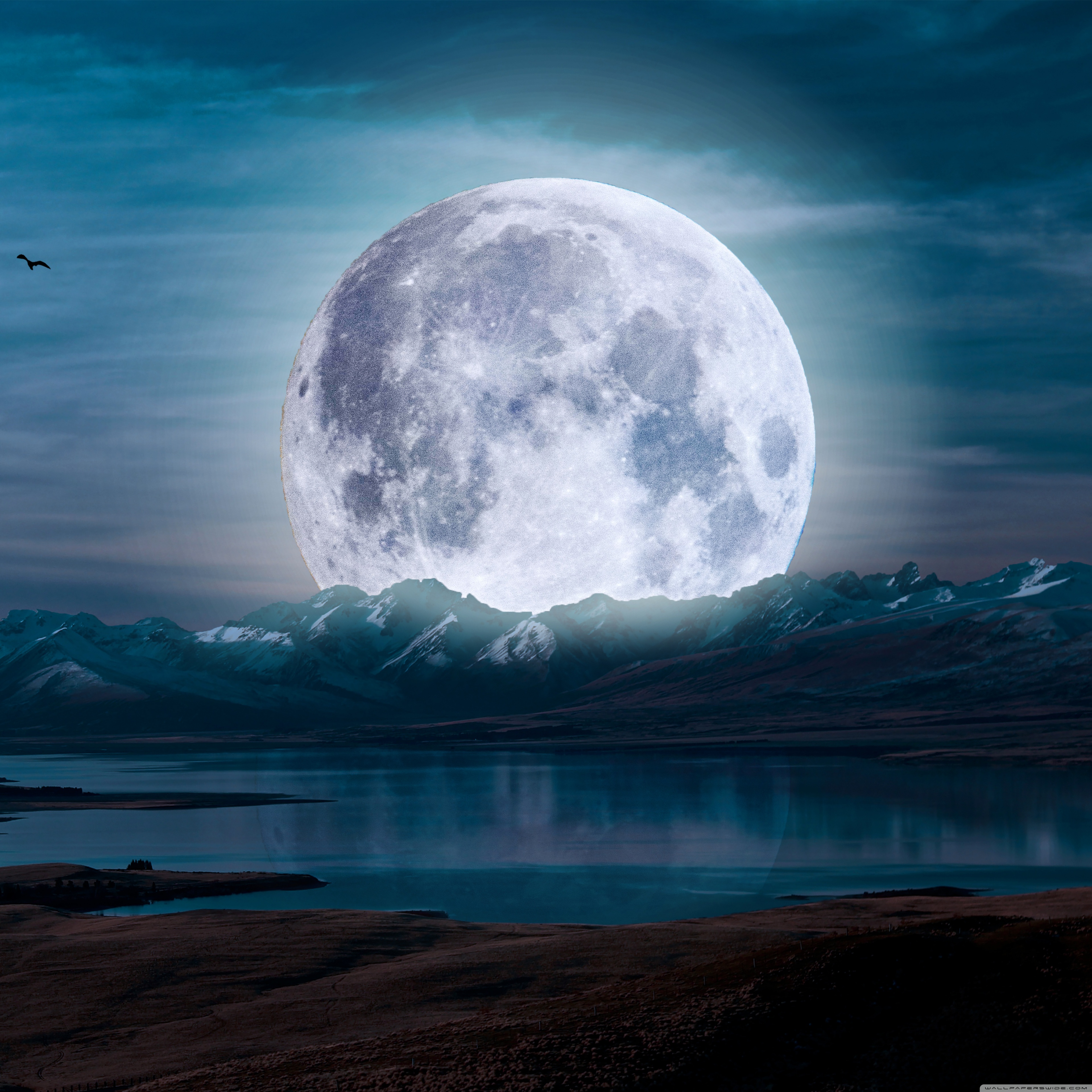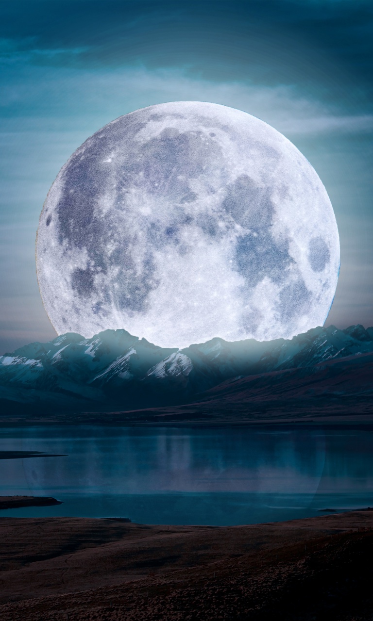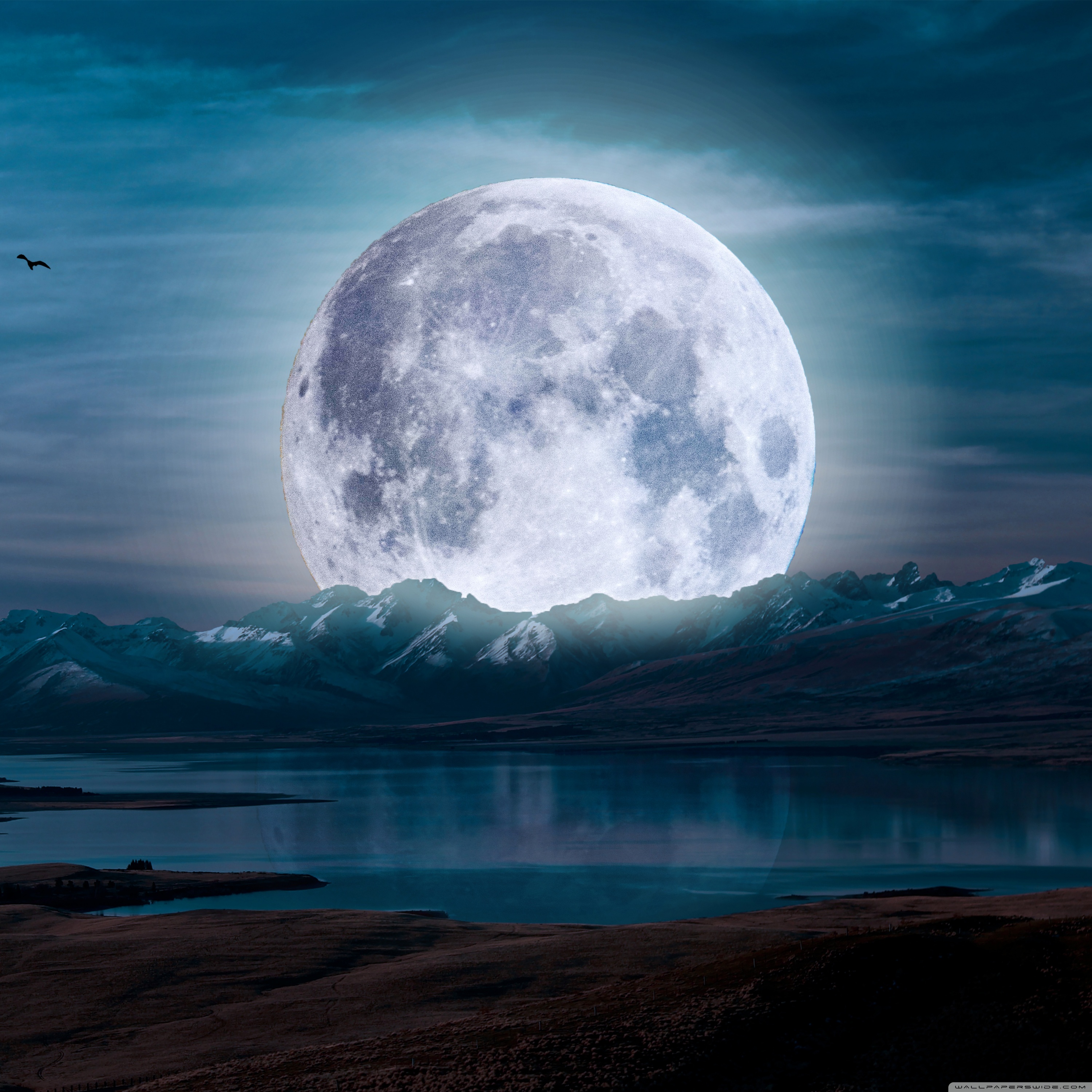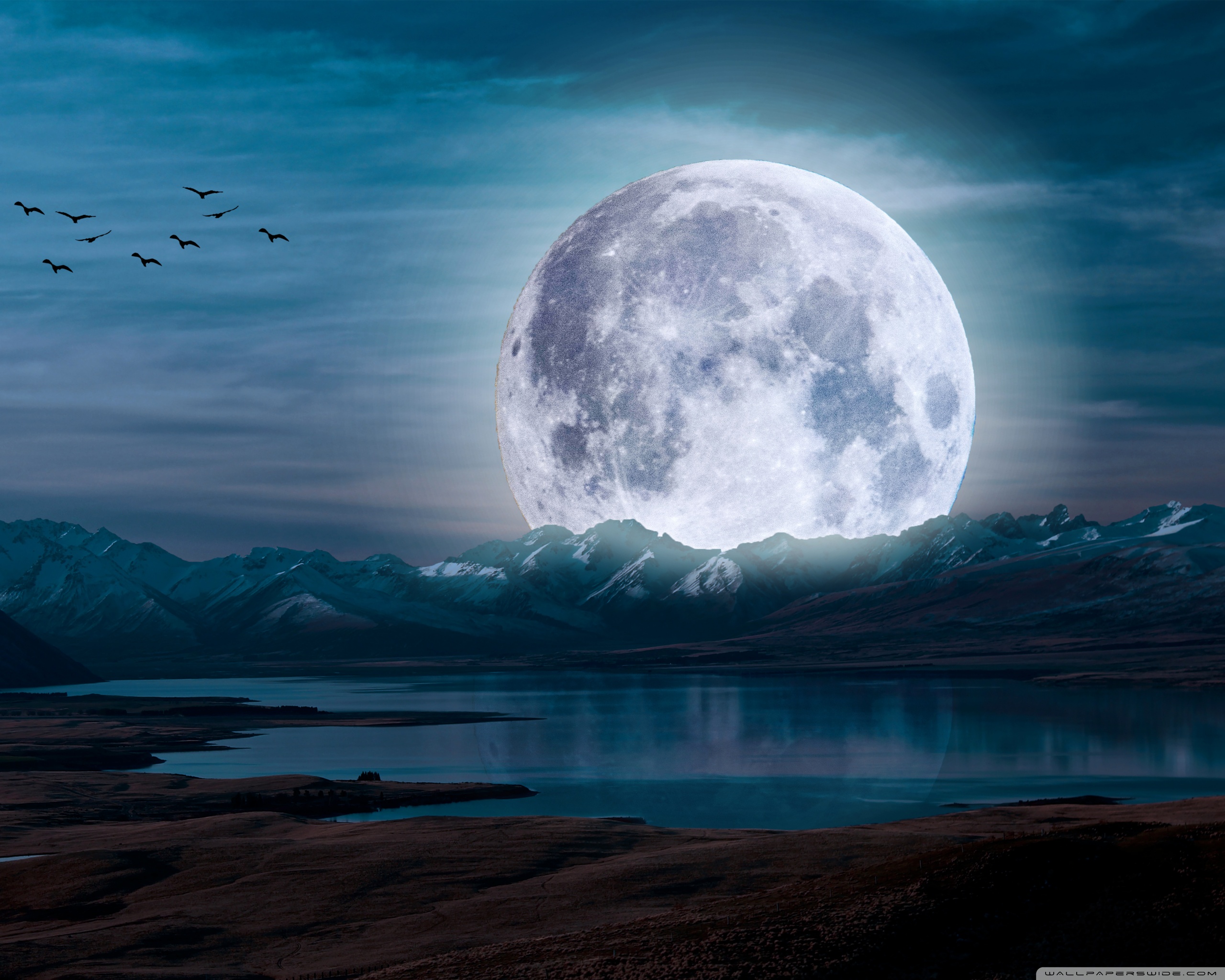 Download Surreal Moon in a Mountain Landscape 4K UHD Wallpaper