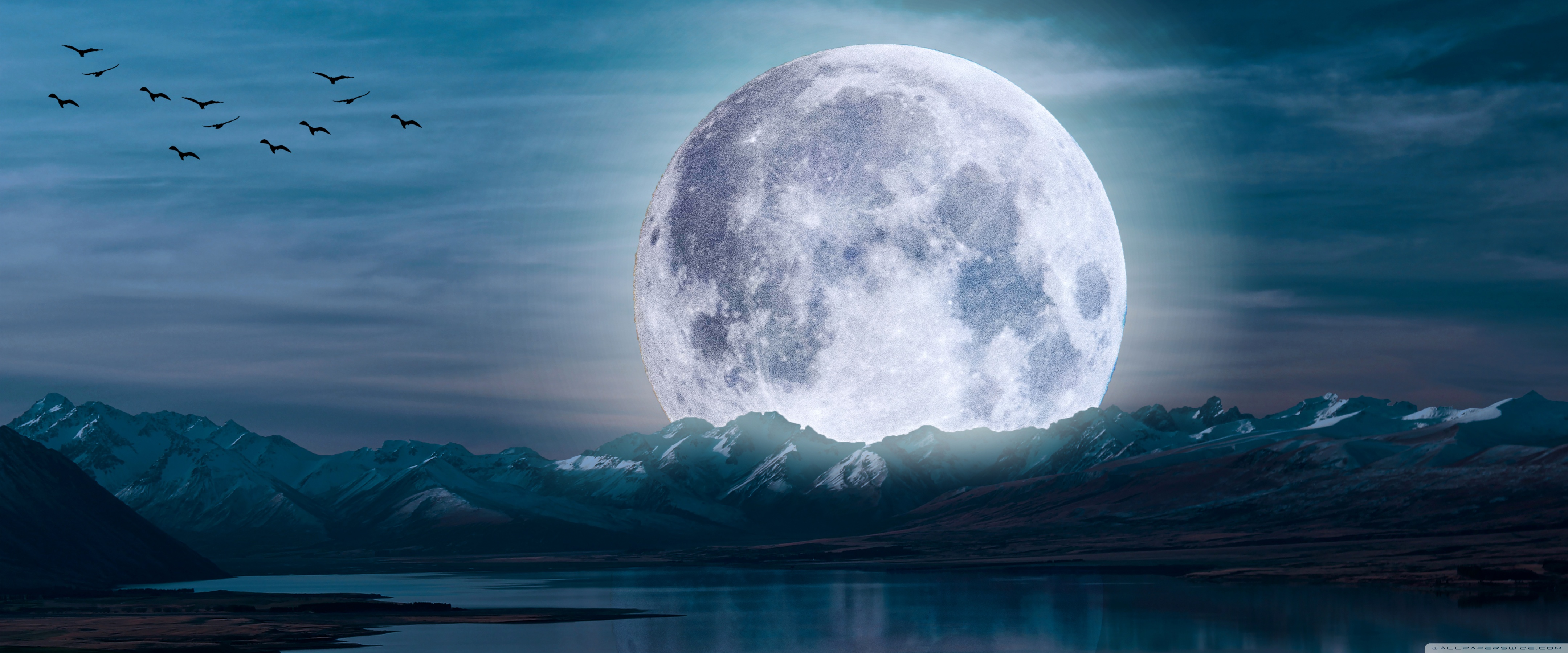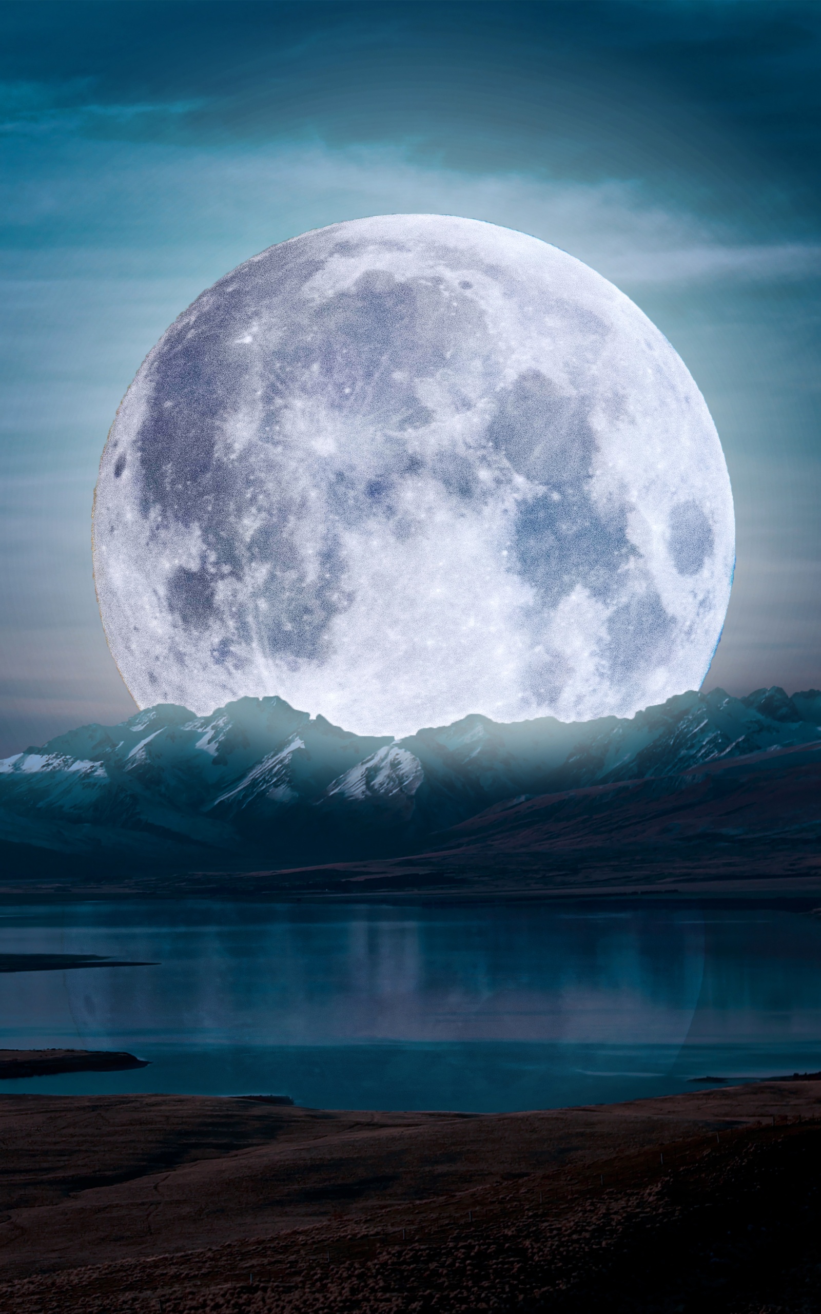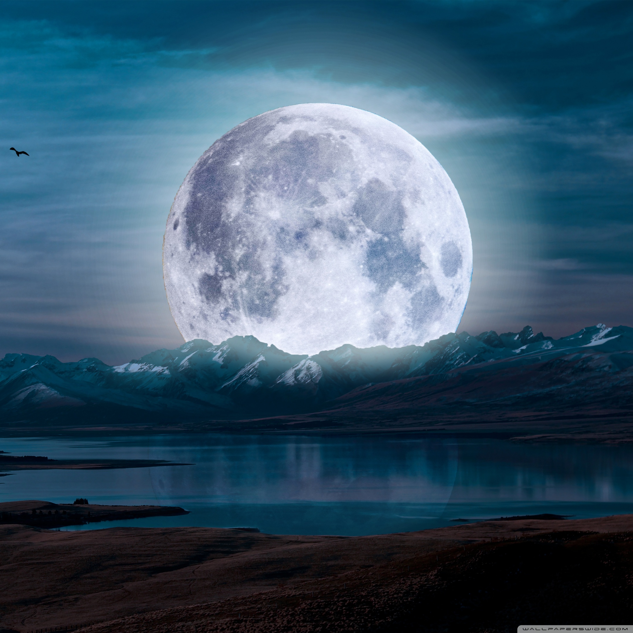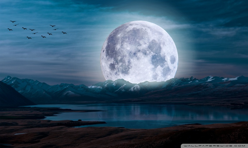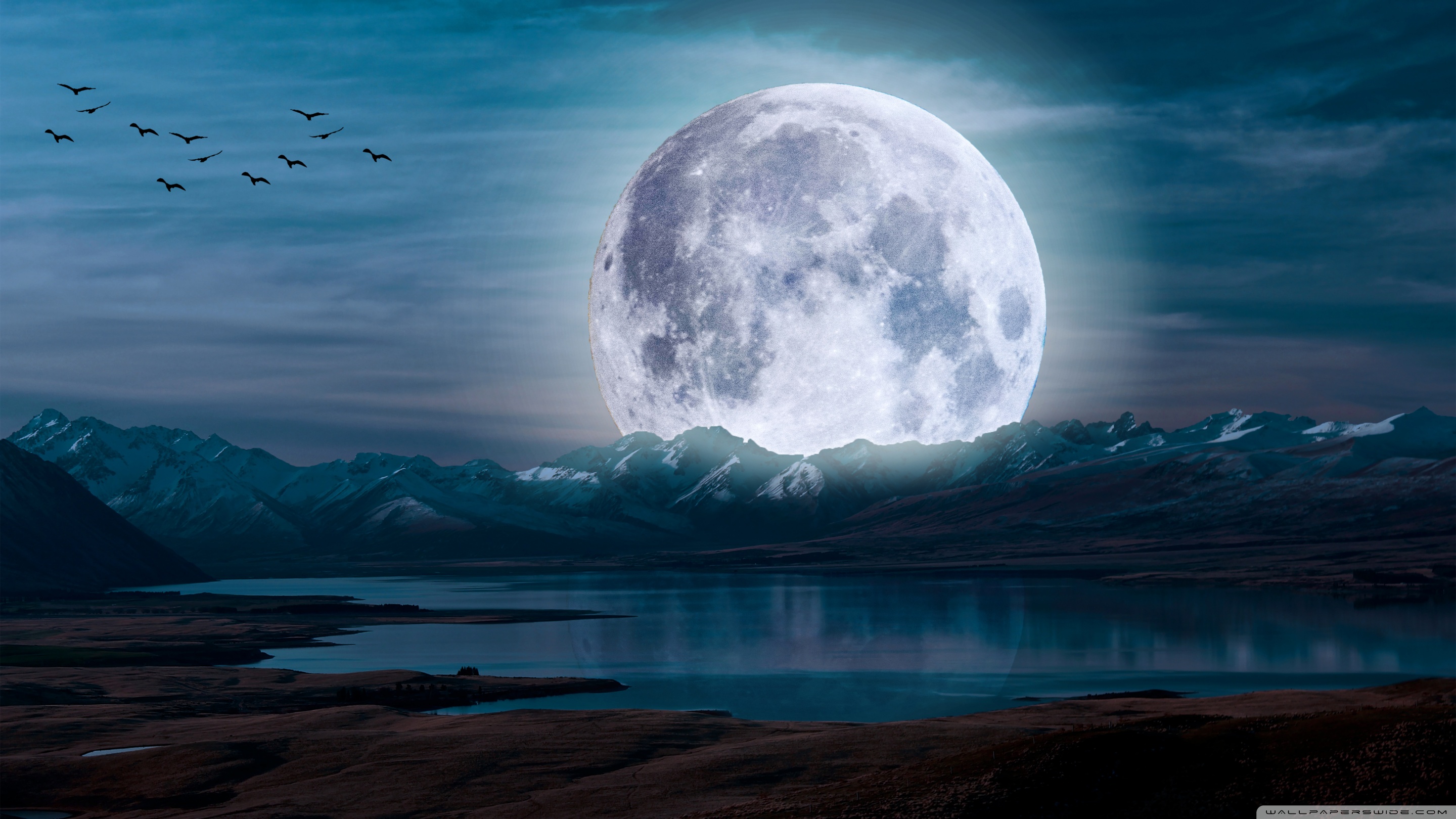 Download Surreal Moon in a Mountain Landscape 4K UHD Wallpaper