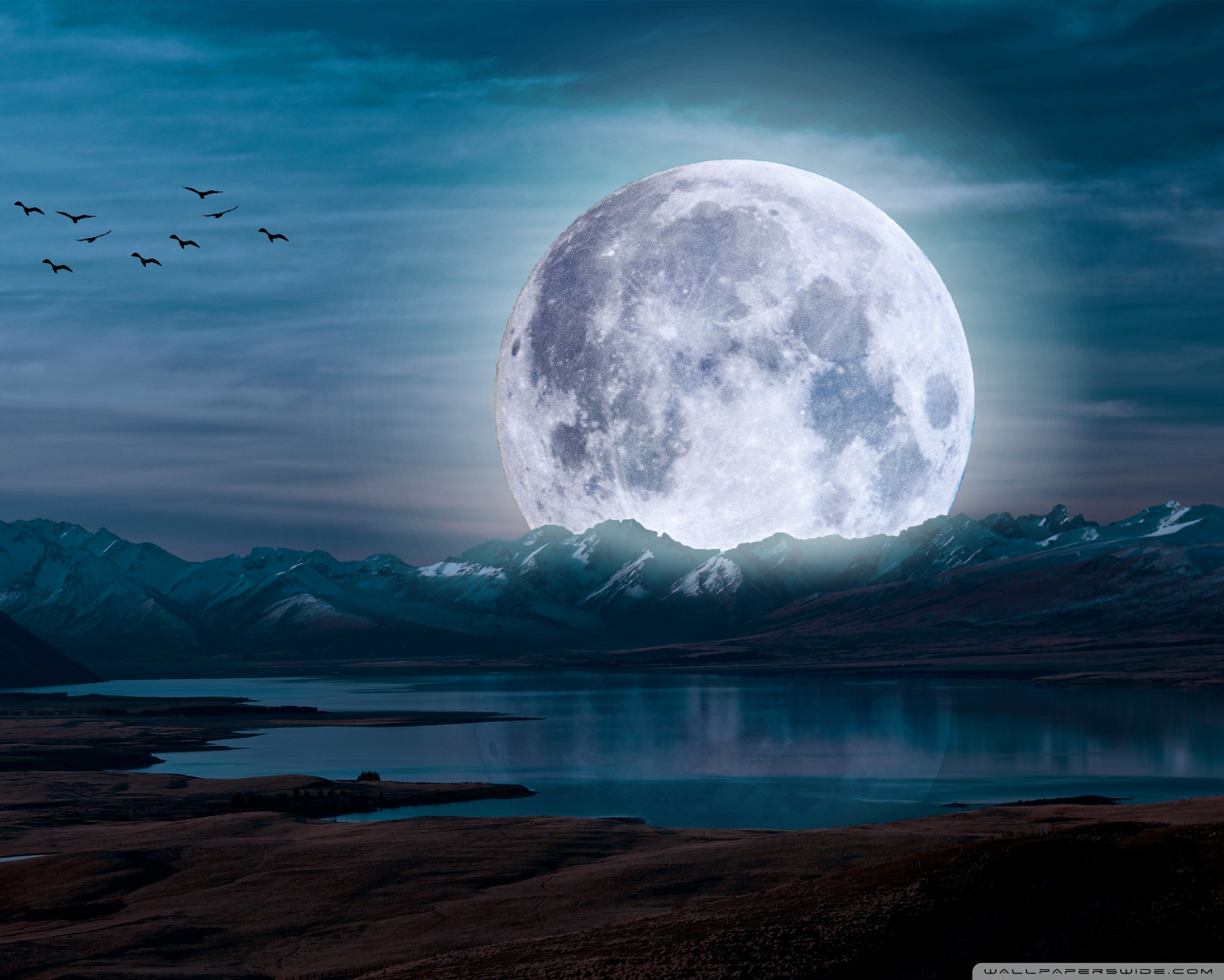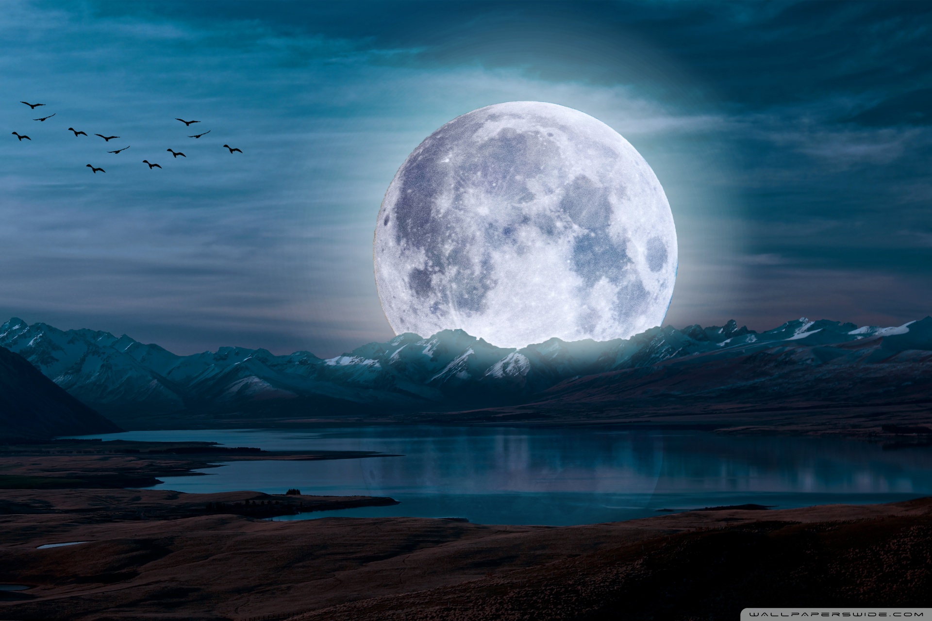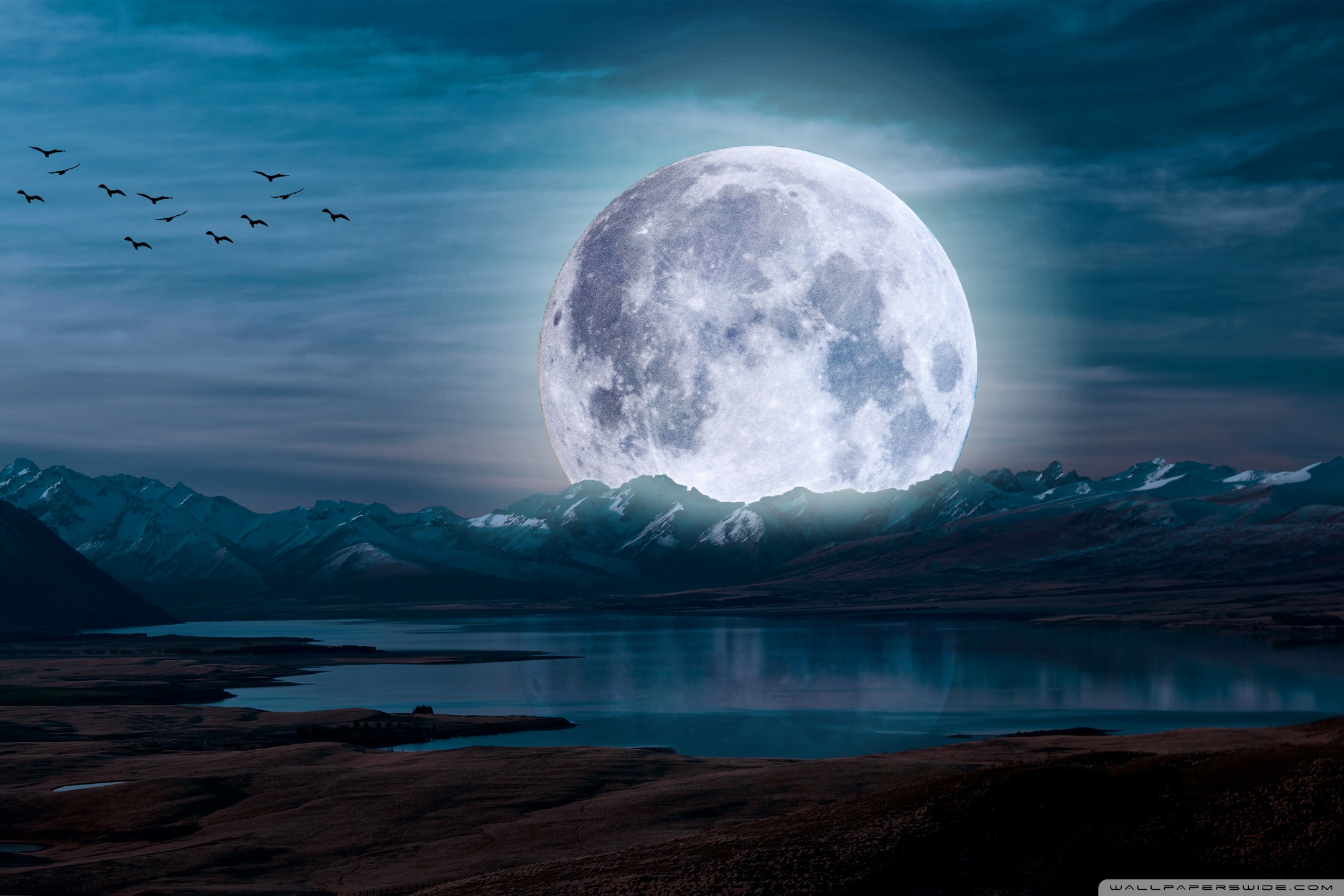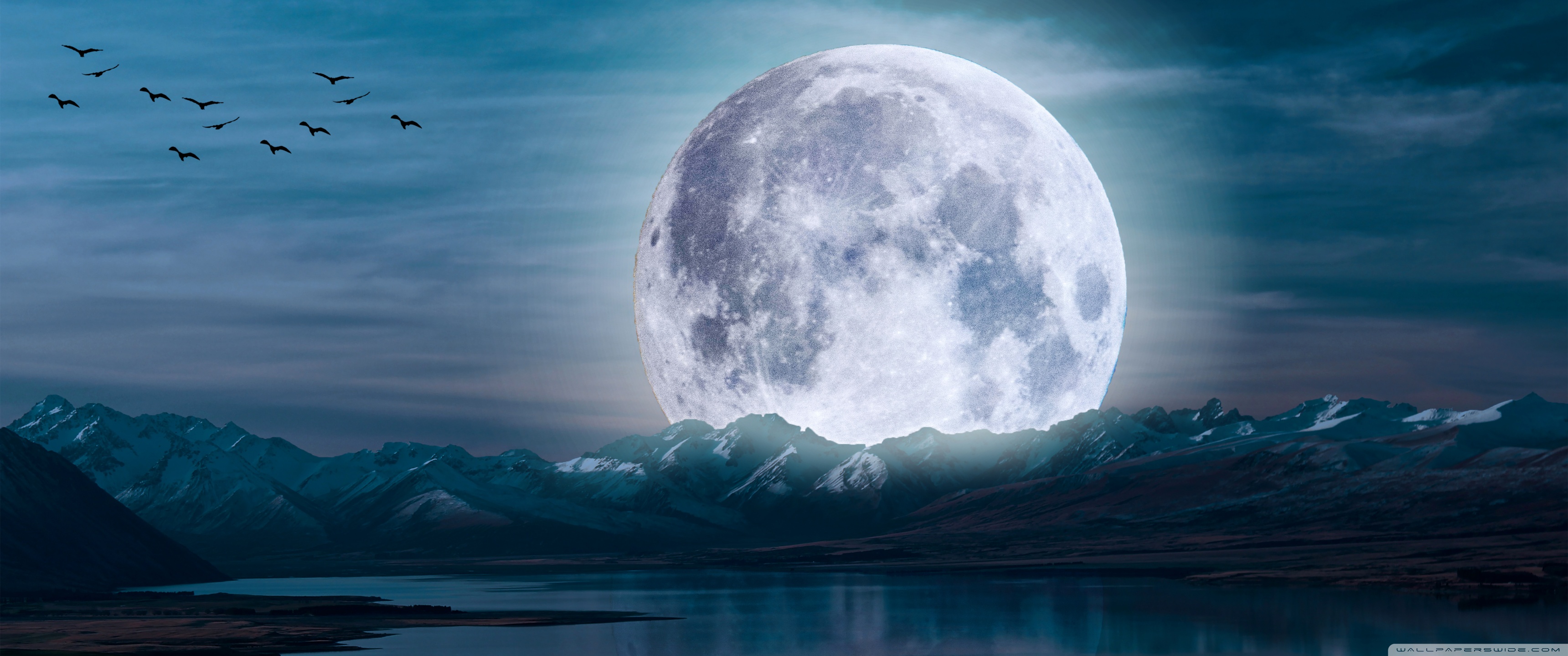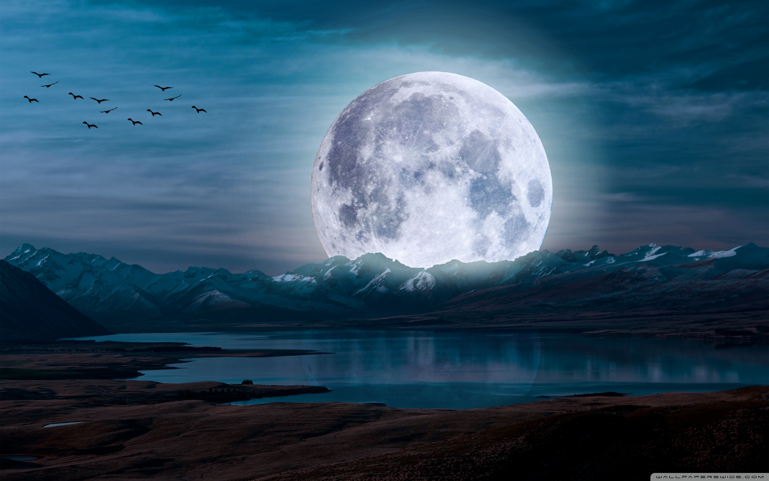 Download Surreal Moon in a Mountain Landscape 4K UHD Wallpaper