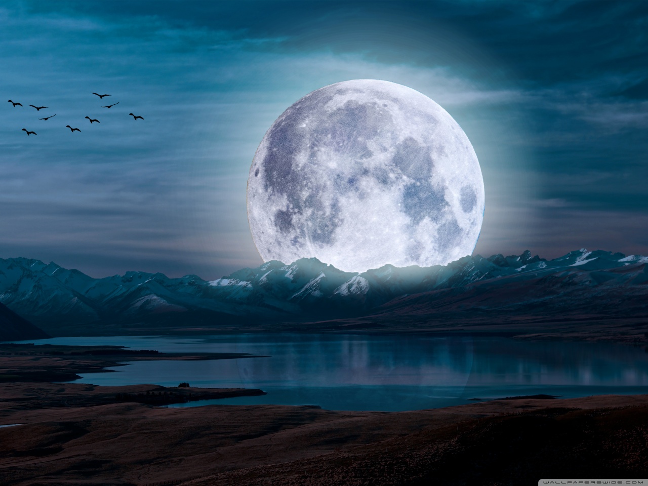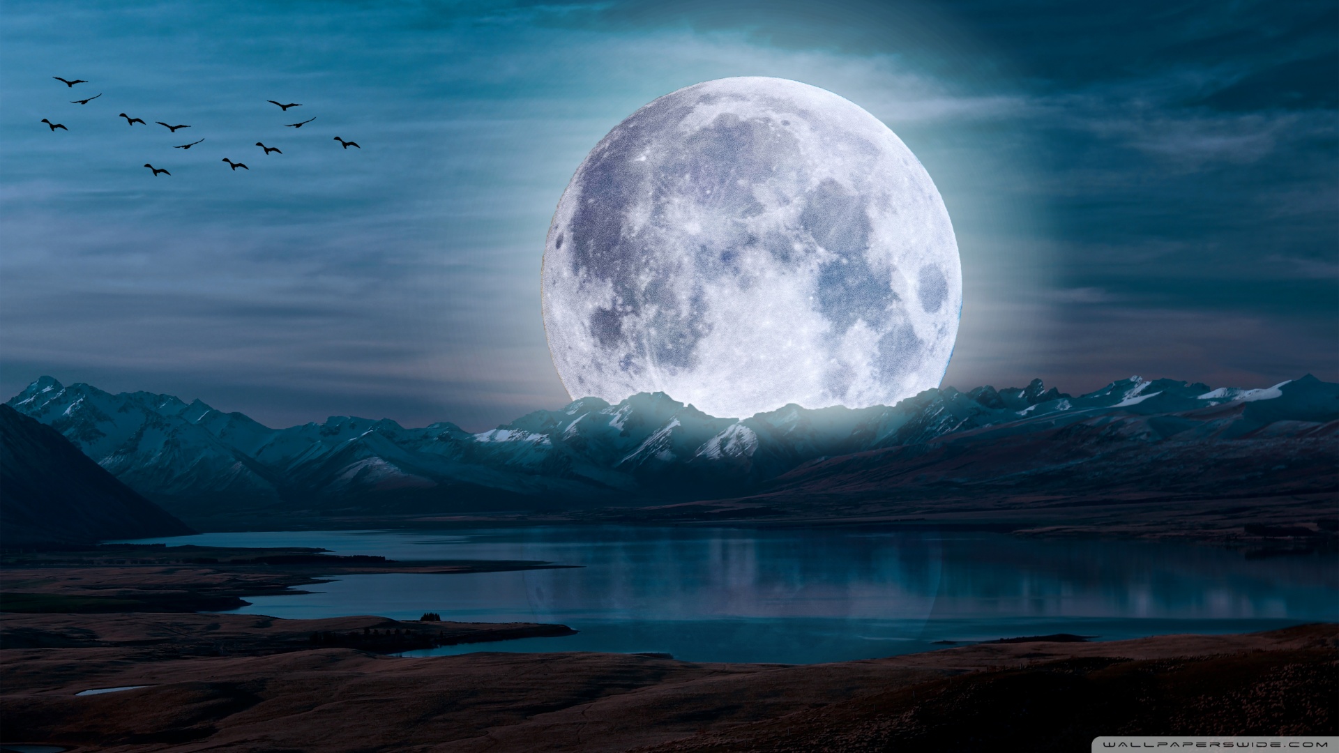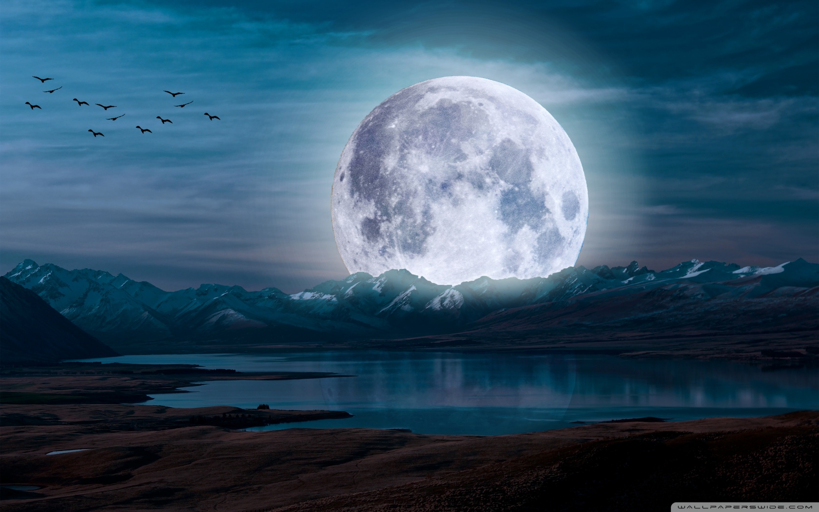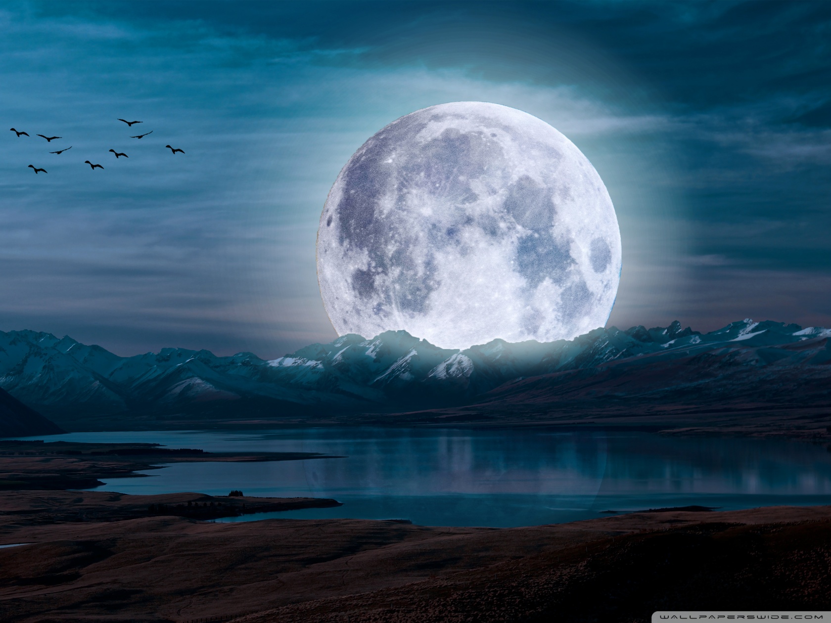 Download Surreal Moon in a Mountain Landscape 4K UHD Wallpaper