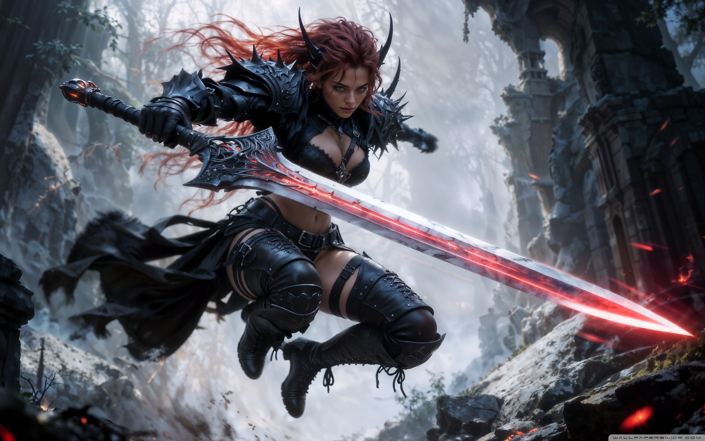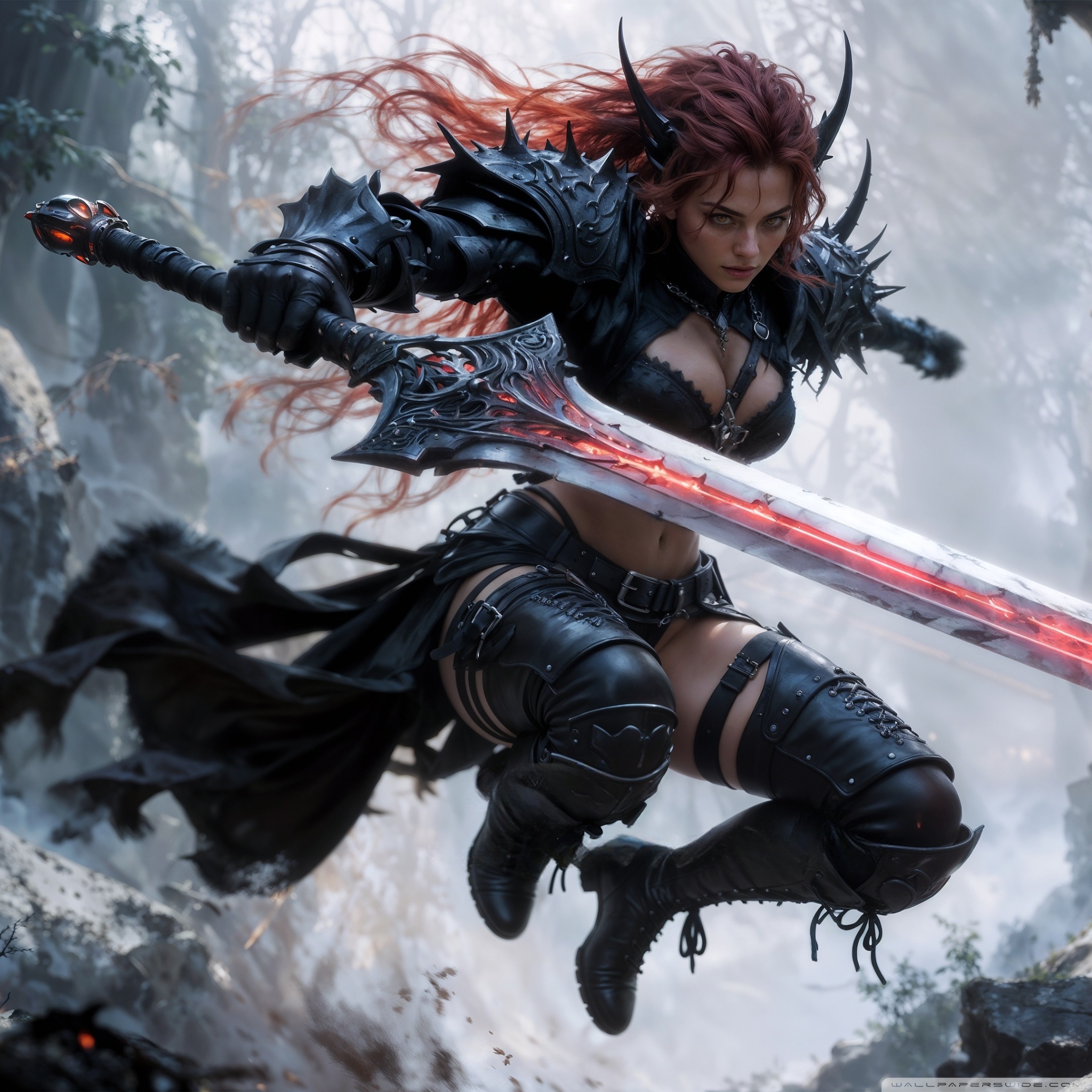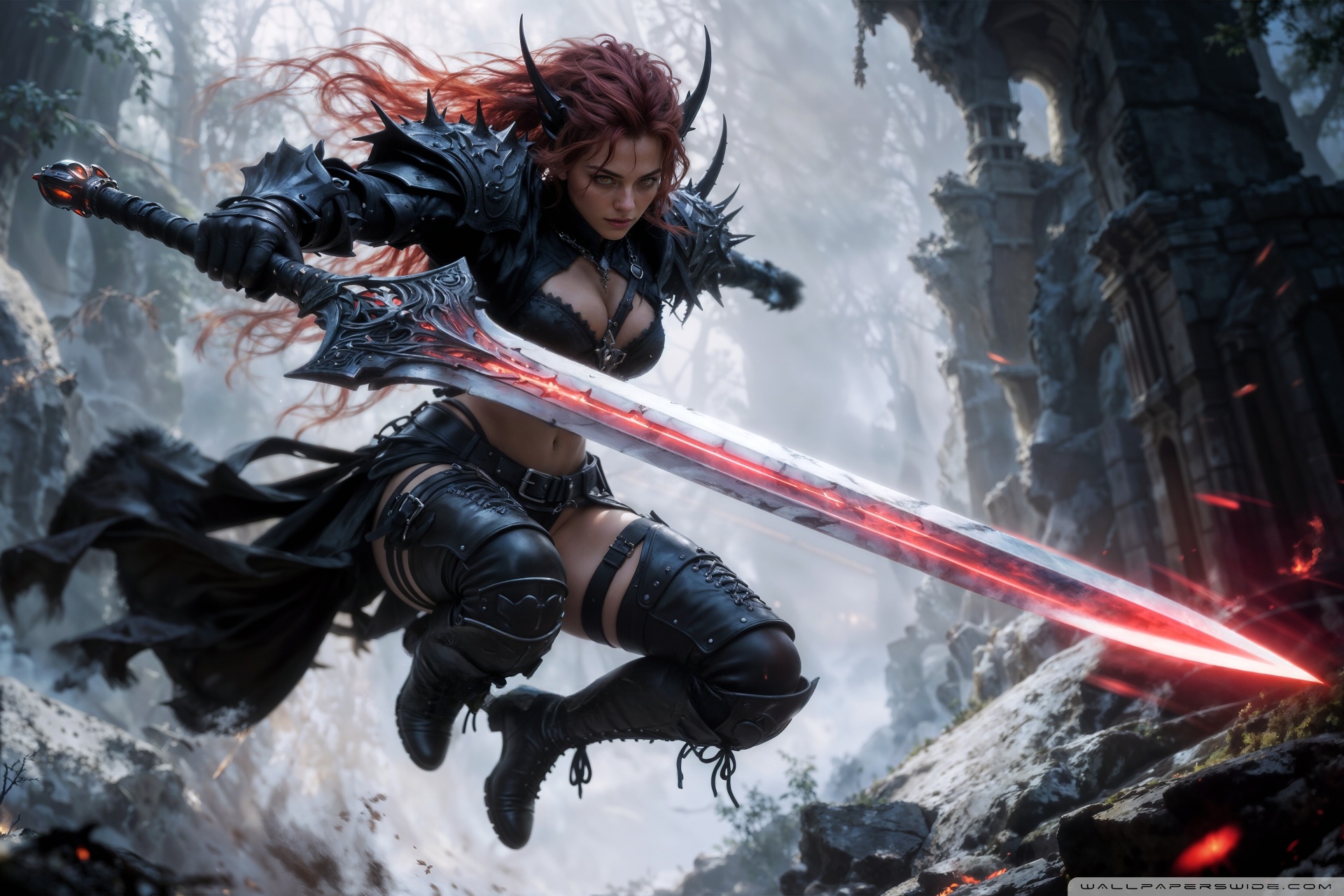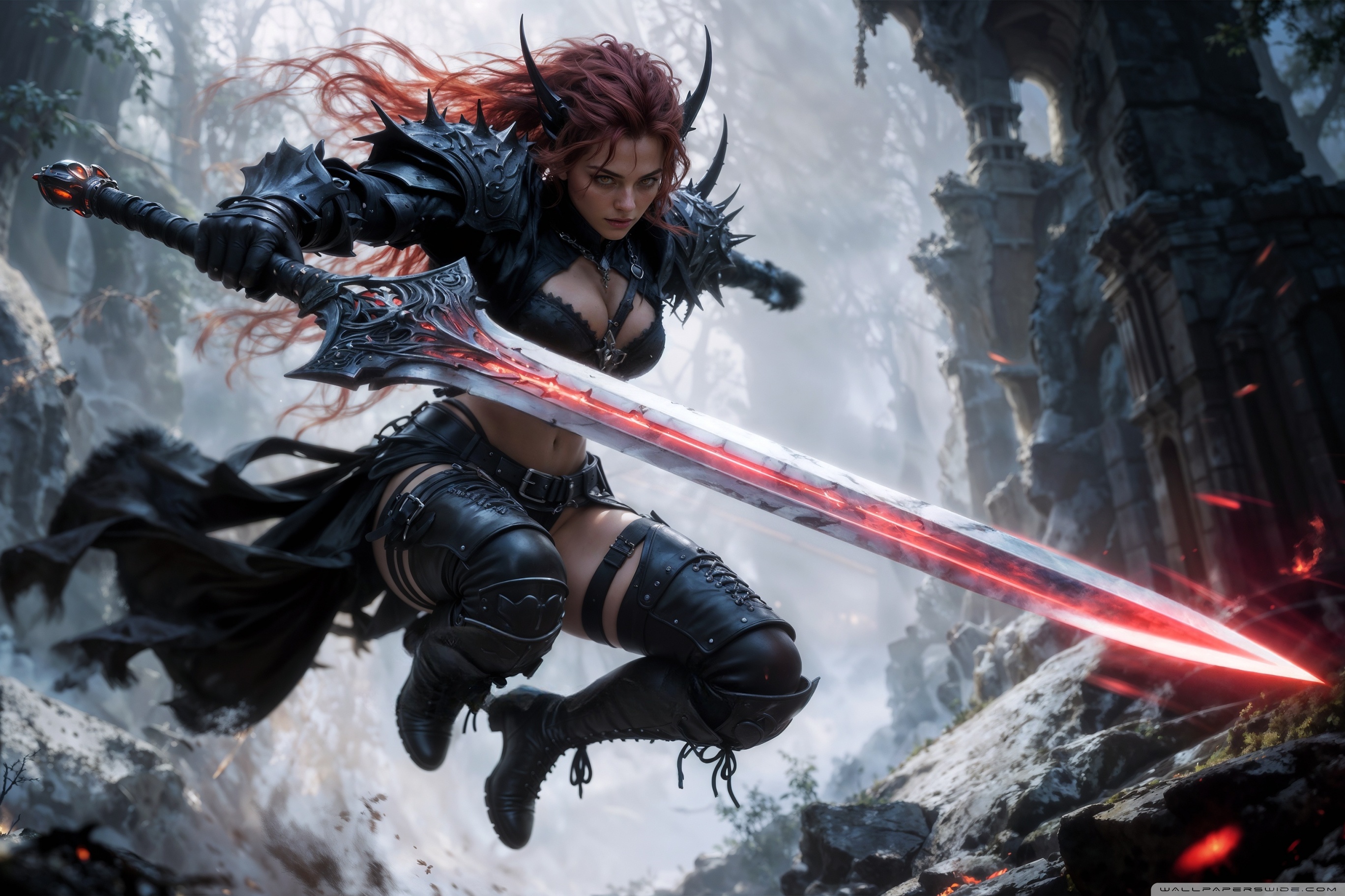 Download Sword Wielding Female Warrior Art 4K UHD Wallpaper