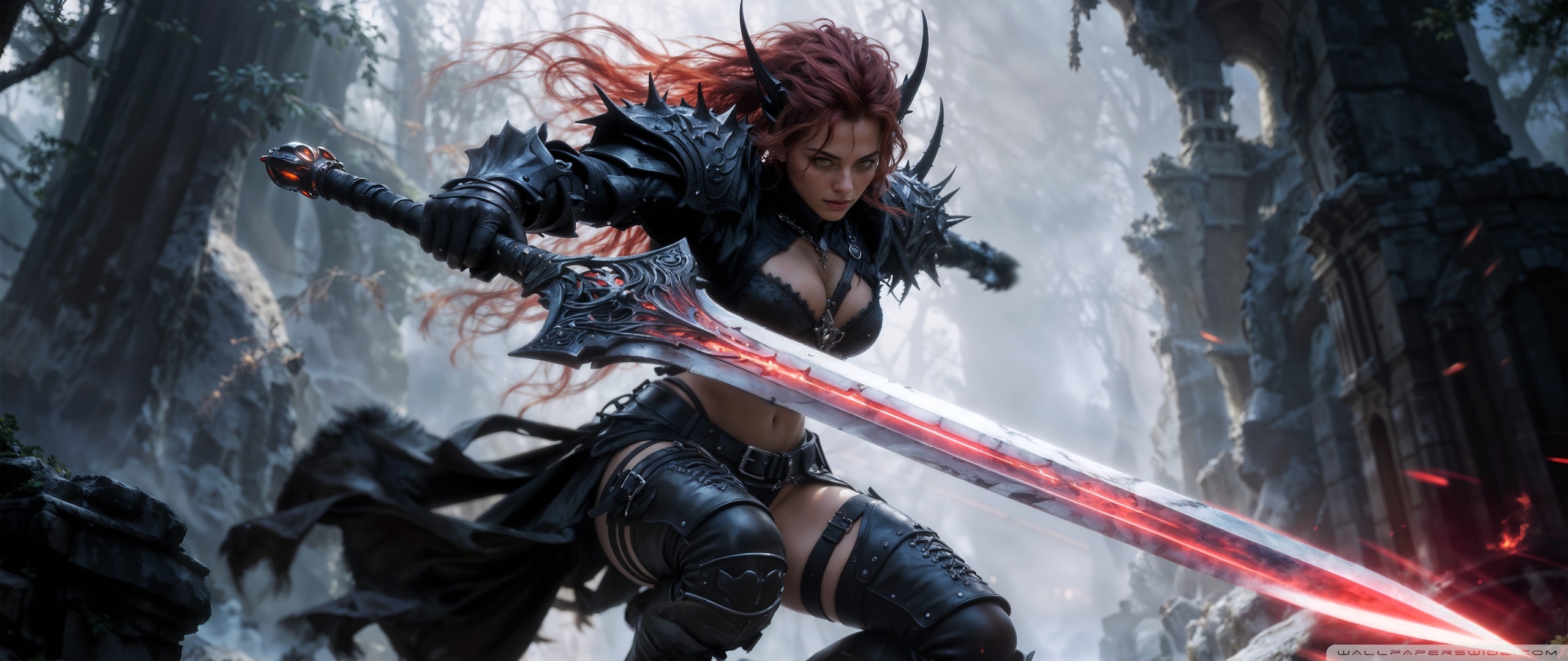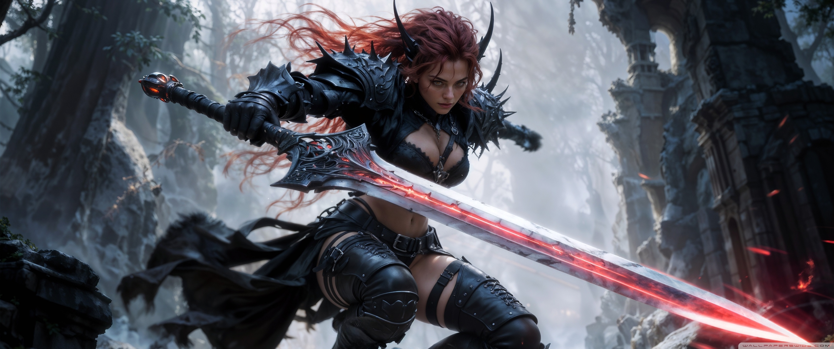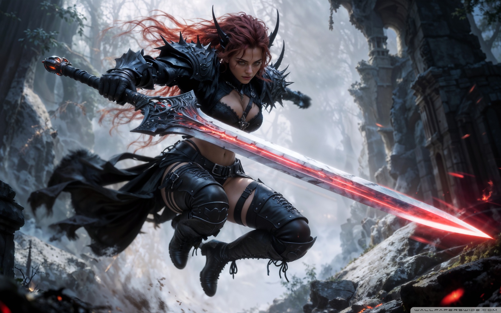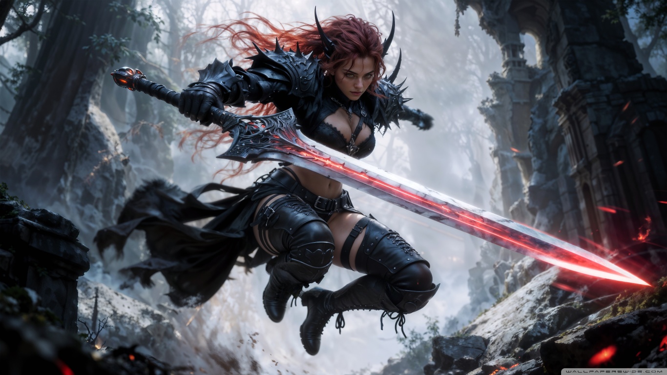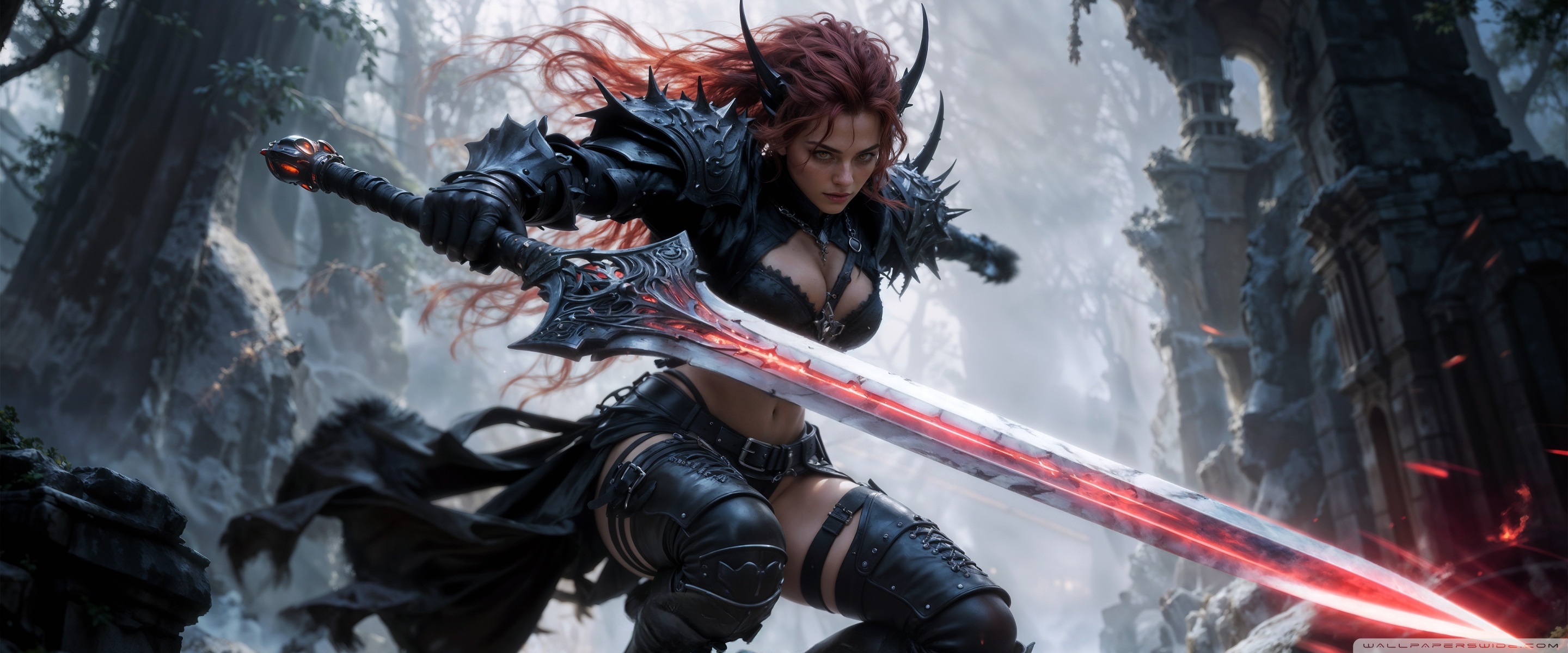 Download Sword Wielding Female Warrior Art 4K UHD Wallpaper
