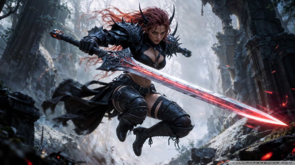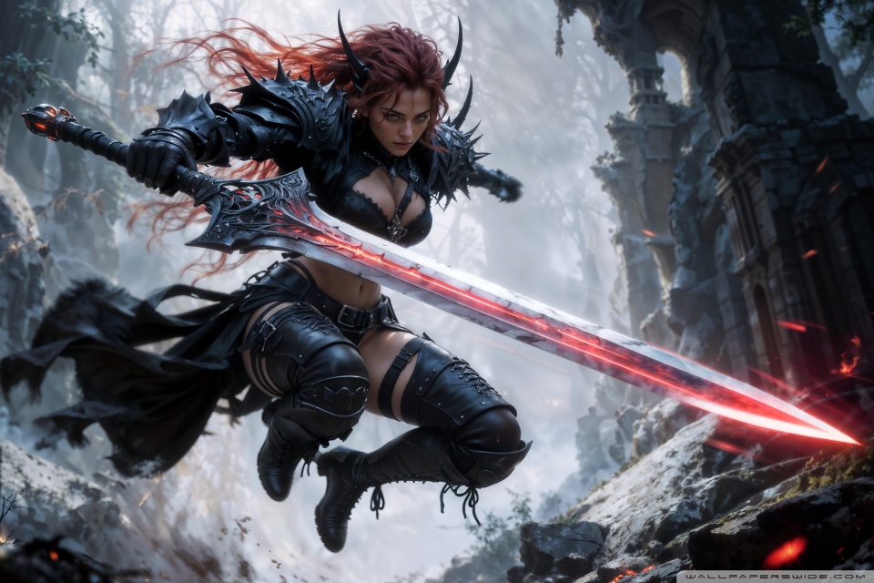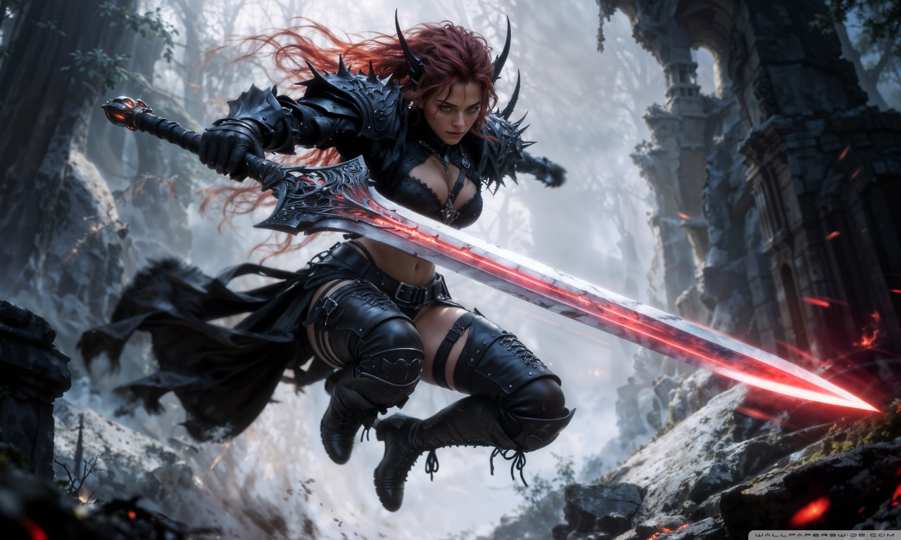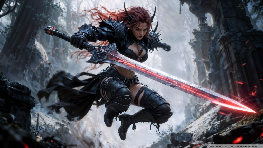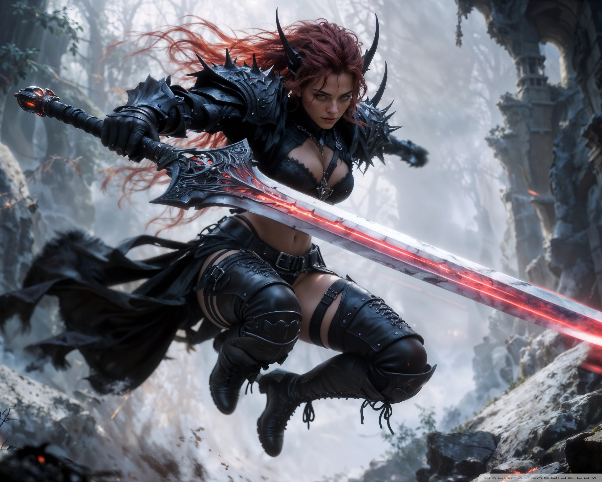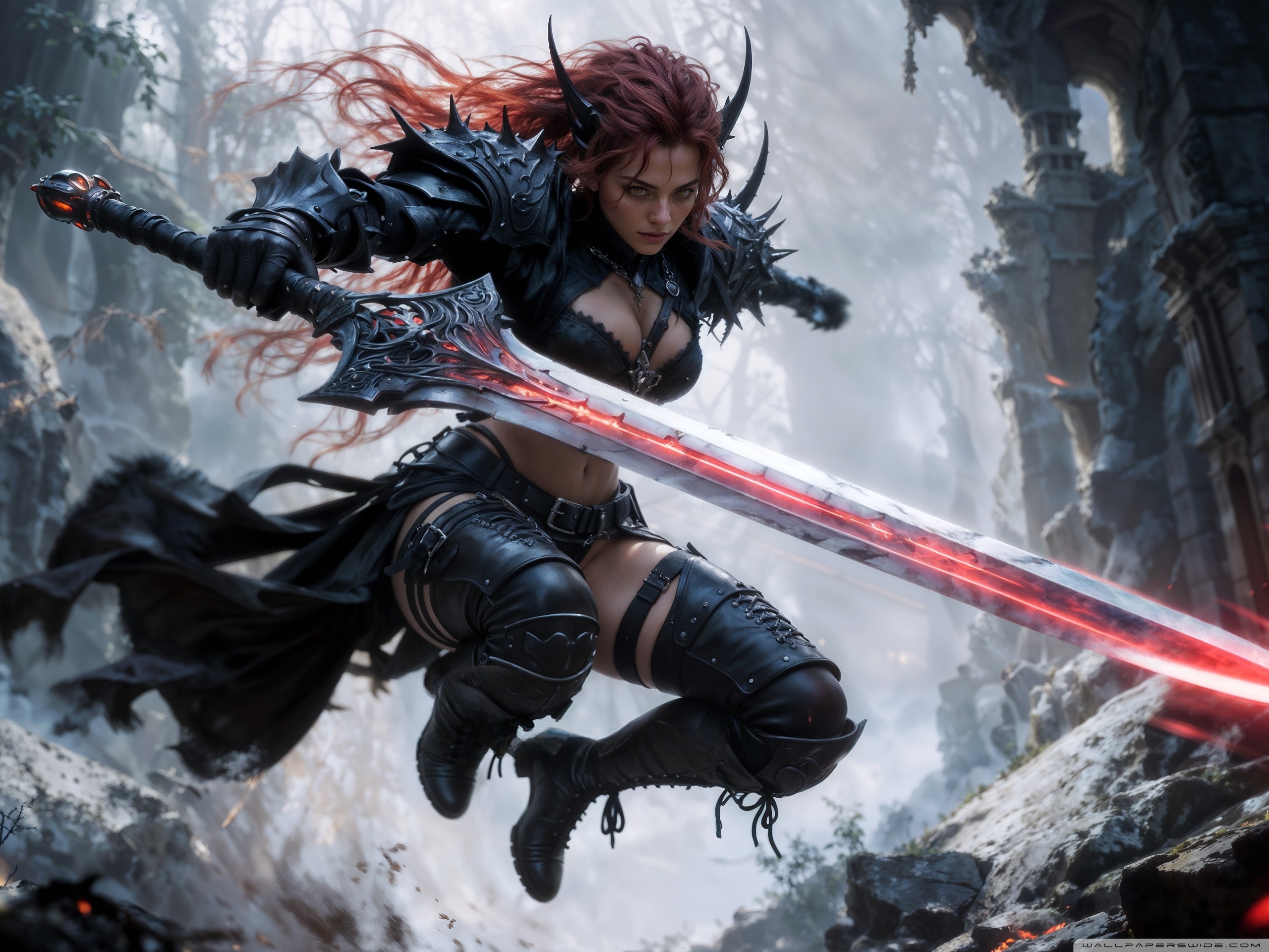 Download Sword Wielding Female Warrior Art 4K UHD Wallpaper