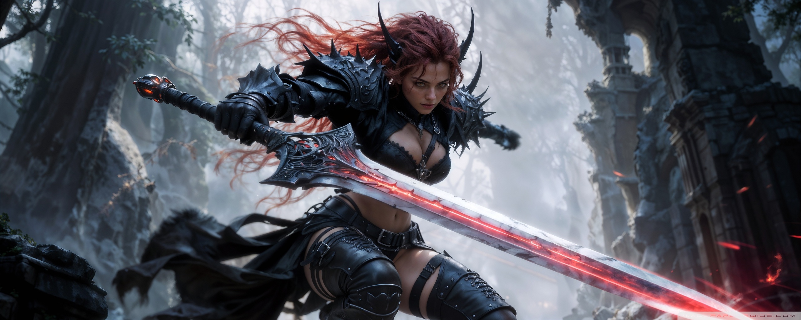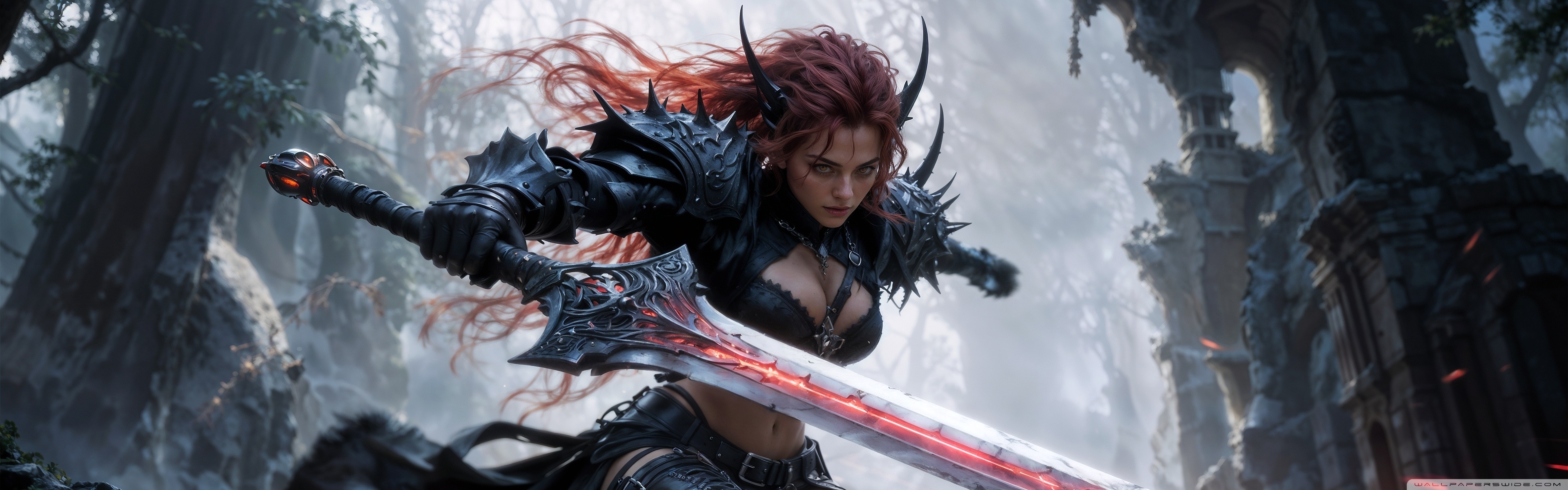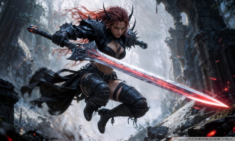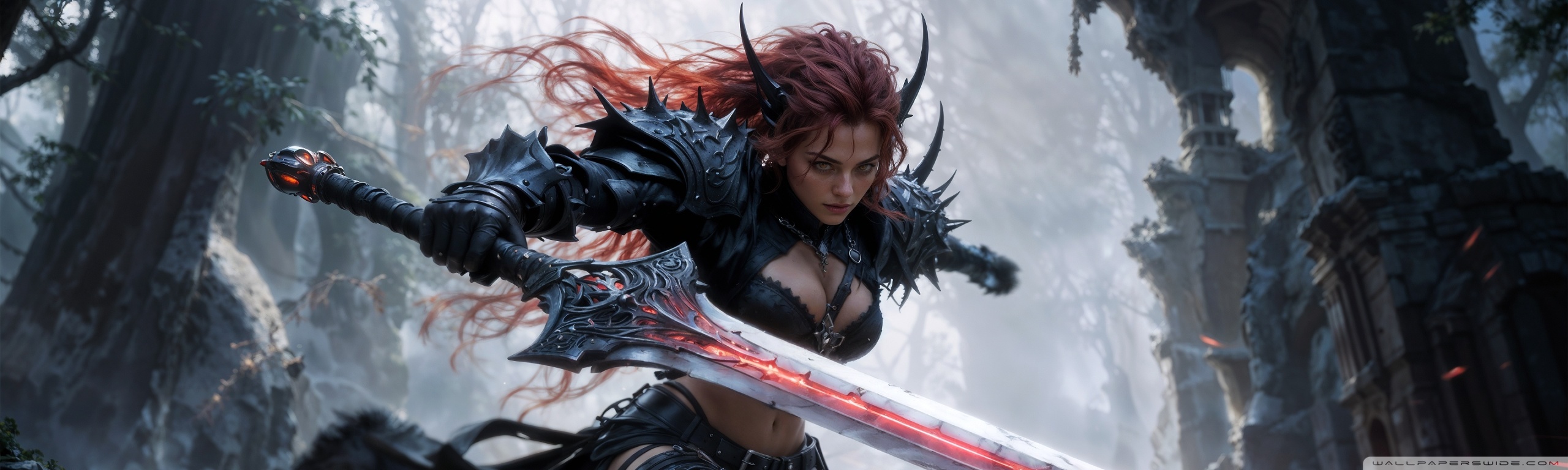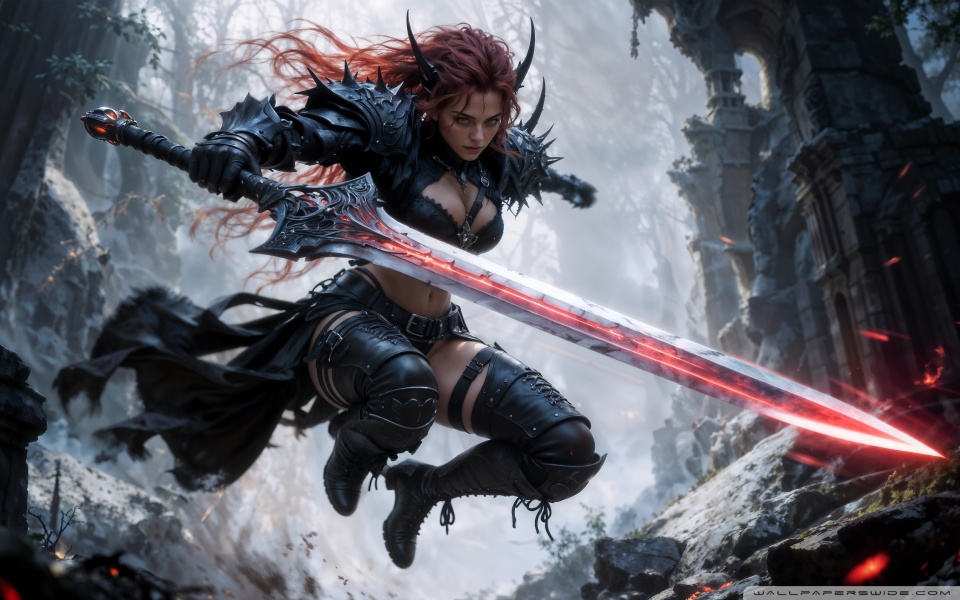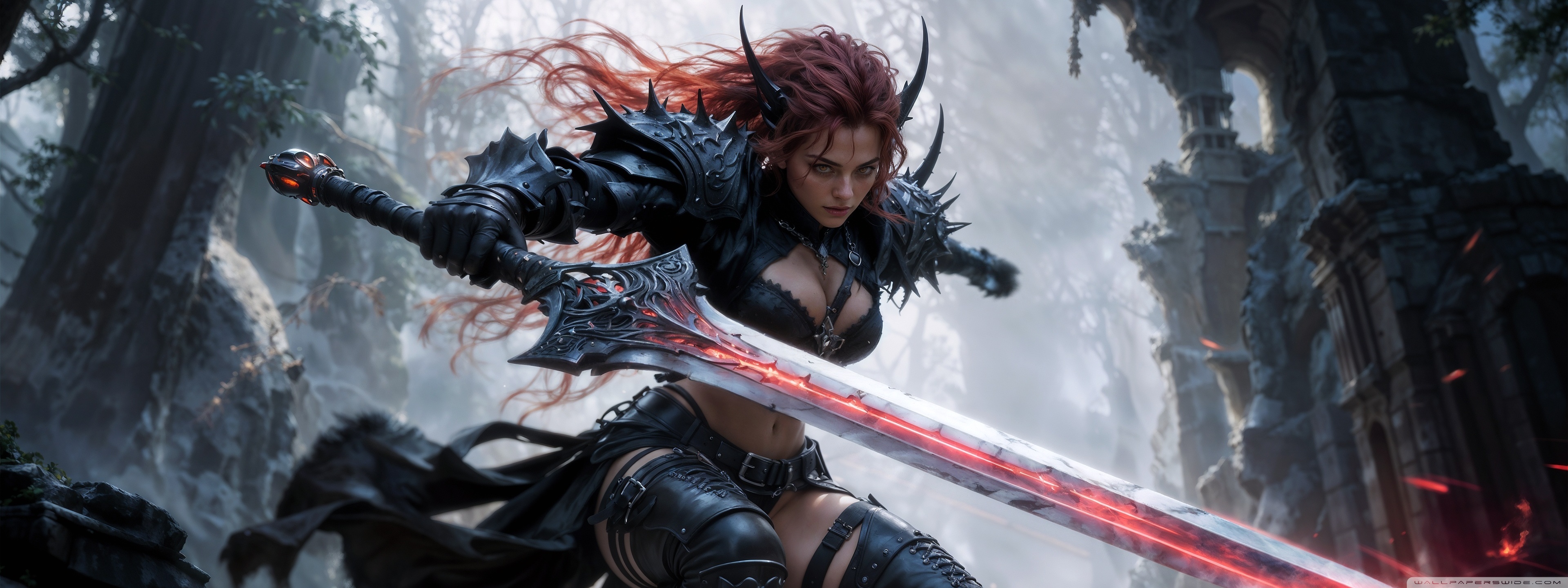 Download Sword Wielding Female Warrior Art 4K UHD Wallpaper