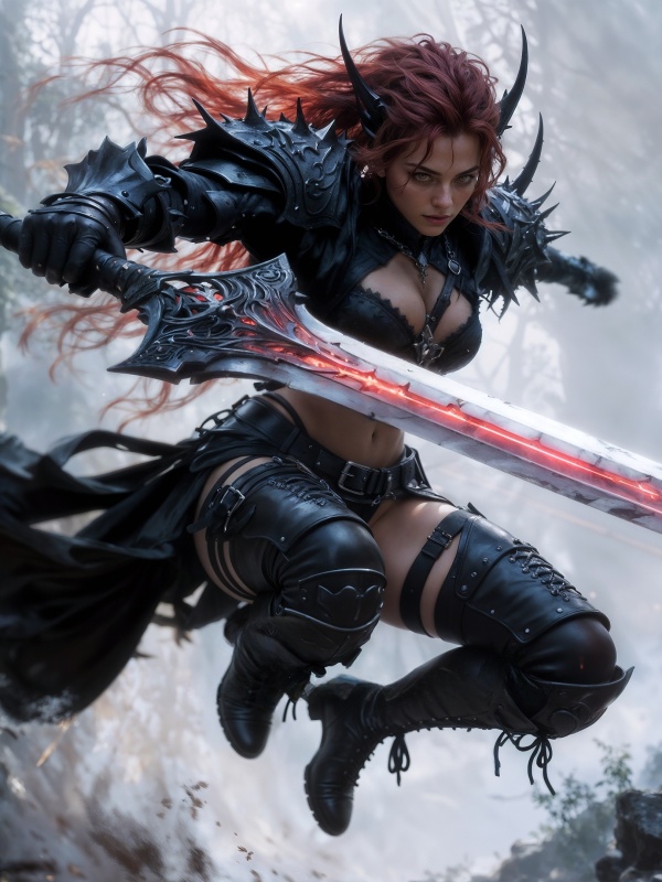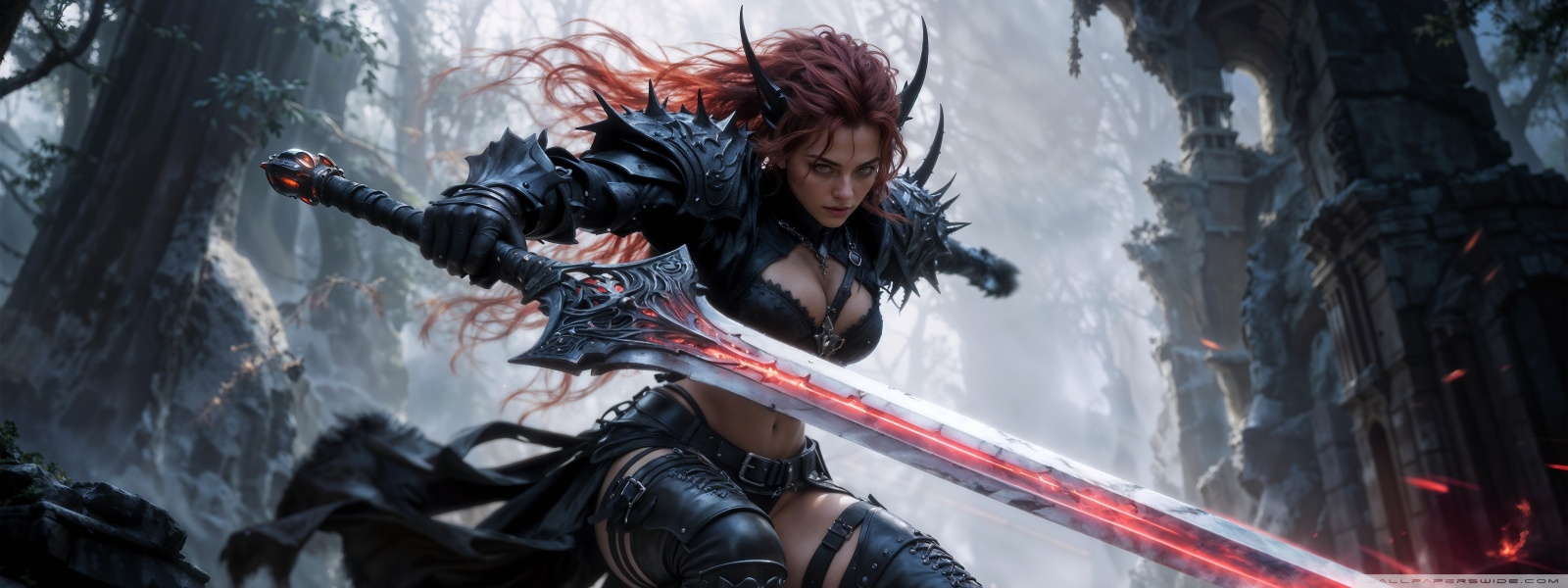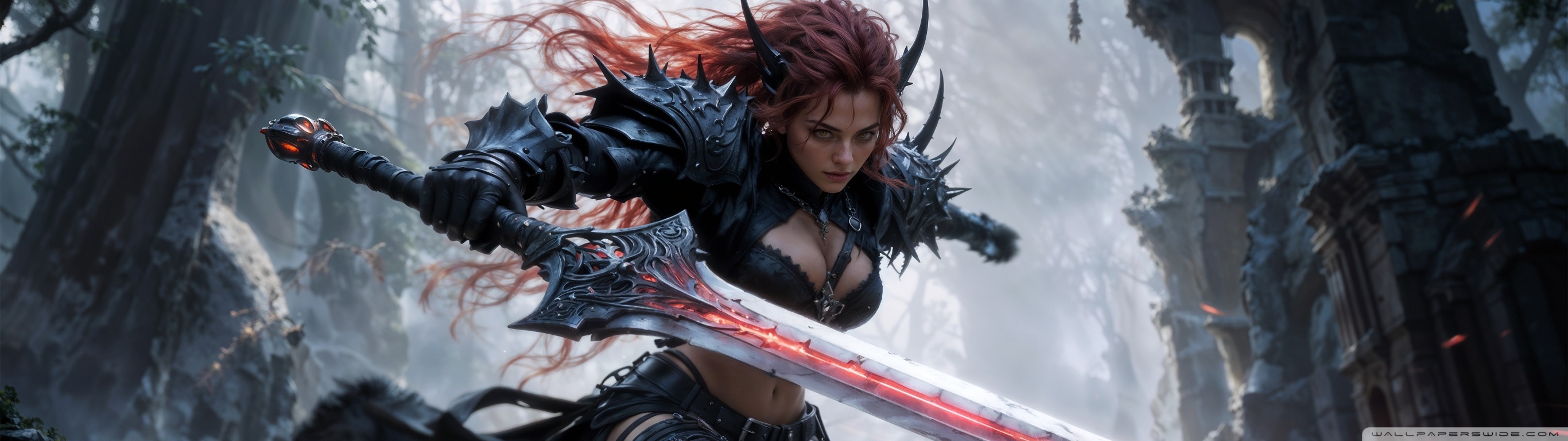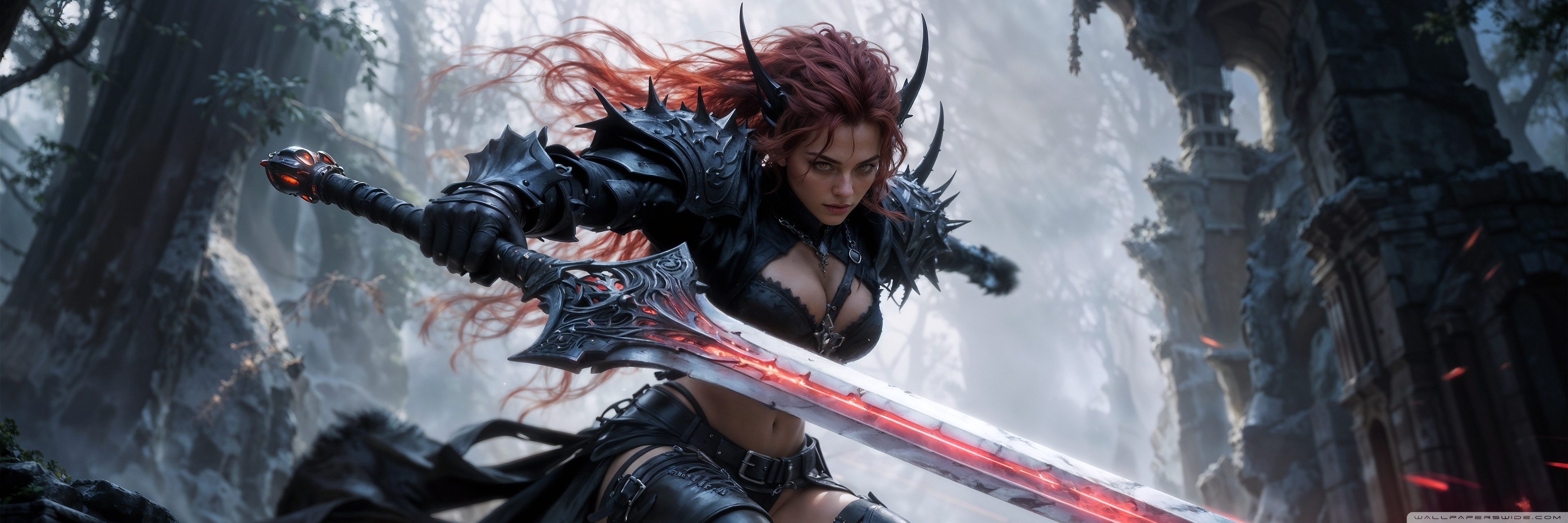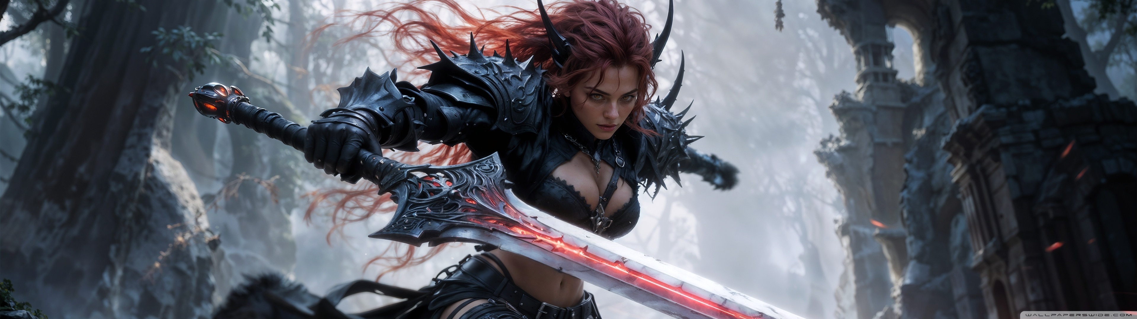 Download Sword Wielding Female Warrior Art 4K UHD Wallpaper