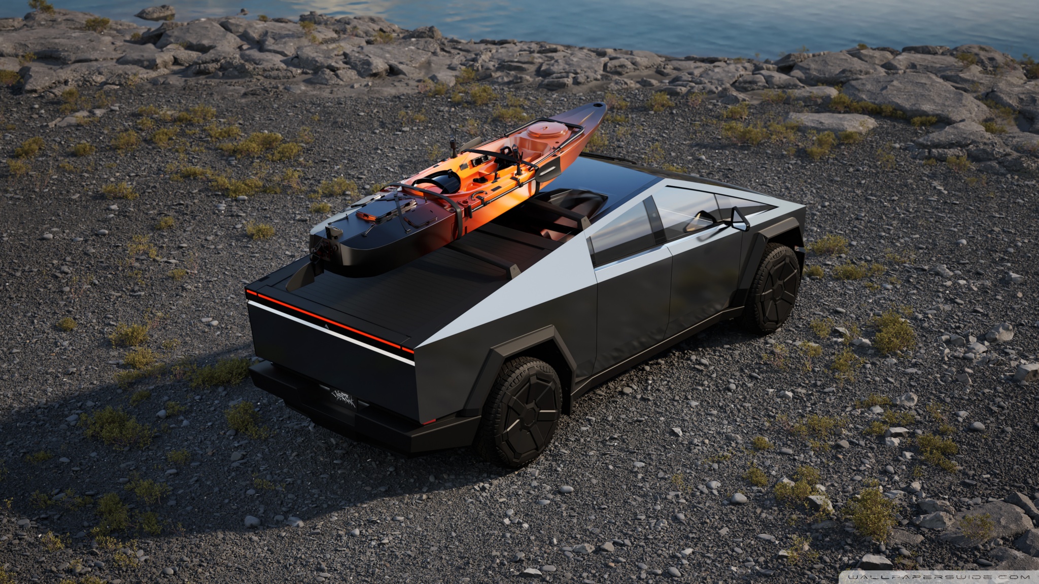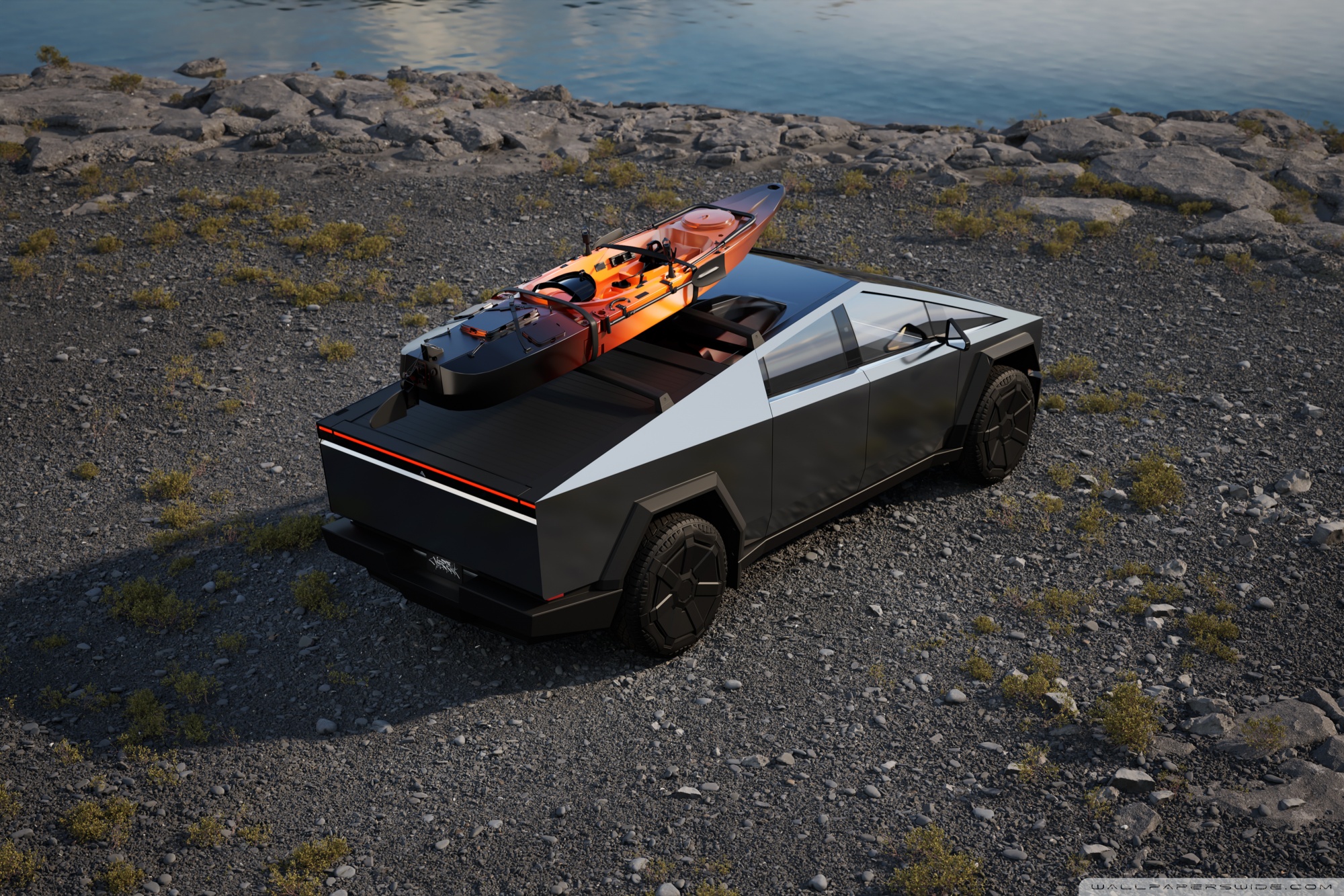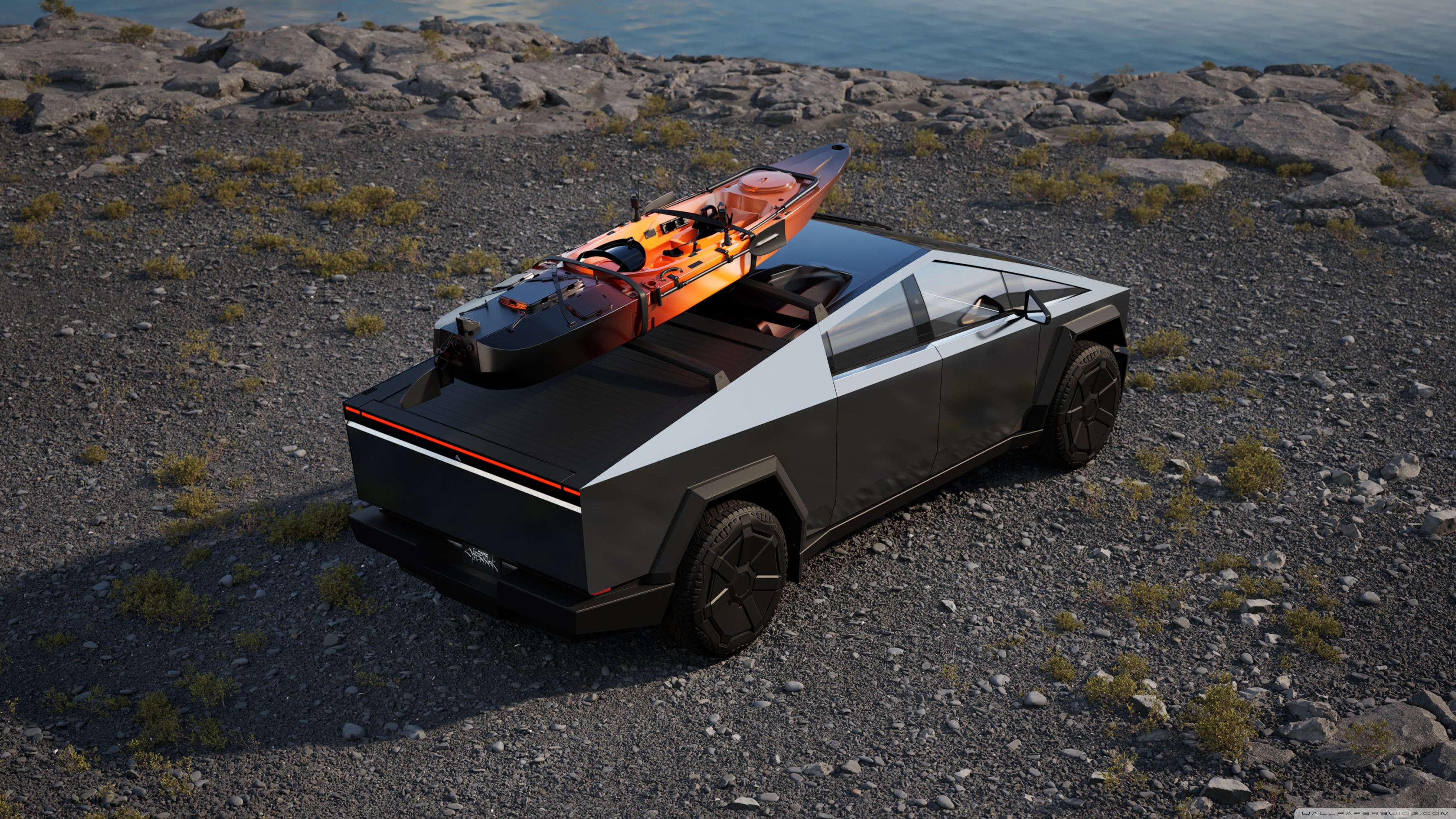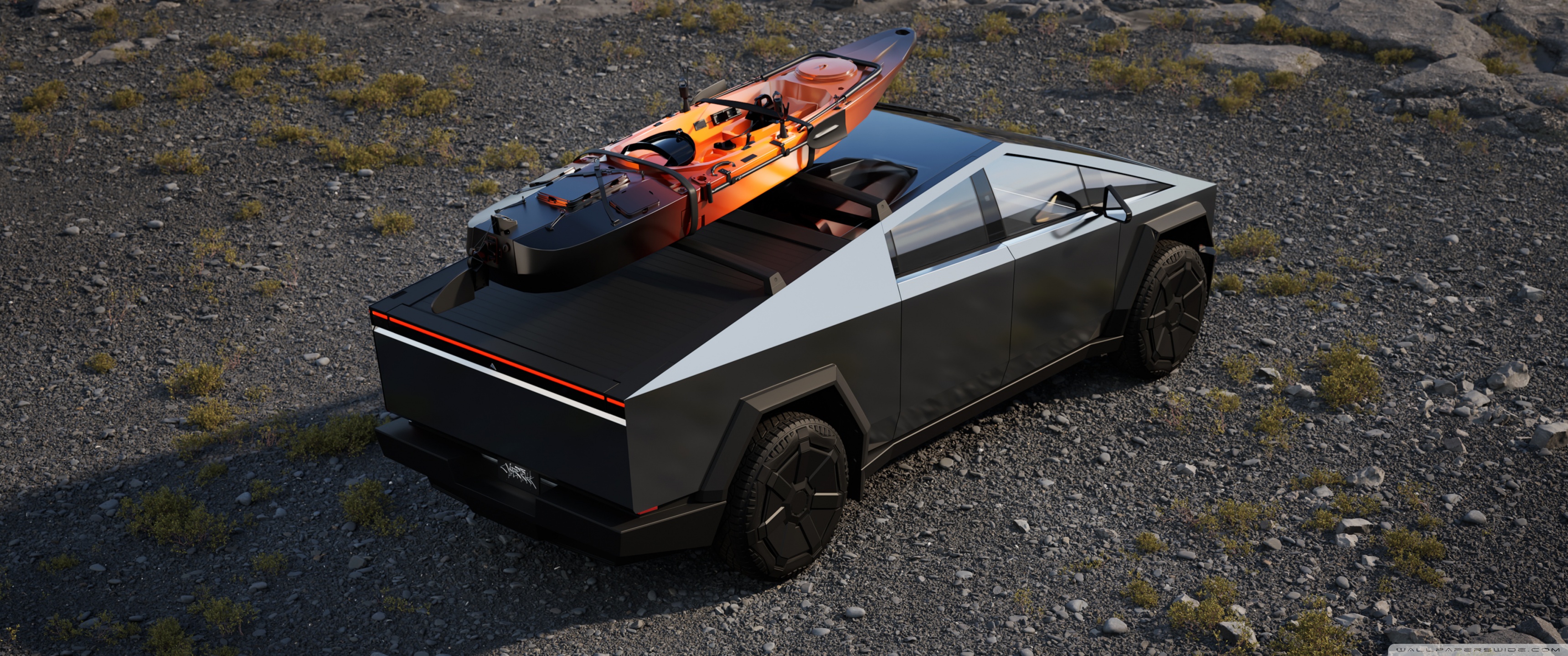 Download Tesla Car Cybertruck Vacation 4K UHD Wallpaper