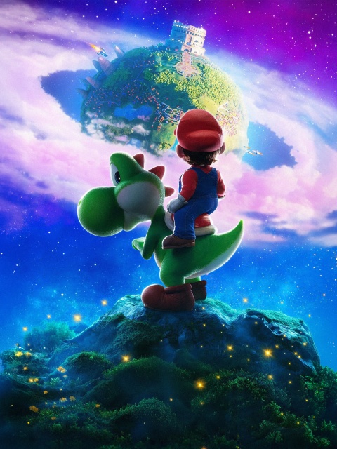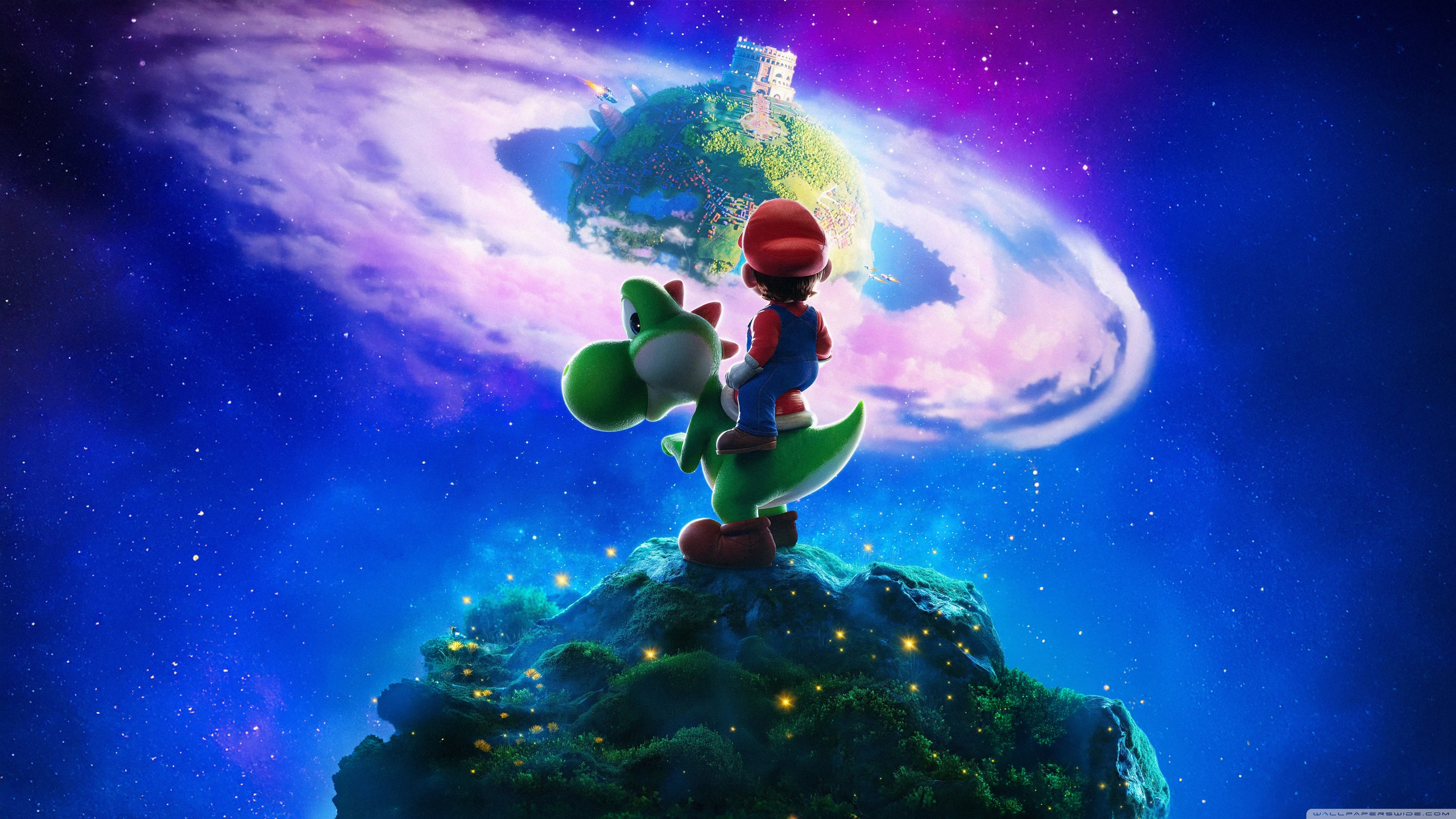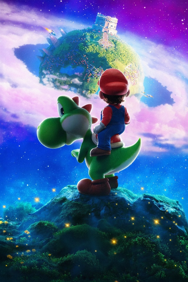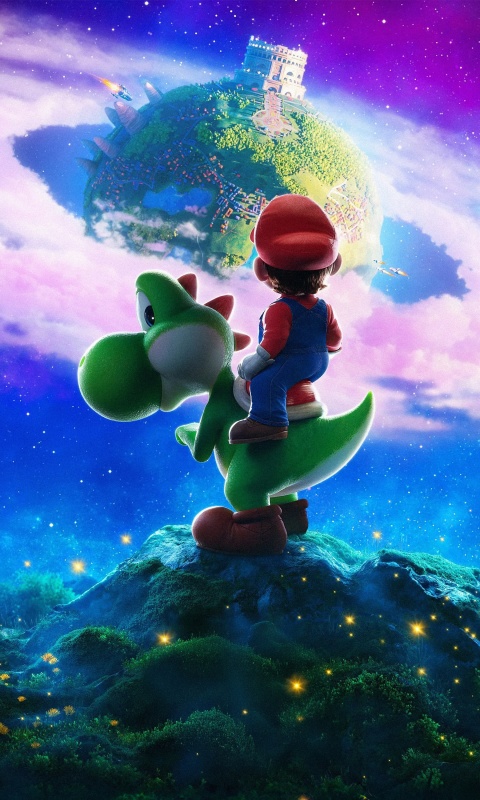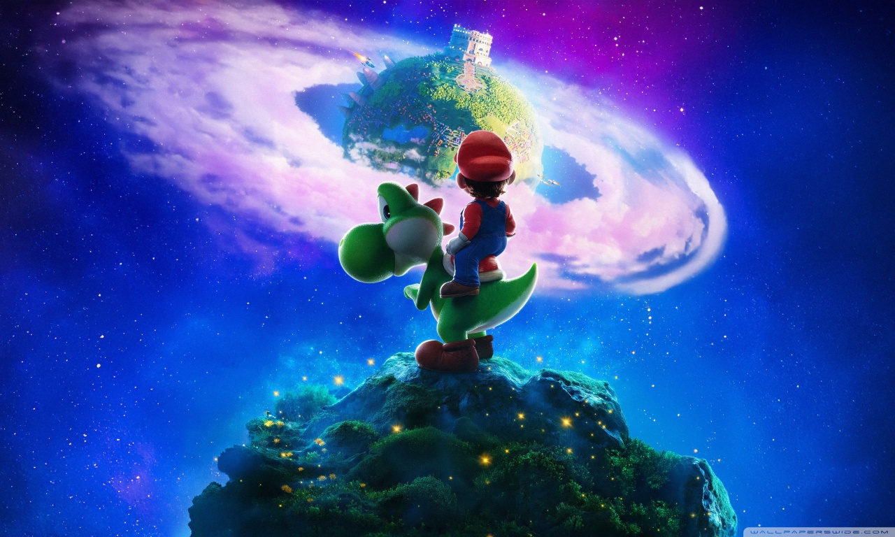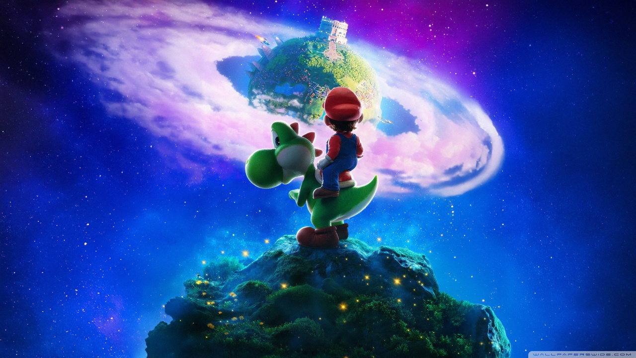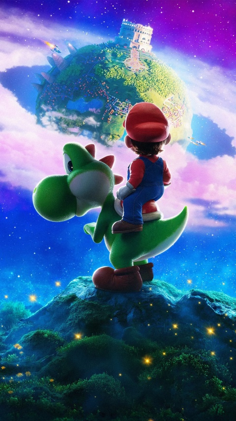 Download The Super Mario Galaxy Movie Yoshi and Mario 4K UHD Wallpaper